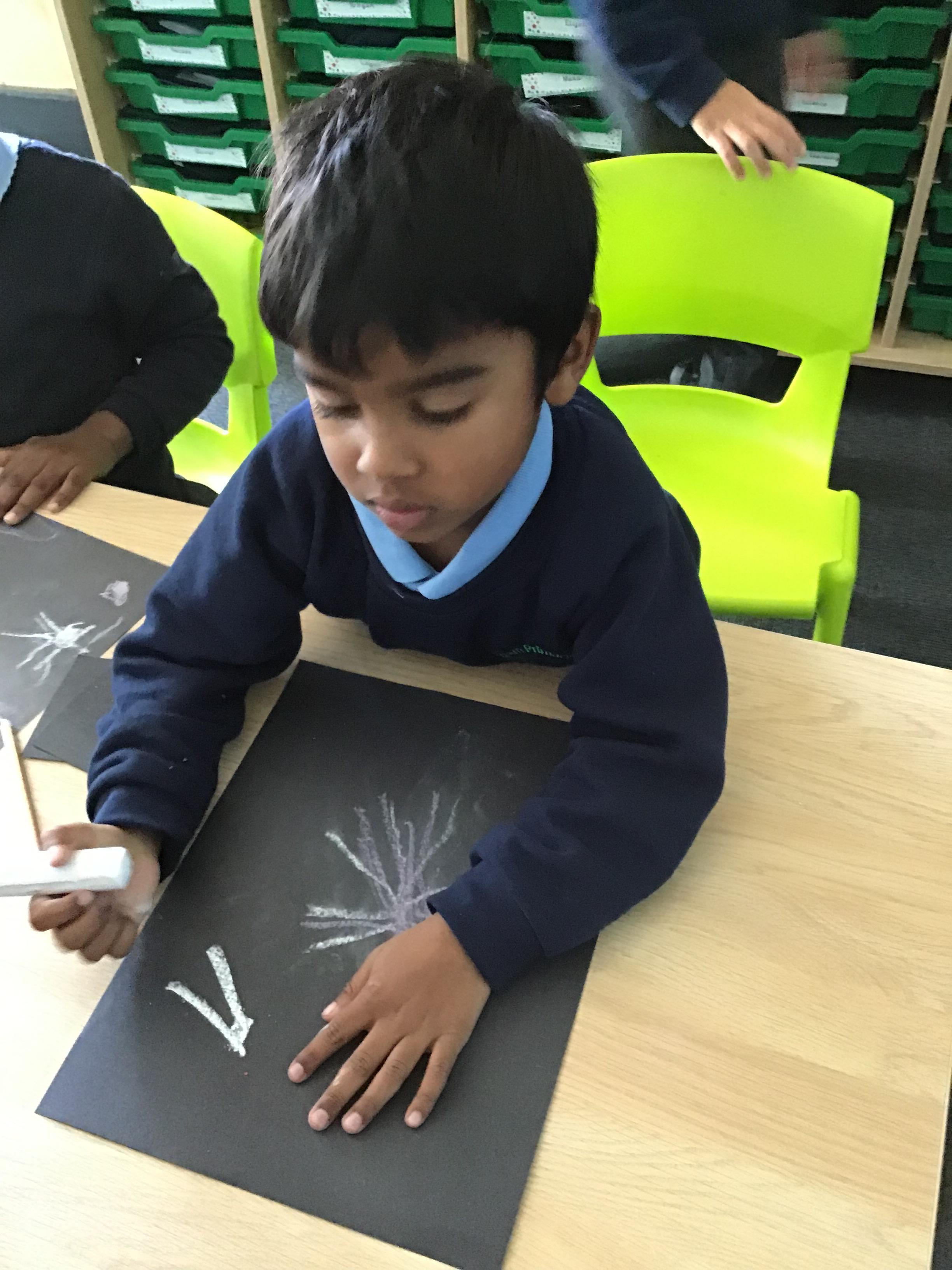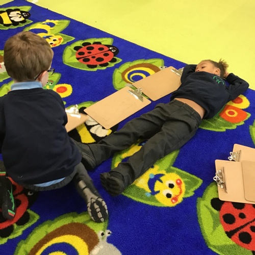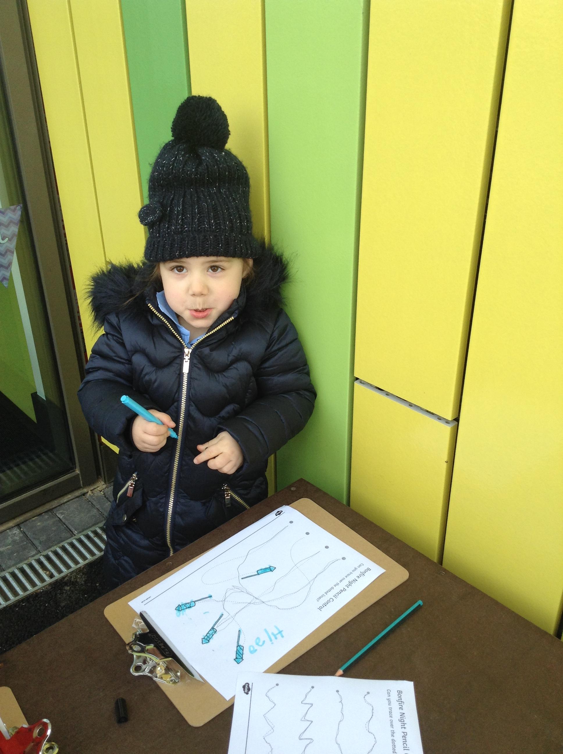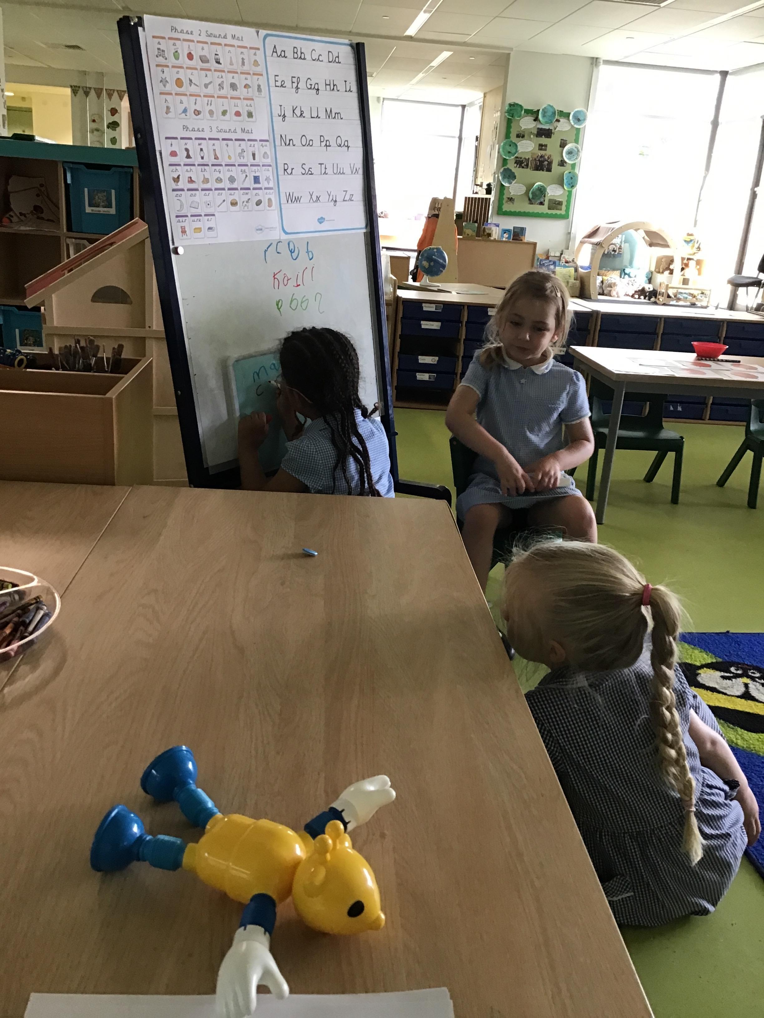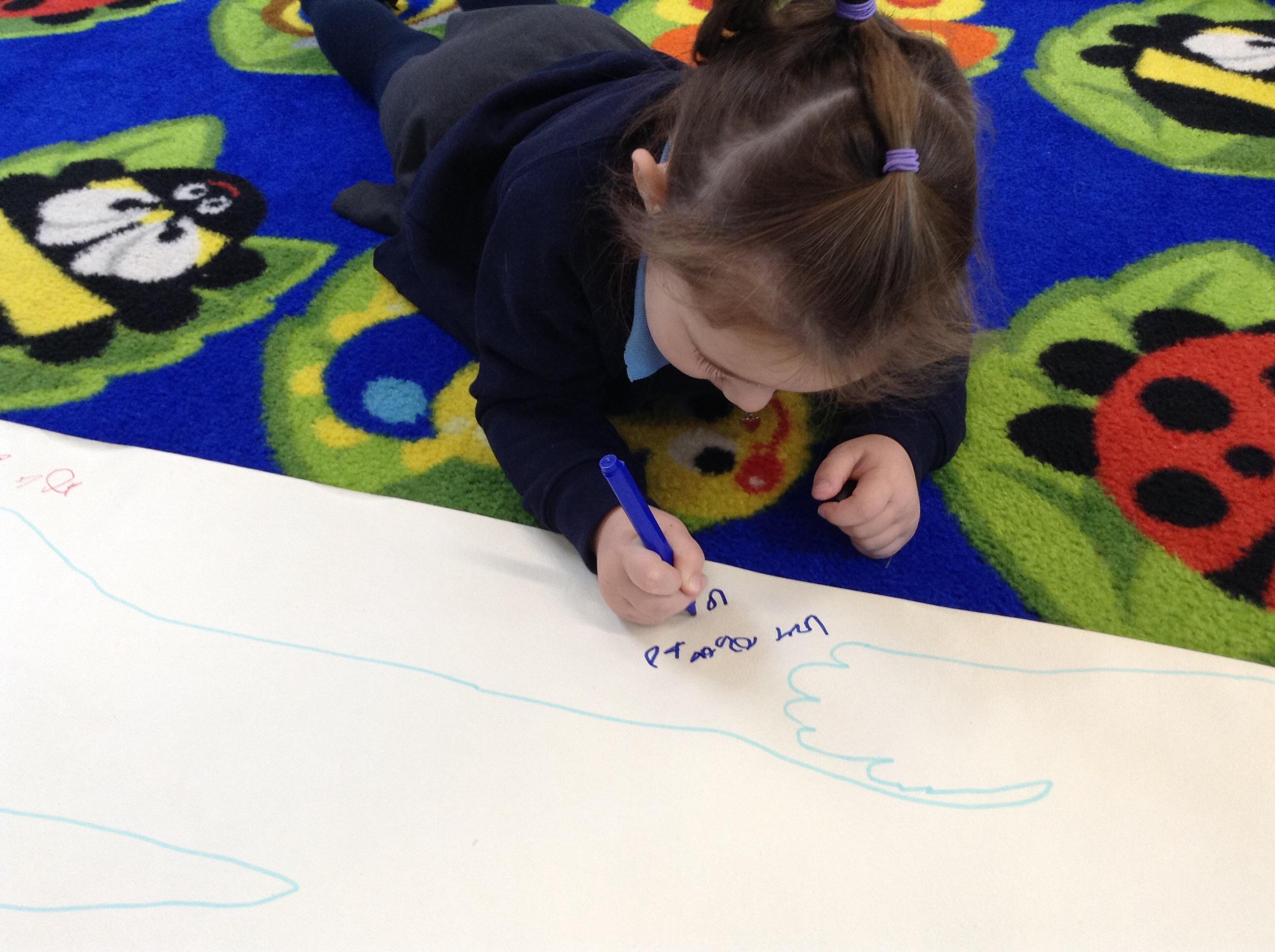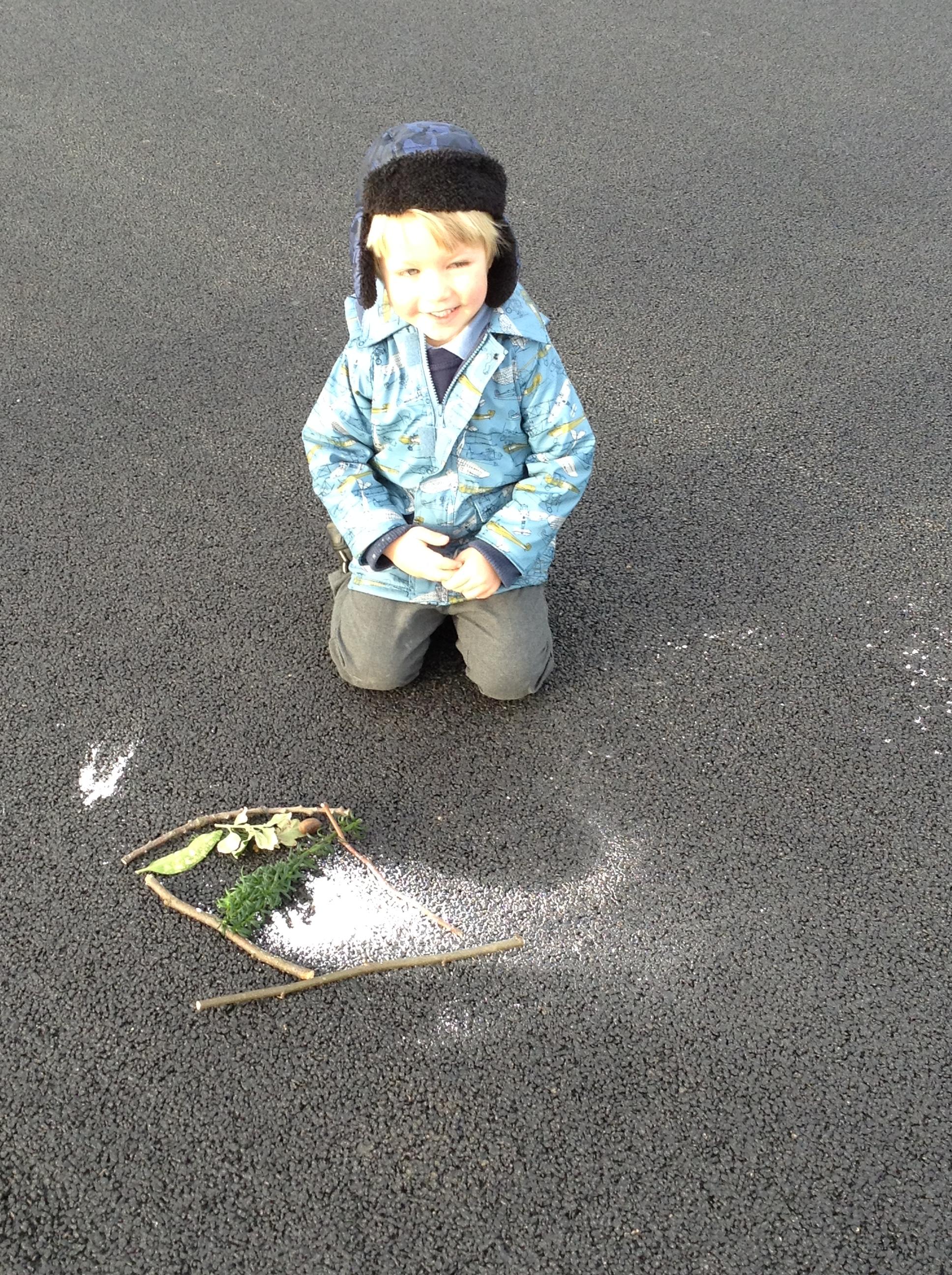 Welcome back after half term, it is so lovely to see the children back at school and hearing about what they have been doing during their week off. The children have settled well into their new school, they have been enjoying exploring their new surroundings and meeting the children in class 2 at playtime, lunchtime and during shared outdoor learning sessions. For Bonfire Night, the children made firework pictures using the touch screen on the laptop and also using glue, salt and different watercolours. They made patterns using firework noises, e.g. bang, whoosh, fizz, bang, whoosh, fizz and then wrote down some of these words onto an outline of a firework. The children have been independently adding together the number of seeds found on two strawberries before writing down the answer, writing signs for our new fruit and vegetable shop role play area and using play-dough to replicate different fireworks. For our outdoor learning this week, the children worked with the children from class 2 to draw around each other's bodies on the playground and then wrote some labels for the different body parts. Next week the children will be learning the sounds r, h, b and f/ff in our phonics sessions. They will also be continuing to practise segmenting and blending sounds for reading and writing.