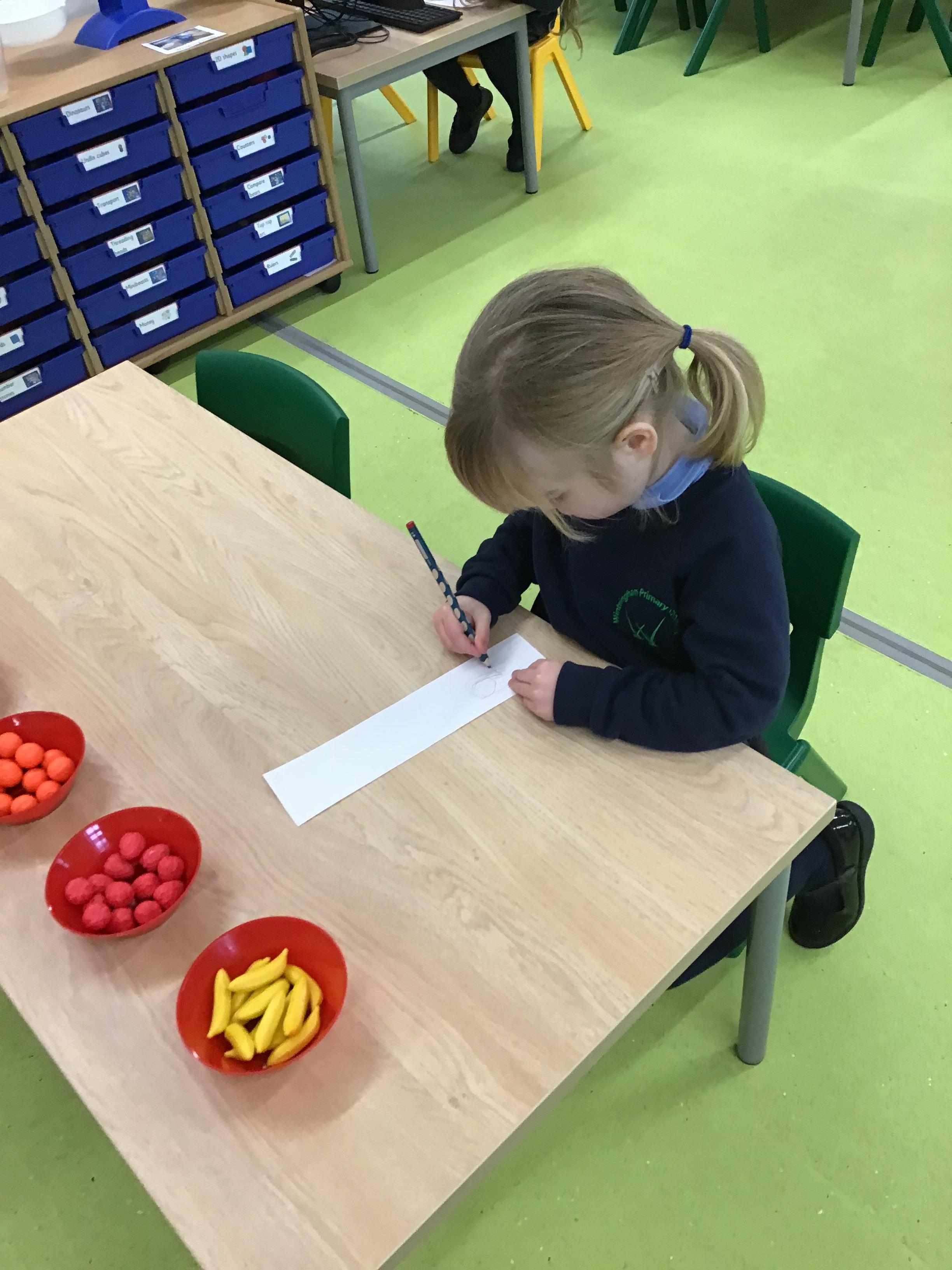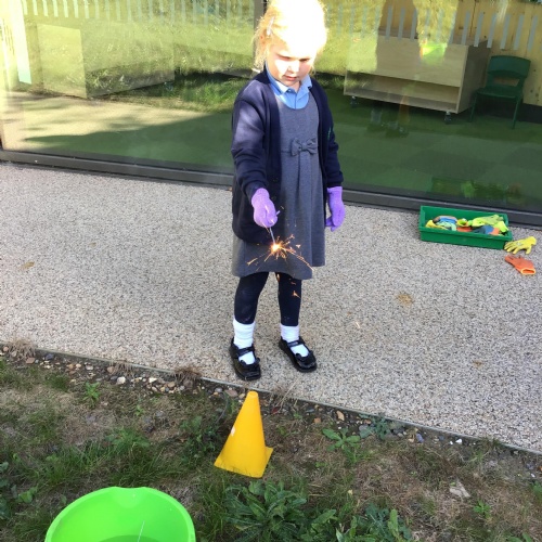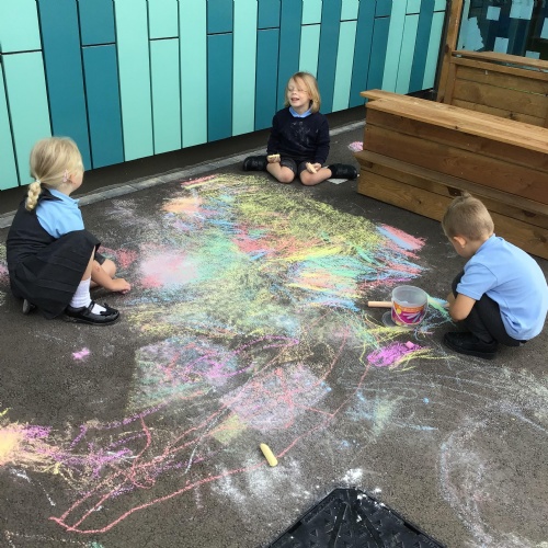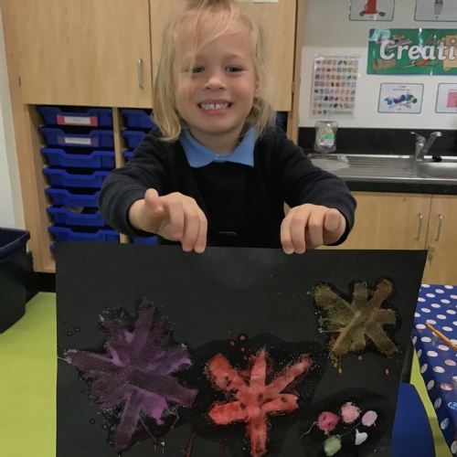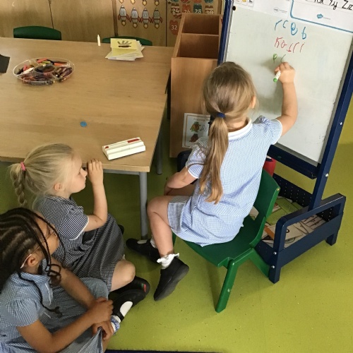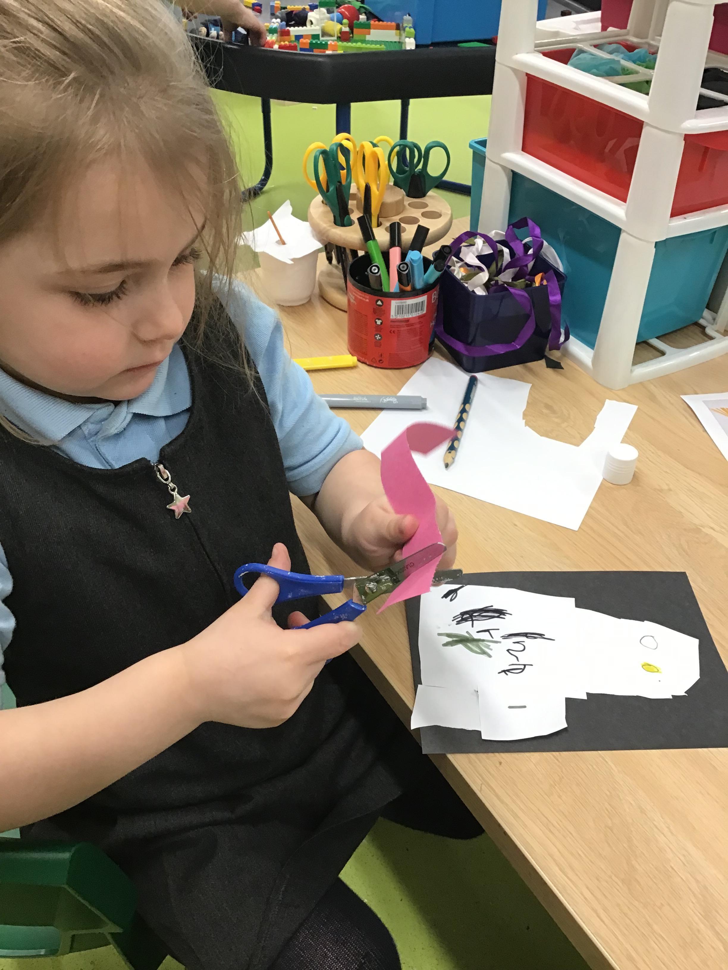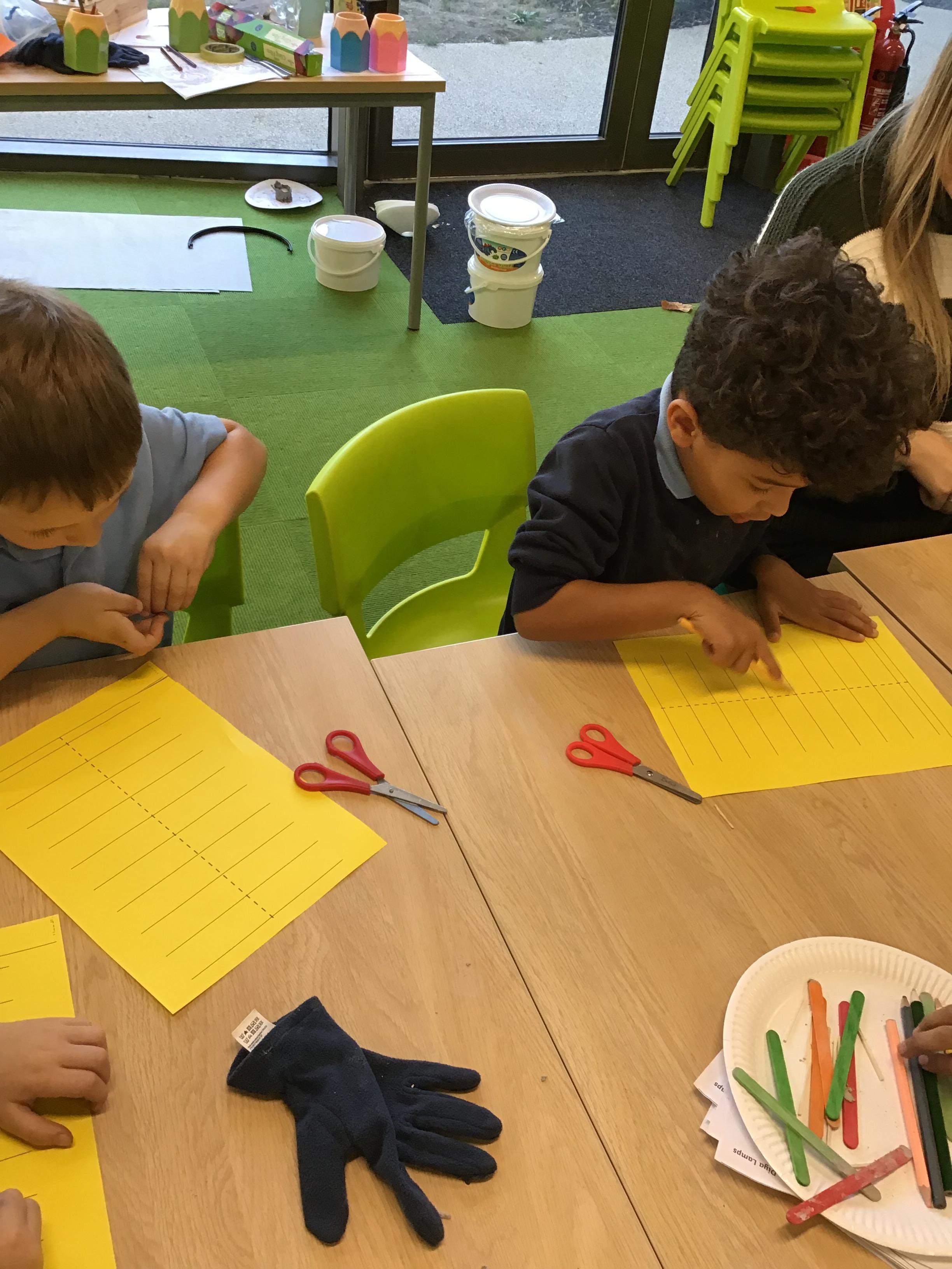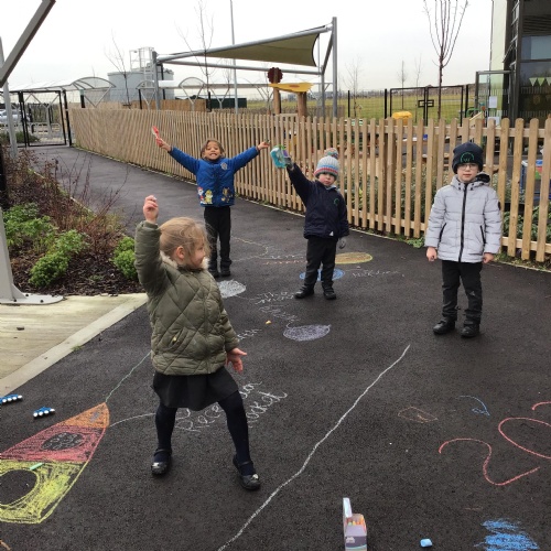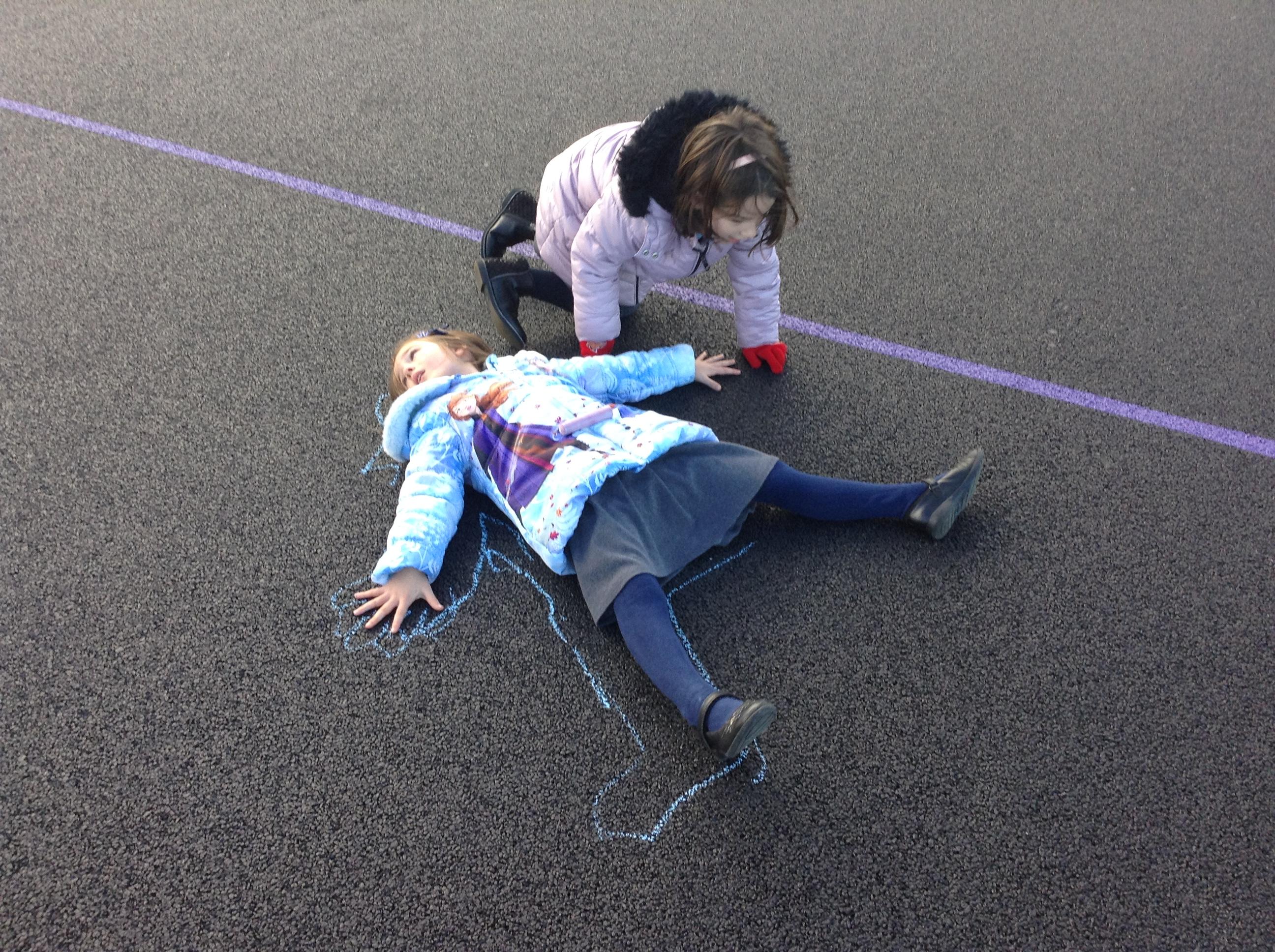 Welcome back after half term, it is so lovely to see the children back at school and hearing about what they have been doing during their week off. The children have settled well into their new school, they have been enjoying exploring their new surroundings and meeting the children in class 2 at playtime, lunchtime and during shared outdoor learning sessions. For Bonfire Night, the children made firework pictures using the touch screen on the laptop and also using glue, salt and different watercolours. They made patterns using firework noises, e.g. bang, whoosh, fizz, bang, whoosh, fizz and then wrote down some of these words onto an outline of a firework. The children have been independently adding together the number of seeds found on two strawberries before writing down the answer, writing signs for our new fruit and vegetable shop role play area and using play-dough to replicate different fireworks. For our outdoor learning this week, the children worked with the children from class 2 to draw around each other's bodies on the playground and then wrote some labels for the different body parts. Next week the children will be learning the sounds r, h, b and f/ff in our phonics sessions. They will also be continuing to practise segmenting and blending sounds for reading and writing.