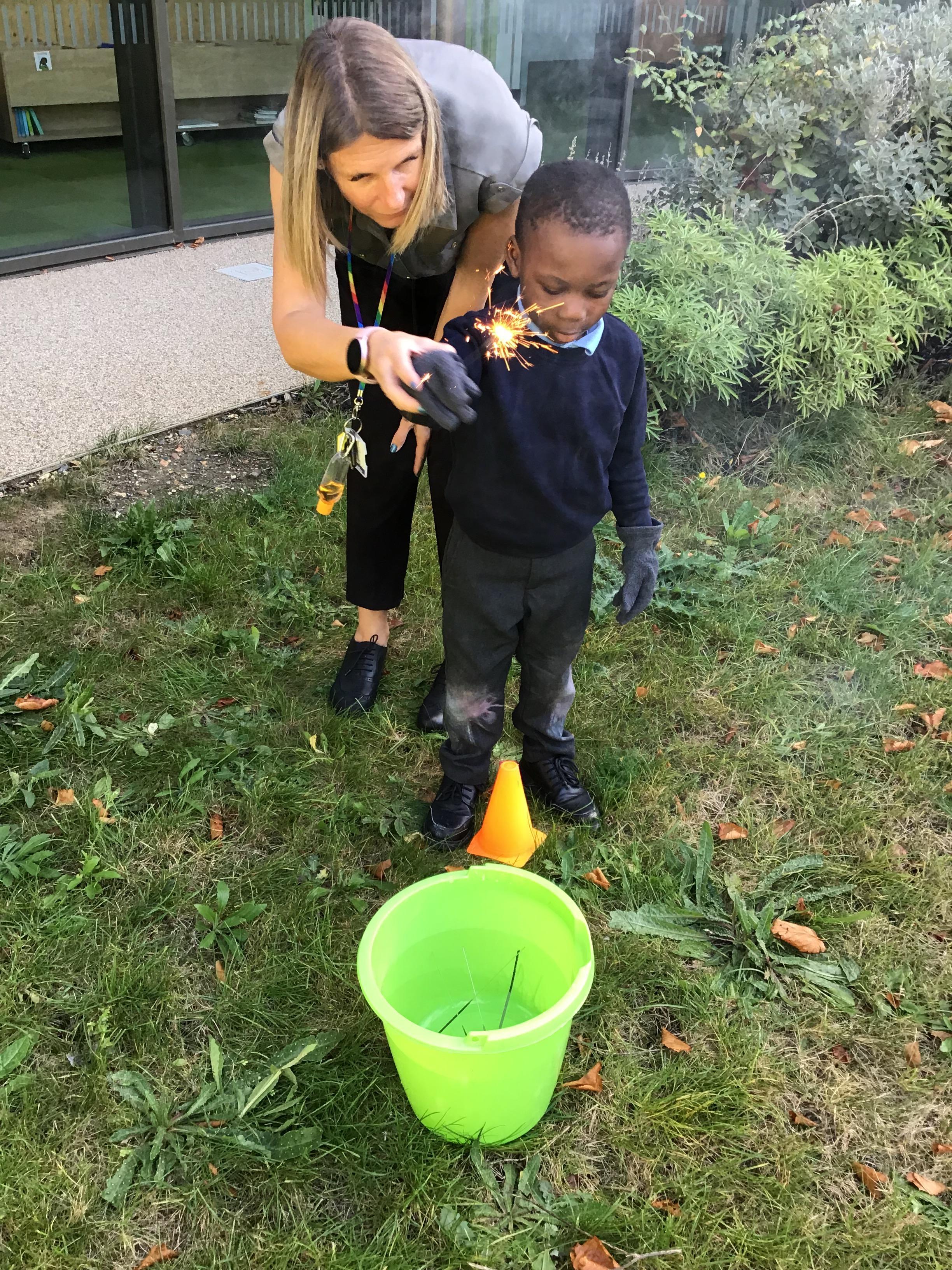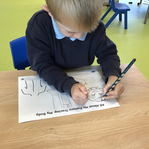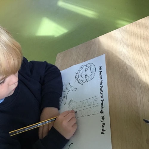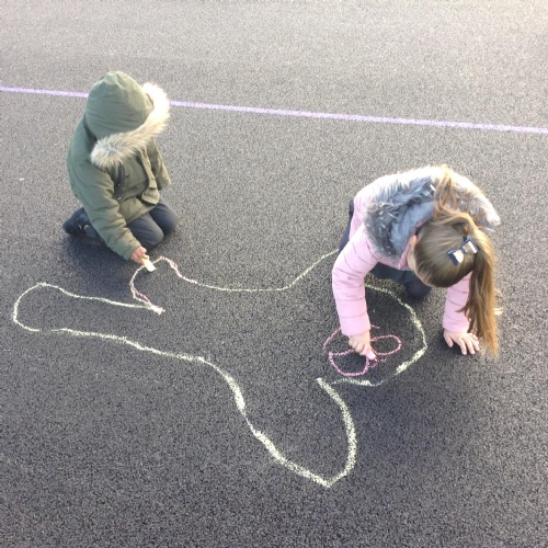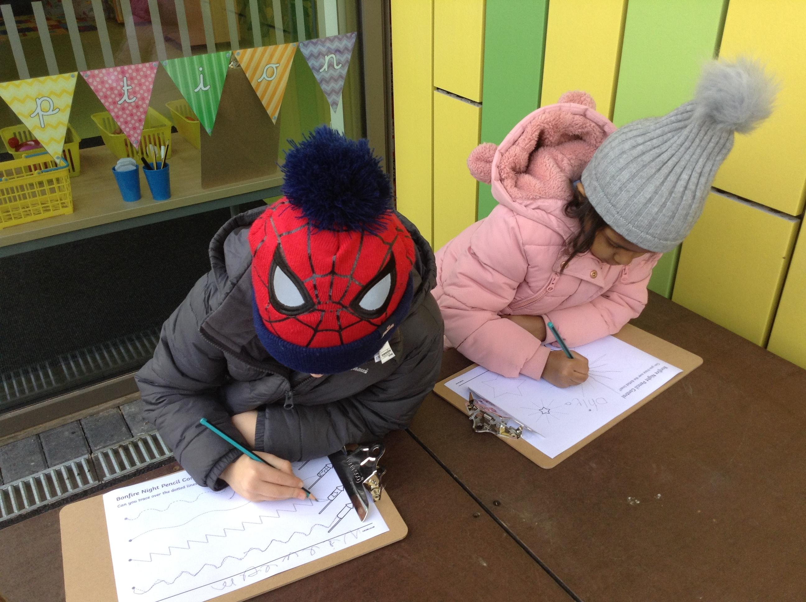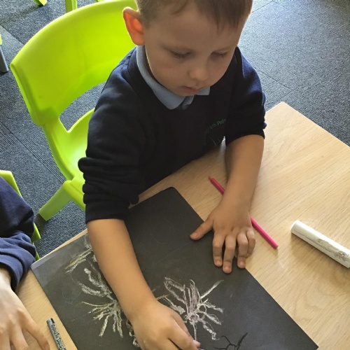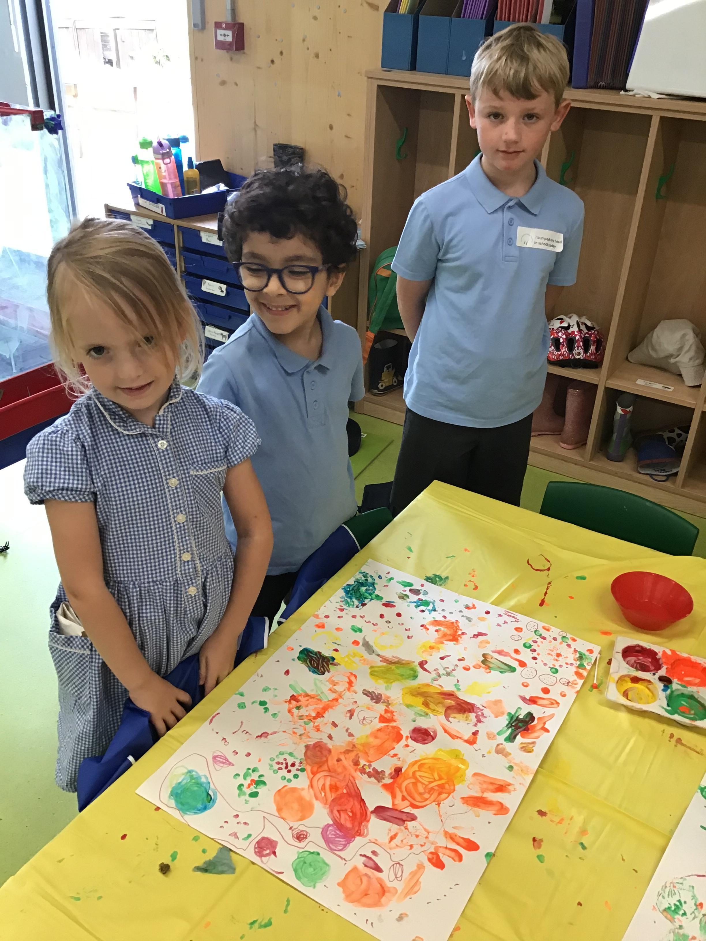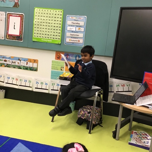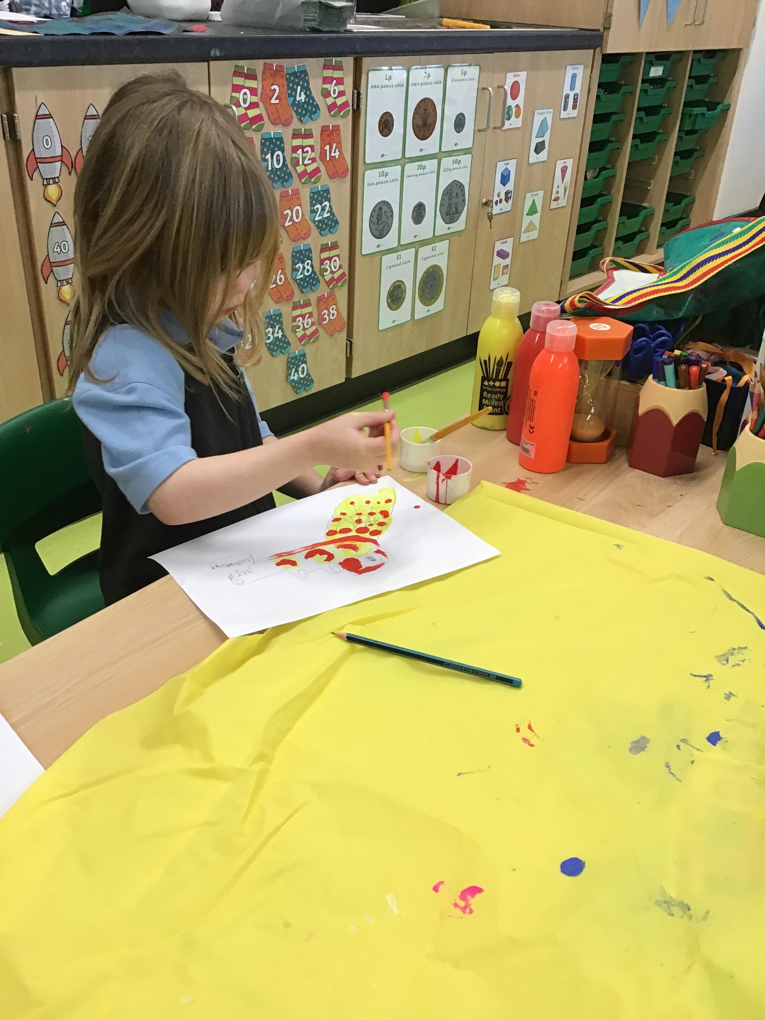 Welcome back after half term, it is so lovely to see the children back at school and hearing about what they have been doing during their week off. The children have settled well into their new school, they have been enjoying exploring their new surroundings and meeting the children in class 2 at playtime, lunchtime and during shared outdoor learning sessions. For Bonfire Night, the children made firework pictures using the touch screen on the laptop and also using glue, salt and different watercolours. They made patterns using firework noises, e.g. bang, whoosh, fizz, bang, whoosh, fizz and then wrote down some of these words onto an outline of a firework. The children have been independently adding together the number of seeds found on two strawberries before writing down the answer, writing signs for our new fruit and vegetable shop role play area and using play-dough to replicate different fireworks. For our outdoor learning this week, the children worked with the children from class 2 to draw around each other's bodies on the playground and then wrote some labels for the different body parts. Next week the children will be learning the sounds r, h, b and f/ff in our phonics sessions. They will also be continuing to practise segmenting and blending sounds for reading and writing.