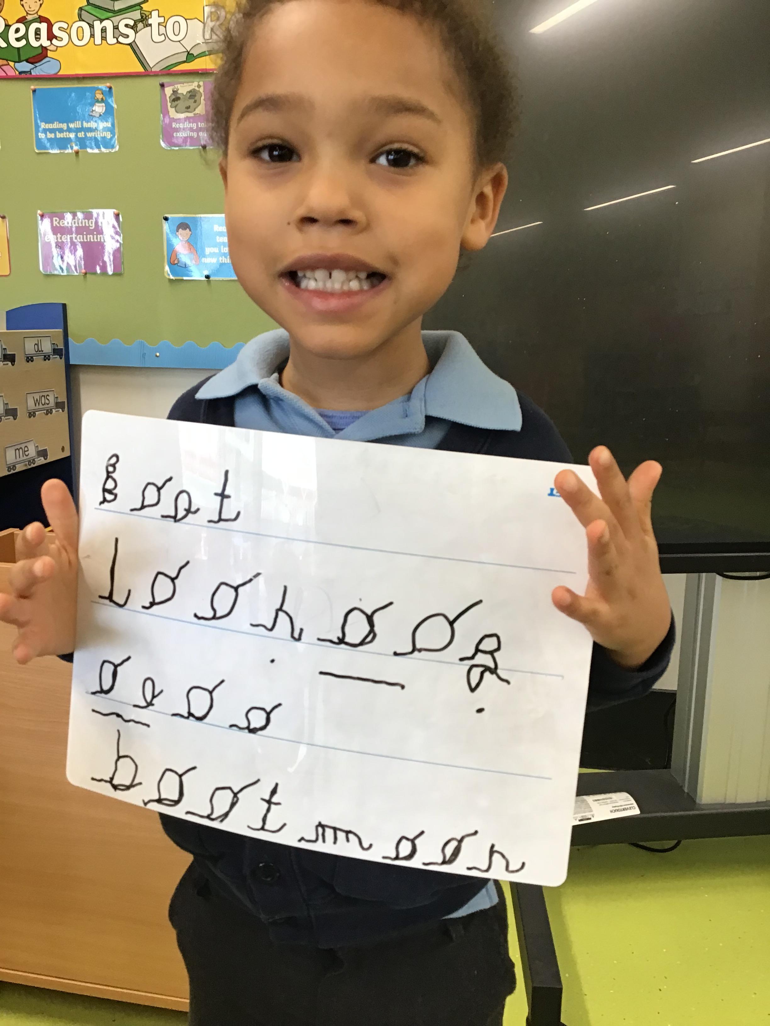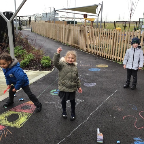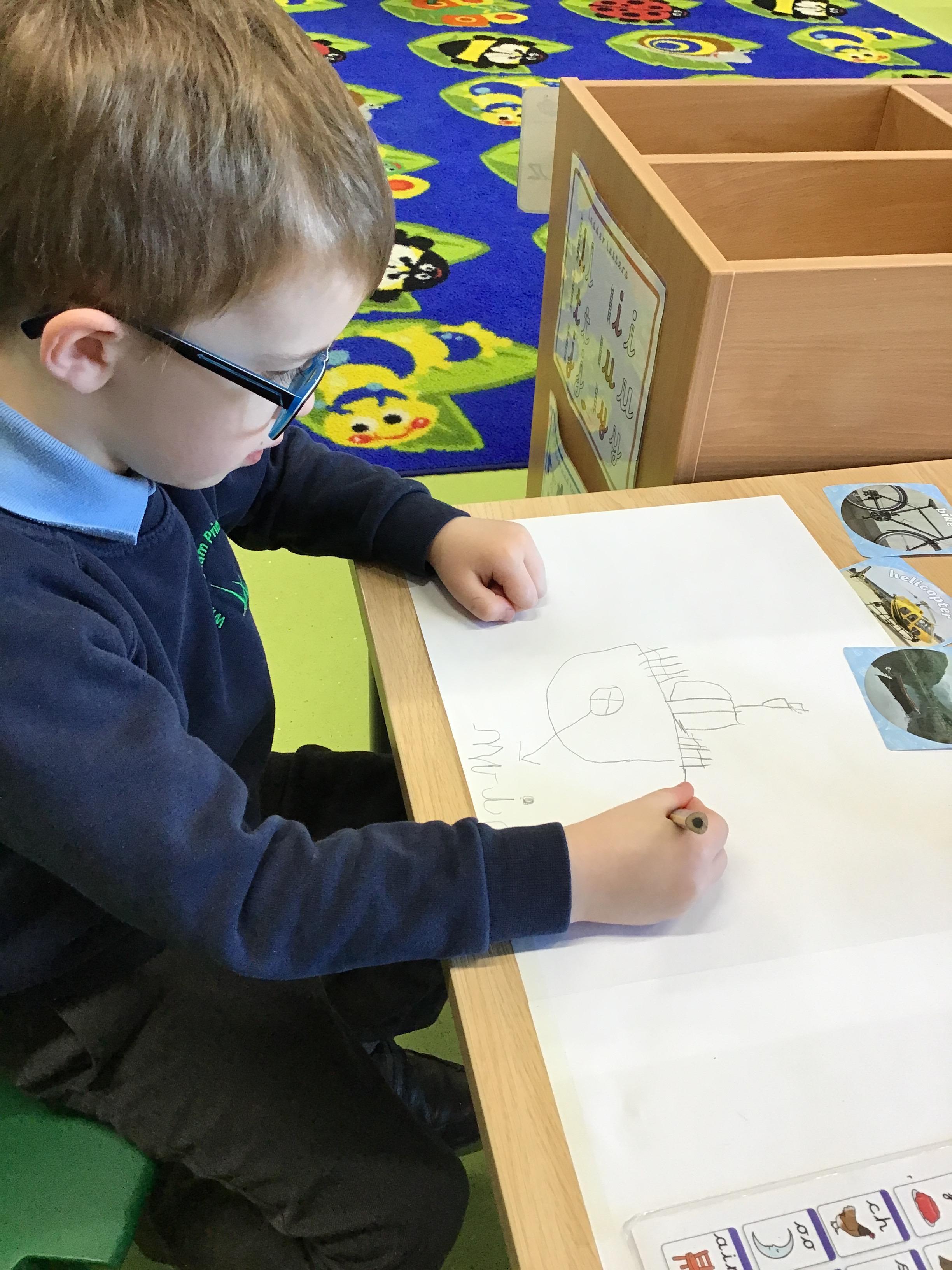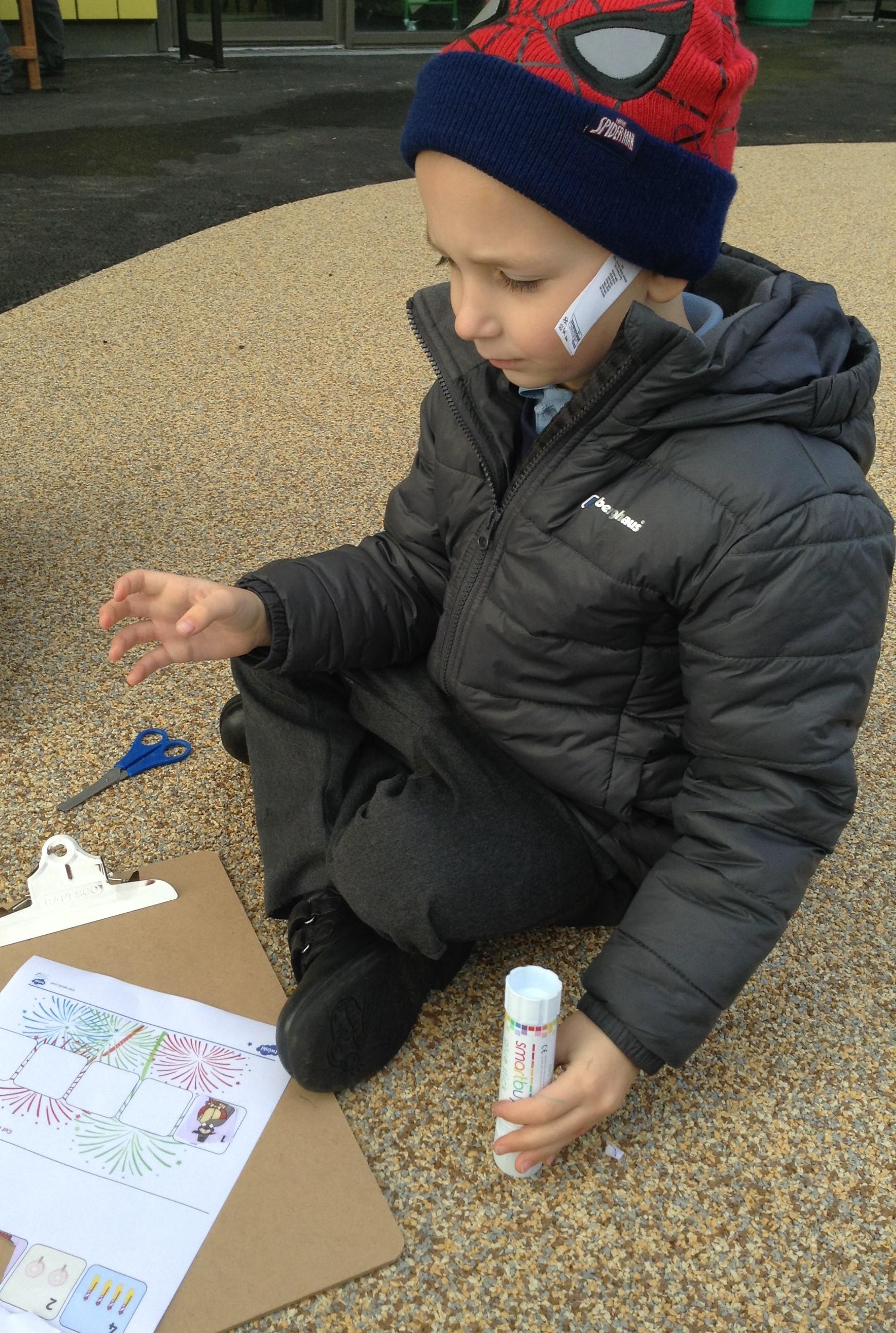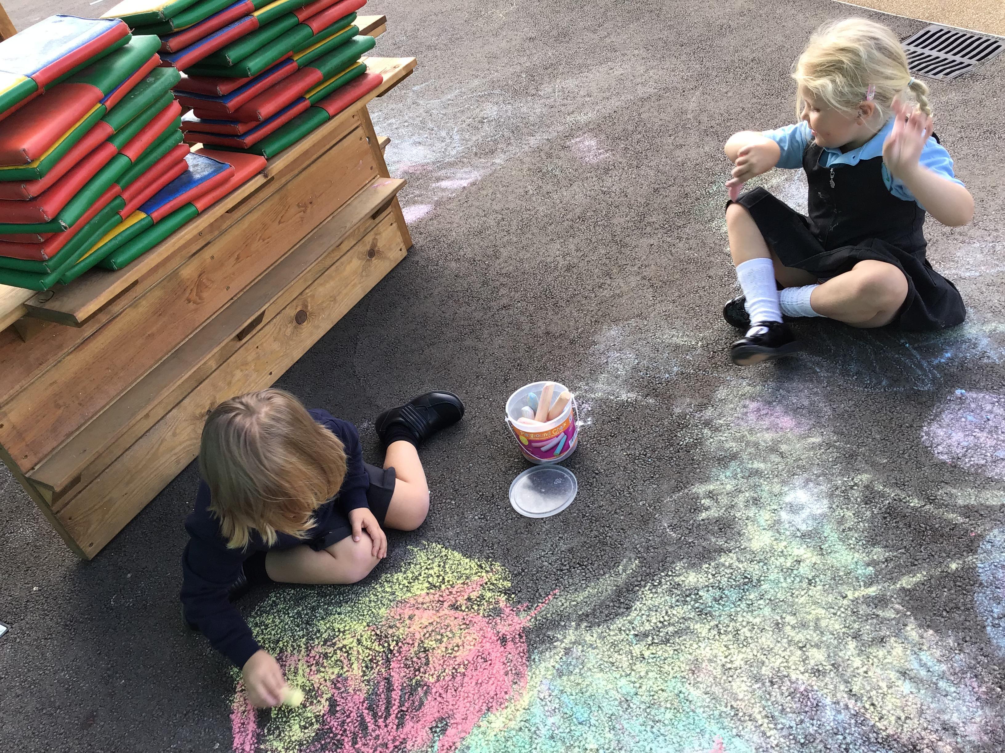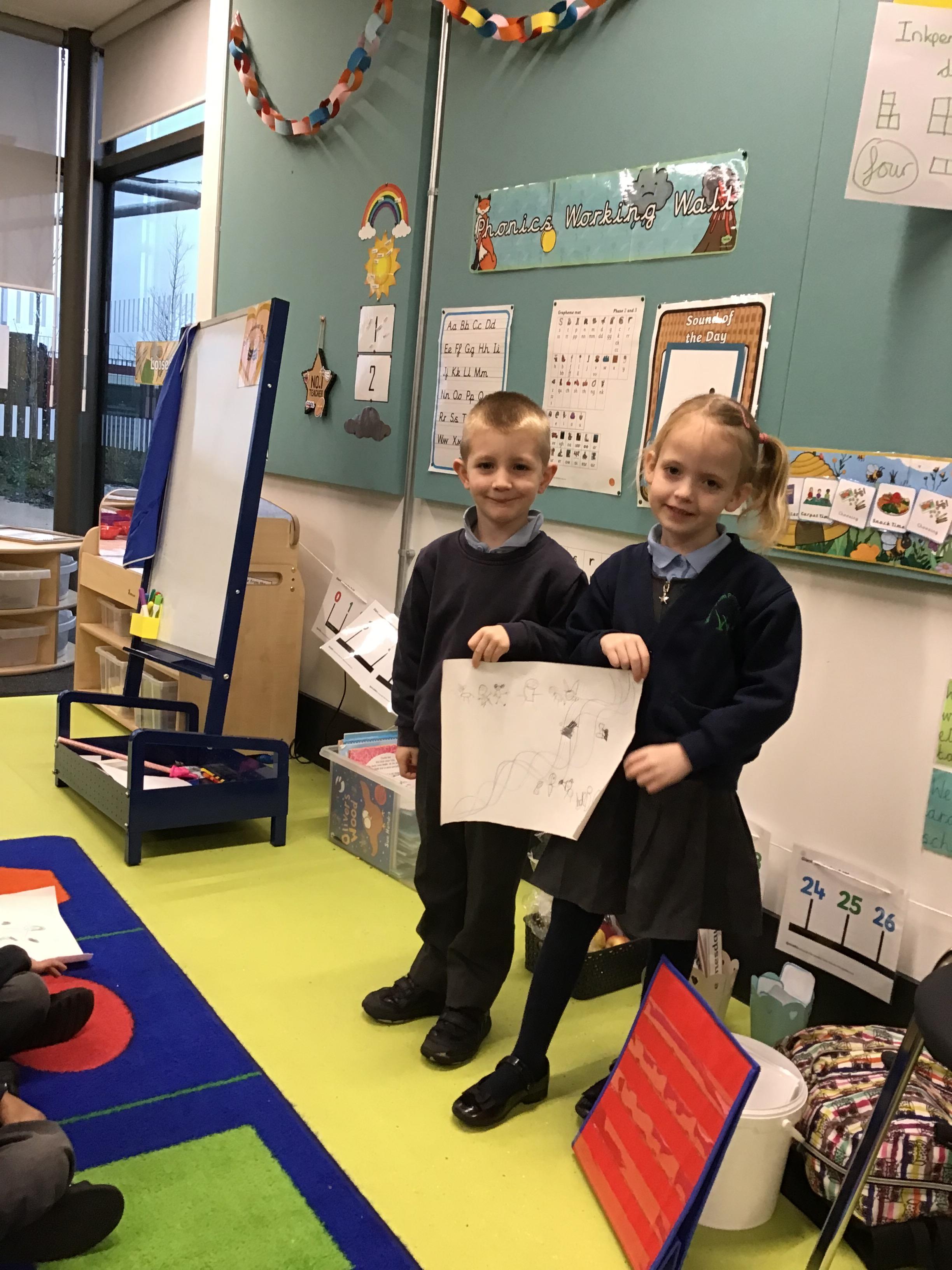 Welcome back after half term, it is so lovely to see the children back at school and hearing about what they have been doing during their week off. The children have settled well into their new school, they have been enjoying exploring their new surroundings and meeting the children in class 2 at playtime, lunchtime and during shared outdoor learning sessions. For Bonfire Night, the children made firework pictures using the touch screen on the laptop and also using glue, salt and different watercolours. They made patterns using firework noises, e.g. bang, whoosh, fizz, bang, whoosh, fizz and then wrote down some of these words onto an outline of a firework. The children have been independently adding together the number of seeds found on two strawberries before writing down the answer, writing signs for our new fruit and vegetable shop role play area and using play-dough to replicate different fireworks. For our outdoor learning this week, the children worked with the children from class 2 to draw around each other's bodies on the playground and then wrote some labels for the different body parts. Next week the children will be learning the sounds r, h, b and f/ff in our phonics sessions. They will also be continuing to practise segmenting and blending sounds for reading and writing.