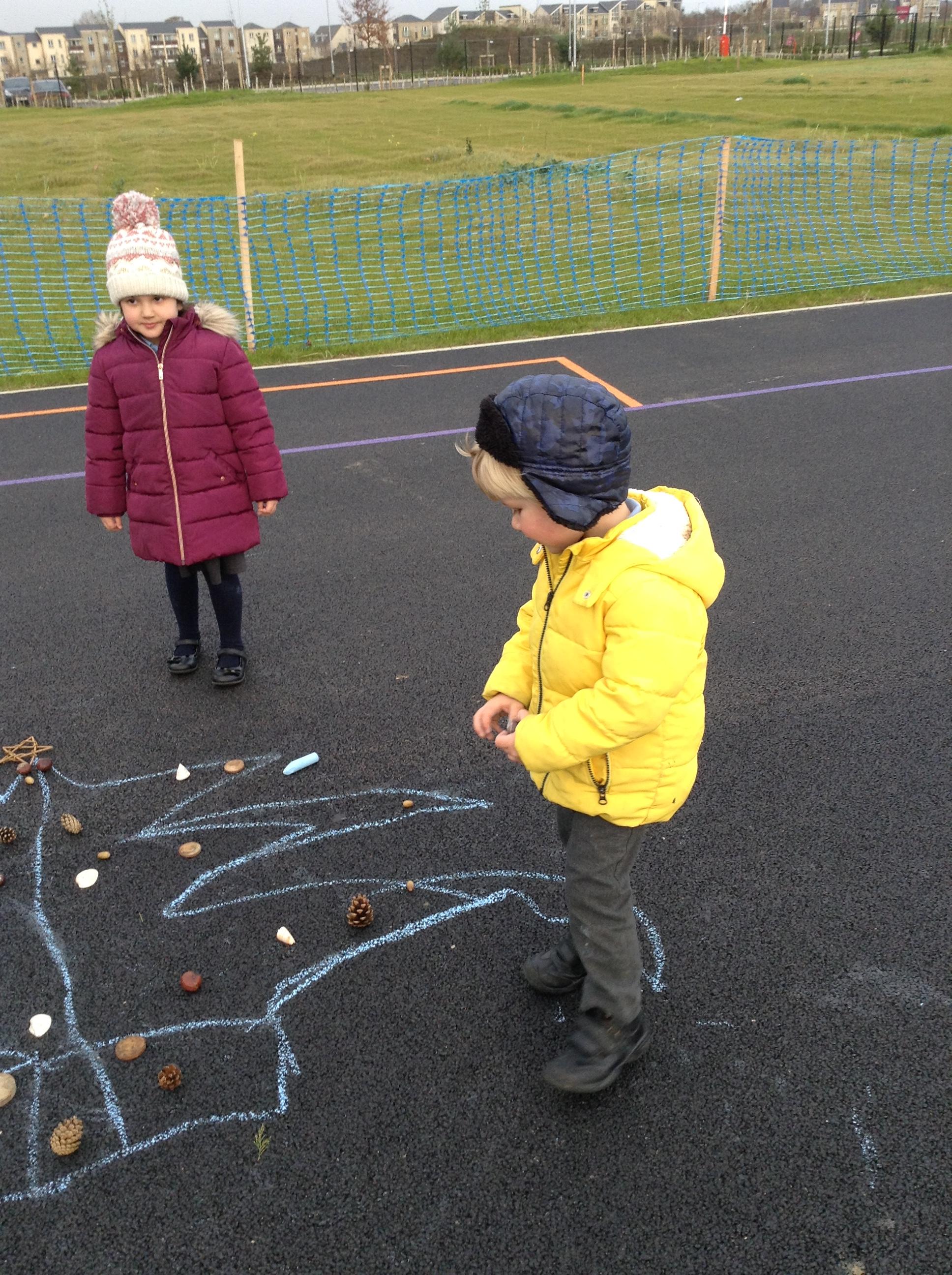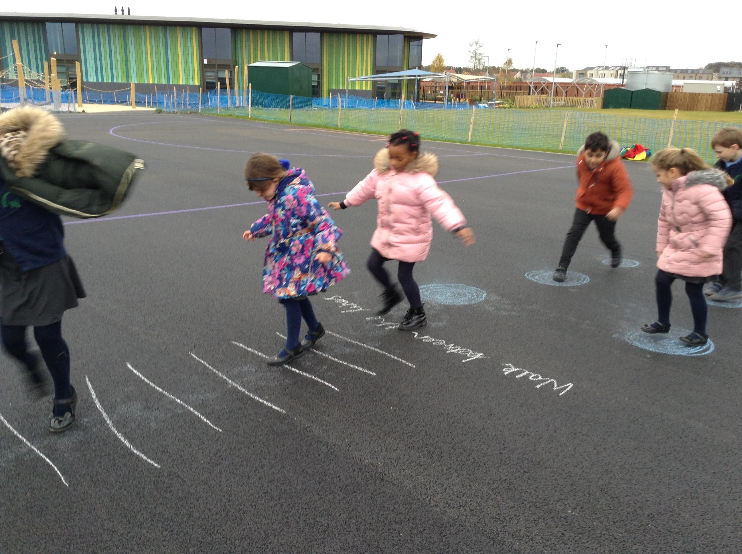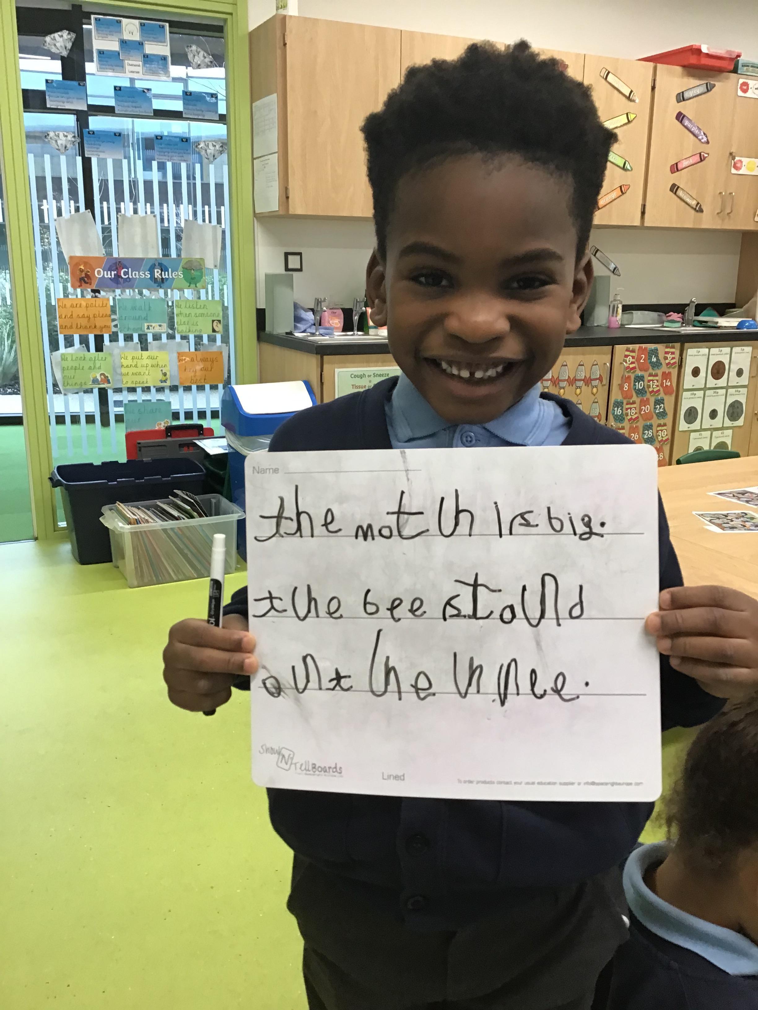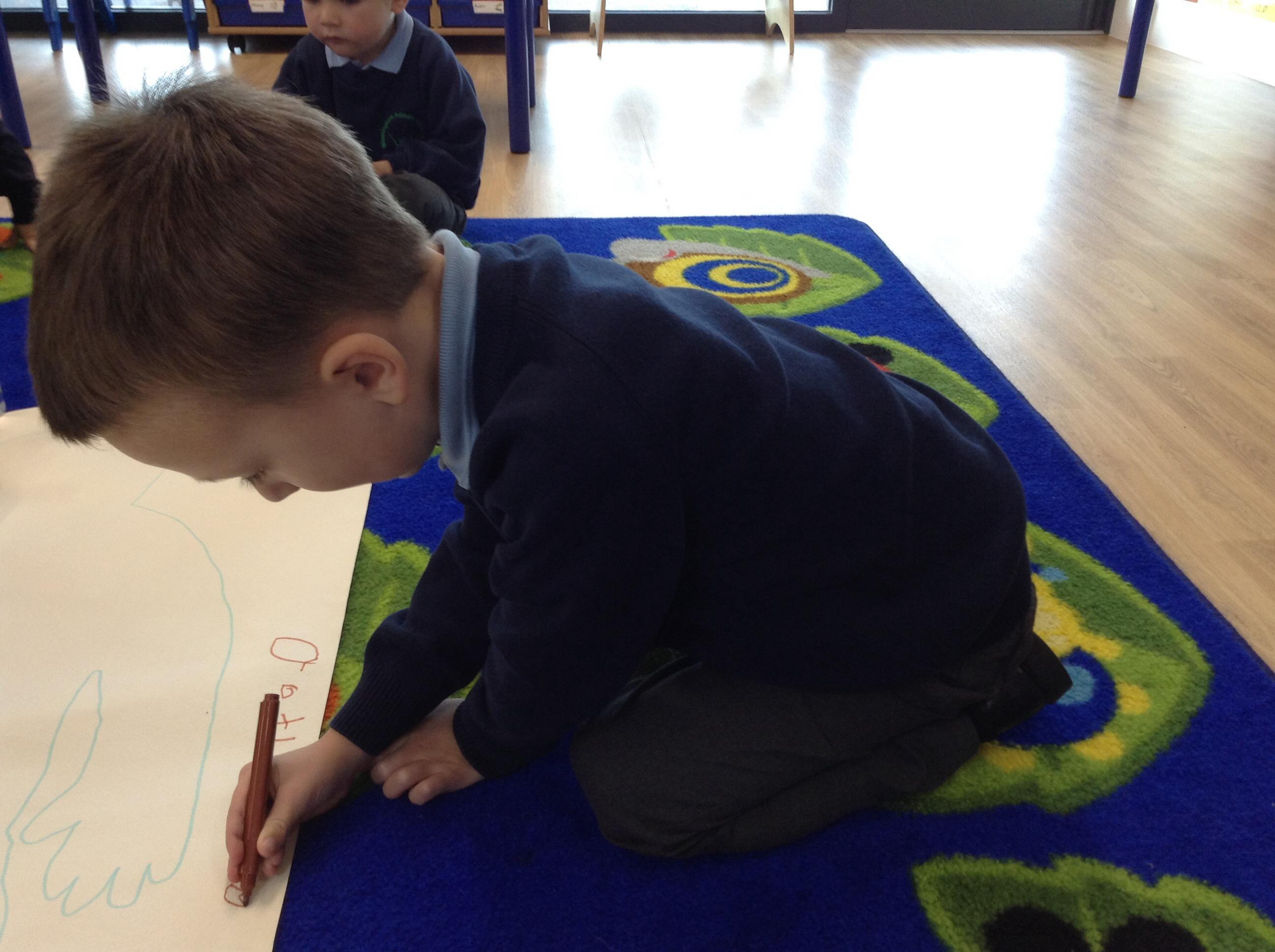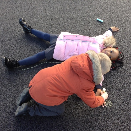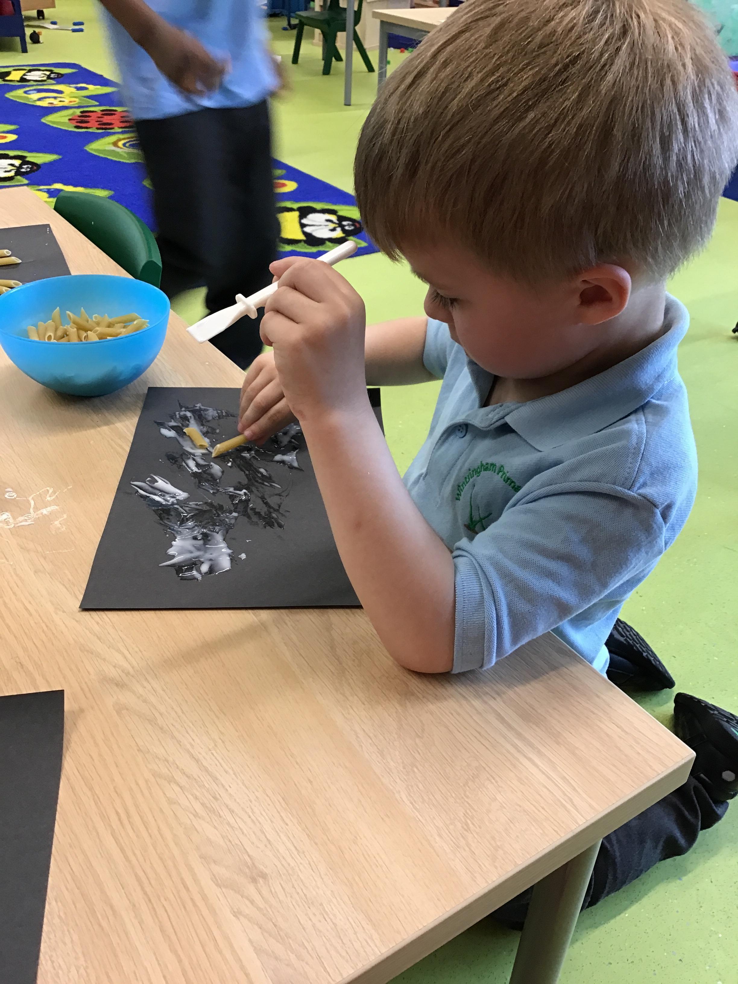 Welcome back after half term, it is so lovely to see the children back at school and hearing about what they have been doing during their week off. The children have settled well into their new school, they have been enjoying exploring their new surroundings and meeting the children in class 2 at playtime, lunchtime and during shared outdoor learning sessions. For Bonfire Night, the children made firework pictures using the touch screen on the laptop and also using glue, salt and different watercolours. They made patterns using firework noises, e.g. bang, whoosh, fizz, bang, whoosh, fizz and then wrote down some of these words onto an outline of a firework. The children have been independently adding together the number of seeds found on two strawberries before writing down the answer, writing signs for our new fruit and vegetable shop role play area and using play-dough to replicate different fireworks. For our outdoor learning this week, the children worked with the children from class 2 to draw around each other's bodies on the playground and then wrote some labels for the different body parts. Next week the children will be learning the sounds r, h, b and f/ff in our phonics sessions. They will also be continuing to practise segmenting and blending sounds for reading and writing.