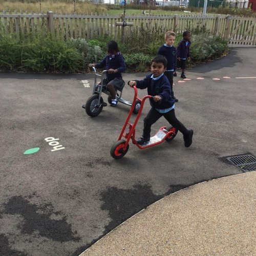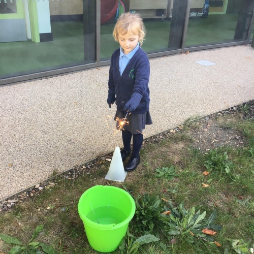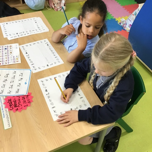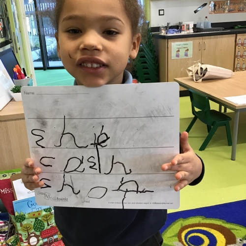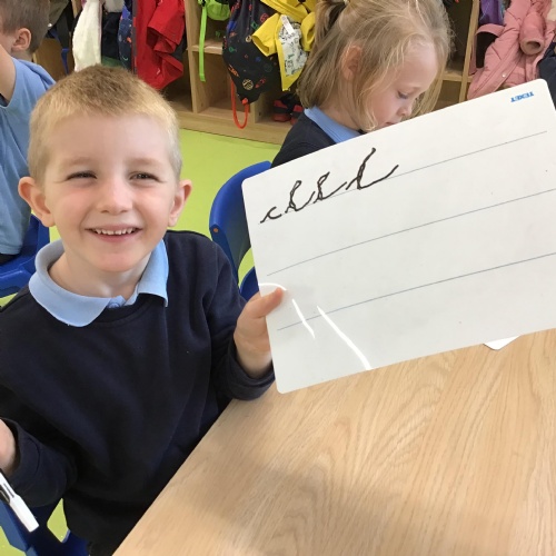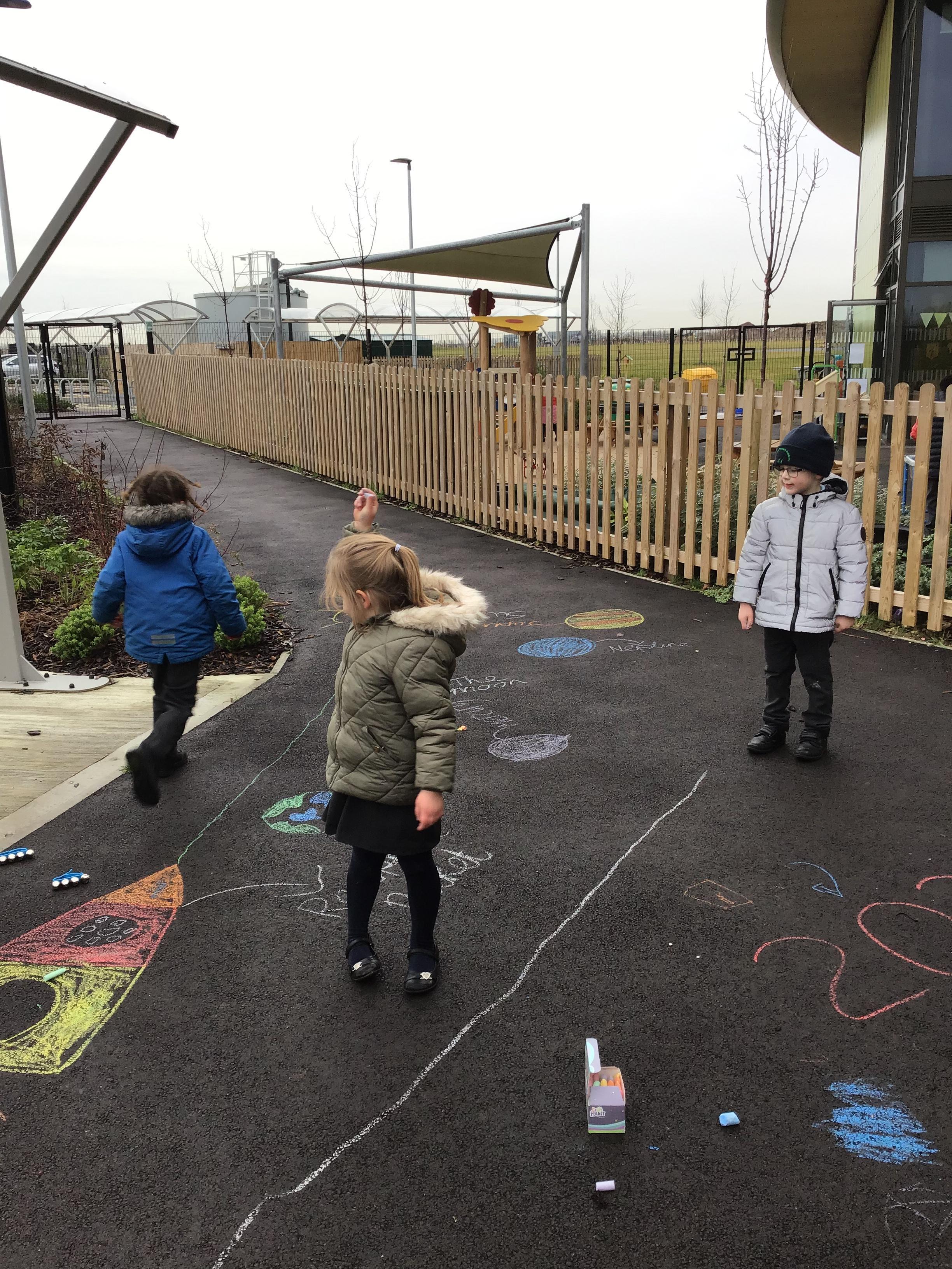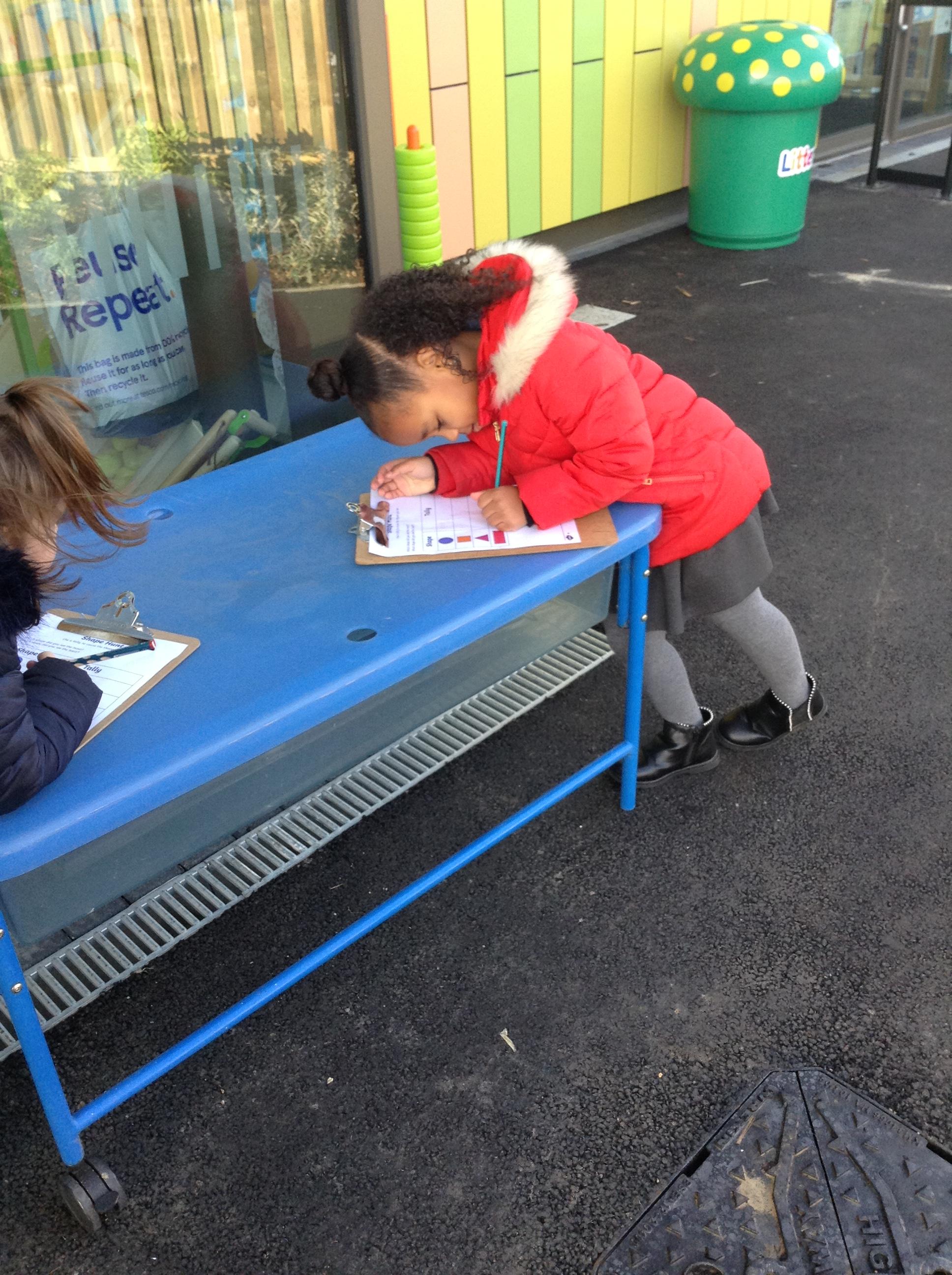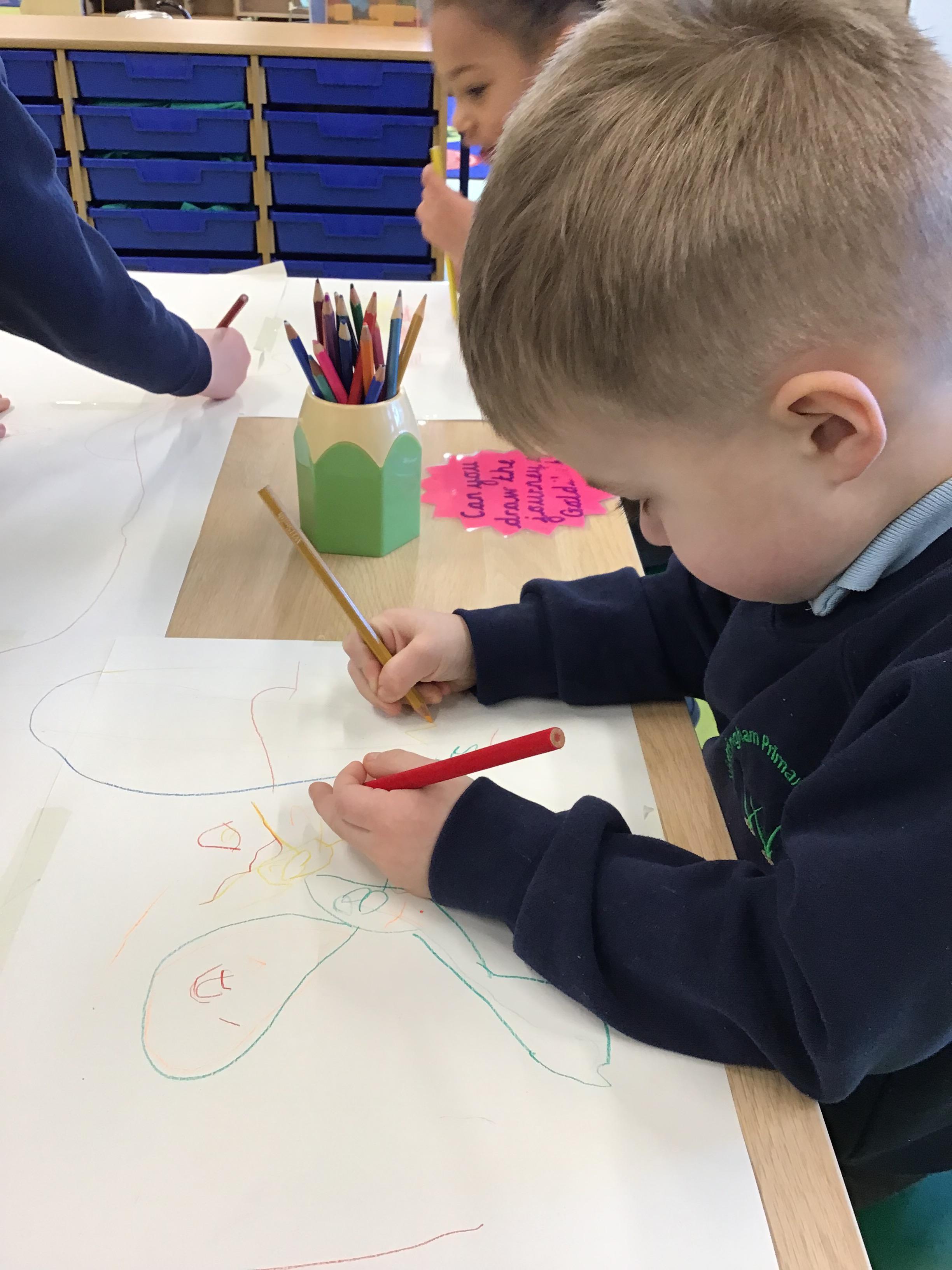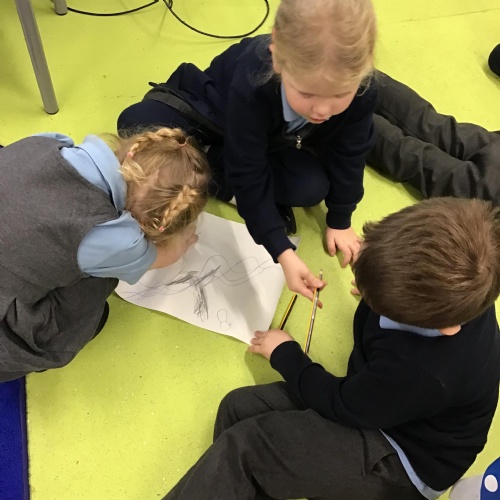 Welcome back after half term, it is so lovely to see the children back at school and hearing about what they have been doing during their week off. The children have settled well into their new school, they have been enjoying exploring their new surroundings and meeting the children in class 2 at playtime, lunchtime and during shared outdoor learning sessions. For Bonfire Night, the children made firework pictures using the touch screen on the laptop and also using glue, salt and different watercolours. They made patterns using firework noises, e.g. bang, whoosh, fizz, bang, whoosh, fizz and then wrote down some of these words onto an outline of a firework. The children have been independently adding together the number of seeds found on two strawberries before writing down the answer, writing signs for our new fruit and vegetable shop role play area and using play-dough to replicate different fireworks. For our outdoor learning this week, the children worked with the children from class 2 to draw around each other's bodies on the playground and then wrote some labels for the different body parts. Next week the children will be learning the sounds r, h, b and f/ff in our phonics sessions. They will also be continuing to practise segmenting and blending sounds for reading and writing.