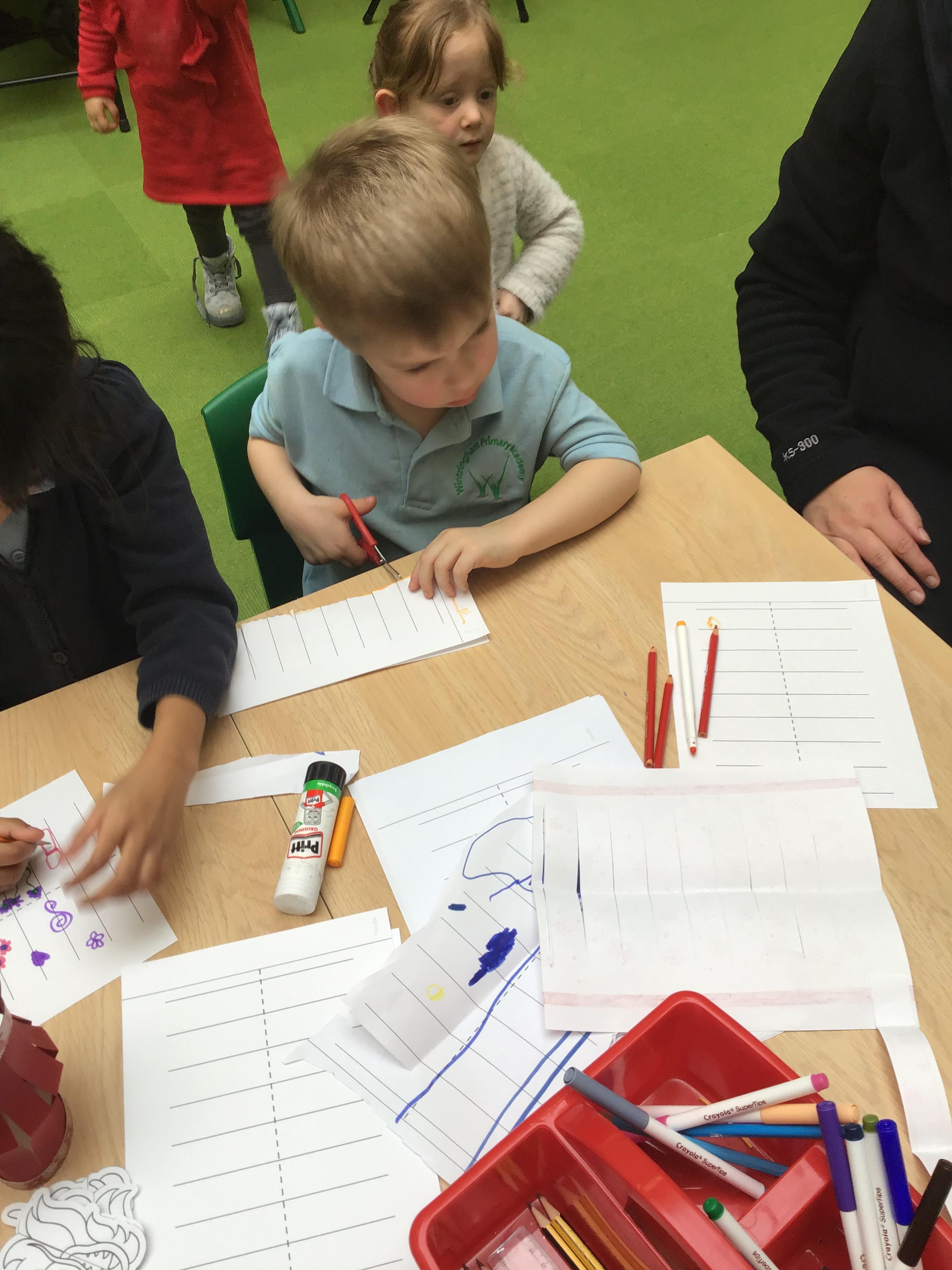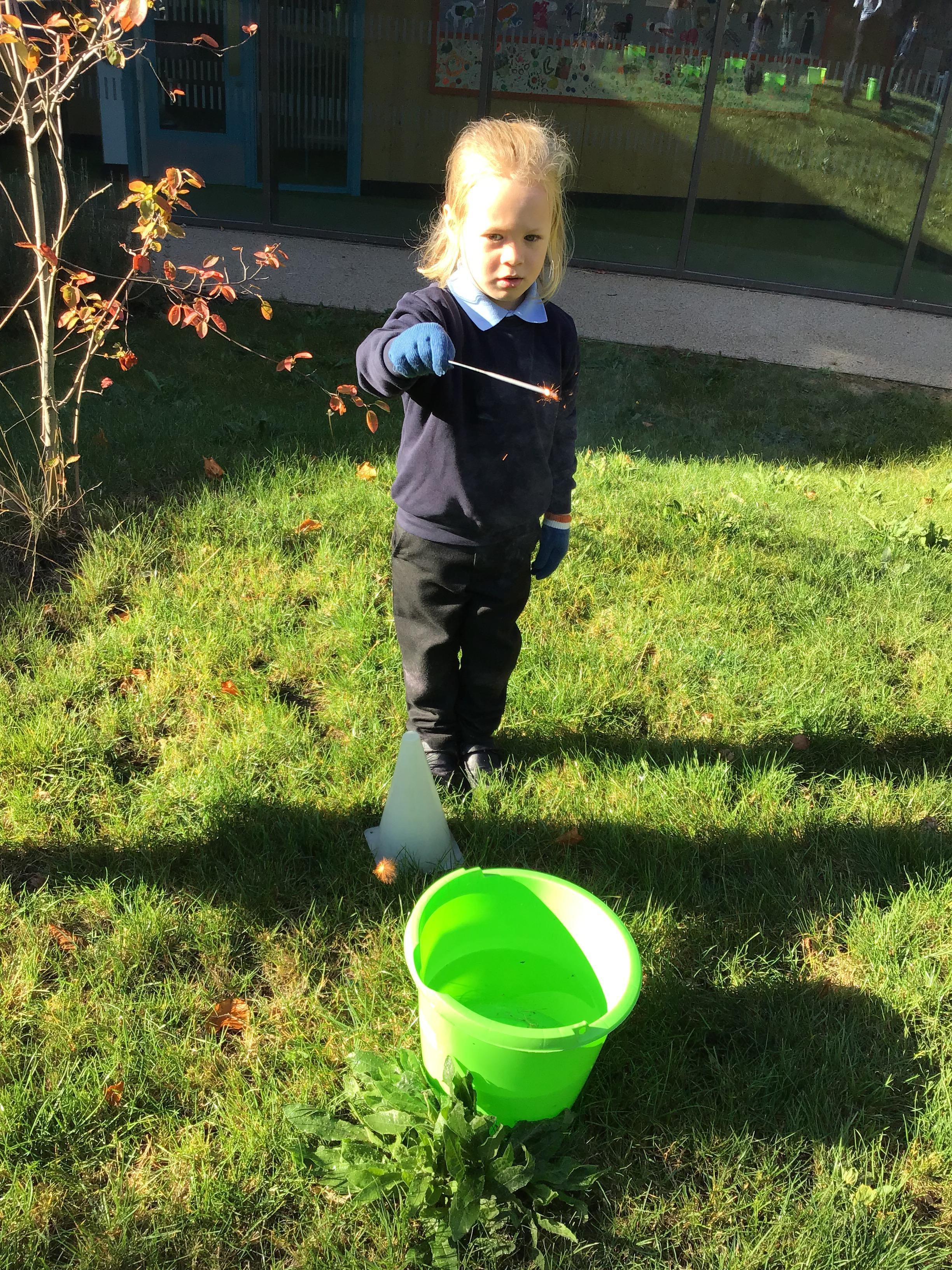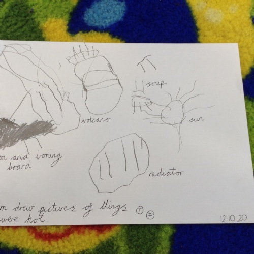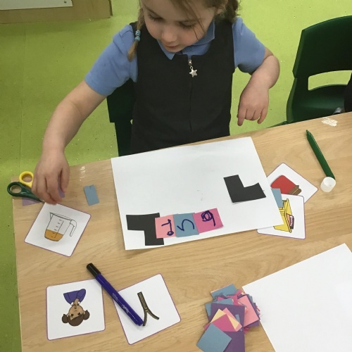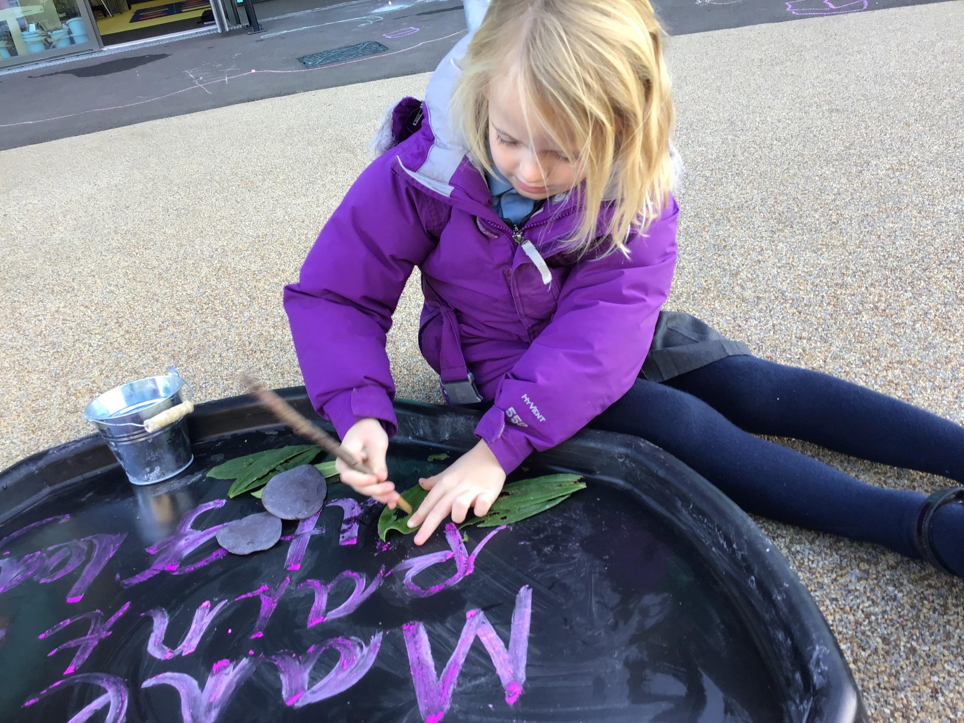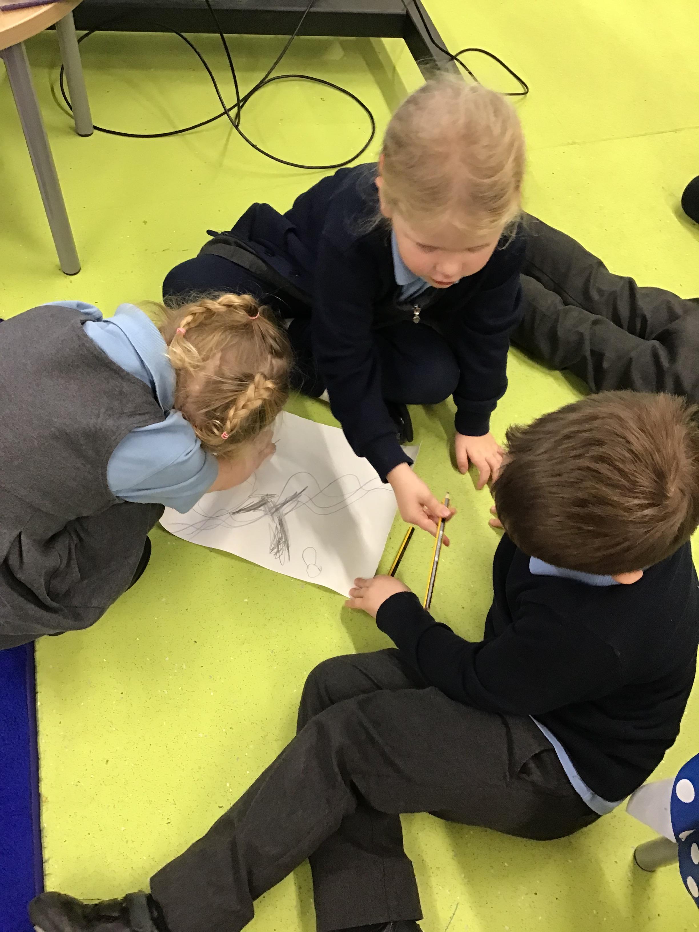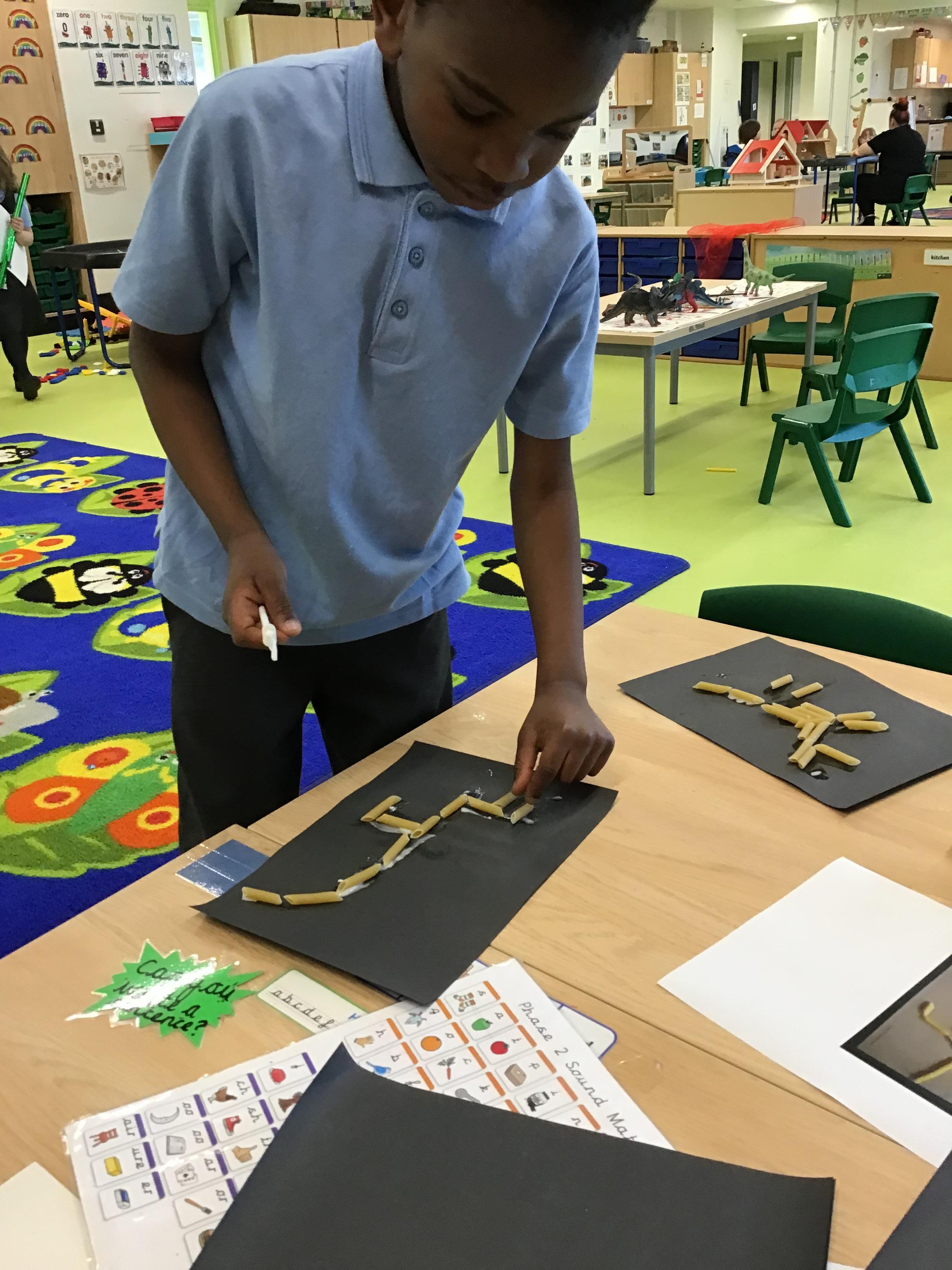 Welcome back after half term, it is so lovely to see the children back at school and hearing about what they have been doing during their week off. The children have settled well into their new school, they have been enjoying exploring their new surroundings and meeting the children in class 2 at playtime, lunchtime and during shared outdoor learning sessions. For Bonfire Night, the children made firework pictures using the touch screen on the laptop and also using glue, salt and different watercolours. They made patterns using firework noises, e.g. bang, whoosh, fizz, bang, whoosh, fizz and then wrote down some of these words onto an outline of a firework. The children have been independently adding together the number of seeds found on two strawberries before writing down the answer, writing signs for our new fruit and vegetable shop role play area and using play-dough to replicate different fireworks. For our outdoor learning this week, the children worked with the children from class 2 to draw around each other's bodies on the playground and then wrote some labels for the different body parts. Next week the children will be learning the sounds r, h, b and f/ff in our phonics sessions. They will also be continuing to practise segmenting and blending sounds for reading and writing.