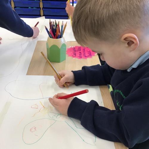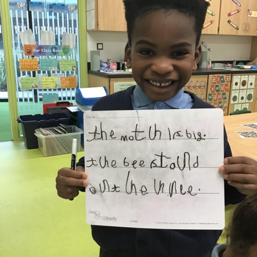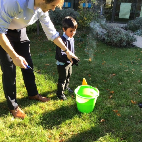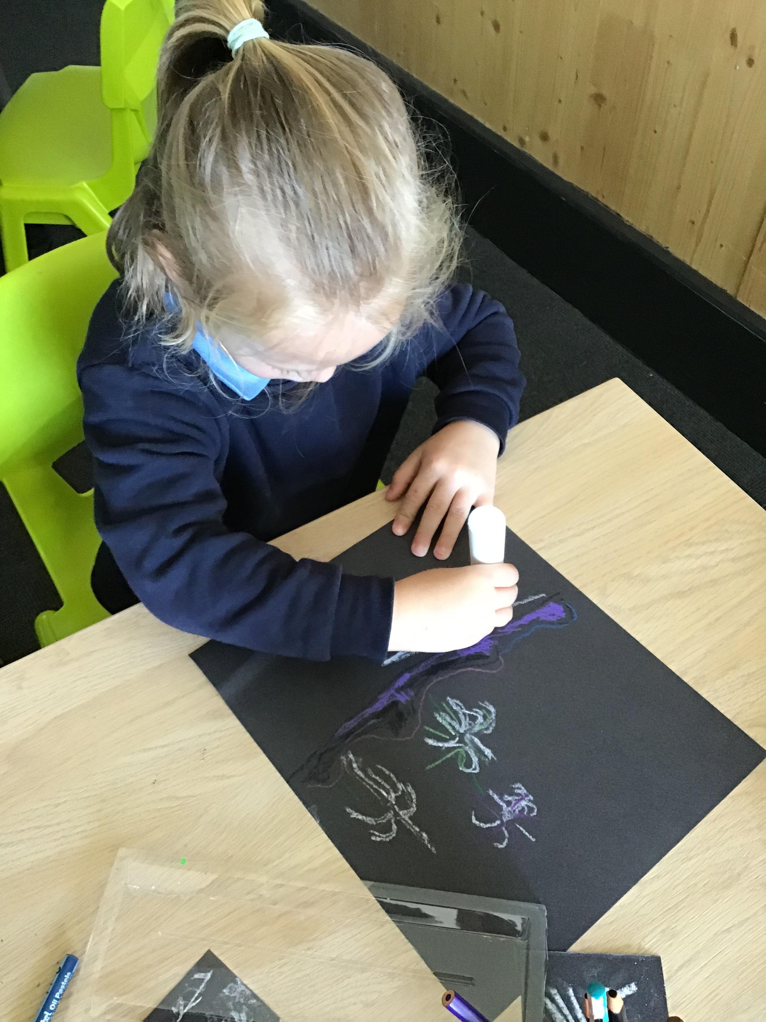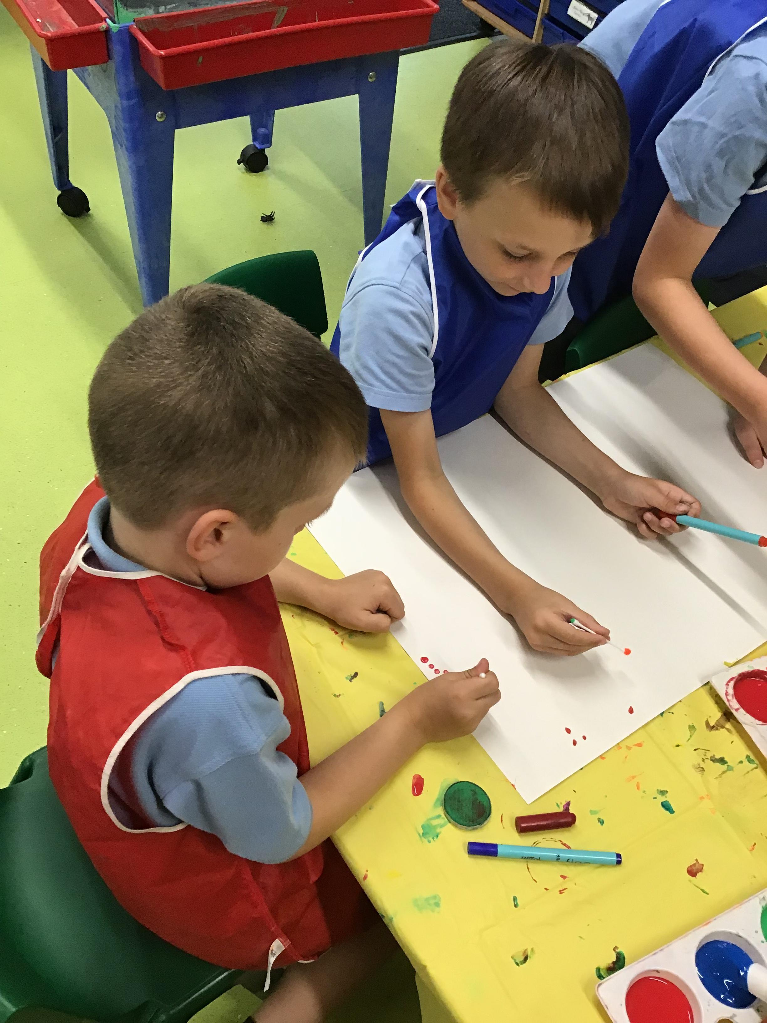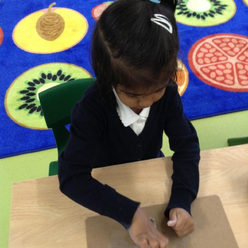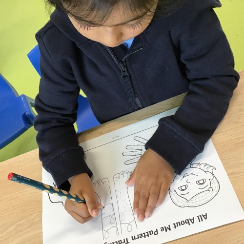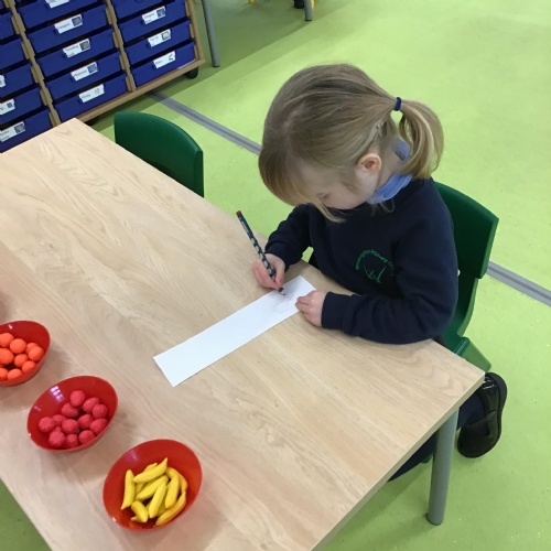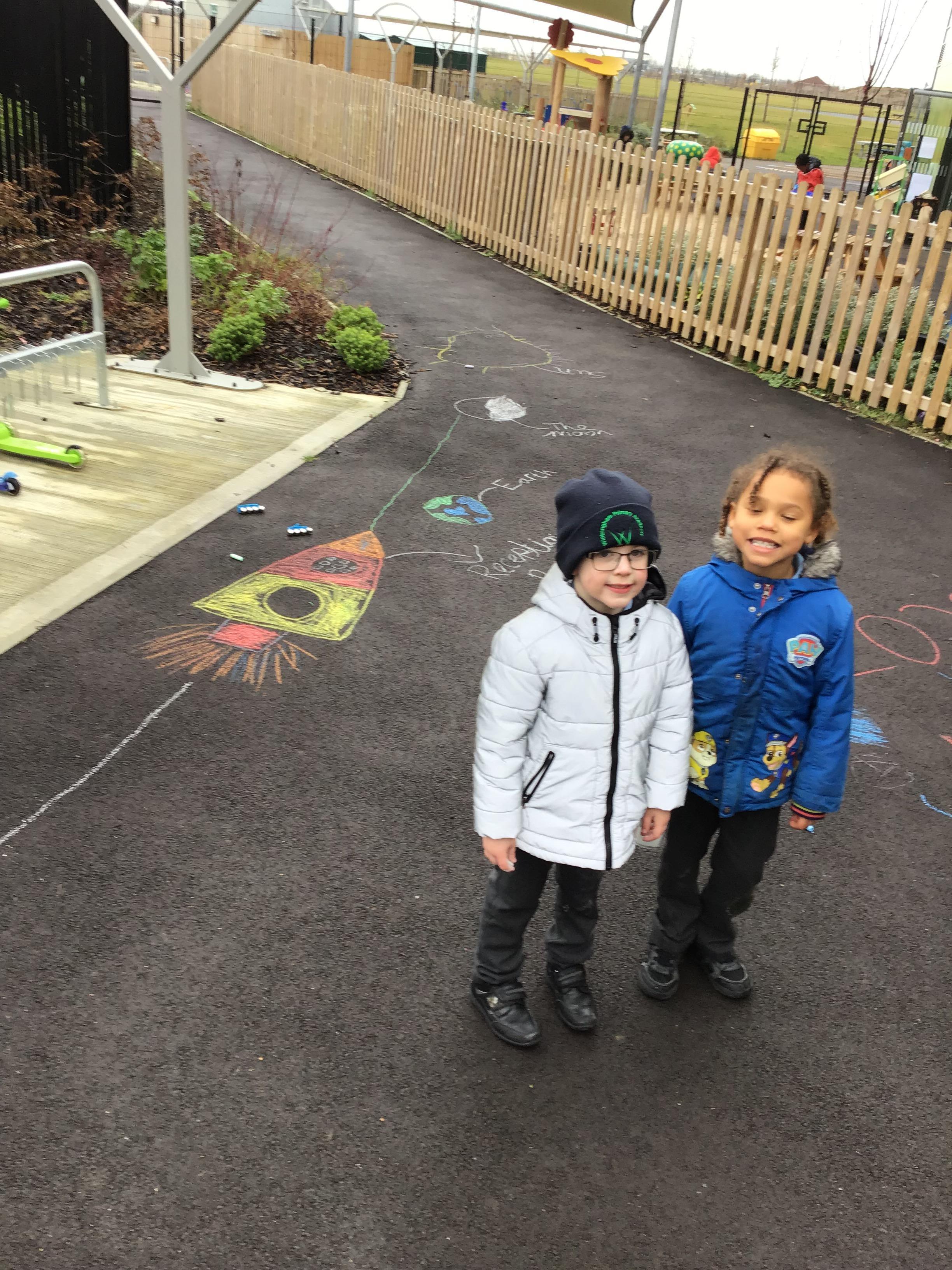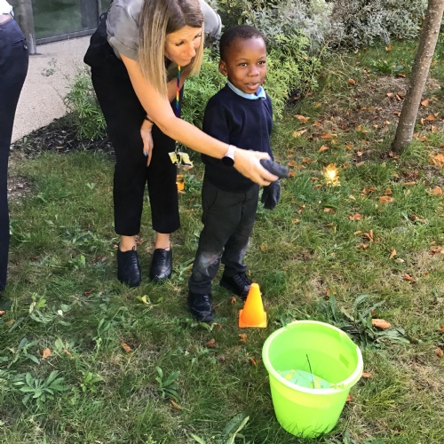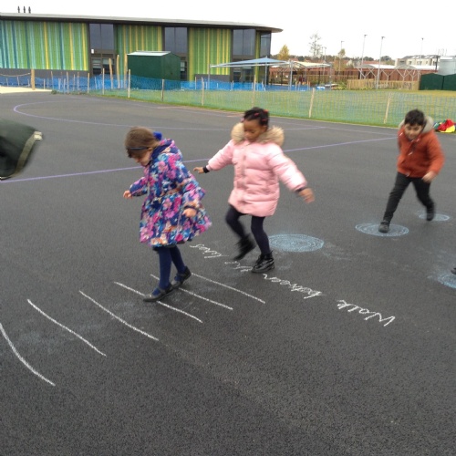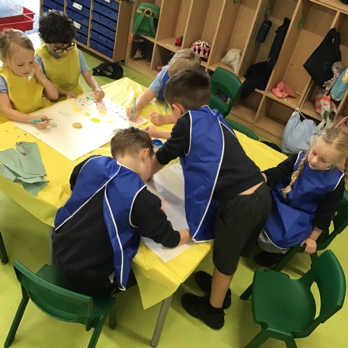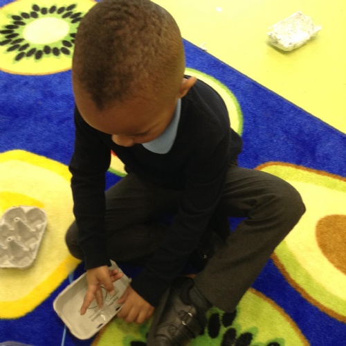 Welcome back after half term, it is so lovely to see the children back at school and hearing about what they have been doing during their week off. The children have settled well into their new school, they have been enjoying exploring their new surroundings and meeting the children in class 2 at playtime, lunchtime and during shared outdoor learning sessions. For Bonfire Night, the children made firework pictures using the touch screen on the laptop and also using glue, salt and different watercolours. They made patterns using firework noises, e.g. bang, whoosh, fizz, bang, whoosh, fizz and then wrote down some of these words onto an outline of a firework. The children have been independently adding together the number of seeds found on two strawberries before writing down the answer, writing signs for our new fruit and vegetable shop role play area and using play-dough to replicate different fireworks. For our outdoor learning this week, the children worked with the children from class 2 to draw around each other's bodies on the playground and then wrote some labels for the different body parts. Next week the children will be learning the sounds r, h, b and f/ff in our phonics sessions. They will also be continuing to practise segmenting and blending sounds for reading and writing.