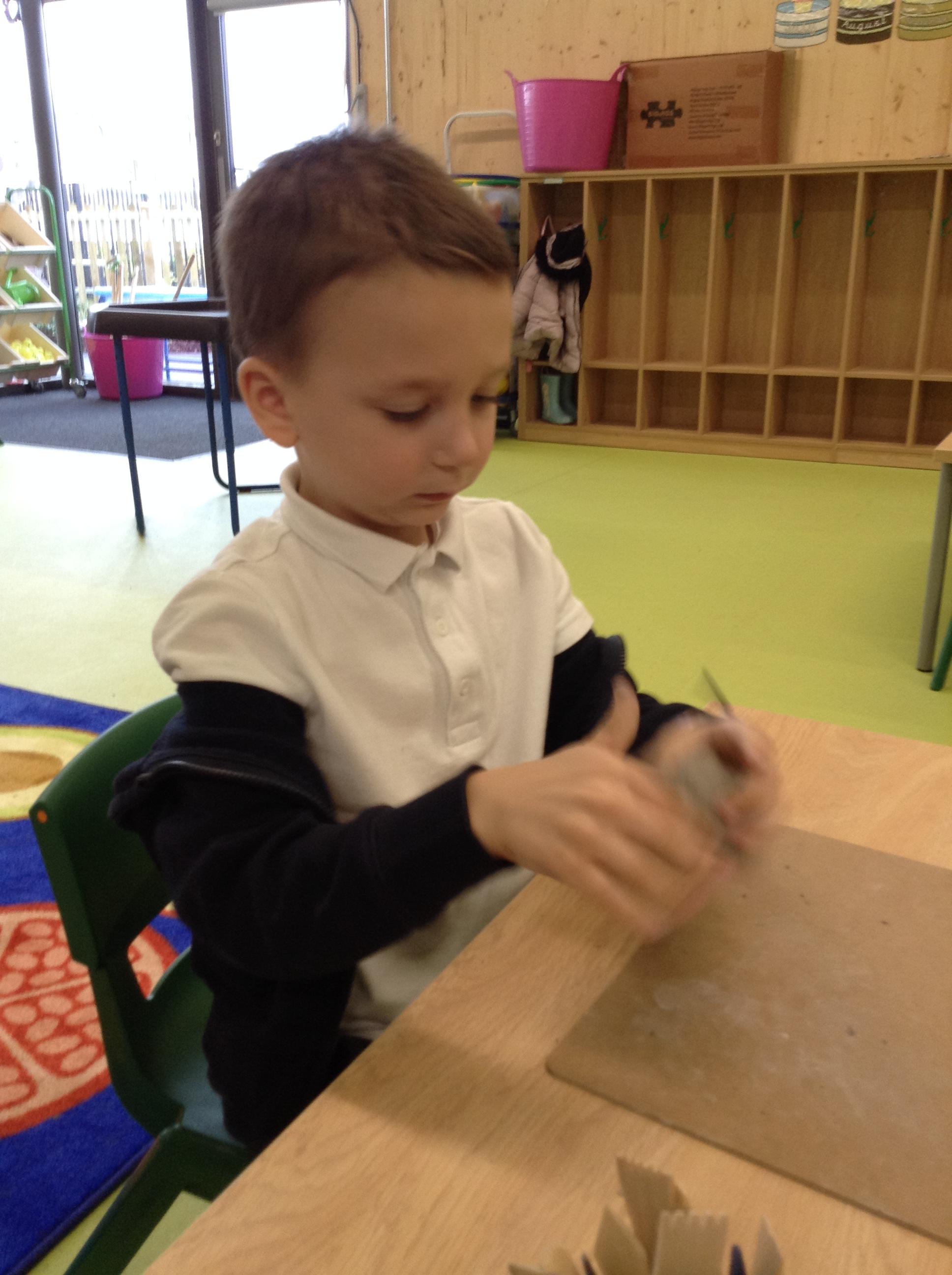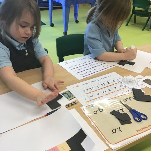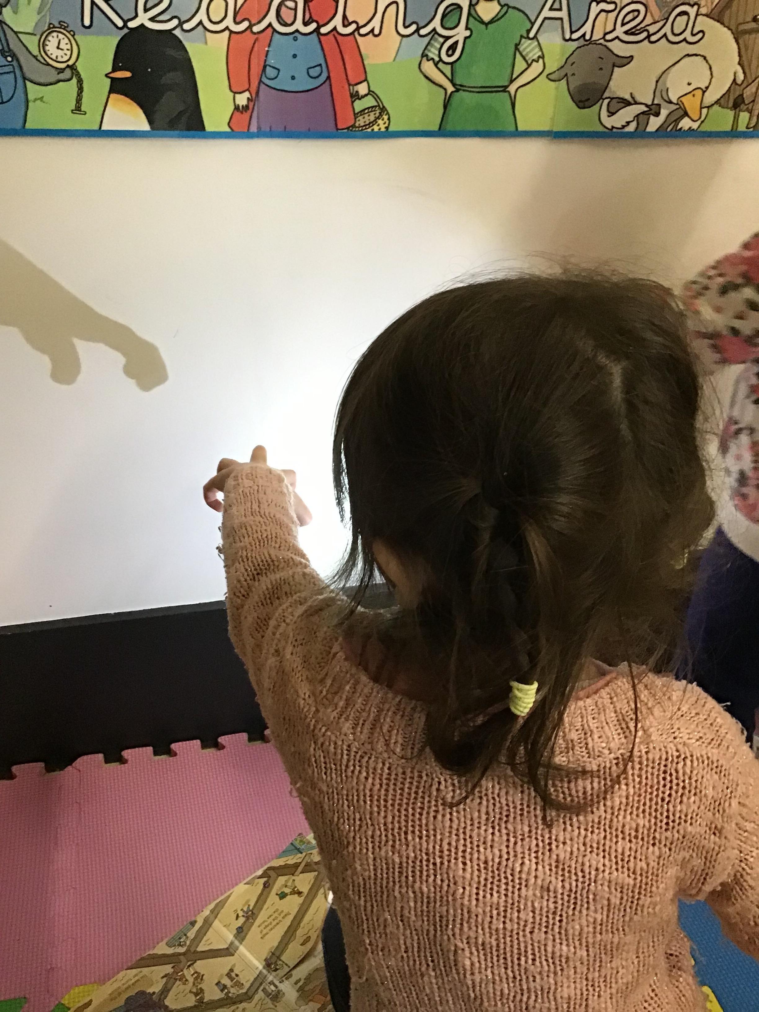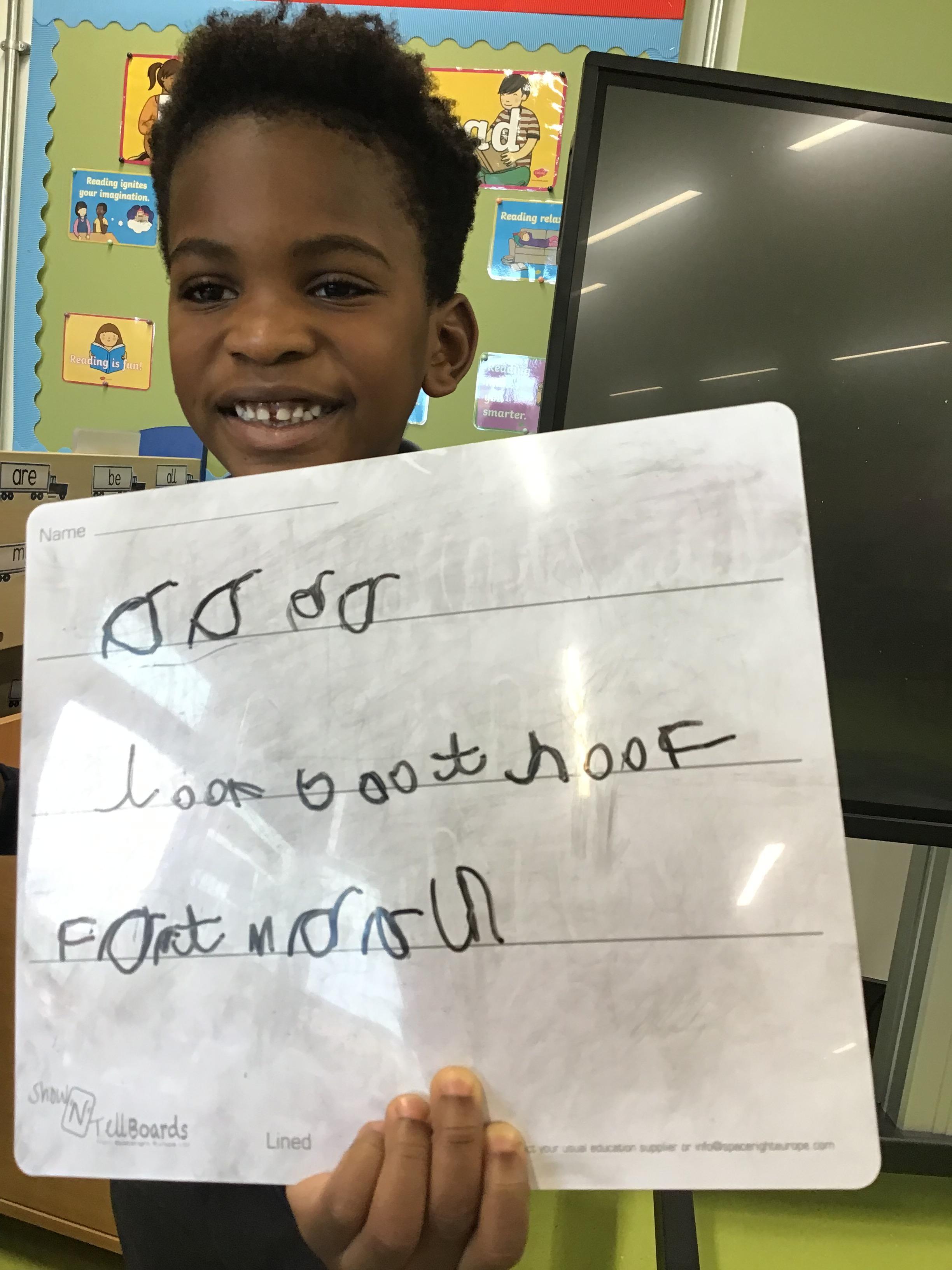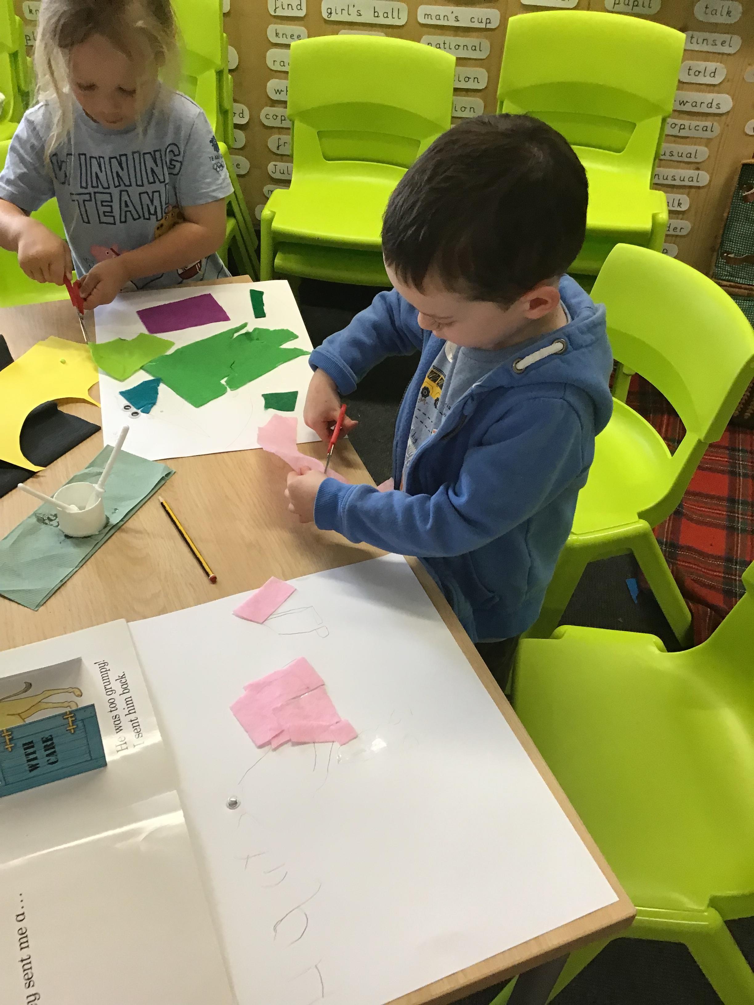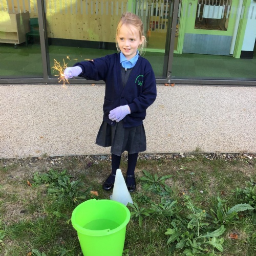 Welcome back after half term, it is so lovely to see the children back at school and hearing about what they have been doing during their week off. The children have settled well into their new school, they have been enjoying exploring their new surroundings and meeting the children in class 2 at playtime, lunchtime and during shared outdoor learning sessions. For Bonfire Night, the children made firework pictures using the touch screen on the laptop and also using glue, salt and different watercolours. They made patterns using firework noises, e.g. bang, whoosh, fizz, bang, whoosh, fizz and then wrote down some of these words onto an outline of a firework. The children have been independently adding together the number of seeds found on two strawberries before writing down the answer, writing signs for our new fruit and vegetable shop role play area and using play-dough to replicate different fireworks. For our outdoor learning this week, the children worked with the children from class 2 to draw around each other's bodies on the playground and then wrote some labels for the different body parts. Next week the children will be learning the sounds r, h, b and f/ff in our phonics sessions. They will also be continuing to practise segmenting and blending sounds for reading and writing.