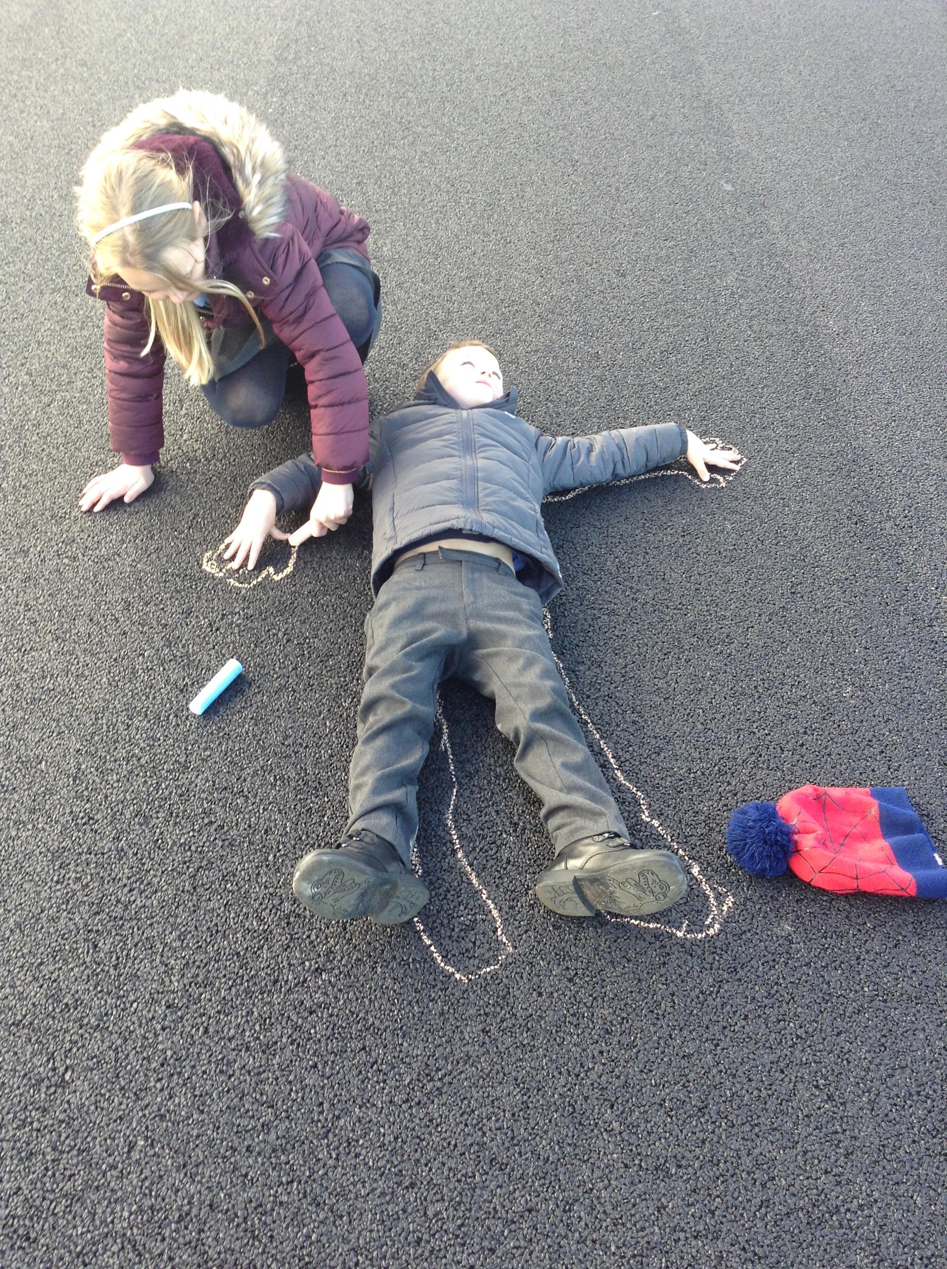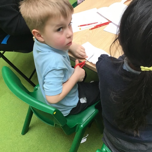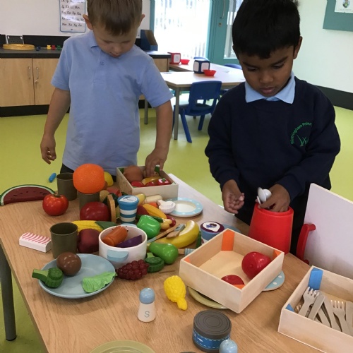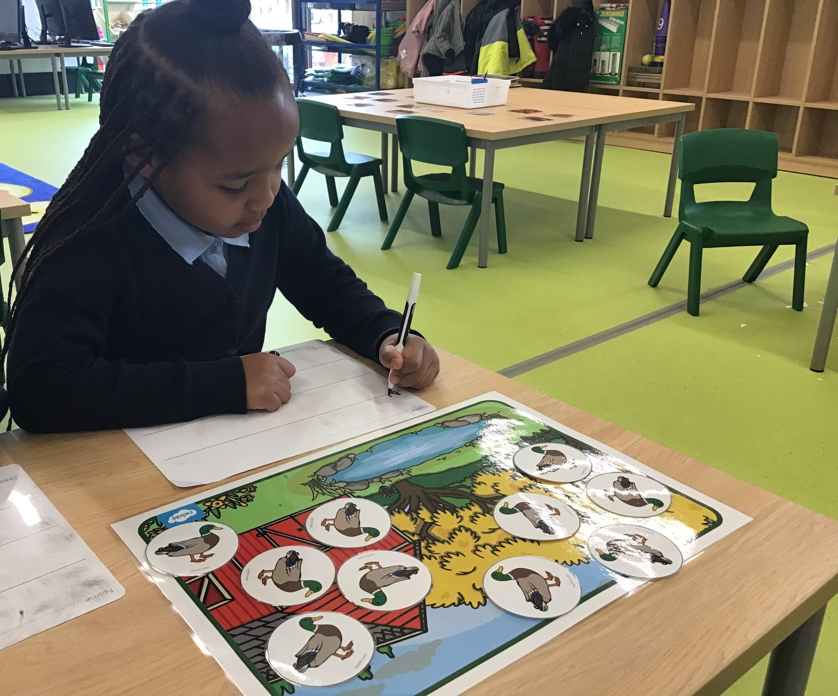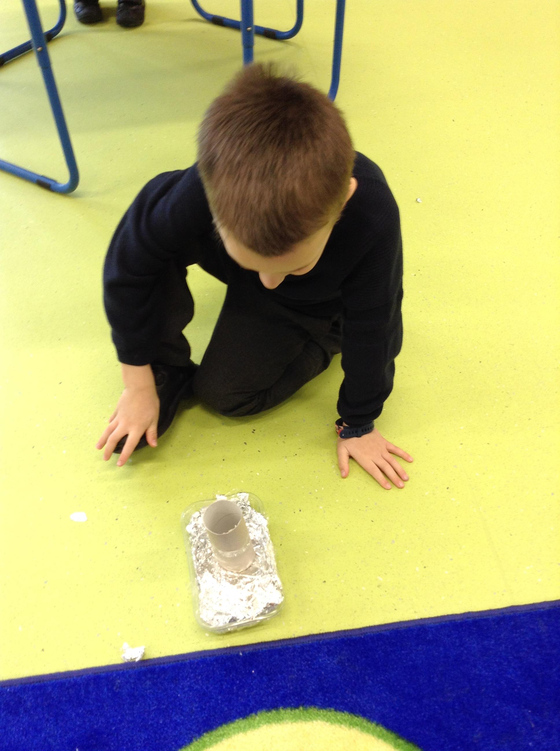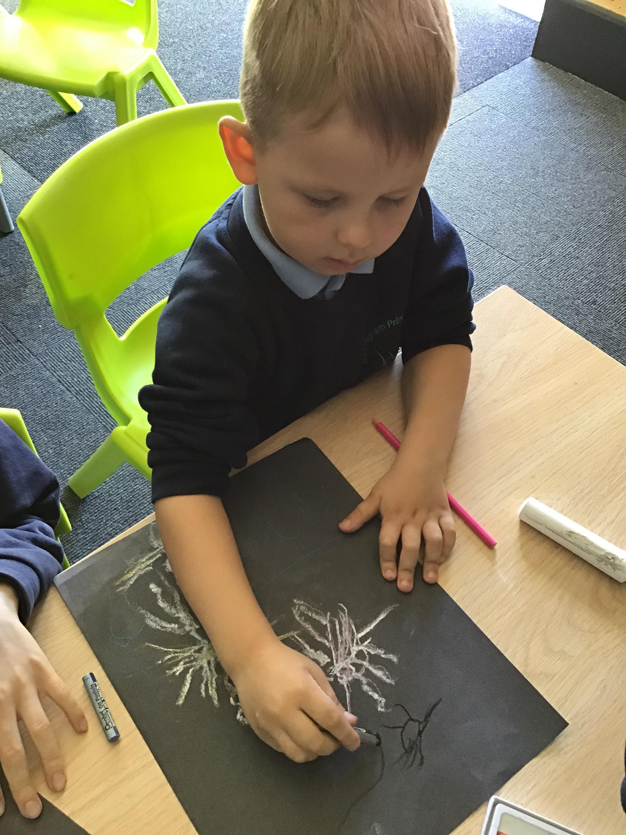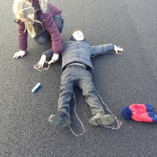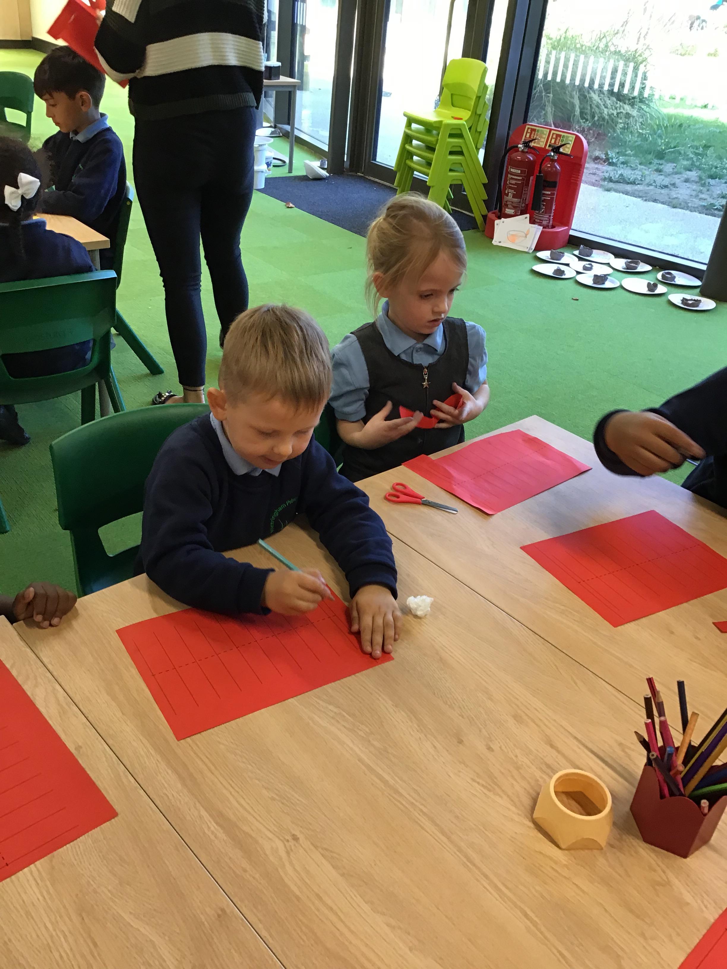 Welcome back after half term, it is so lovely to see the children back at school and hearing about what they have been doing during their week off. The children have settled well into their new school, they have been enjoying exploring their new surroundings and meeting the children in class 2 at playtime, lunchtime and during shared outdoor learning sessions. For Bonfire Night, the children made firework pictures using the touch screen on the laptop and also using glue, salt and different watercolours. They made patterns using firework noises, e.g. bang, whoosh, fizz, bang, whoosh, fizz and then wrote down some of these words onto an outline of a firework. The children have been independently adding together the number of seeds found on two strawberries before writing down the answer, writing signs for our new fruit and vegetable shop role play area and using play-dough to replicate different fireworks. For our outdoor learning this week, the children worked with the children from class 2 to draw around each other's bodies on the playground and then wrote some labels for the different body parts. Next week the children will be learning the sounds r, h, b and f/ff in our phonics sessions. They will also be continuing to practise segmenting and blending sounds for reading and writing.