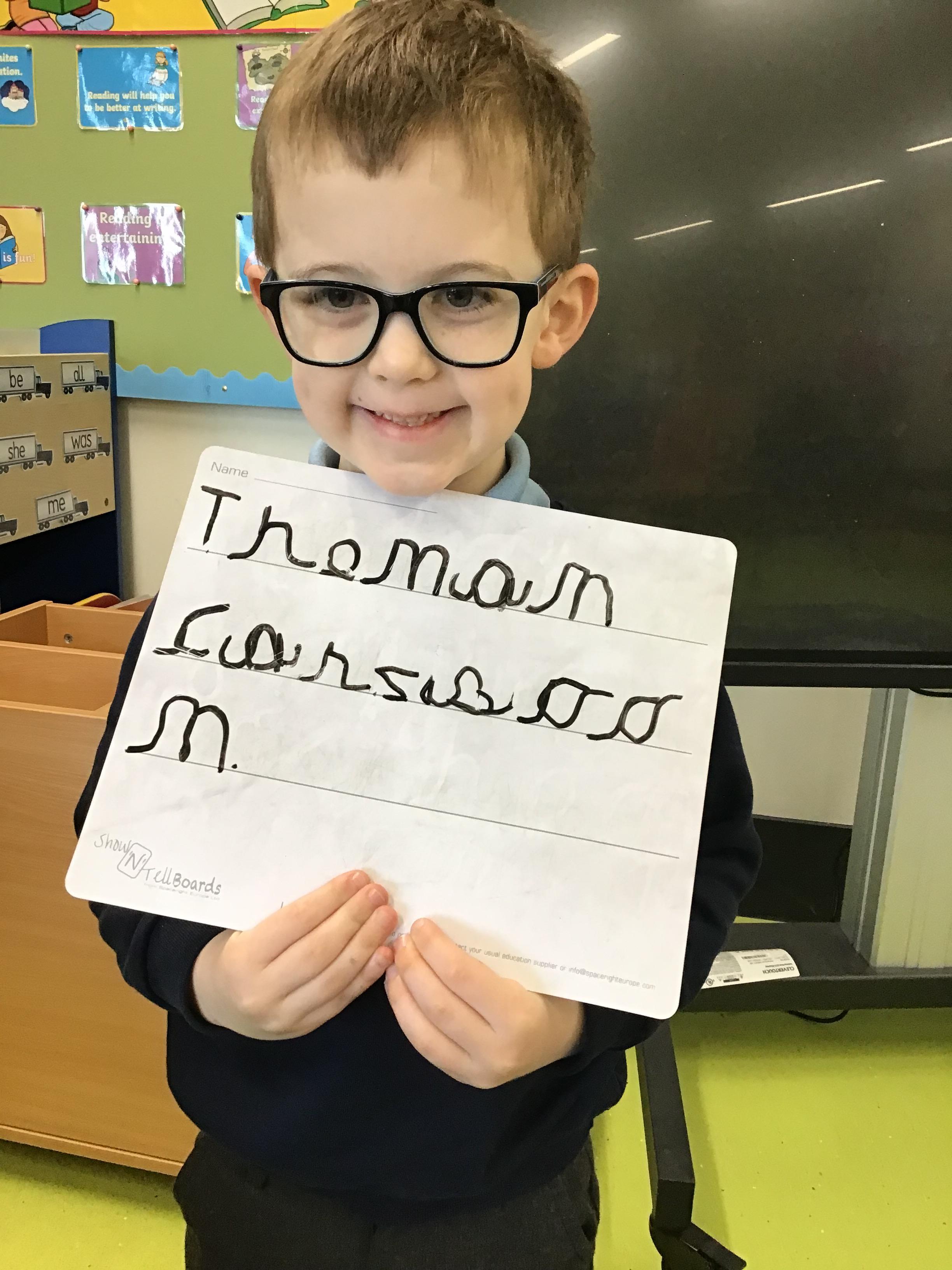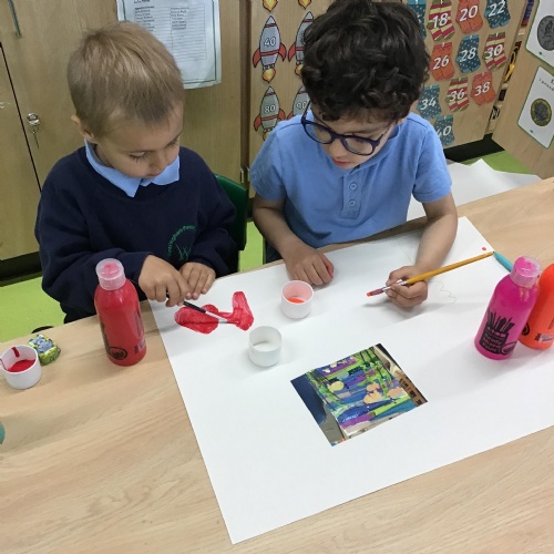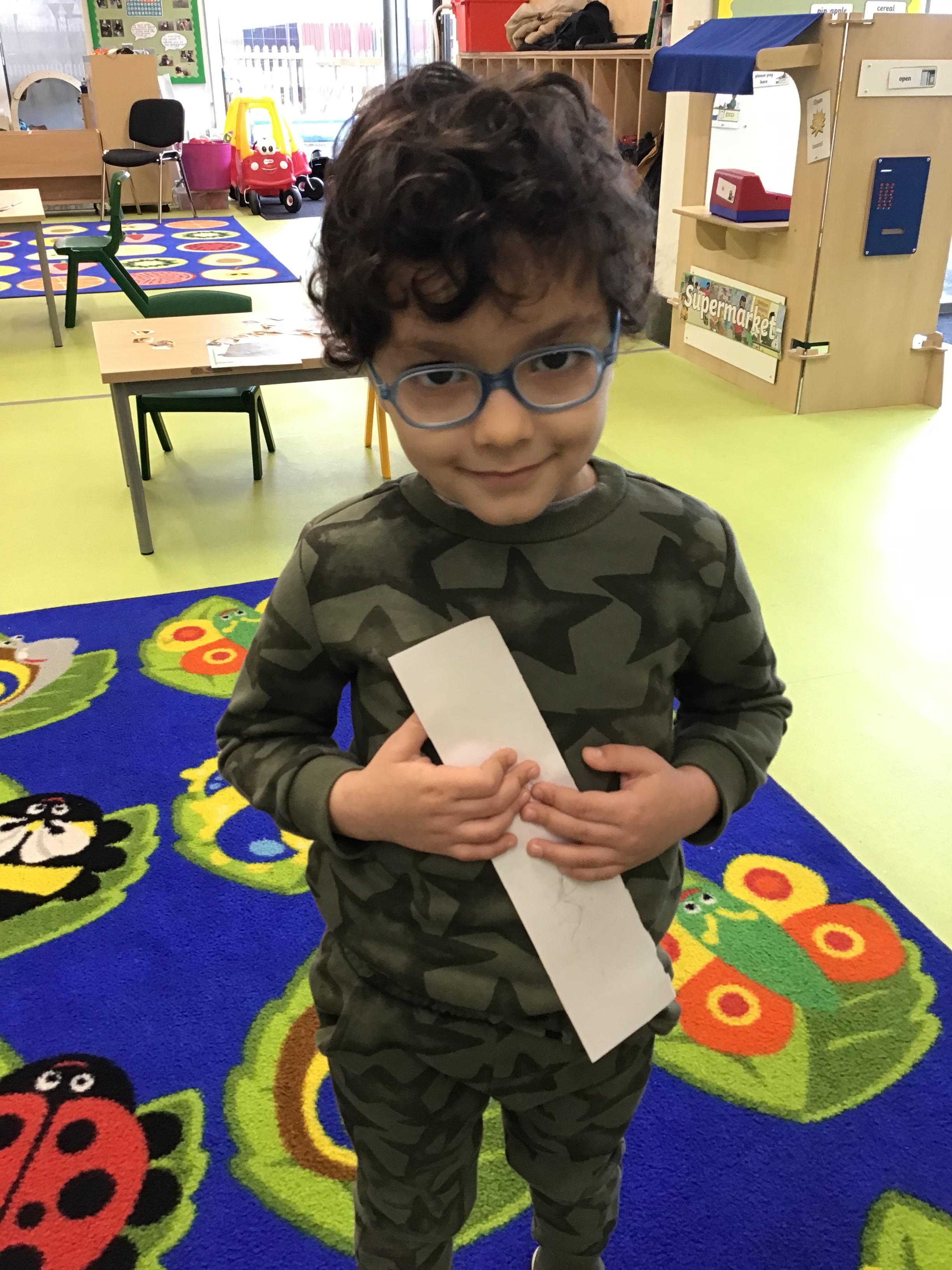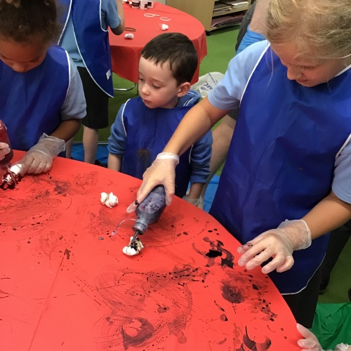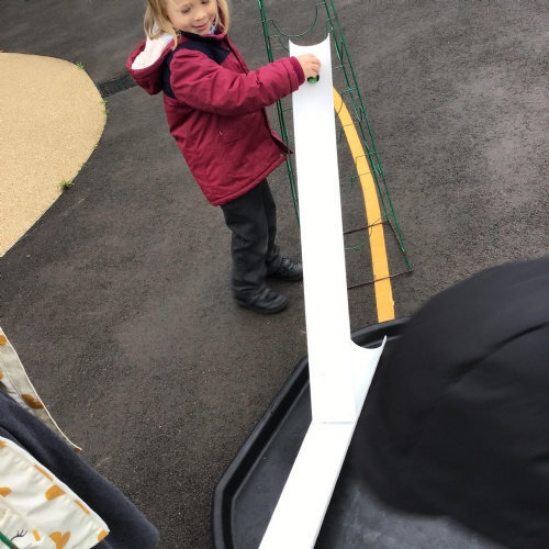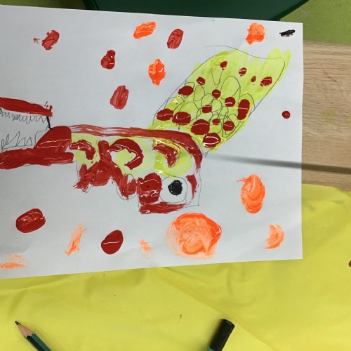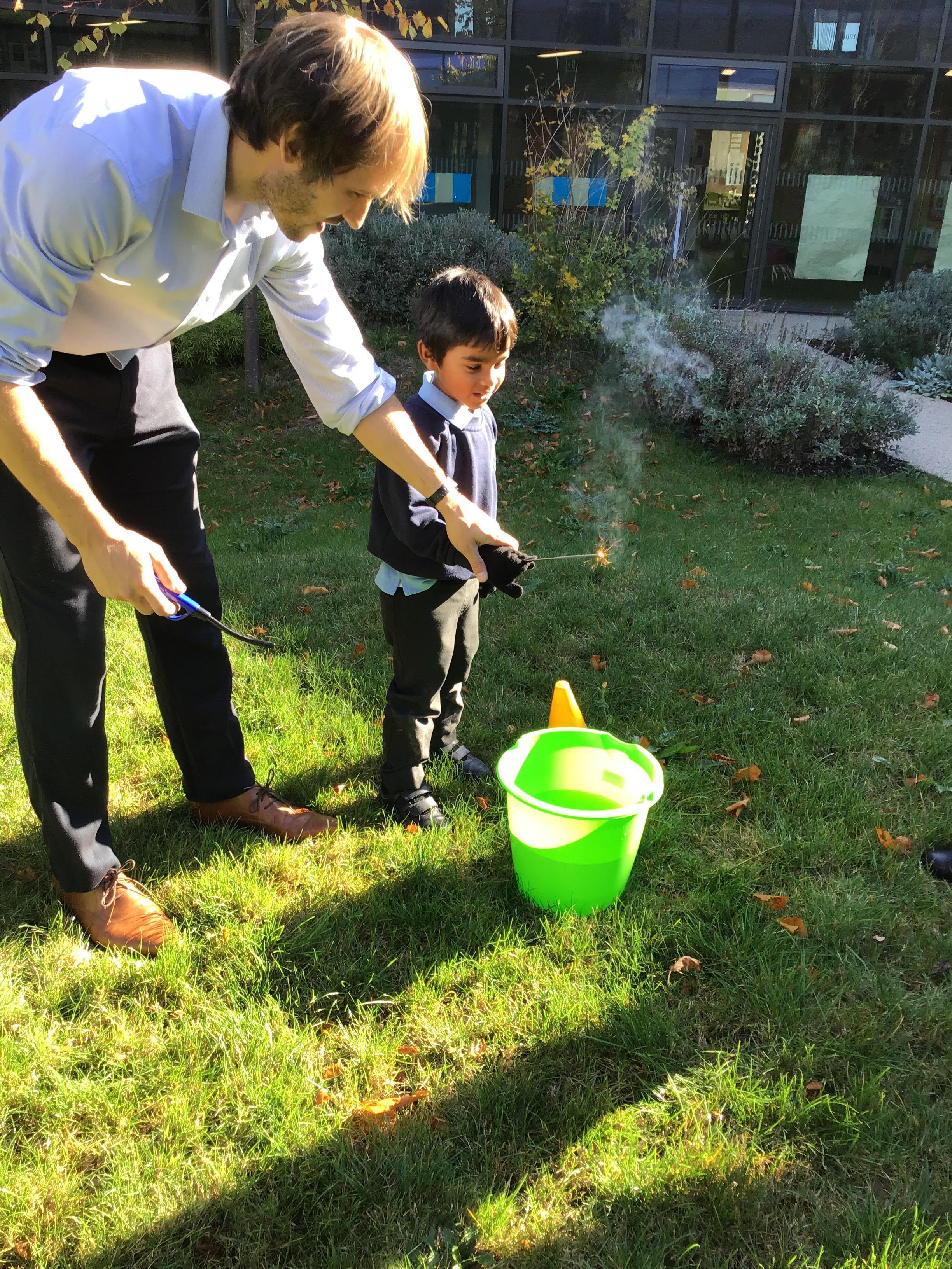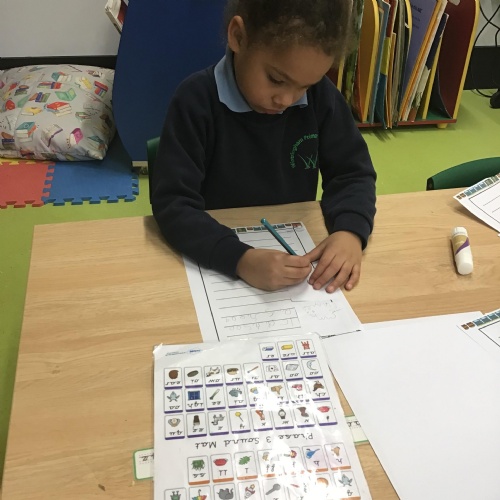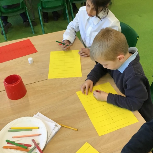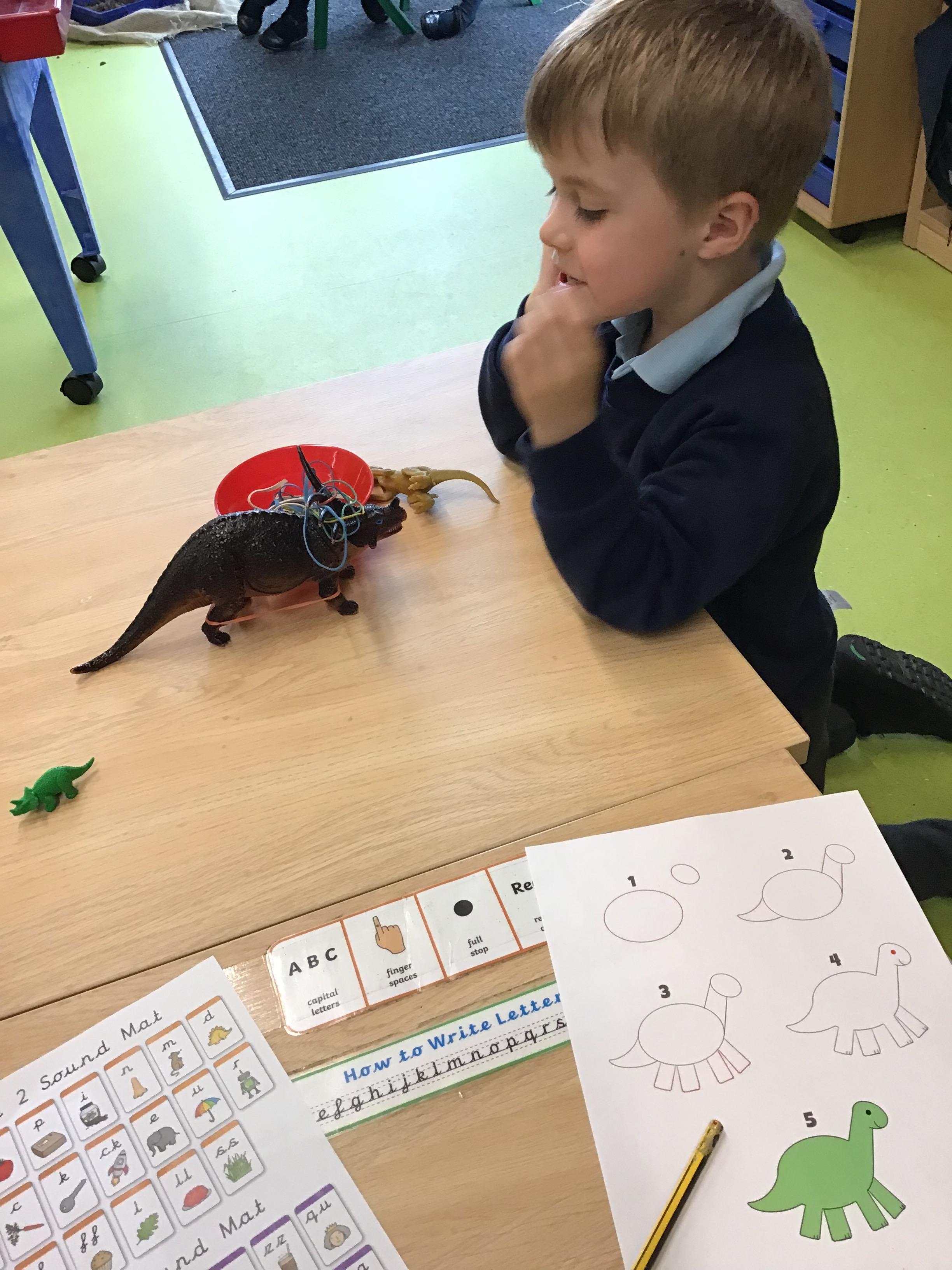 Welcome back after half term, it is so lovely to see the children back at school and hearing about what they have been doing during their week off. The children have settled well into their new school, they have been enjoying exploring their new surroundings and meeting the children in class 2 at playtime, lunchtime and during shared outdoor learning sessions. For Bonfire Night, the children made firework pictures using the touch screen on the laptop and also using glue, salt and different watercolours. They made patterns using firework noises, e.g. bang, whoosh, fizz, bang, whoosh, fizz and then wrote down some of these words onto an outline of a firework. The children have been independently adding together the number of seeds found on two strawberries before writing down the answer, writing signs for our new fruit and vegetable shop role play area and using play-dough to replicate different fireworks. For our outdoor learning this week, the children worked with the children from class 2 to draw around each other's bodies on the playground and then wrote some labels for the different body parts. Next week the children will be learning the sounds r, h, b and f/ff in our phonics sessions. They will also be continuing to practise segmenting and blending sounds for reading and writing.