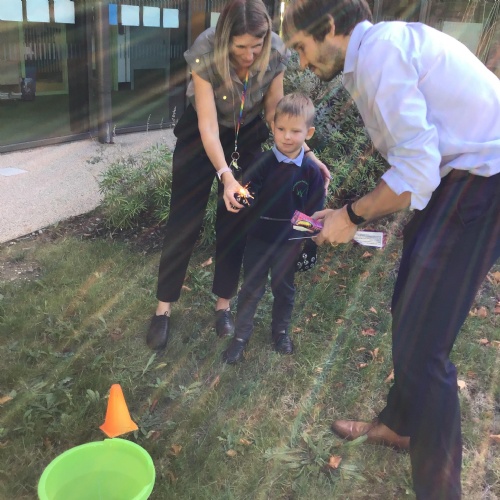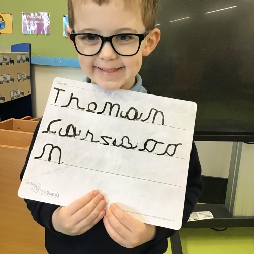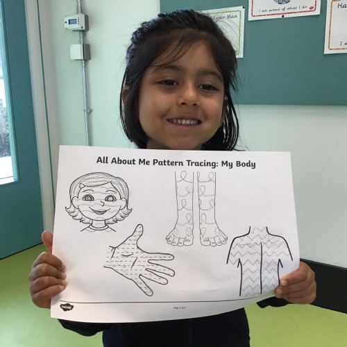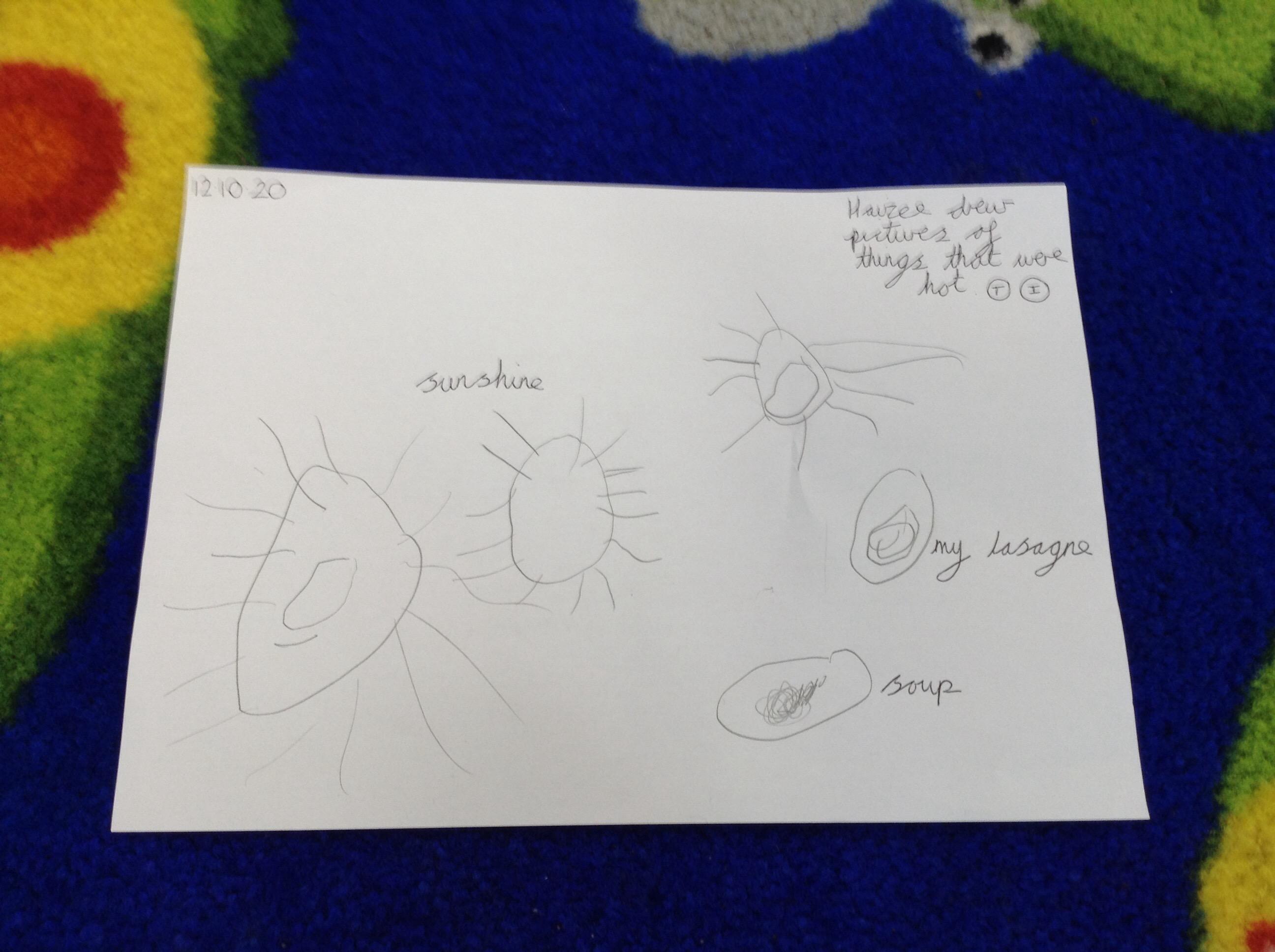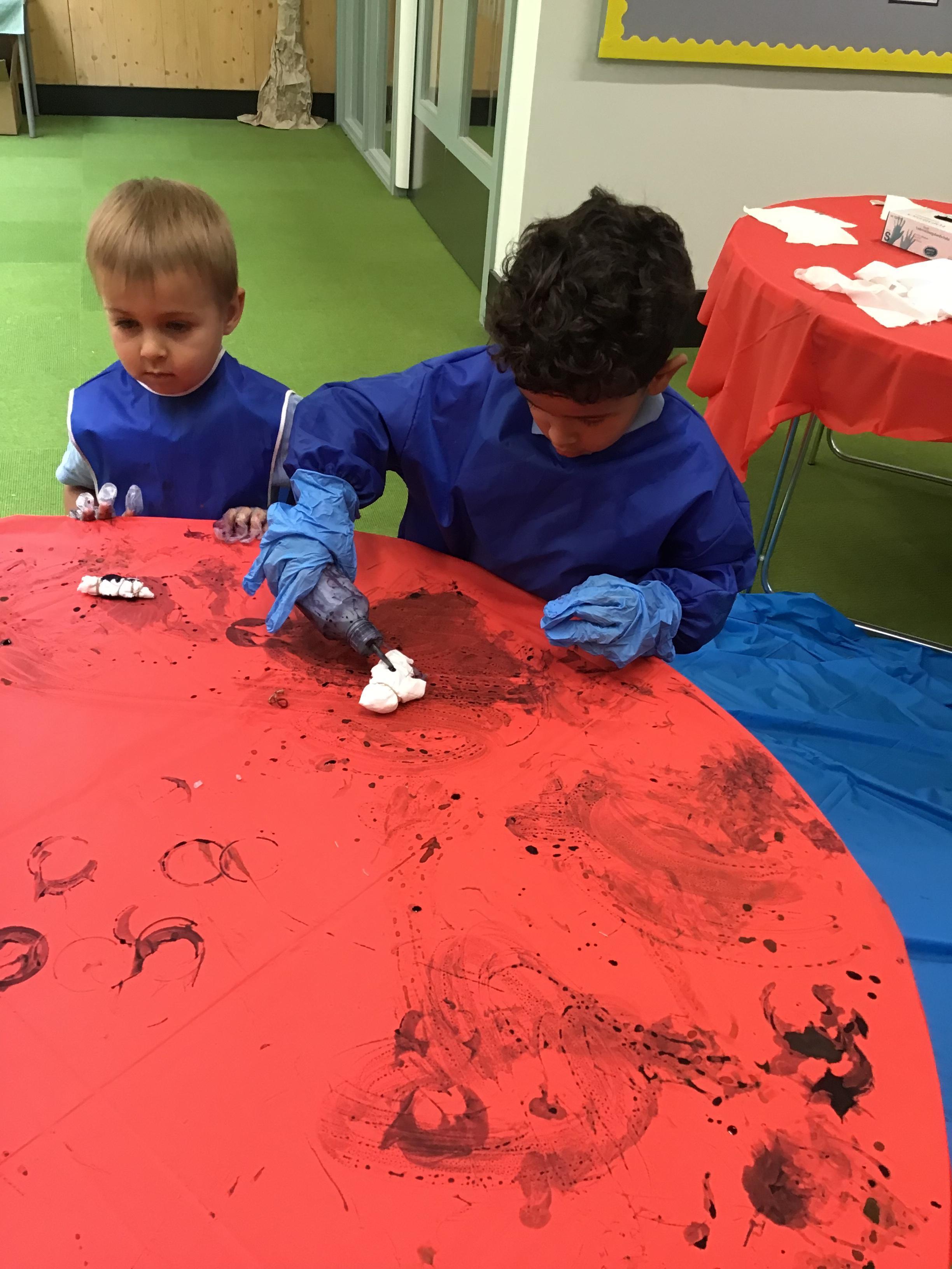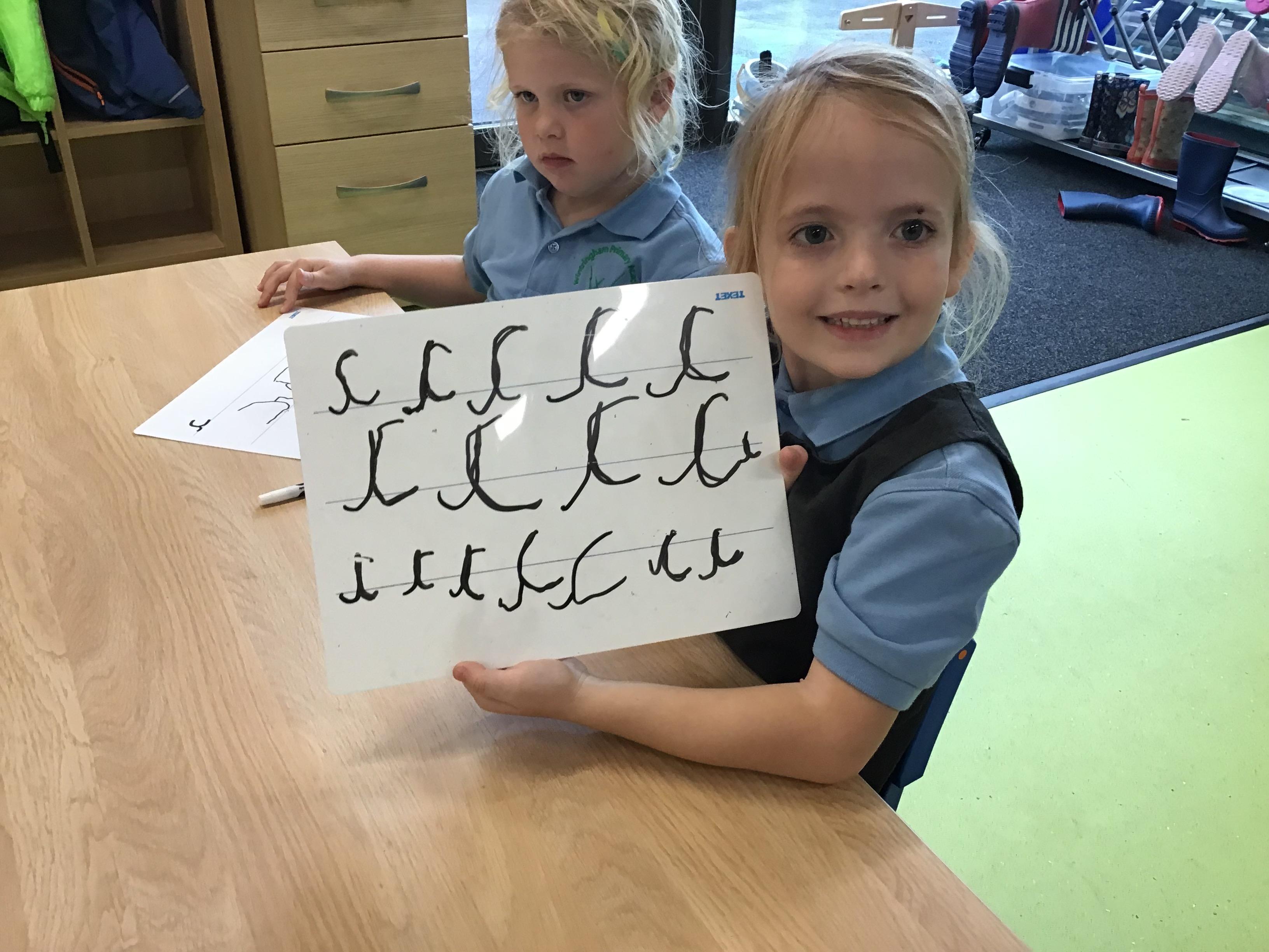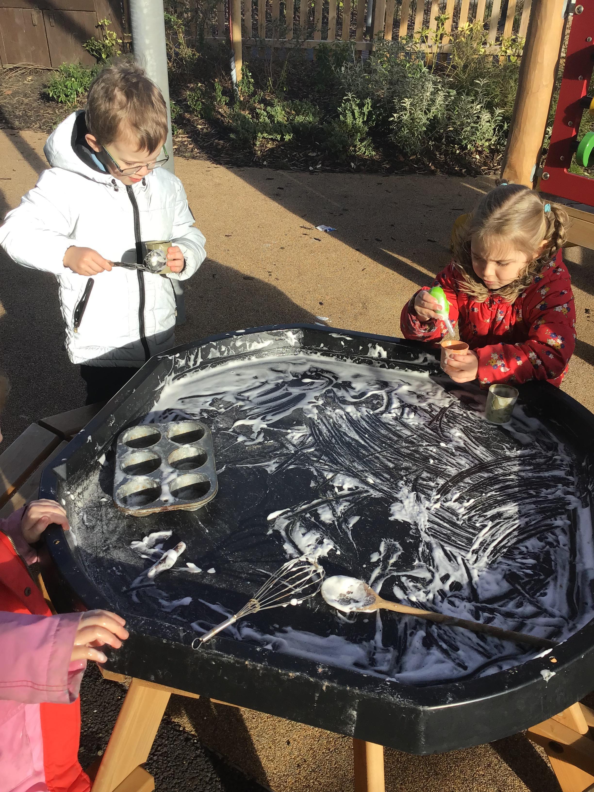 Welcome back after half term, it is so lovely to see the children back at school and hearing about what they have been doing during their week off. The children have settled well into their new school, they have been enjoying exploring their new surroundings and meeting the children in class 2 at playtime, lunchtime and during shared outdoor learning sessions. For Bonfire Night, the children made firework pictures using the touch screen on the laptop and also using glue, salt and different watercolours. They made patterns using firework noises, e.g. bang, whoosh, fizz, bang, whoosh, fizz and then wrote down some of these words onto an outline of a firework. The children have been independently adding together the number of seeds found on two strawberries before writing down the answer, writing signs for our new fruit and vegetable shop role play area and using play-dough to replicate different fireworks. For our outdoor learning this week, the children worked with the children from class 2 to draw around each other's bodies on the playground and then wrote some labels for the different body parts. Next week the children will be learning the sounds r, h, b and f/ff in our phonics sessions. They will also be continuing to practise segmenting and blending sounds for reading and writing.