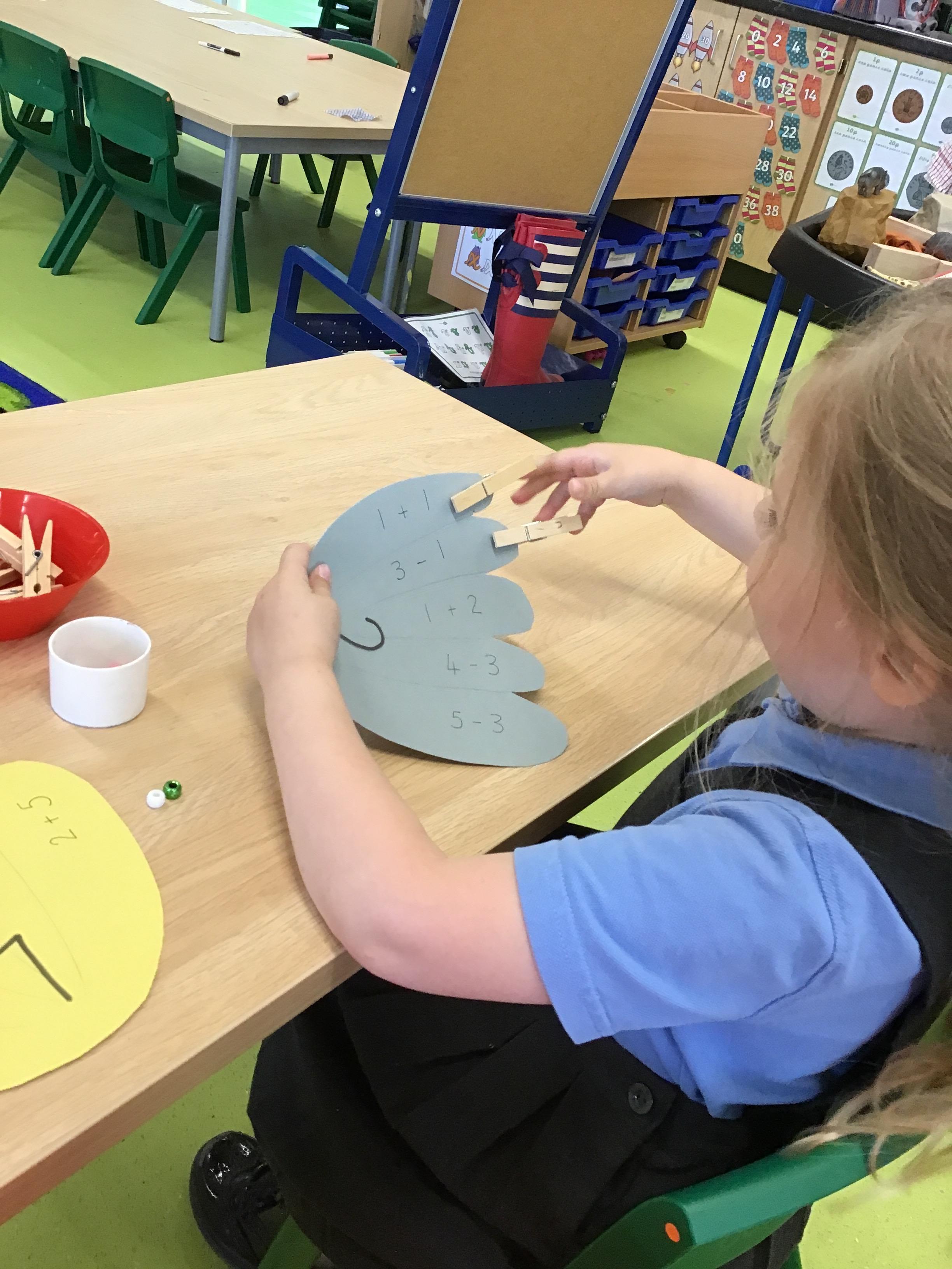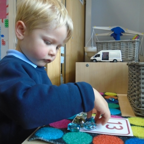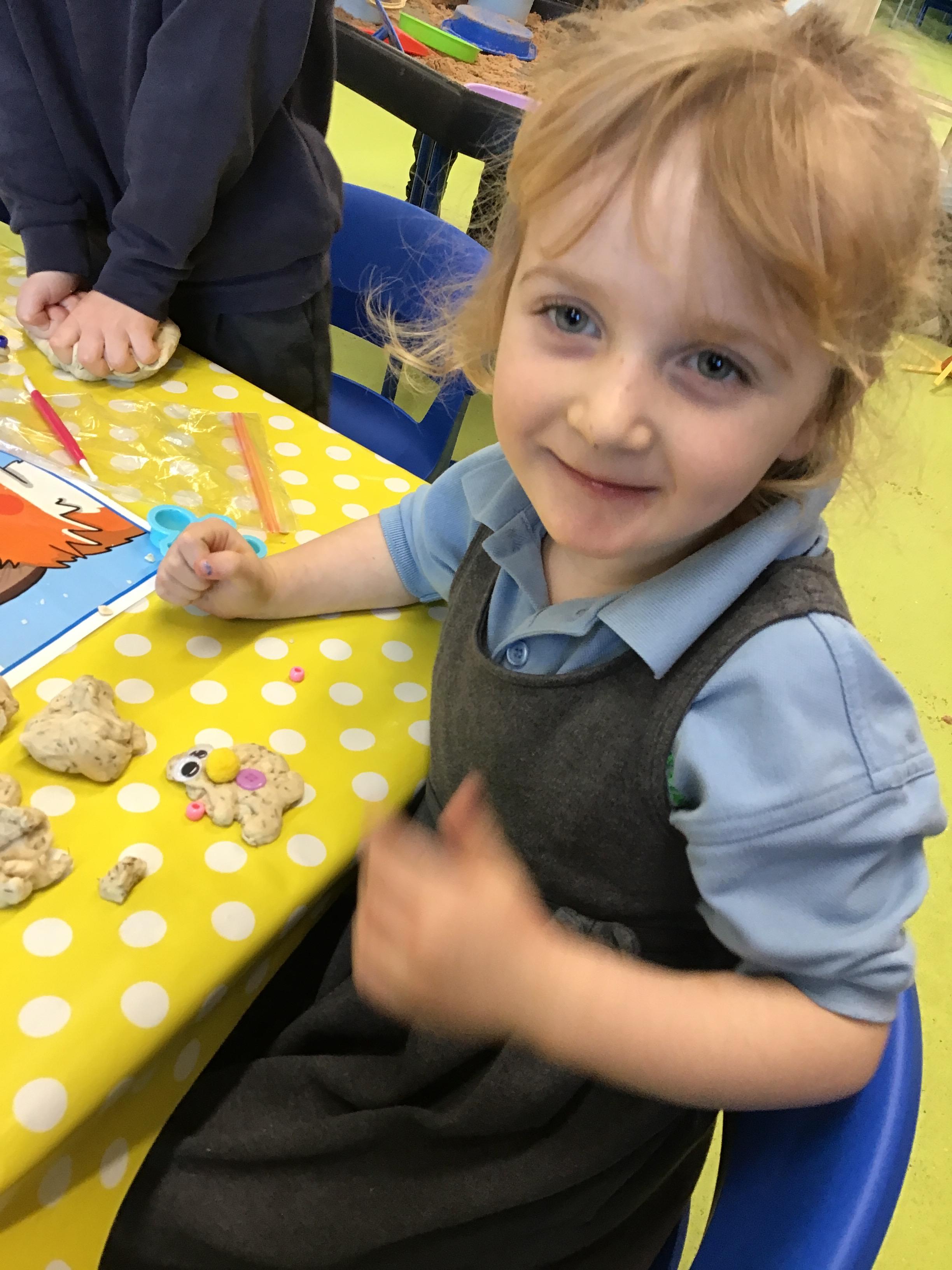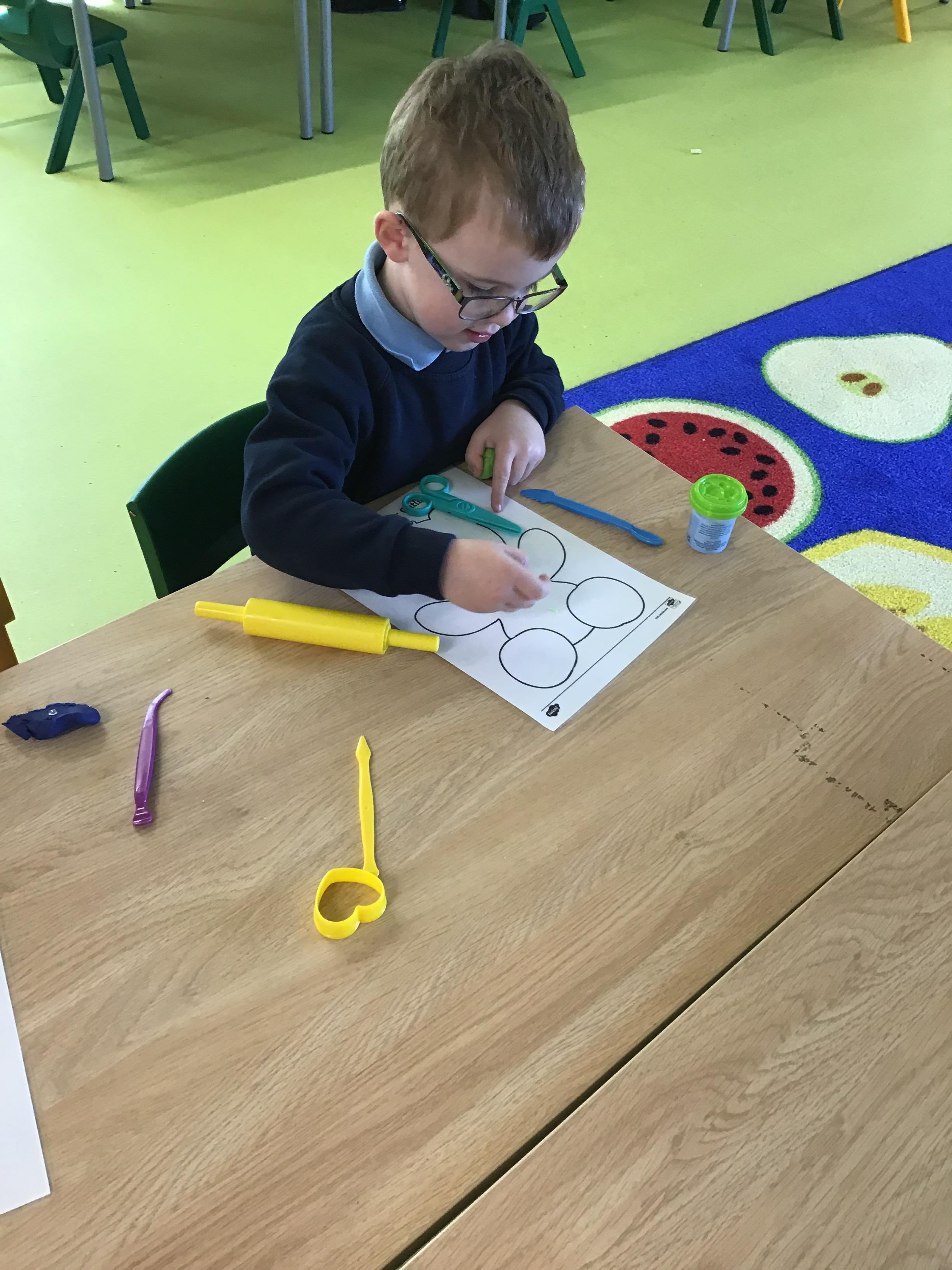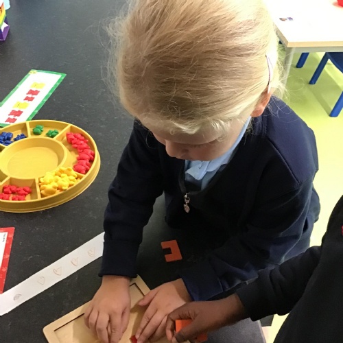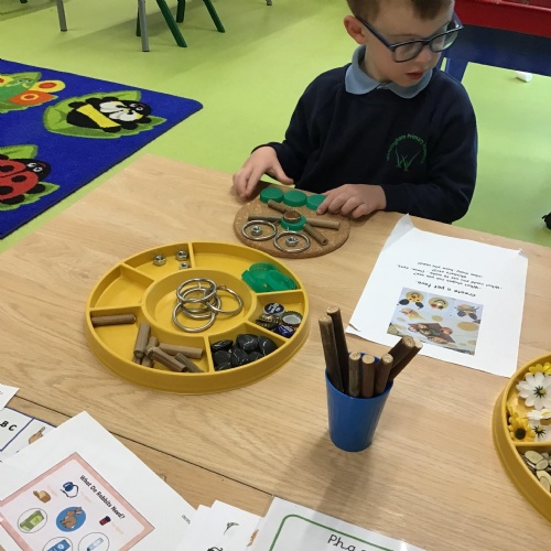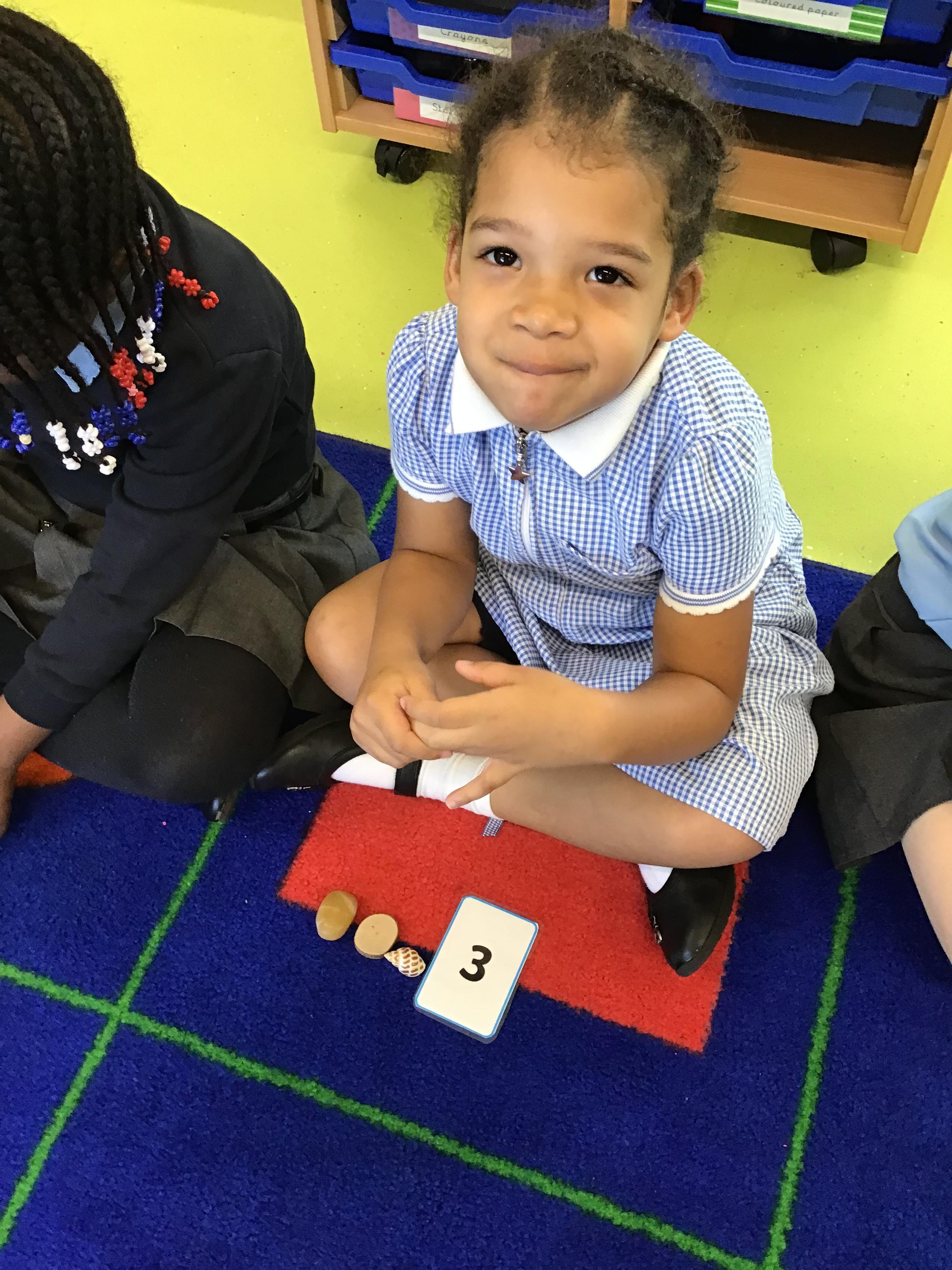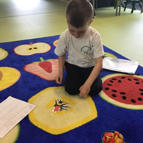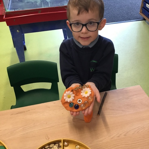 The children have settled in quickly to the new routines at school and all appear to be looking forward to starting full time next week. The children have been looking at the topic, 'ourselves.' In group time, the children have been looking at feelings and thinking about how things make us feel. In maths, the children have started to subitise numbers 1 and 2 and start to think about the number 3. The children practically made arrangements with counters to show the number 3. In continuous provision, the children have been creating pictures of their families, mark making around their favourite television characters, creating play dough faces and role playing in the home corner. Outside, the children have enjoyed mark making with chalk, exploring the climbing frame and playing in the mud kitchen. In outdoor learning, the children have represented numbers using different natural materials and made clay faces.