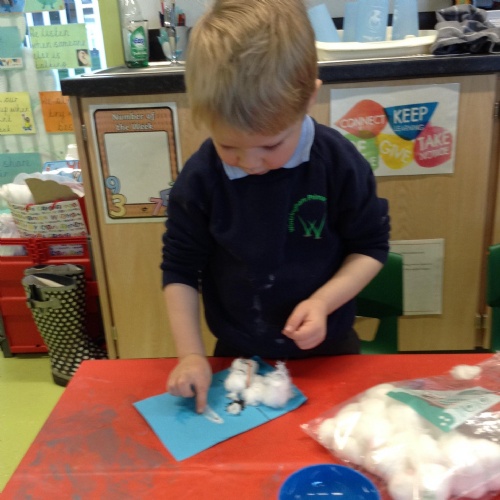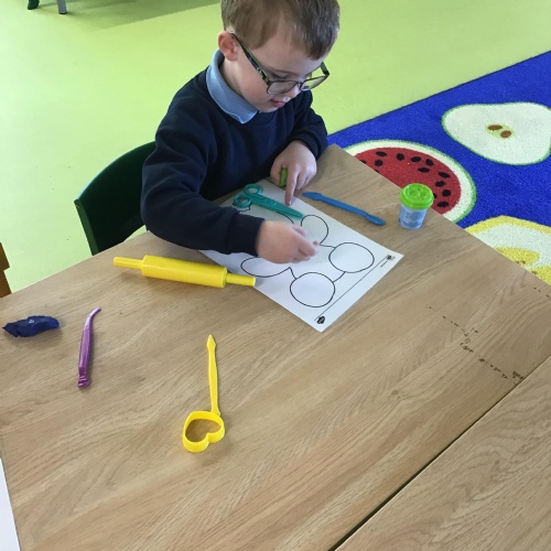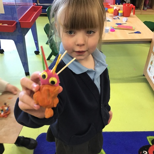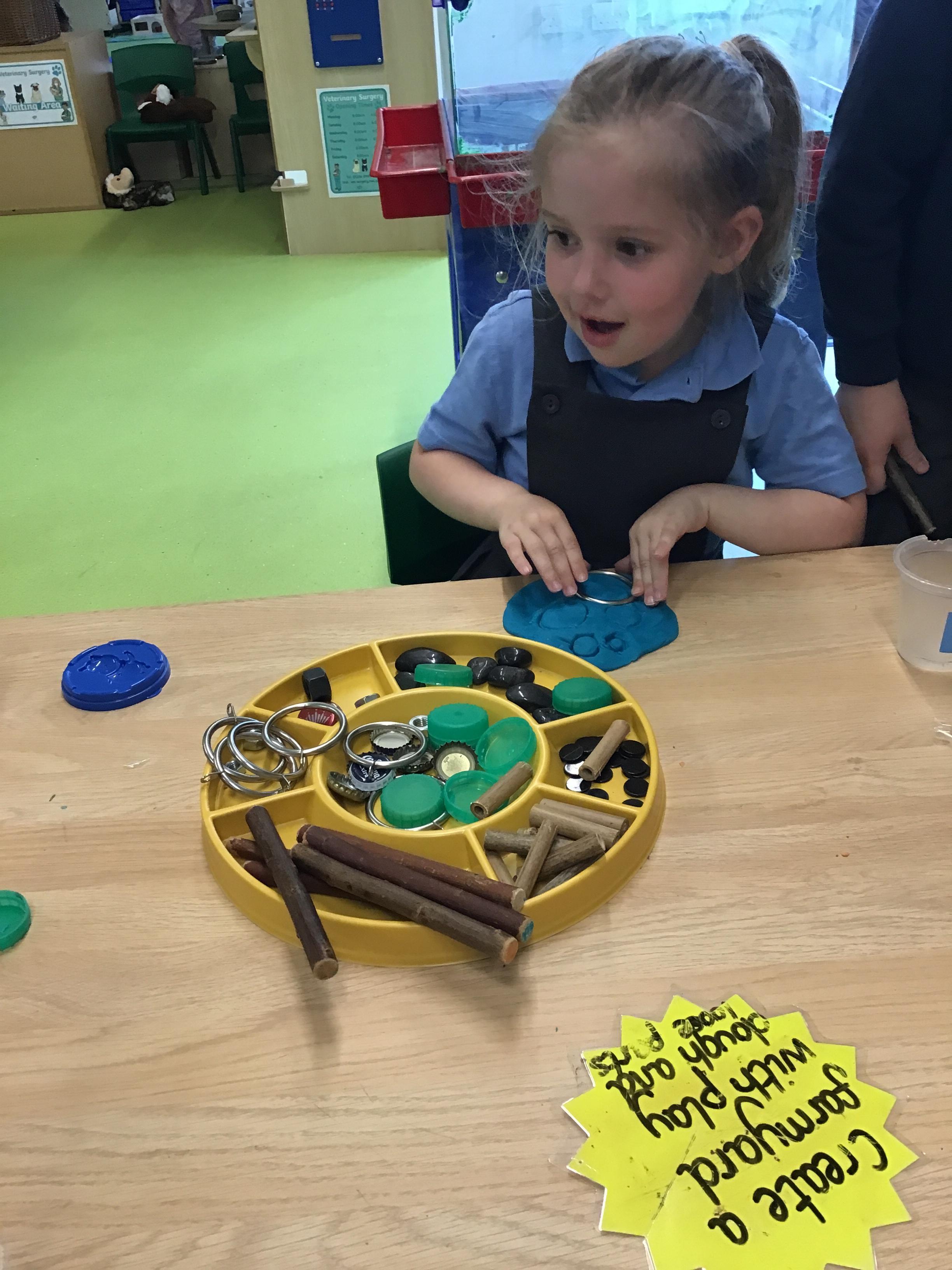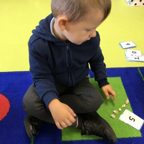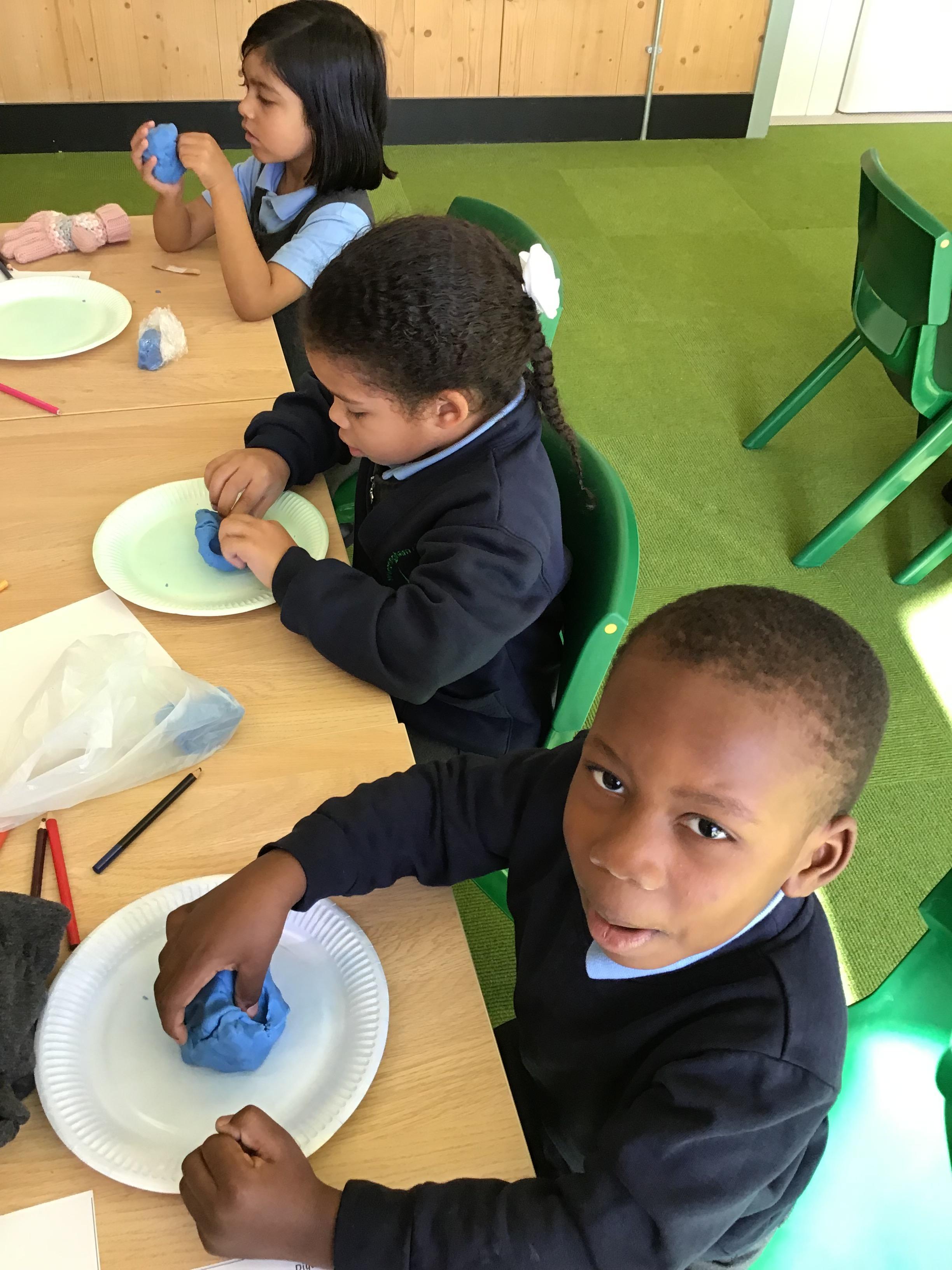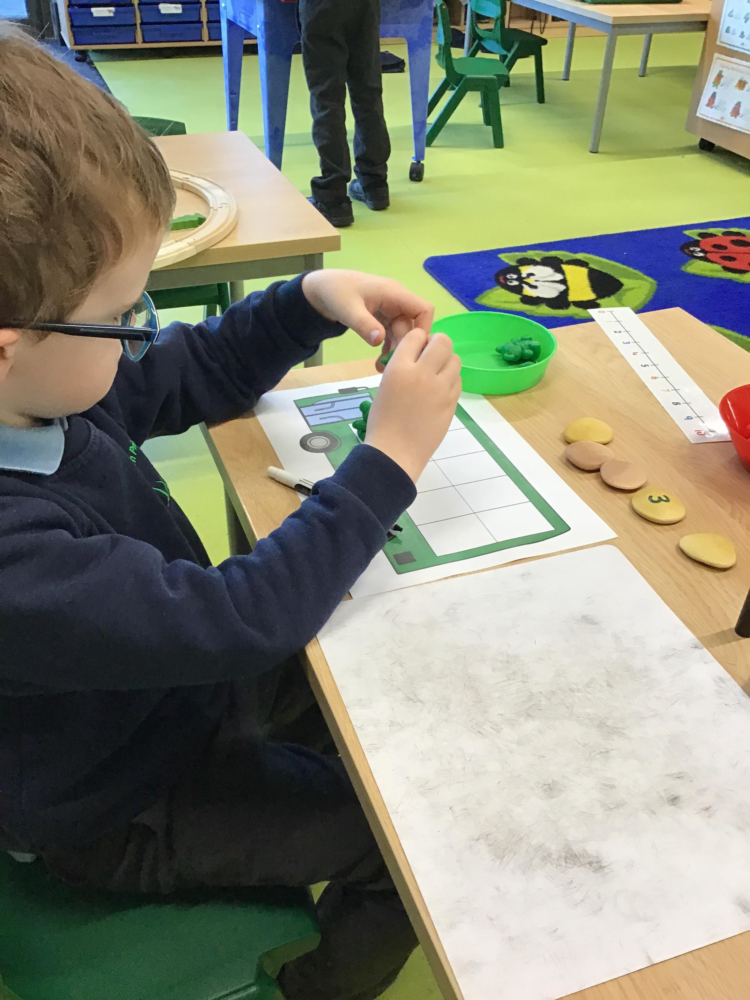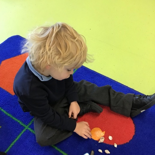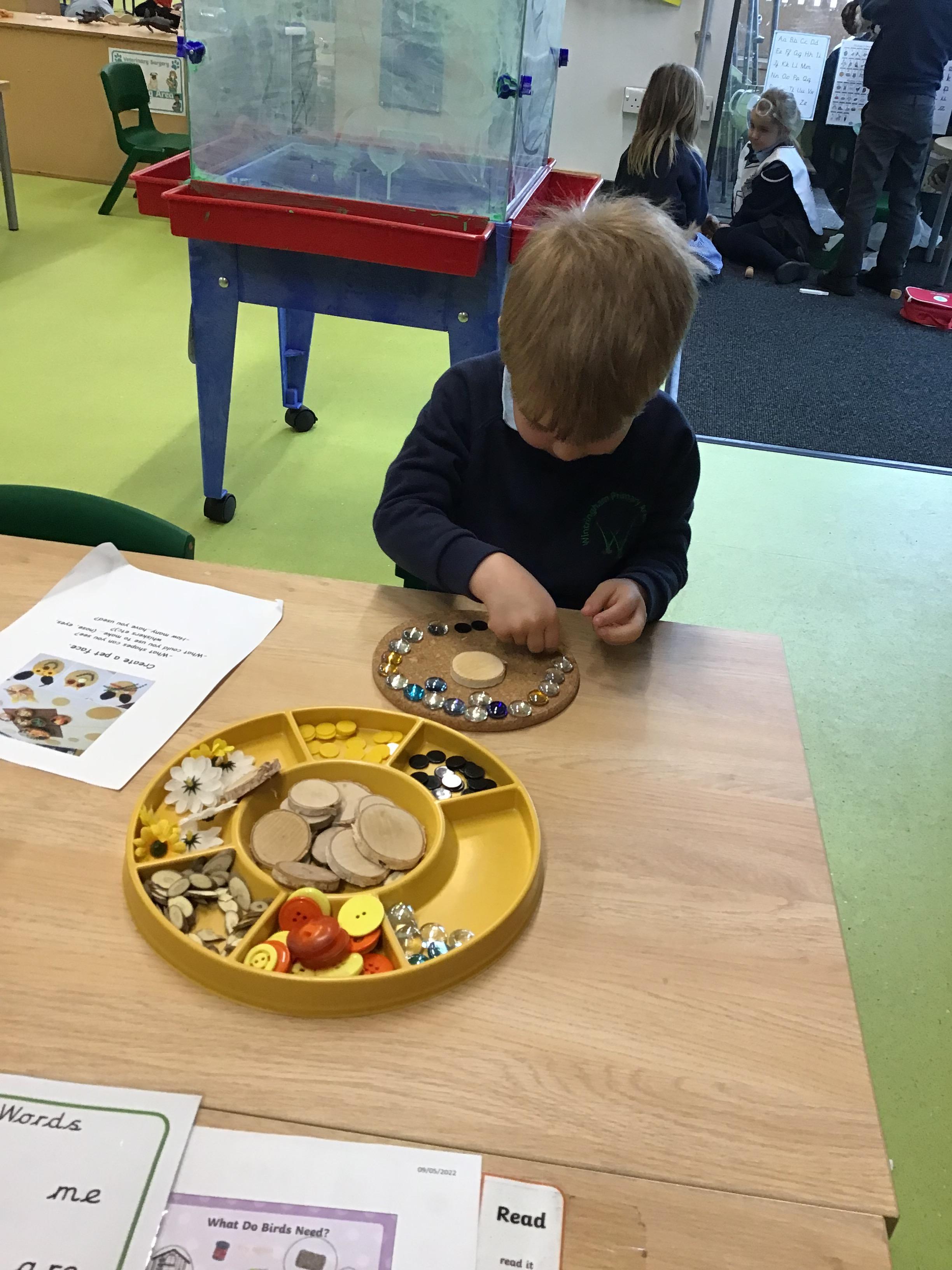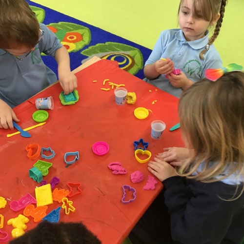 The children have settled in quickly to the new routines at school and all appear to be looking forward to starting full time next week. The children have been looking at the topic, 'ourselves.' In group time, the children have been looking at feelings and thinking about how things make us feel. In maths, the children have started to subitise numbers 1 and 2 and start to think about the number 3. The children practically made arrangements with counters to show the number 3. In continuous provision, the children have been creating pictures of their families, mark making around their favourite television characters, creating play dough faces and role playing in the home corner. Outside, the children have enjoyed mark making with chalk, exploring the climbing frame and playing in the mud kitchen. In outdoor learning, the children have represented numbers using different natural materials and made clay faces.