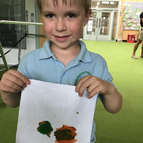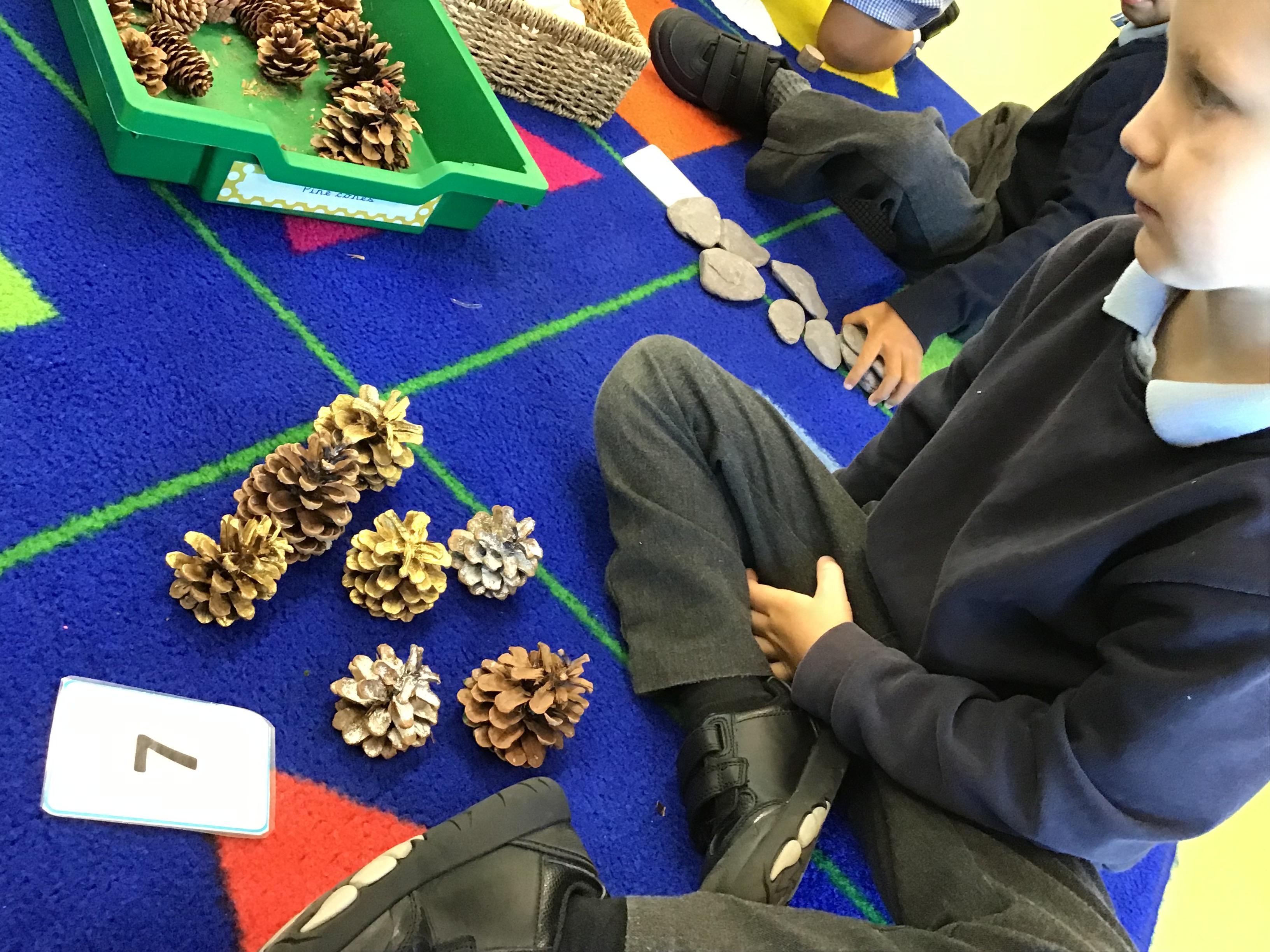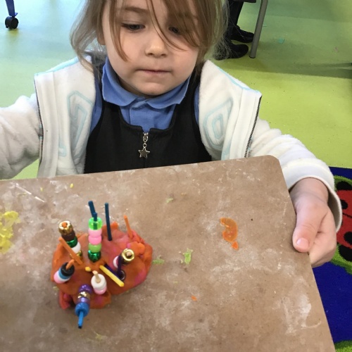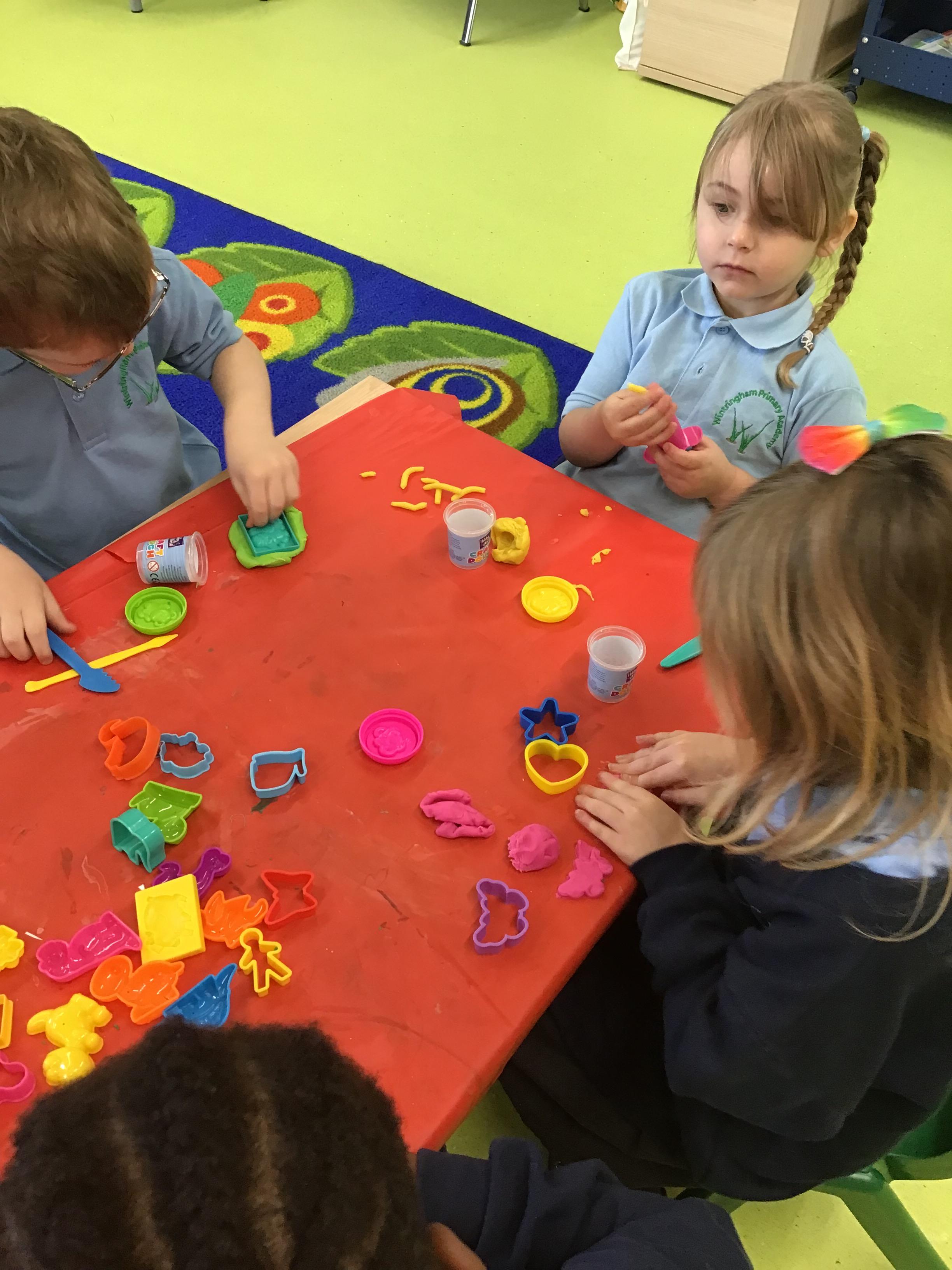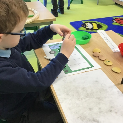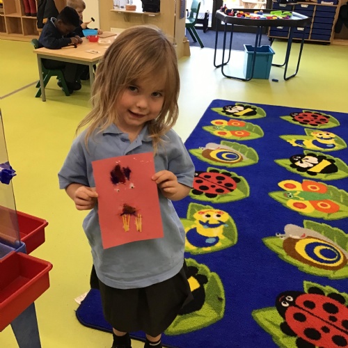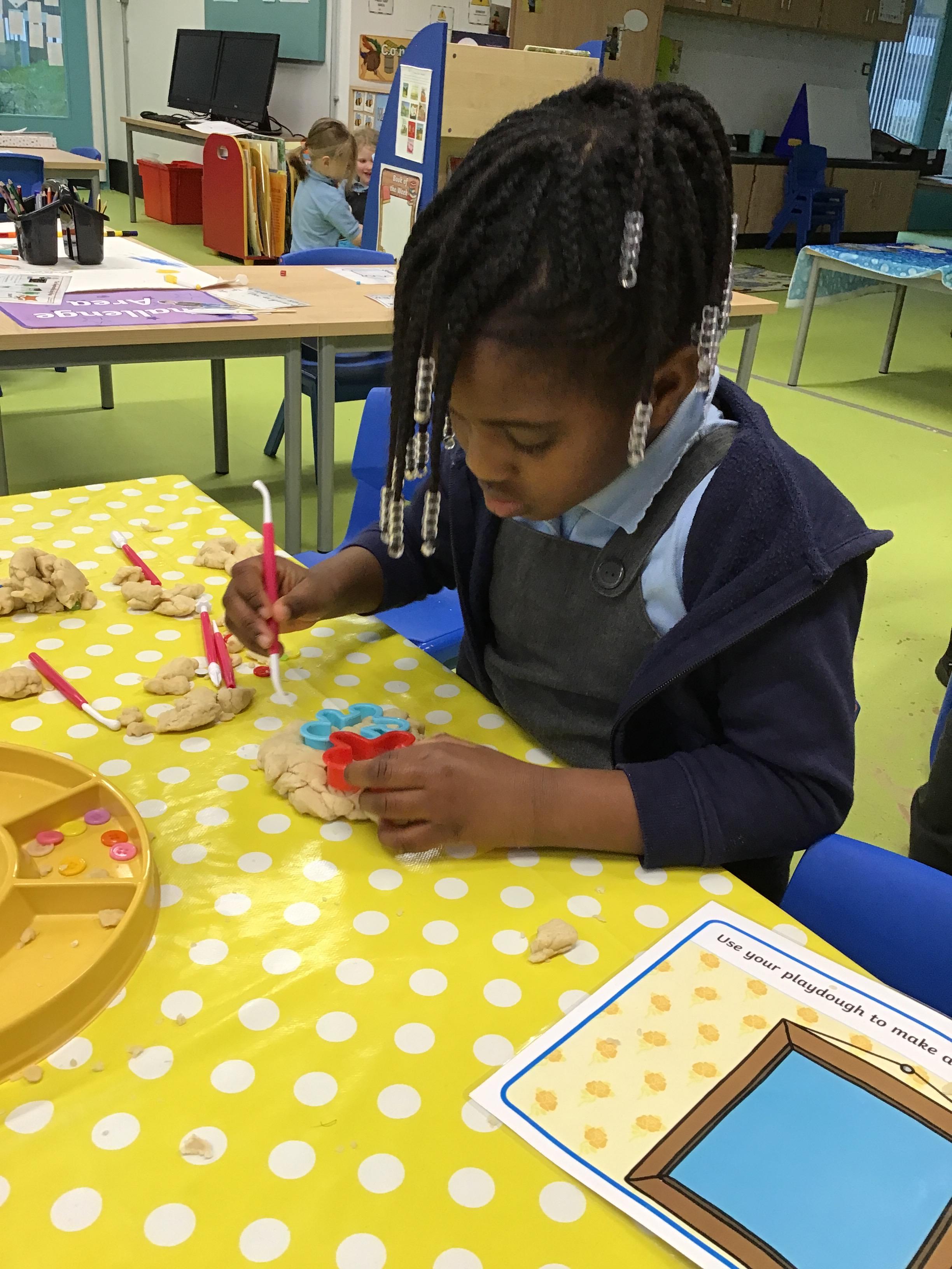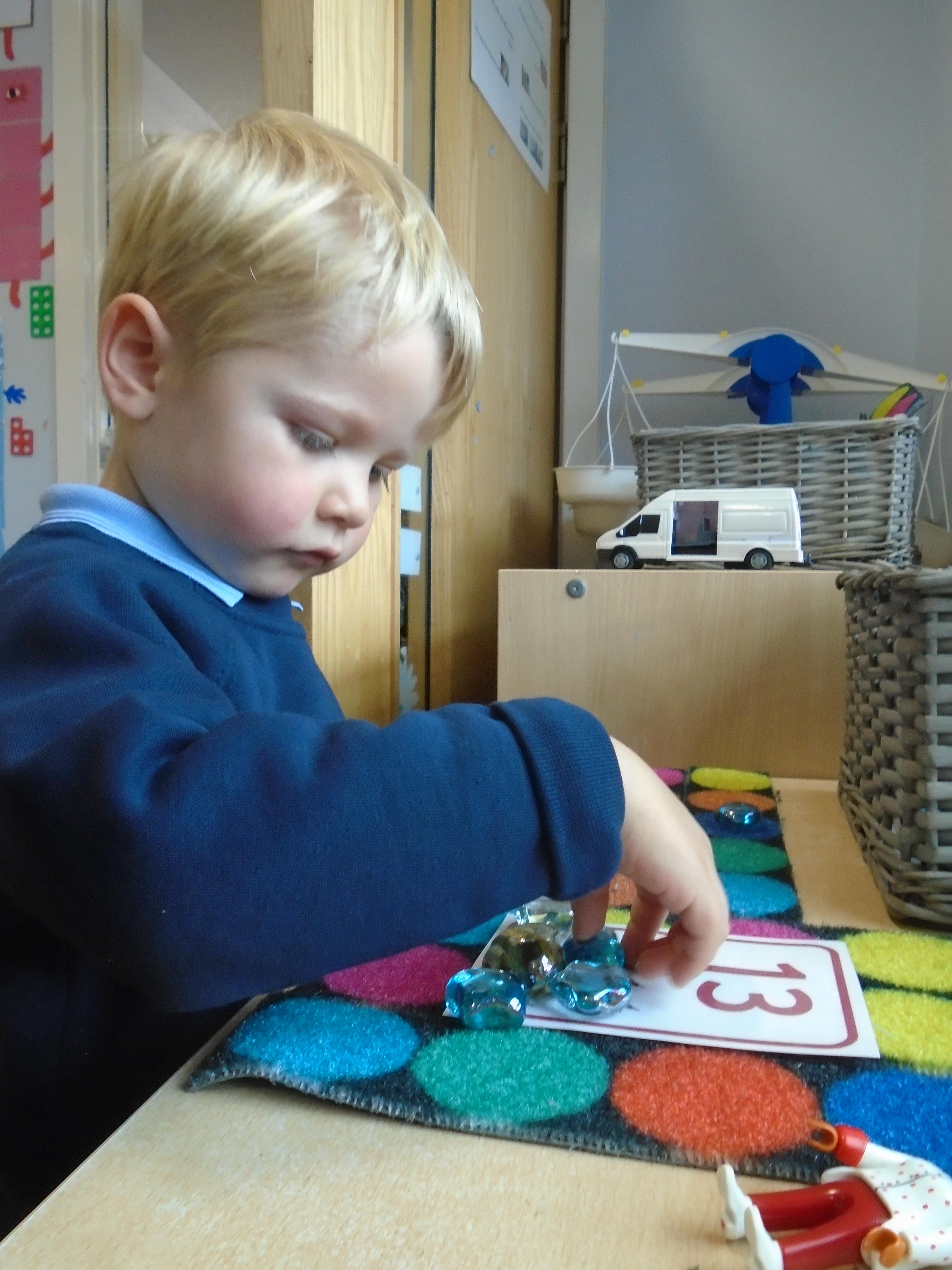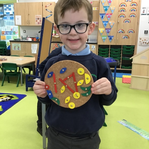 The children have settled in quickly to the new routines at school and all appear to be looking forward to starting full time next week. The children have been looking at the topic, 'ourselves.' In group time, the children have been looking at feelings and thinking about how things make us feel. In maths, the children have started to subitise numbers 1 and 2 and start to think about the number 3. The children practically made arrangements with counters to show the number 3. In continuous provision, the children have been creating pictures of their families, mark making around their favourite television characters, creating play dough faces and role playing in the home corner. Outside, the children have enjoyed mark making with chalk, exploring the climbing frame and playing in the mud kitchen. In outdoor learning, the children have represented numbers using different natural materials and made clay faces.