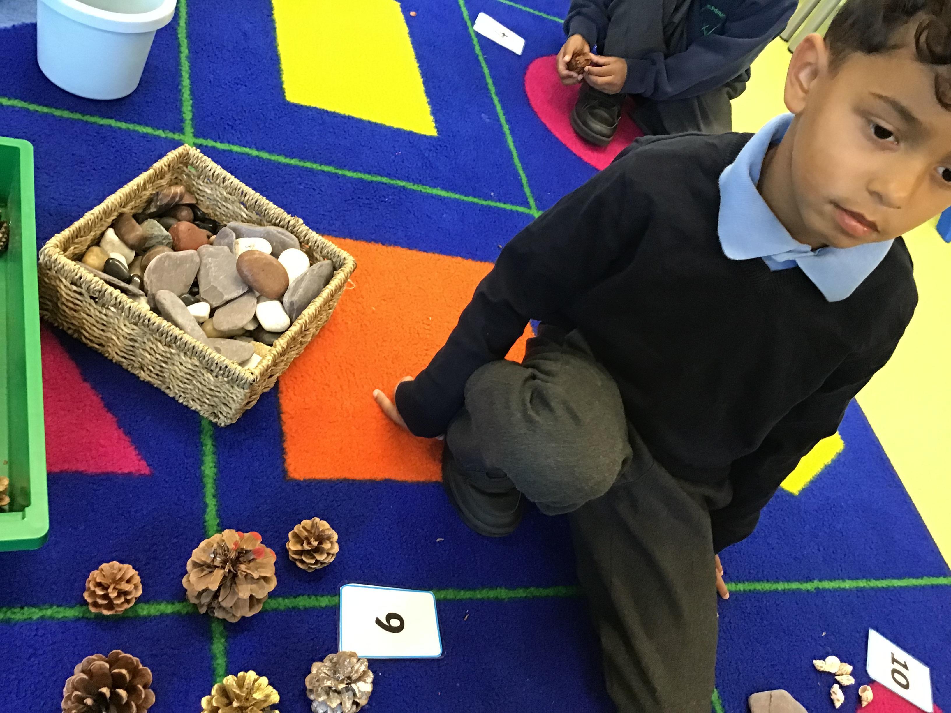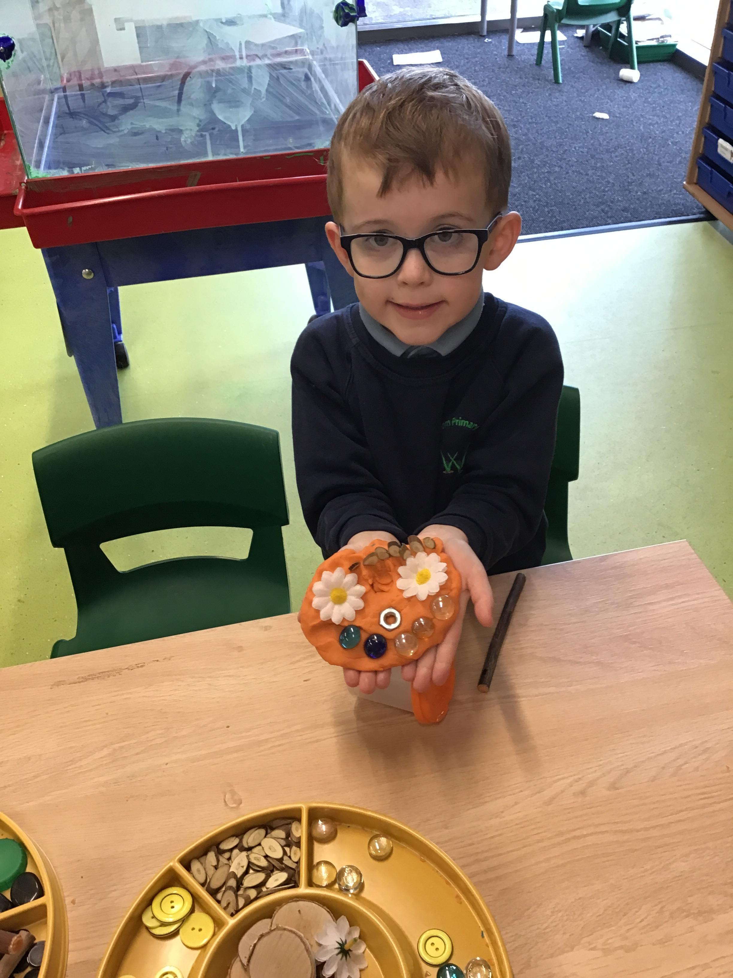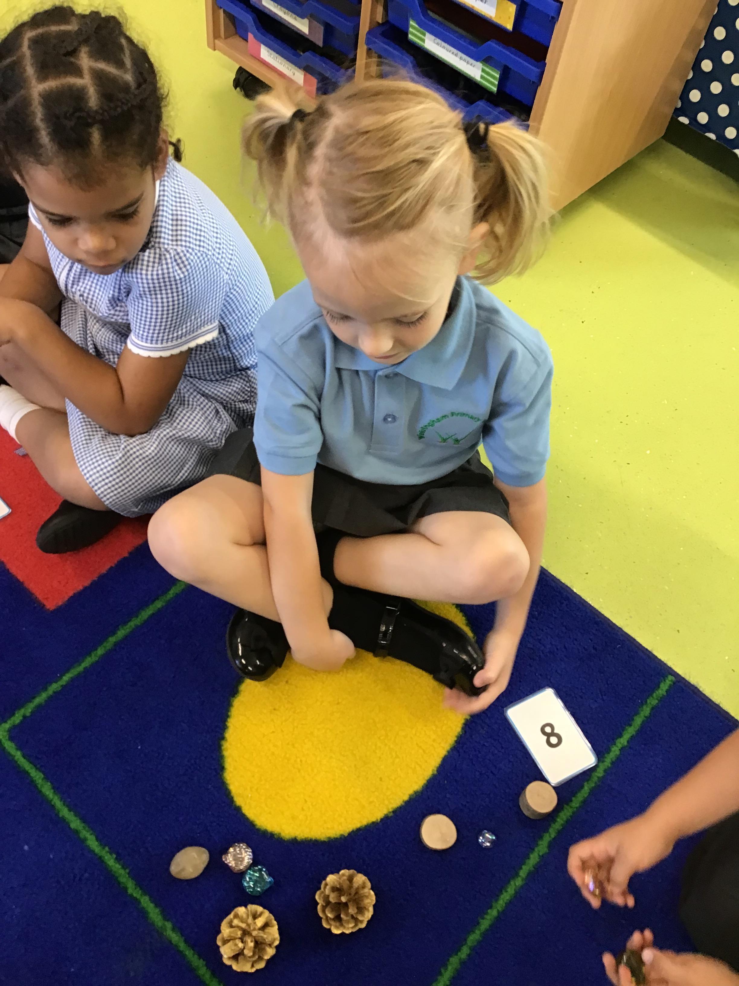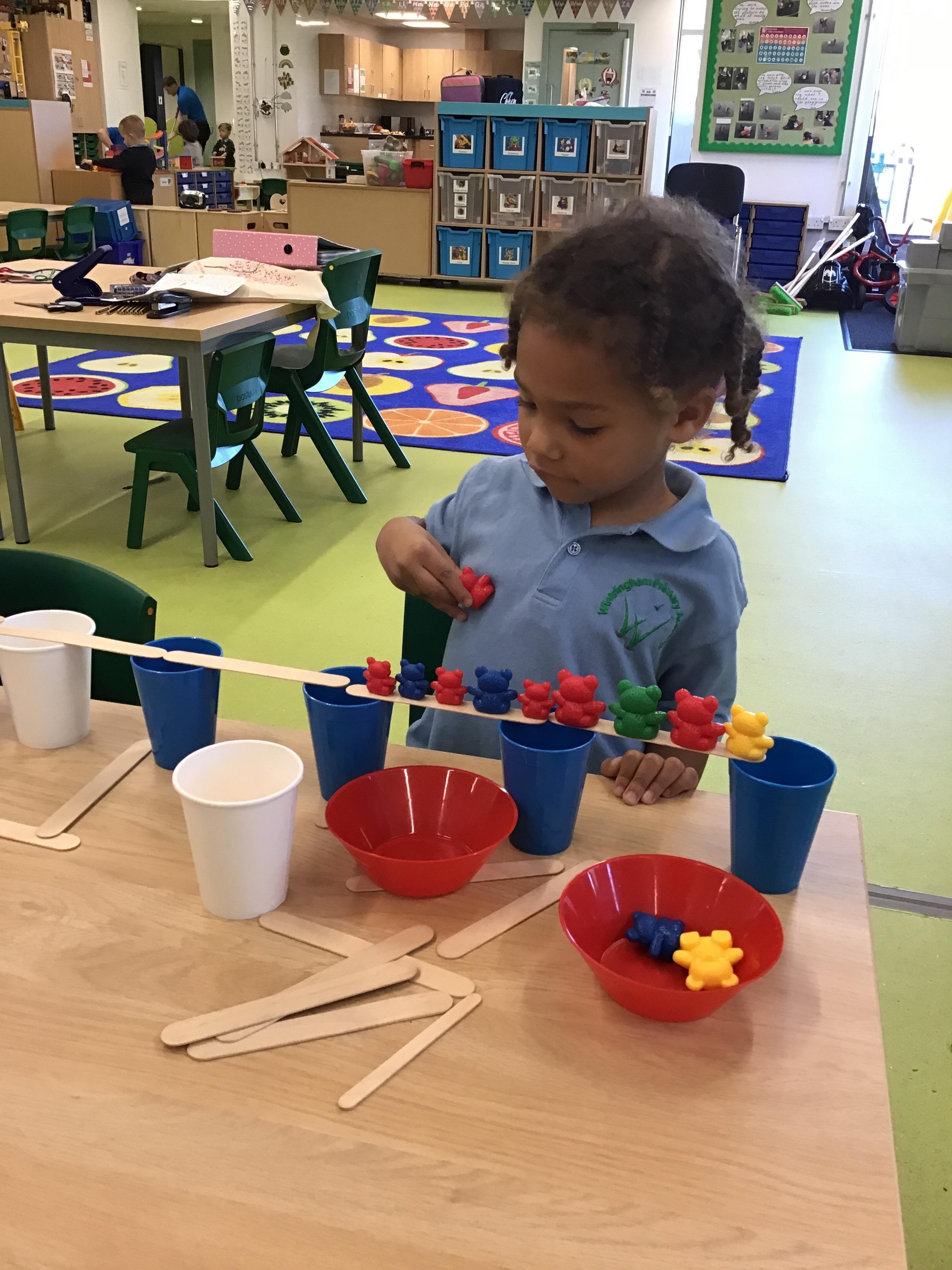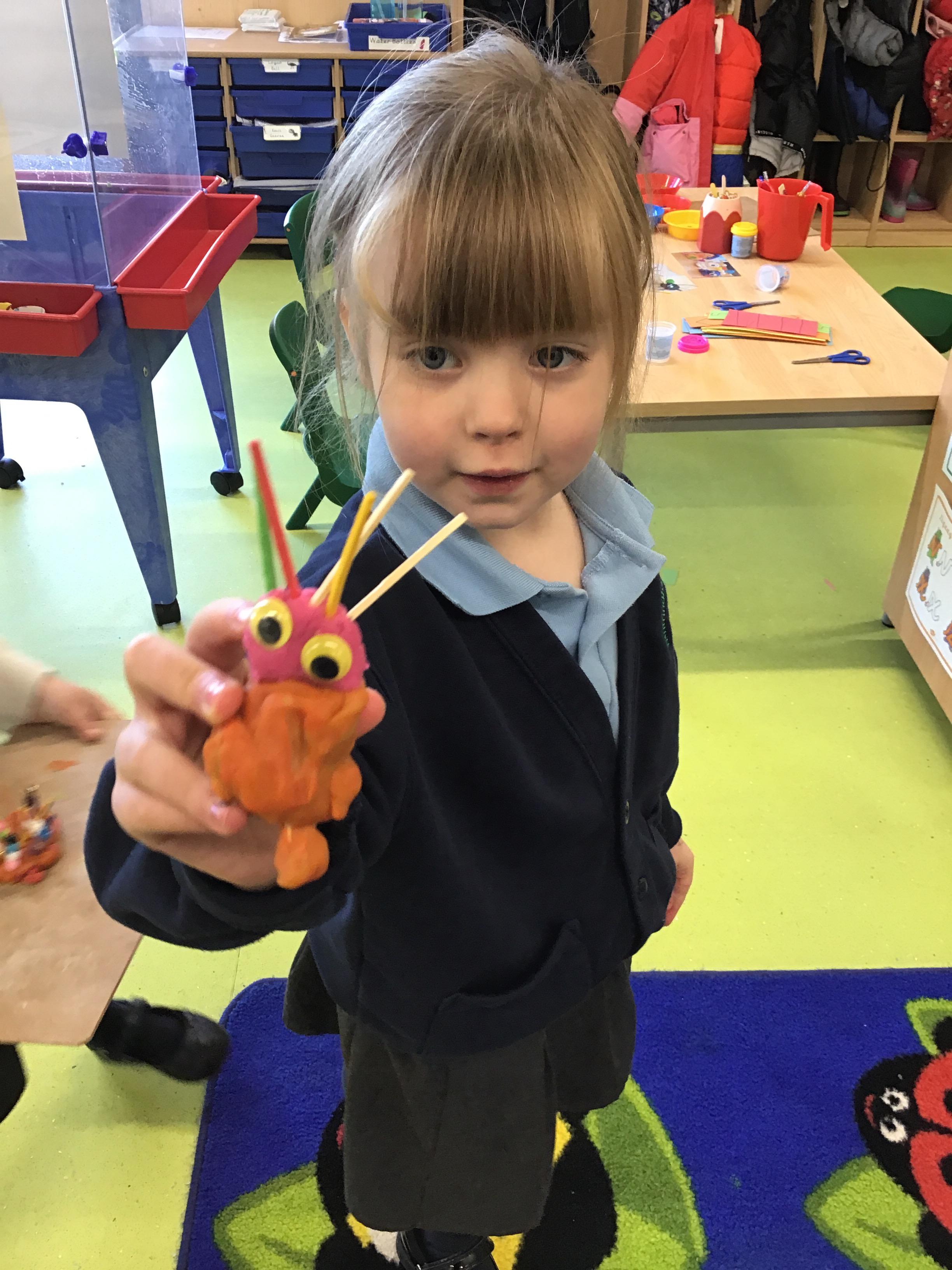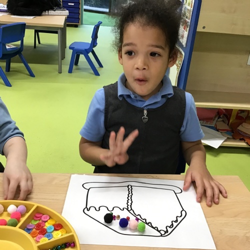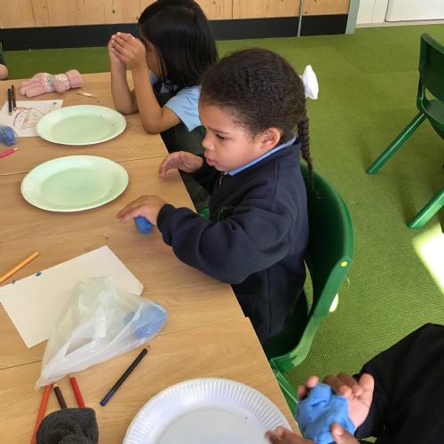 The children have settled in quickly to the new routines at school and all appear to be looking forward to starting full time next week. The children have been looking at the topic, 'ourselves.' In group time, the children have been looking at feelings and thinking about how things make us feel. In maths, the children have started to subitise numbers 1 and 2 and start to think about the number 3. The children practically made arrangements with counters to show the number 3. In continuous provision, the children have been creating pictures of their families, mark making around their favourite television characters, creating play dough faces and role playing in the home corner. Outside, the children have enjoyed mark making with chalk, exploring the climbing frame and playing in the mud kitchen. In outdoor learning, the children have represented numbers using different natural materials and made clay faces.