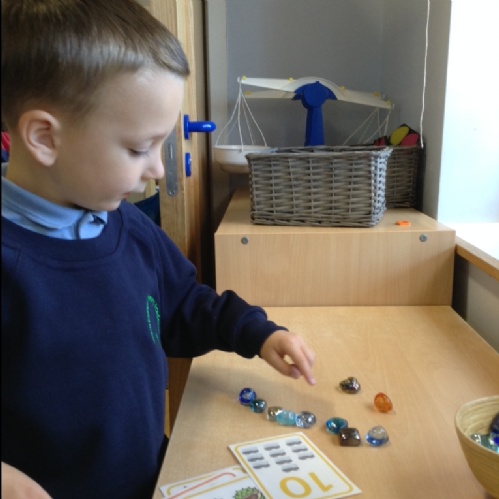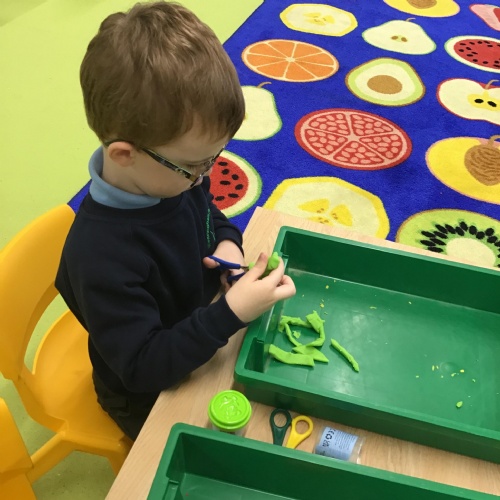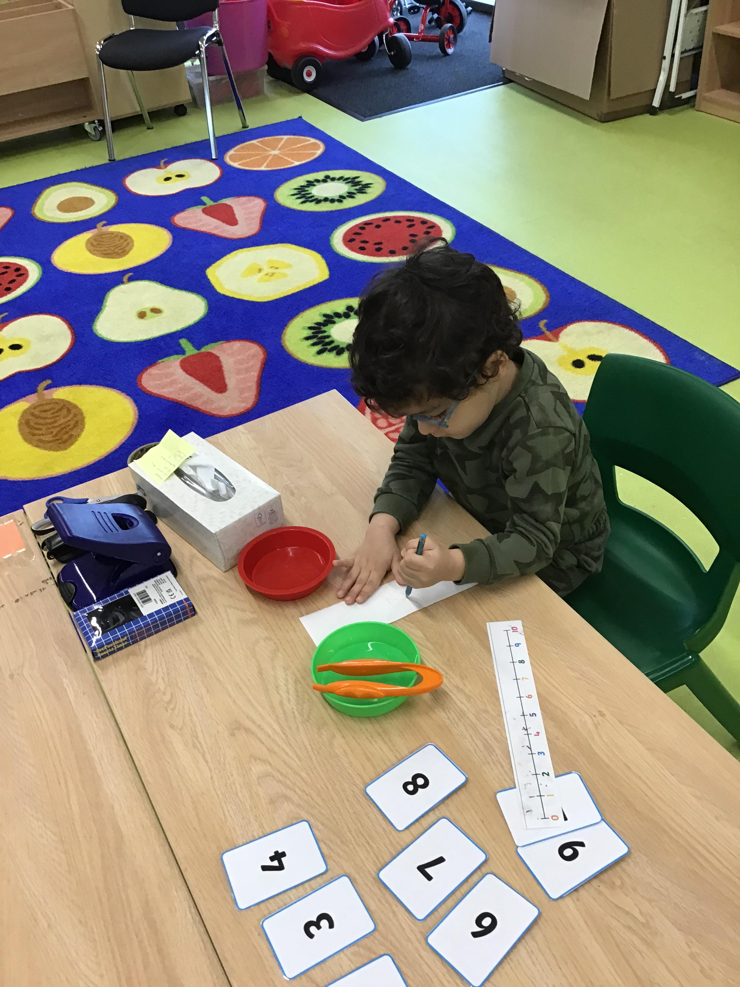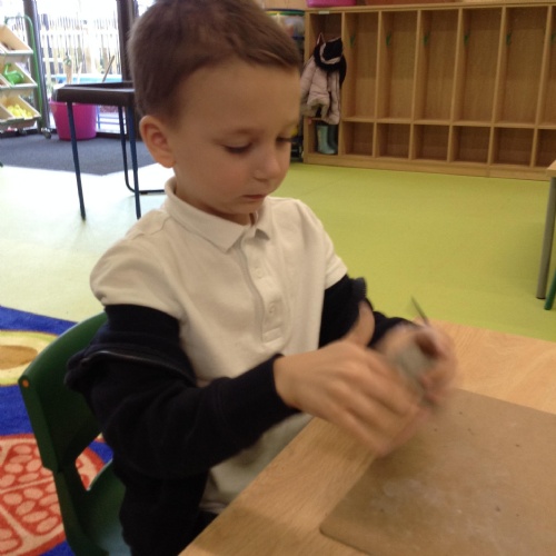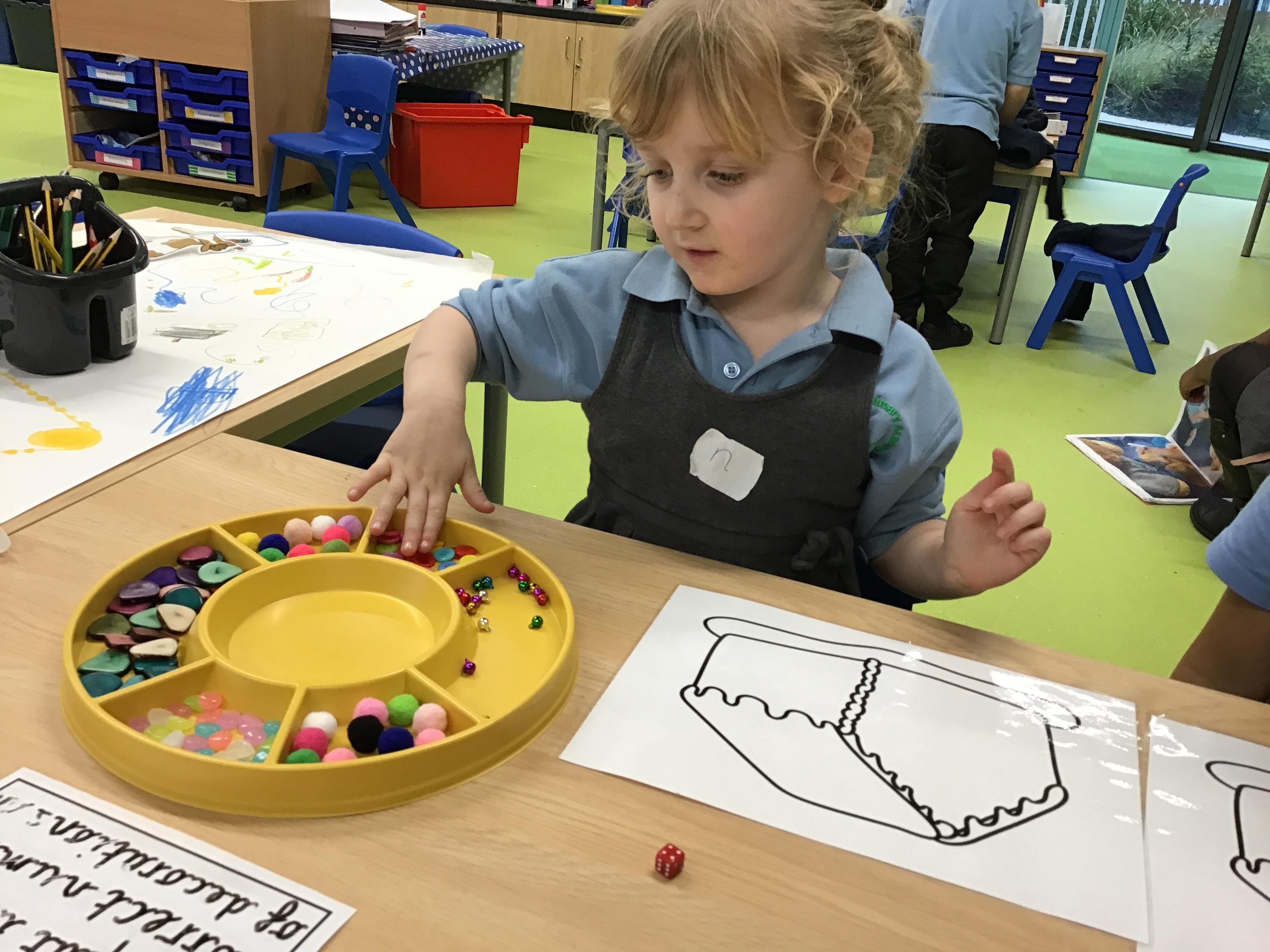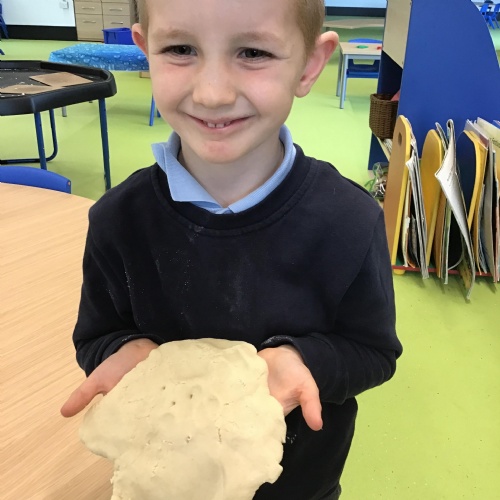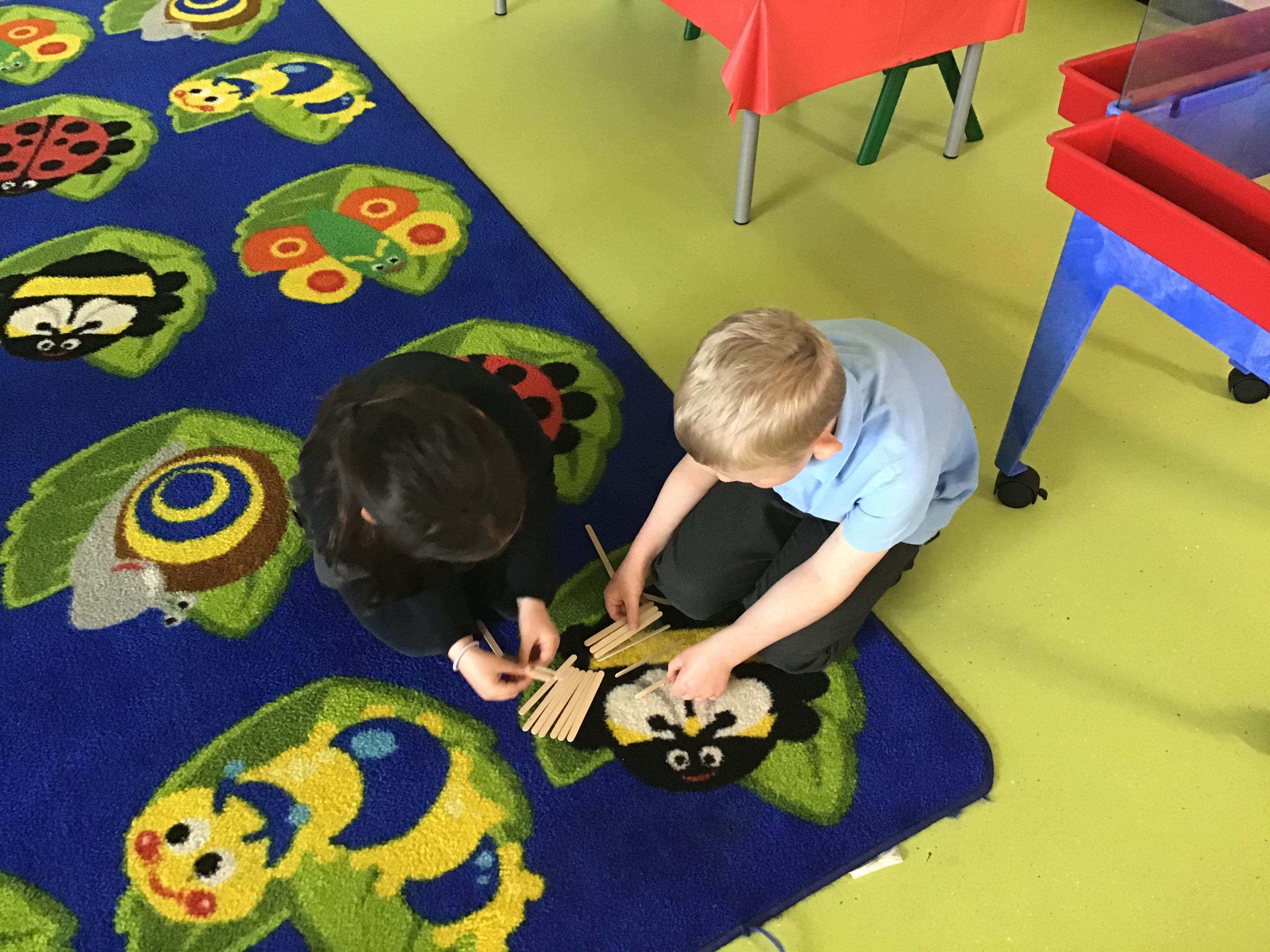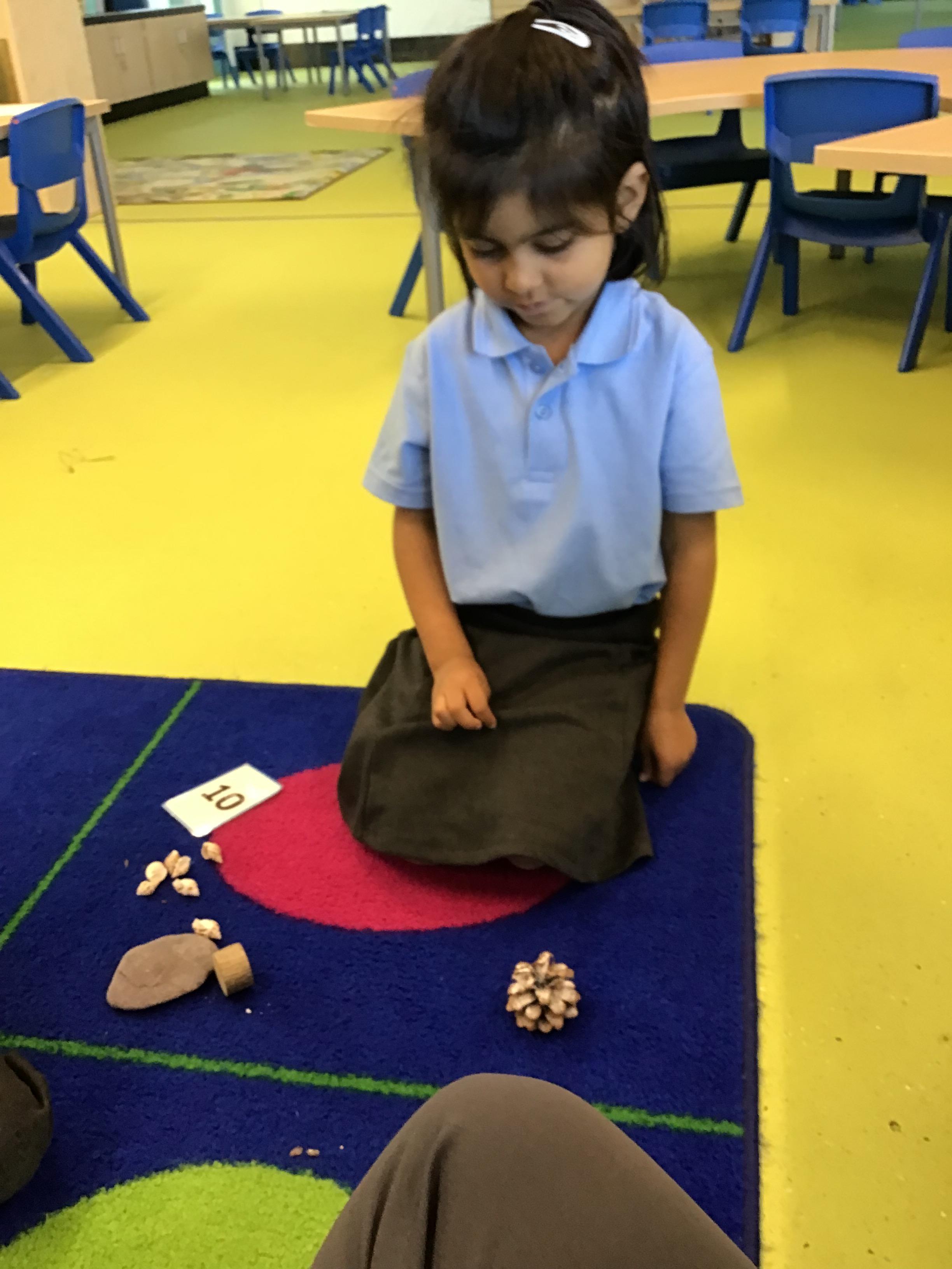 The children have settled in quickly to the new routines at school and all appear to be looking forward to starting full time next week. The children have been looking at the topic, 'ourselves.' In group time, the children have been looking at feelings and thinking about how things make us feel. In maths, the children have started to subitise numbers 1 and 2 and start to think about the number 3. The children practically made arrangements with counters to show the number 3. In continuous provision, the children have been creating pictures of their families, mark making around their favourite television characters, creating play dough faces and role playing in the home corner. Outside, the children have enjoyed mark making with chalk, exploring the climbing frame and playing in the mud kitchen. In outdoor learning, the children have represented numbers using different natural materials and made clay faces.