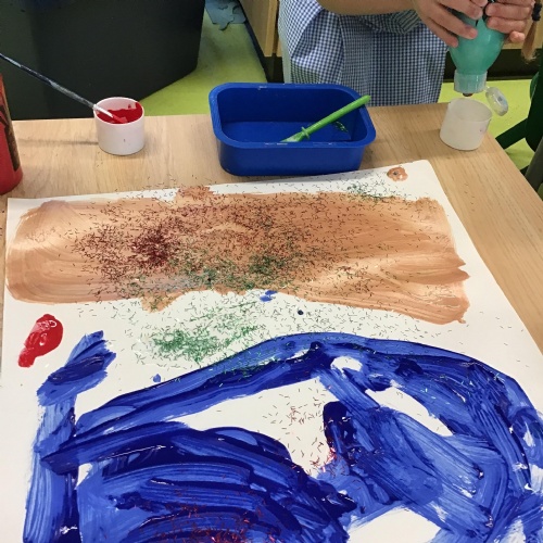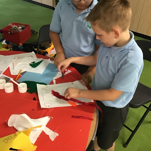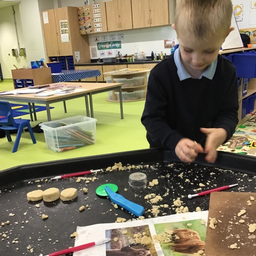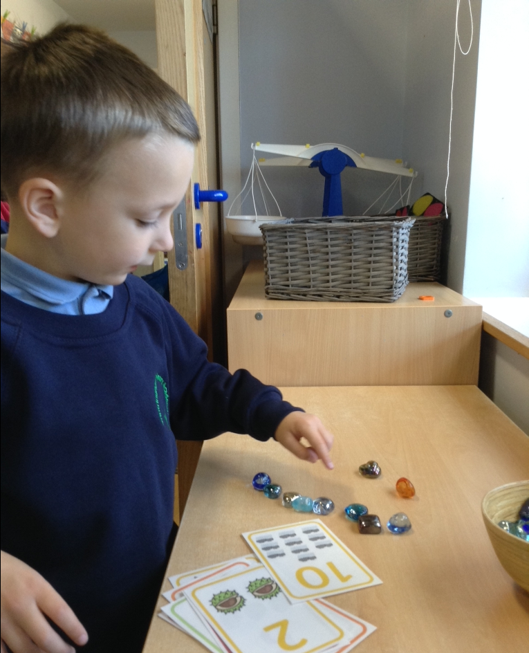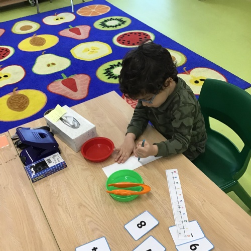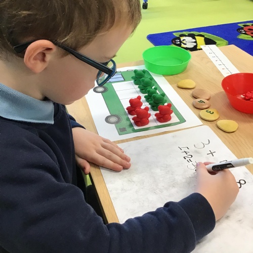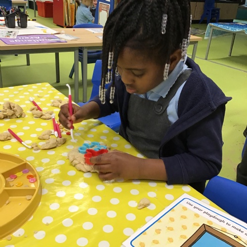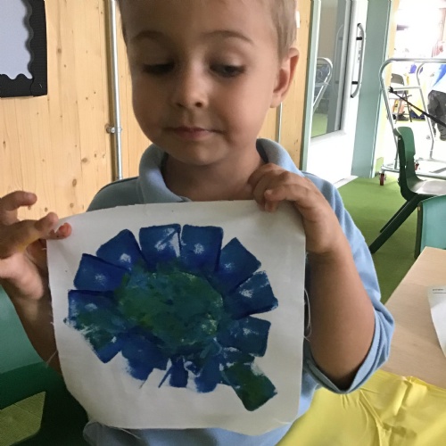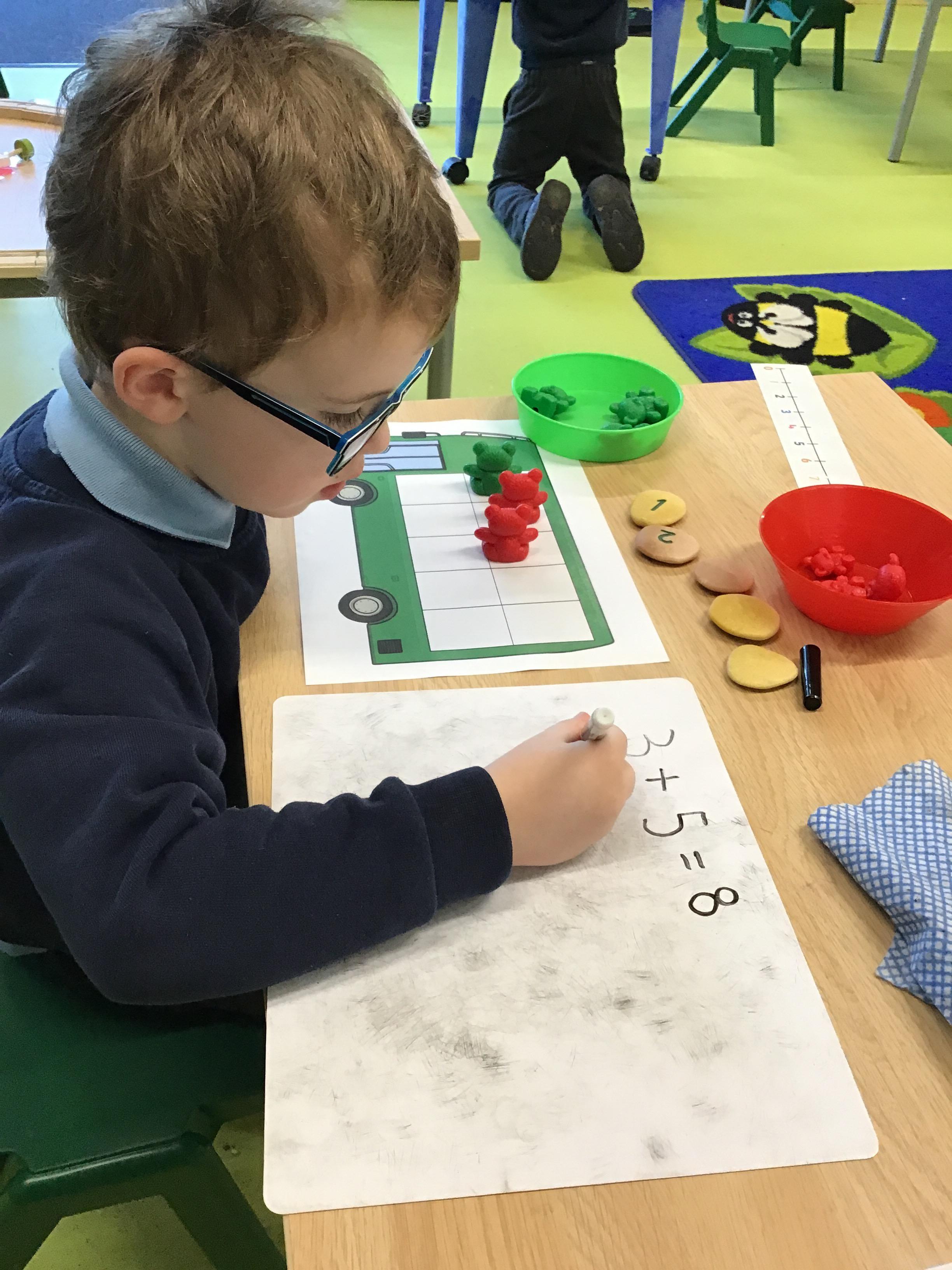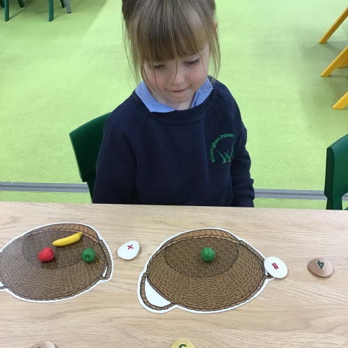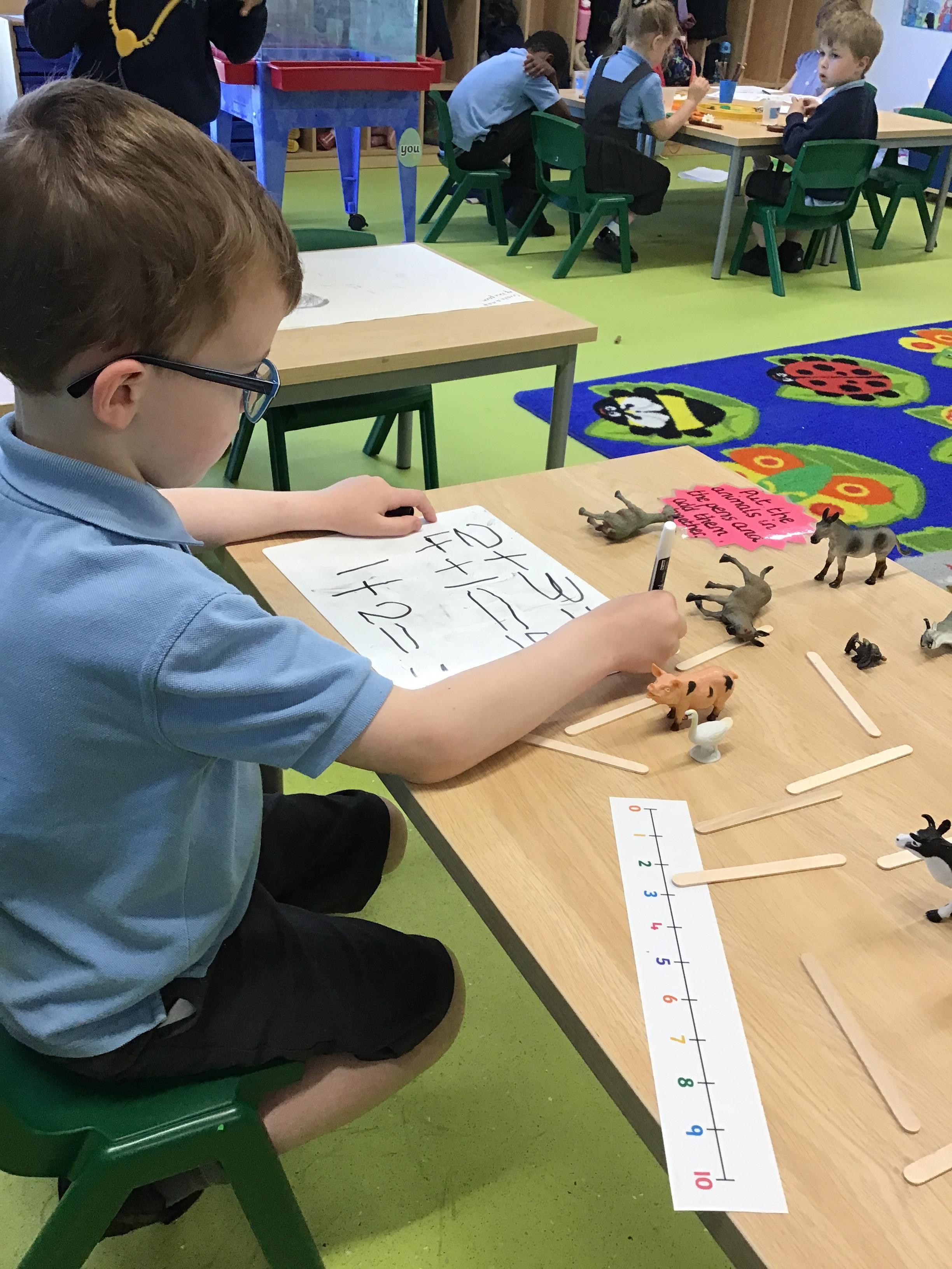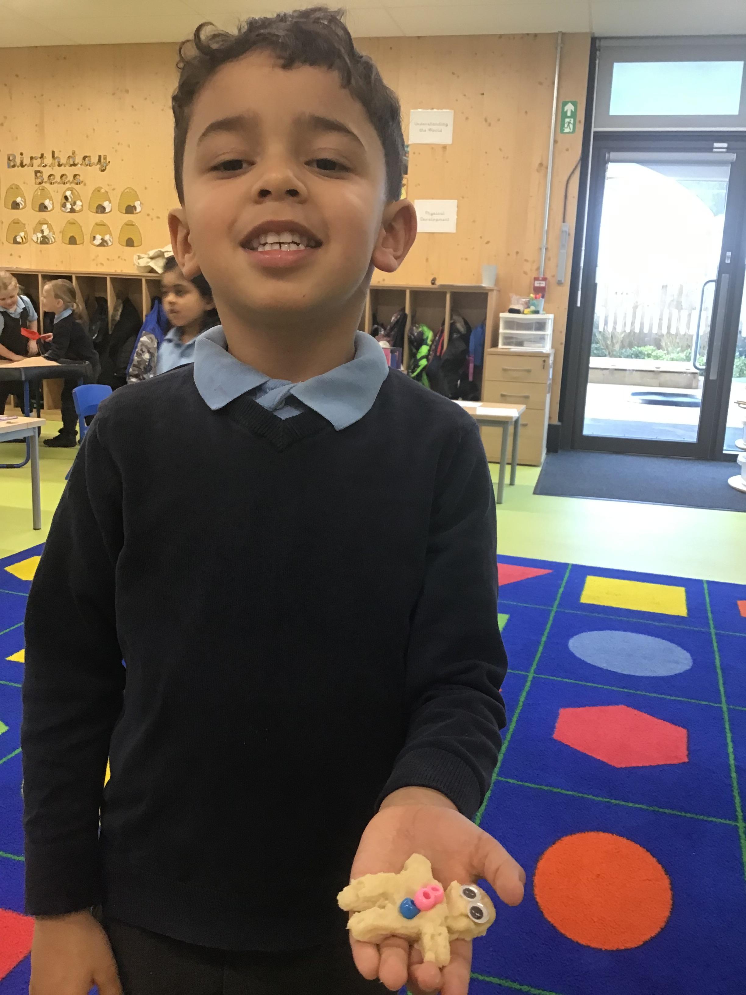 The children have settled in quickly to the new routines at school and all appear to be looking forward to starting full time next week. The children have been looking at the topic, 'ourselves.' In group time, the children have been looking at feelings and thinking about how things make us feel. In maths, the children have started to subitise numbers 1 and 2 and start to think about the number 3. The children practically made arrangements with counters to show the number 3. In continuous provision, the children have been creating pictures of their families, mark making around their favourite television characters, creating play dough faces and role playing in the home corner. Outside, the children have enjoyed mark making with chalk, exploring the climbing frame and playing in the mud kitchen. In outdoor learning, the children have represented numbers using different natural materials and made clay faces.