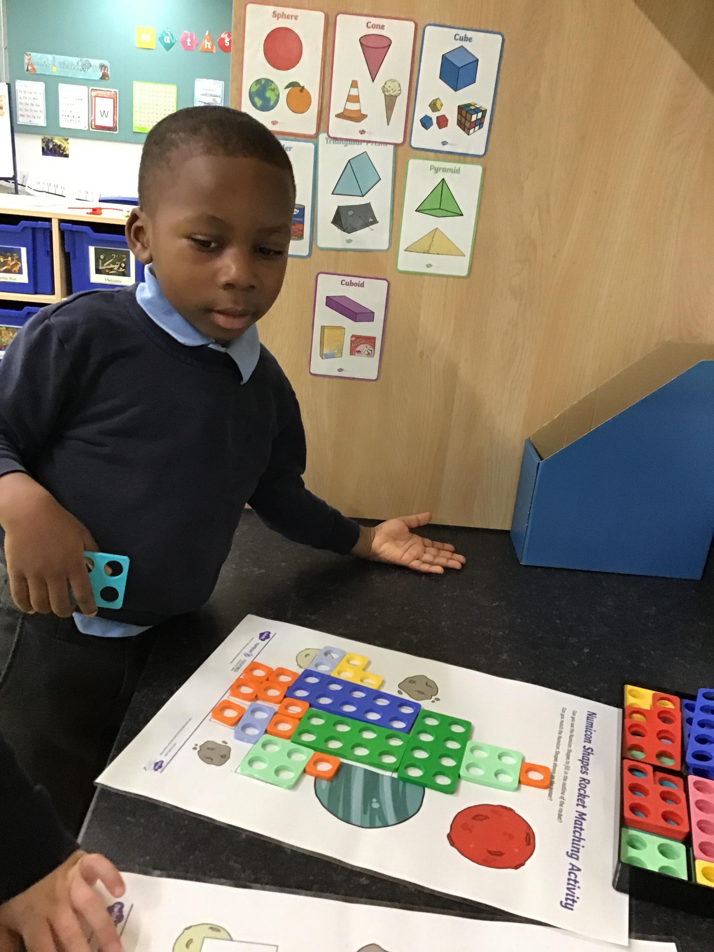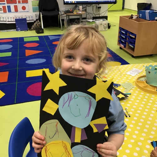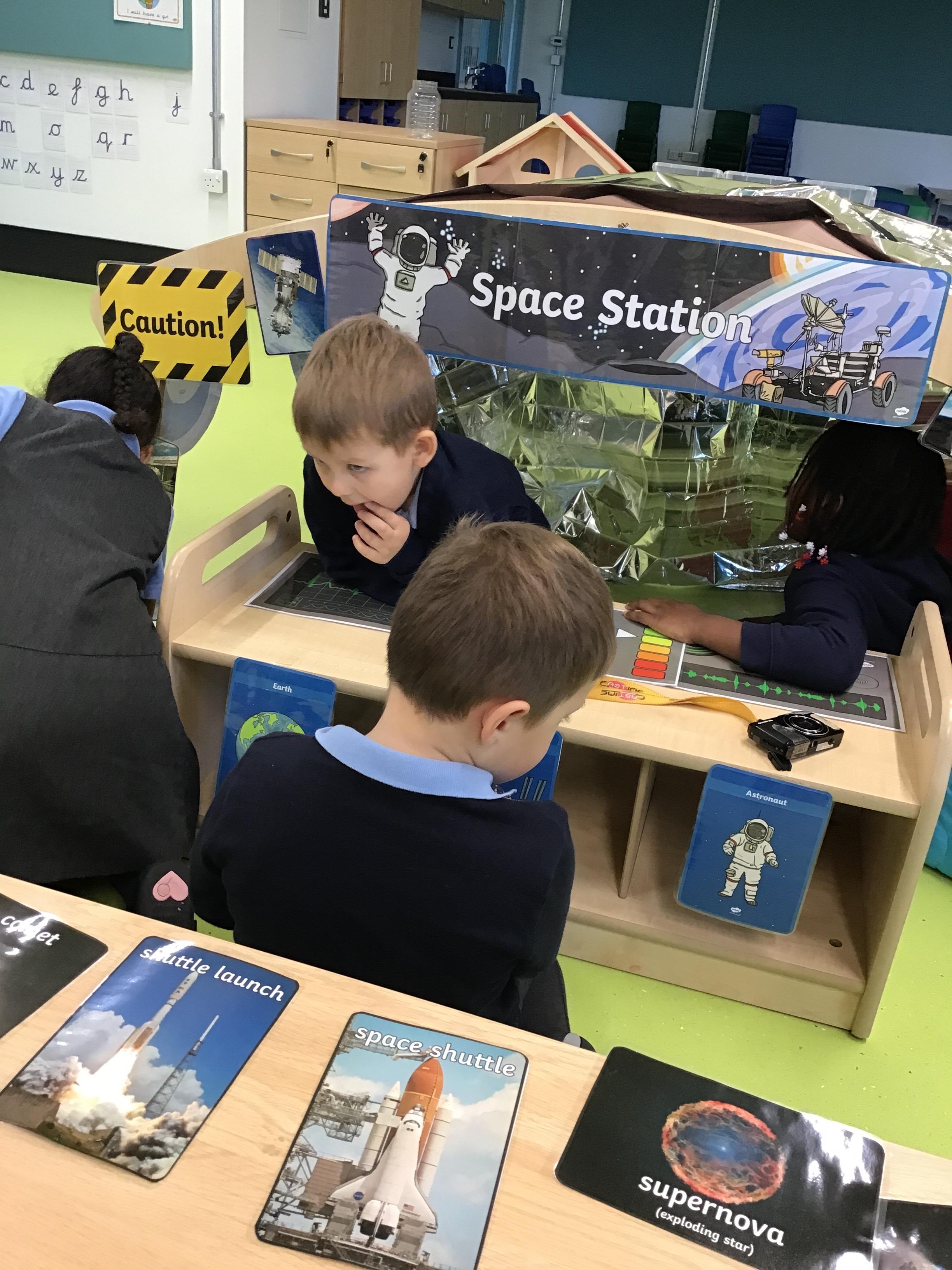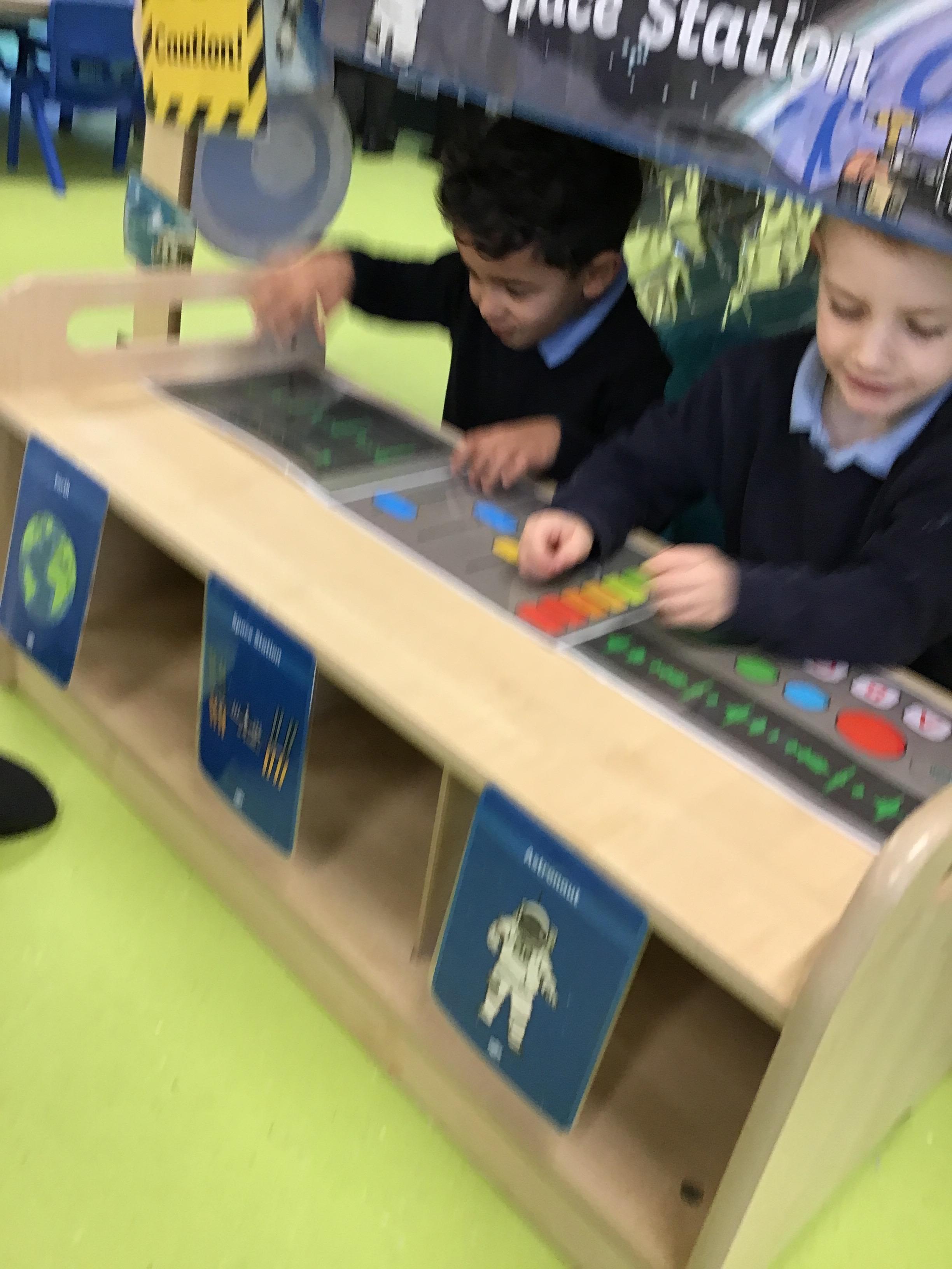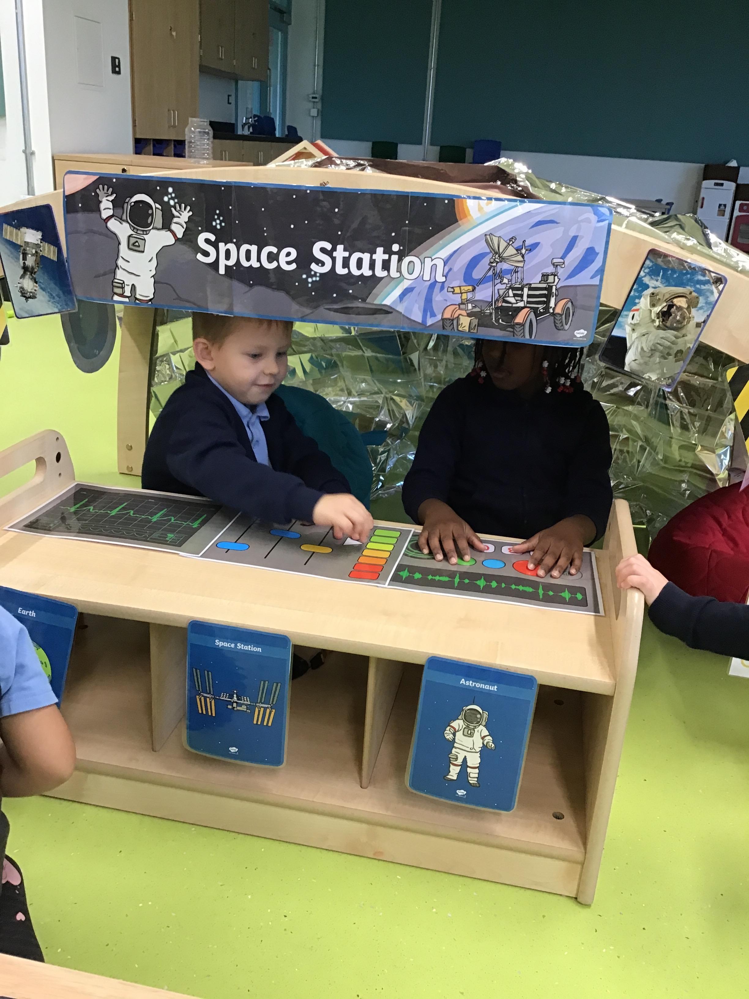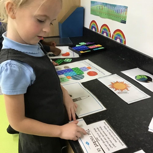 The children have been enjoying exploring their new topic, 'Space.' The children started the week by thinking about what they already know and what they would like to find out. The children came up with questions that we will answer over the coming weeks. The children enjoyed exploring the text, 'Whatever Next.' They were able to confidently re tell the story and also wrote a post card pretending to be the bear who went to space. In continuous provision, the children have role played in the space station, used different construction materials to make rockets, used Numicon to create a rocket and wrote their own space facts. The children have thoroughly enjoyed their first week and are looking forward to learning more next week.
