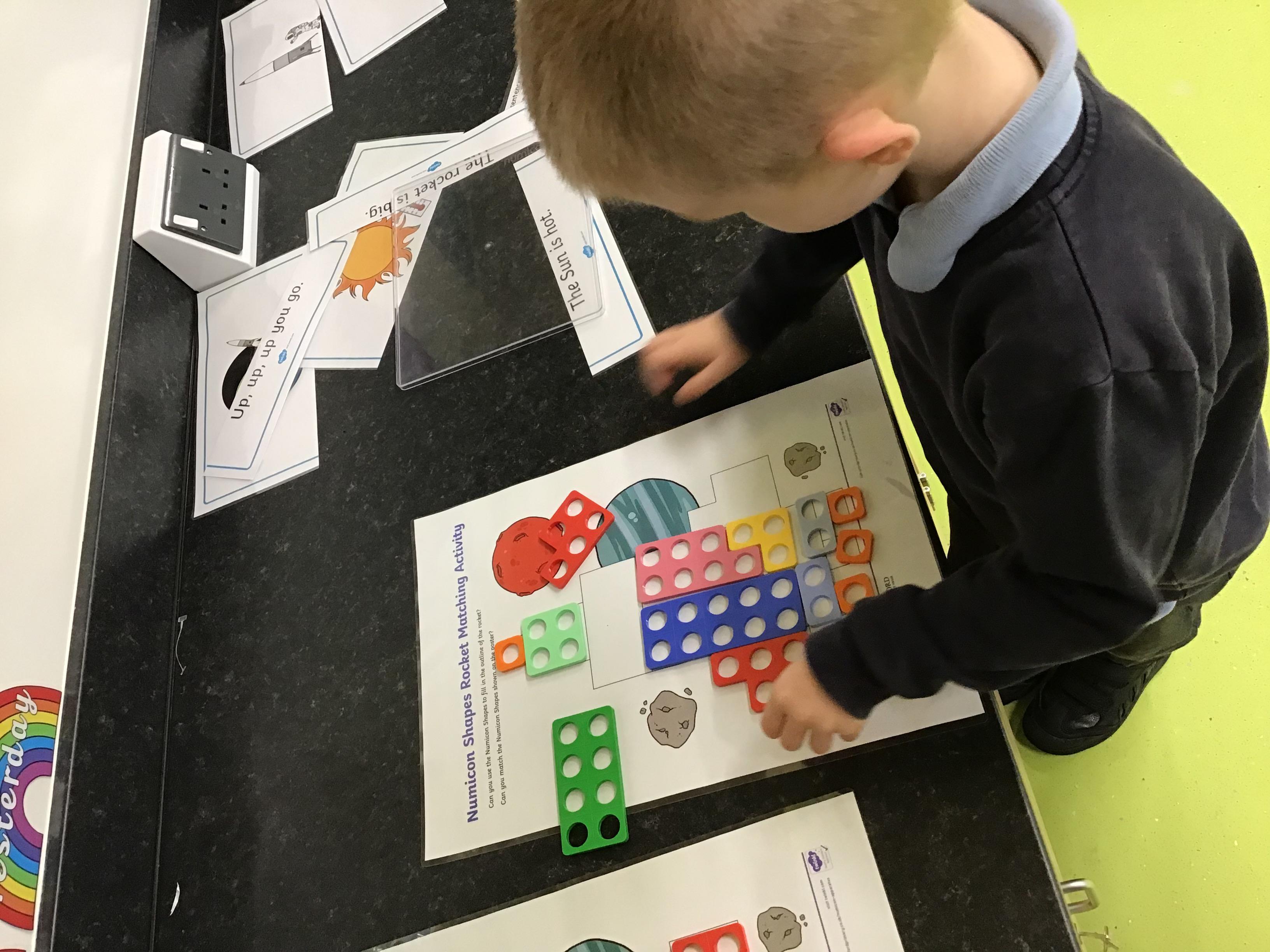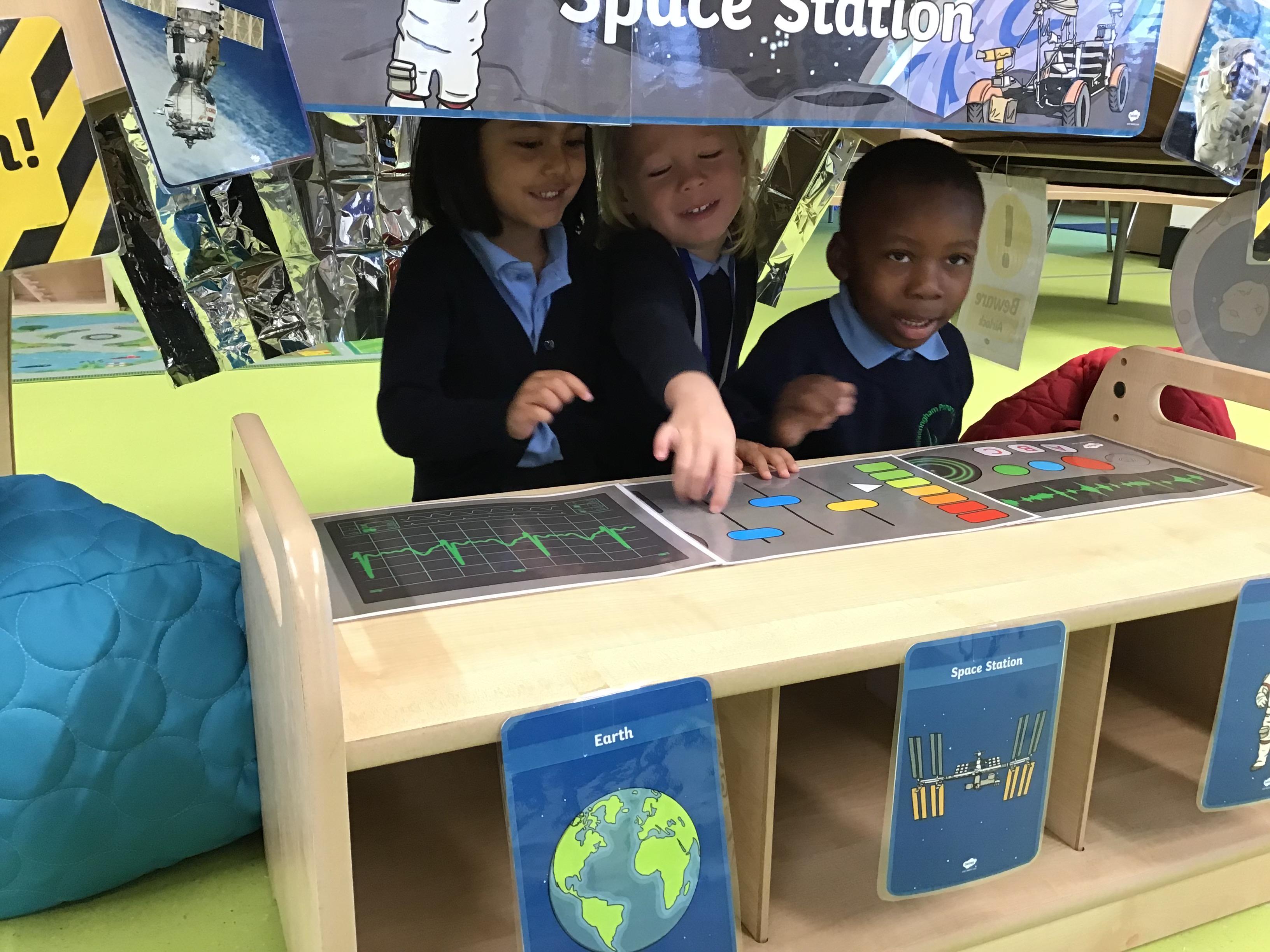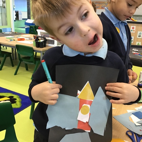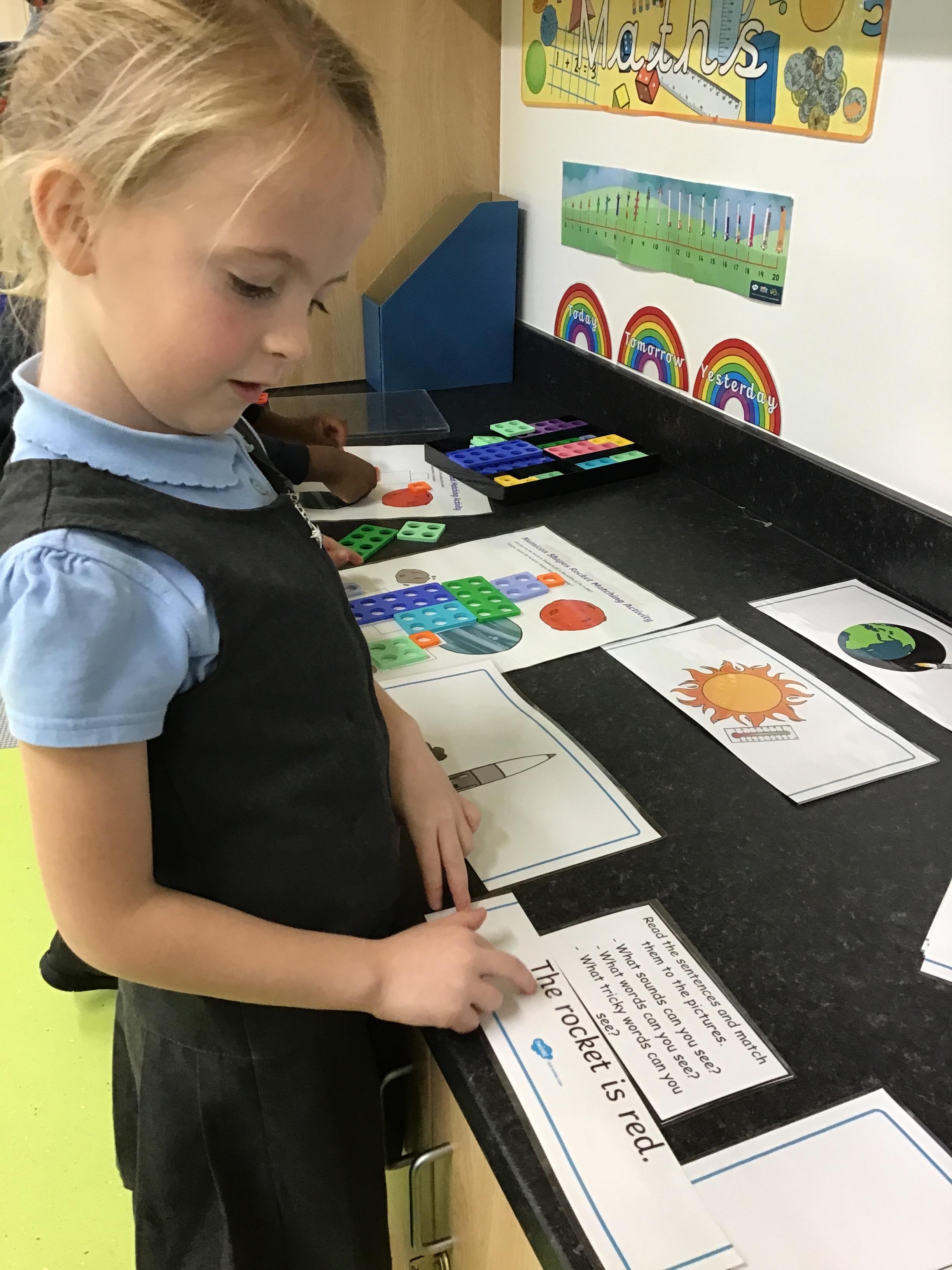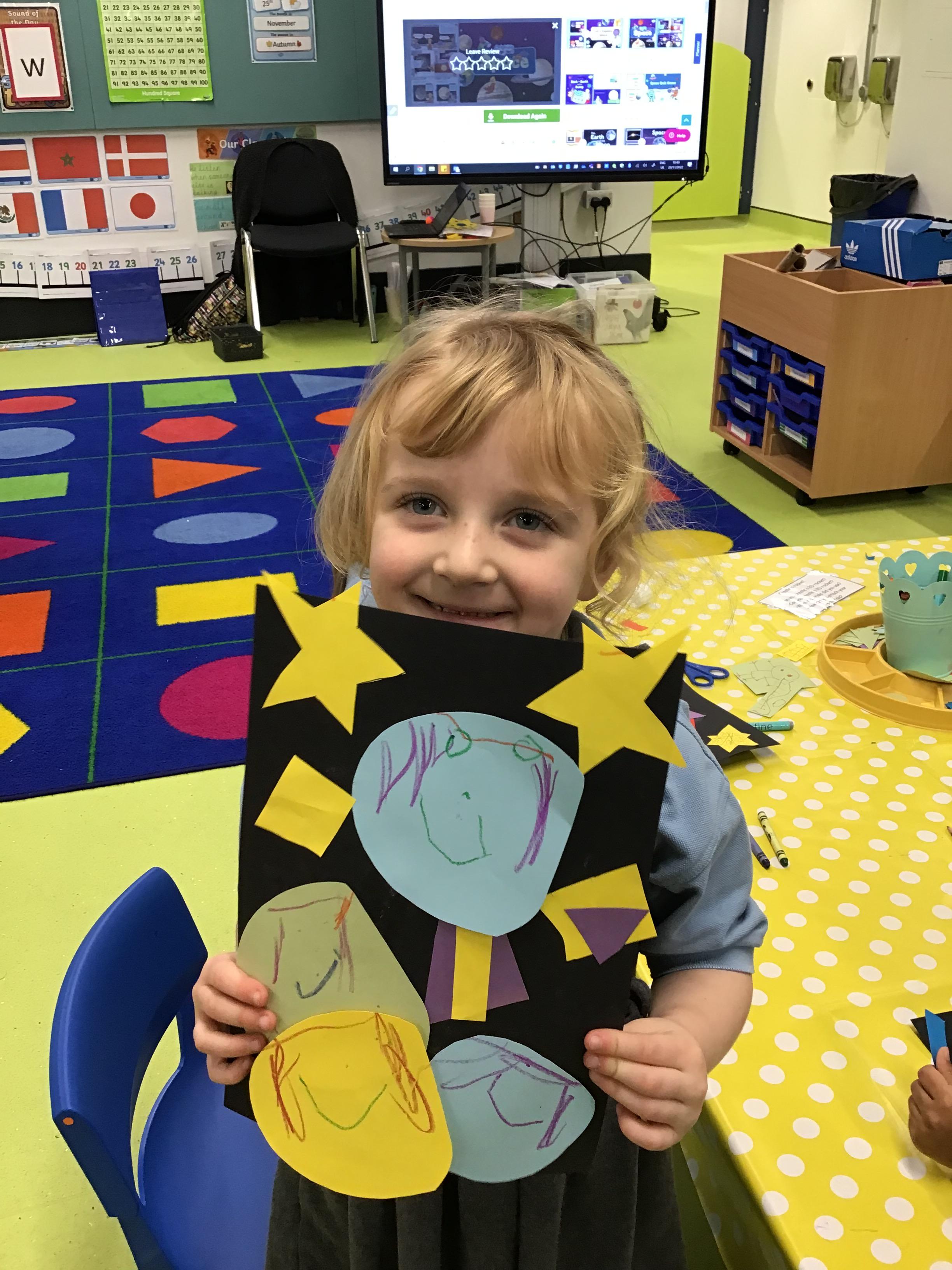 The children have been enjoying exploring their new topic, 'Space.' The children started the week by thinking about what they already know and what they would like to find out. The children came up with questions that we will answer over the coming weeks. The children enjoyed exploring the text, 'Whatever Next.' They were able to confidently re tell the story and also wrote a post card pretending to be the bear who went to space. In continuous provision, the children have role played in the space station, used different construction materials to make rockets, used Numicon to create a rocket and wrote their own space facts. The children have thoroughly enjoyed their first week and are looking forward to learning more next week.