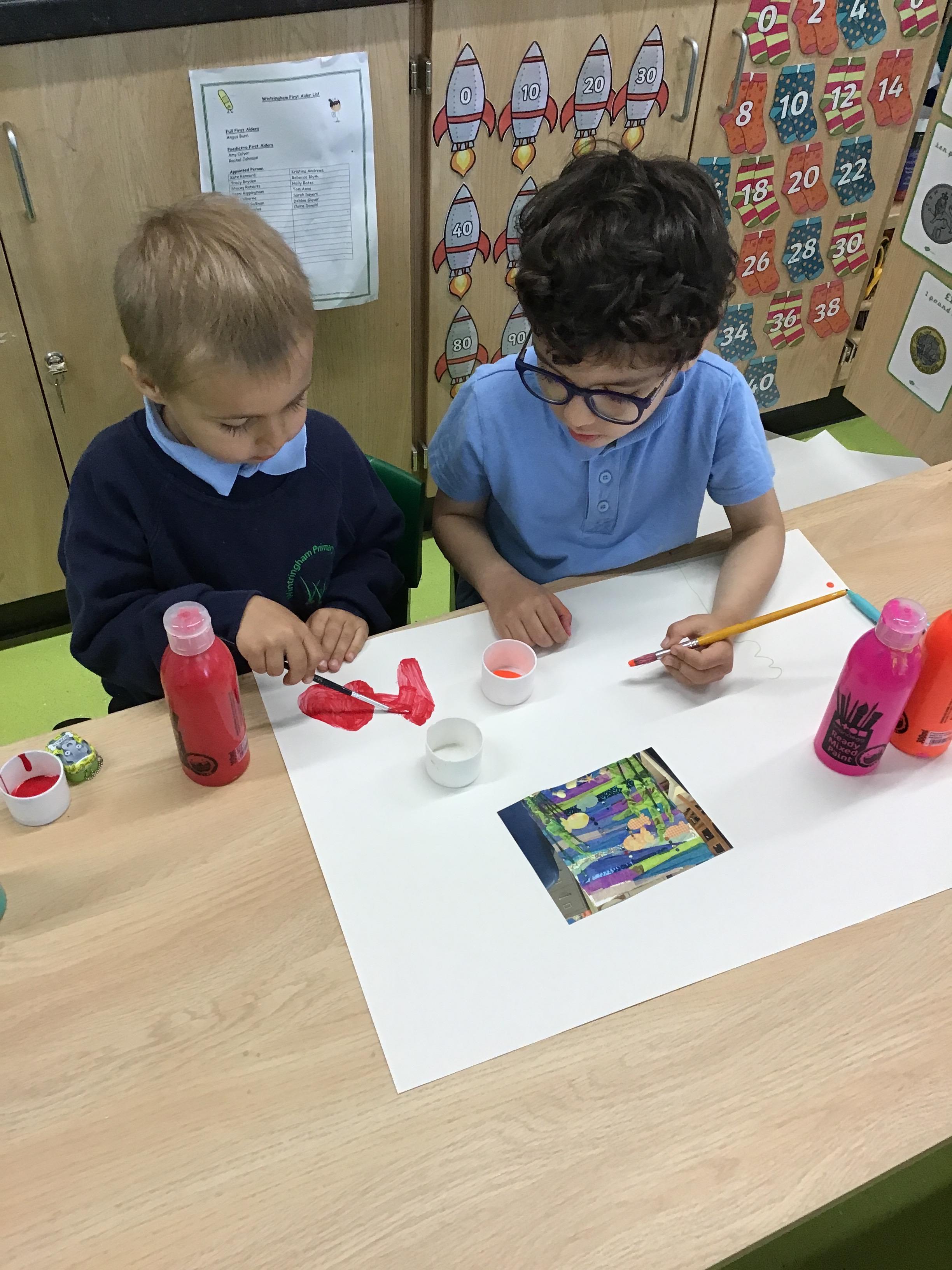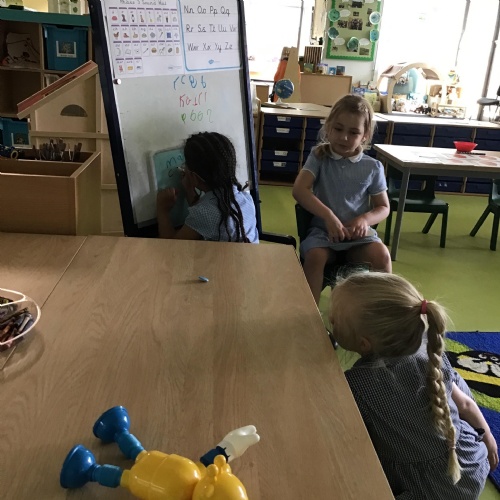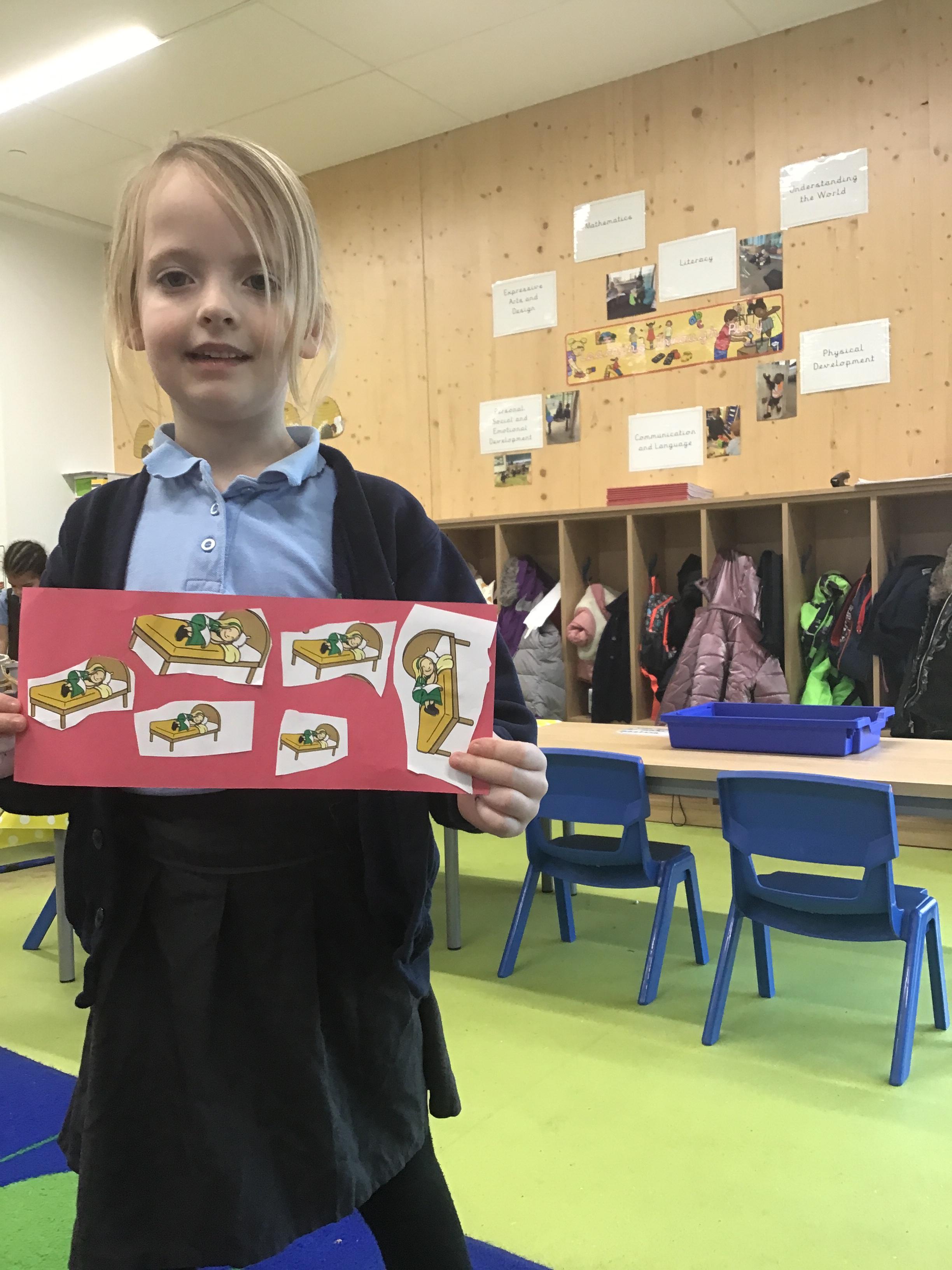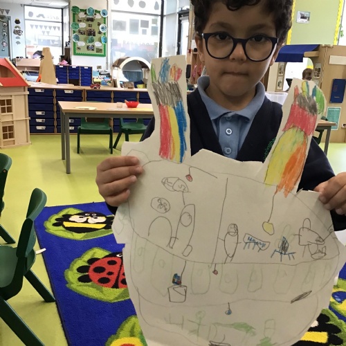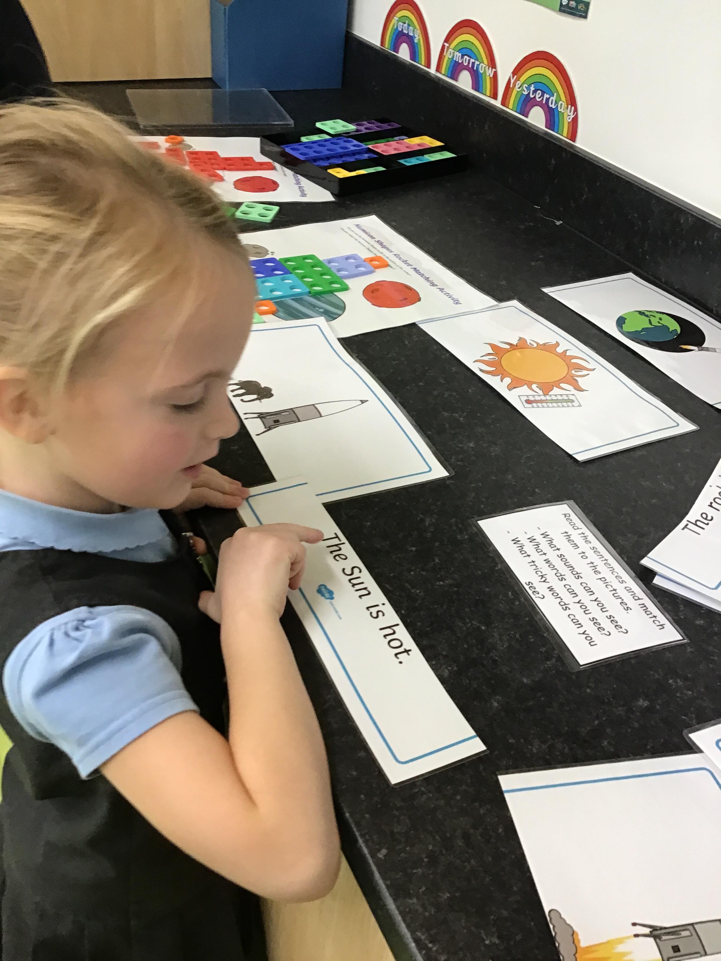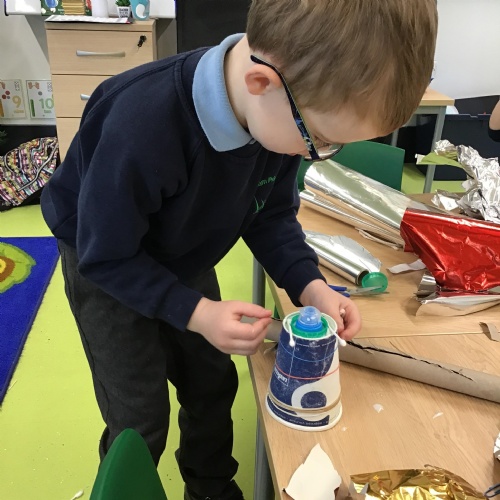 The children have been enjoying exploring their new topic, 'Space.' The children started the week by thinking about what they already know and what they would like to find out. The children came up with questions that we will answer over the coming weeks. The children enjoyed exploring the text, 'Whatever Next.' They were able to confidently re tell the story and also wrote a post card pretending to be the bear who went to space. In continuous provision, the children have role played in the space station, used different construction materials to make rockets, used Numicon to create a rocket and wrote their own space facts. The children have thoroughly enjoyed their first week and are looking forward to learning more next week.