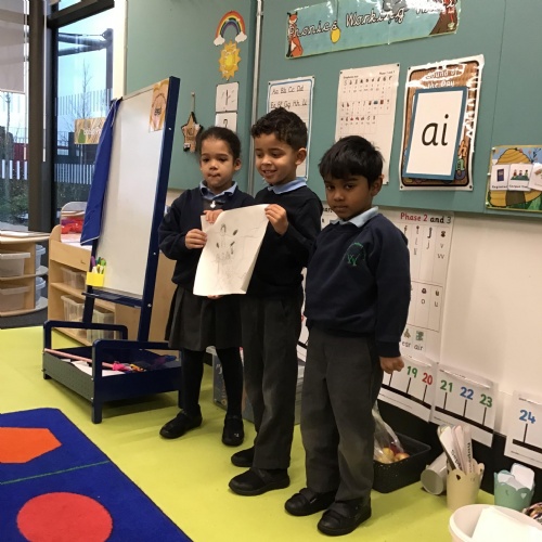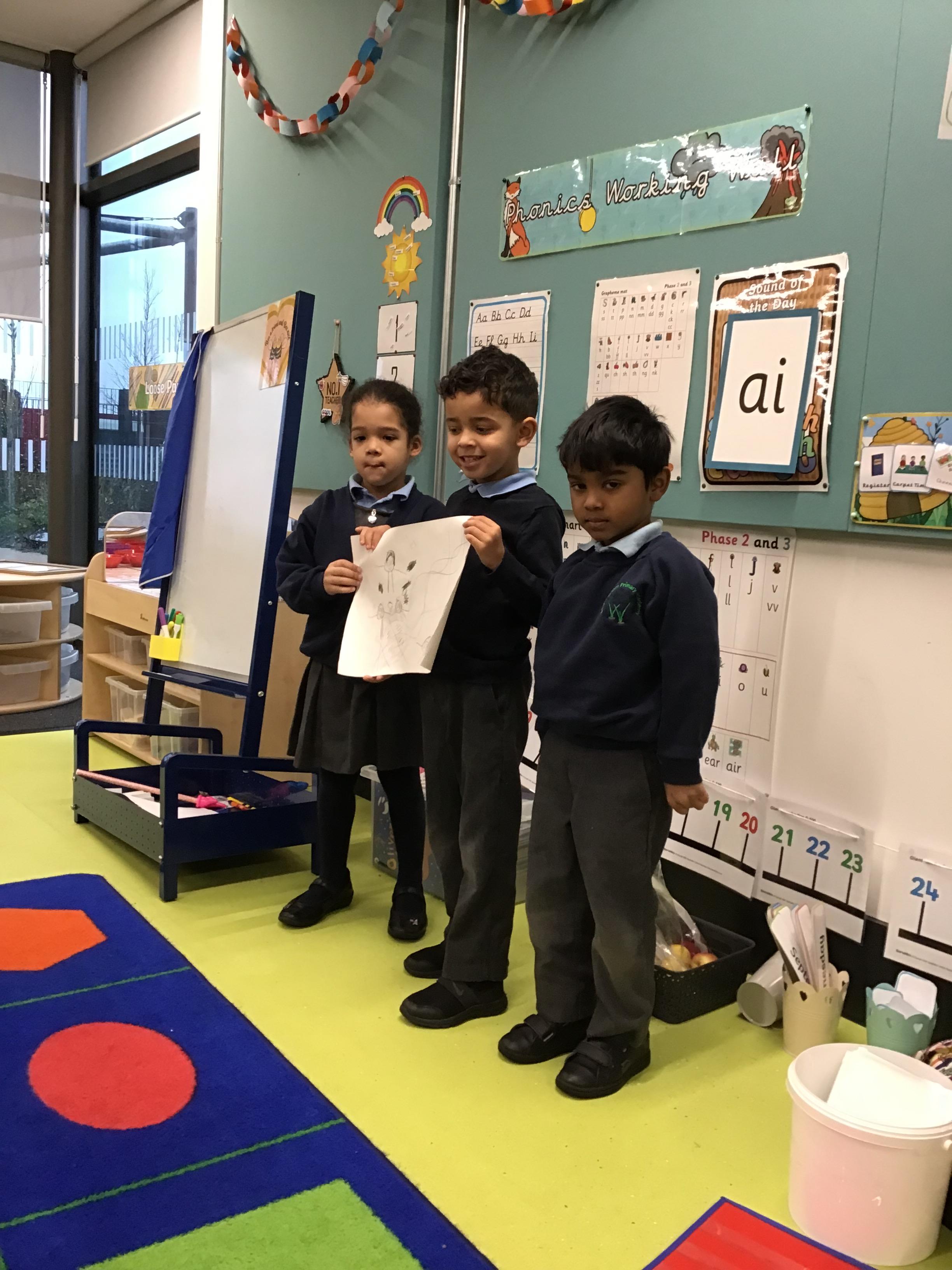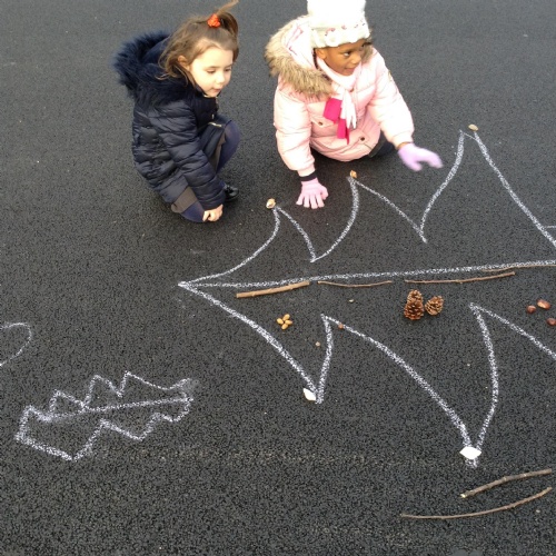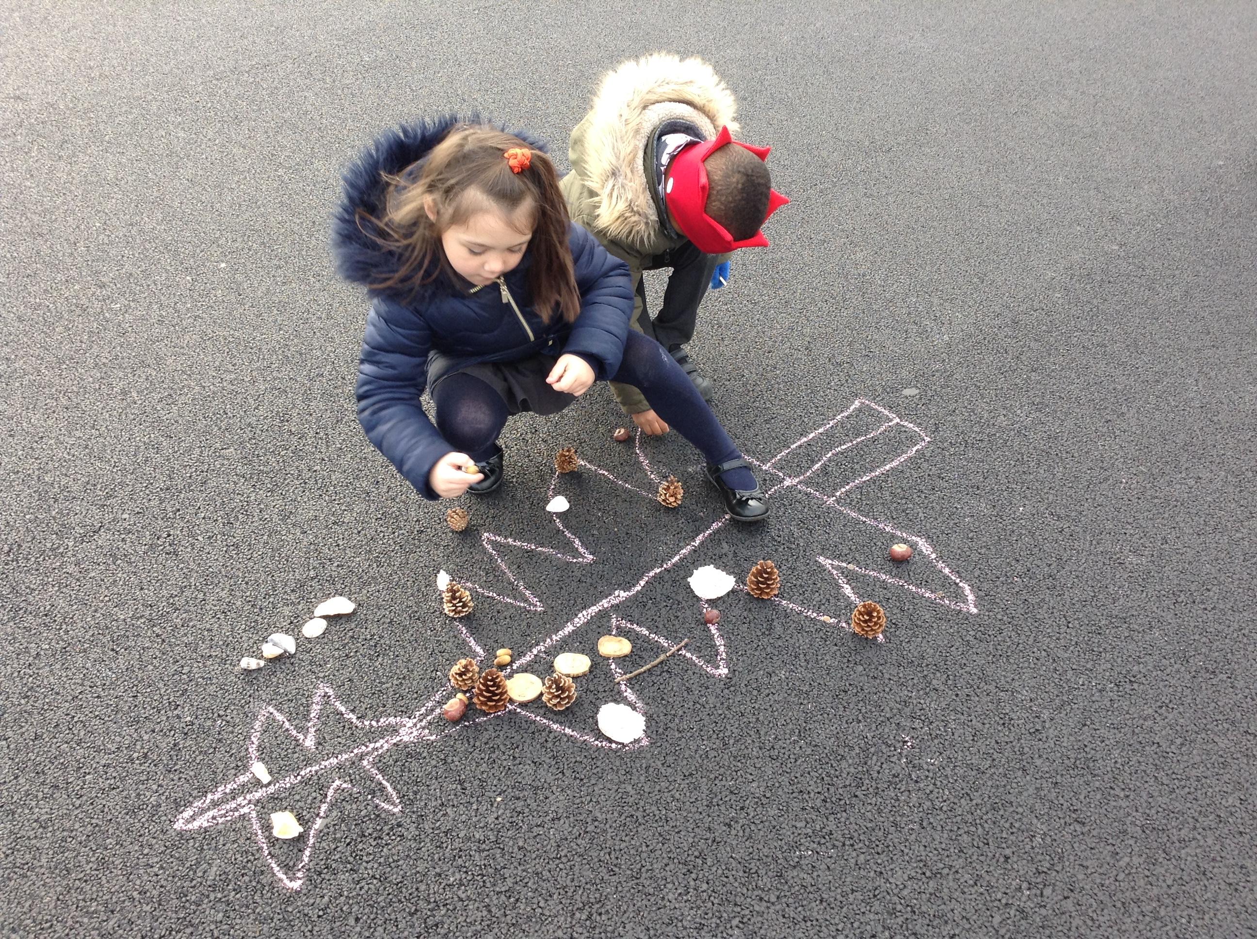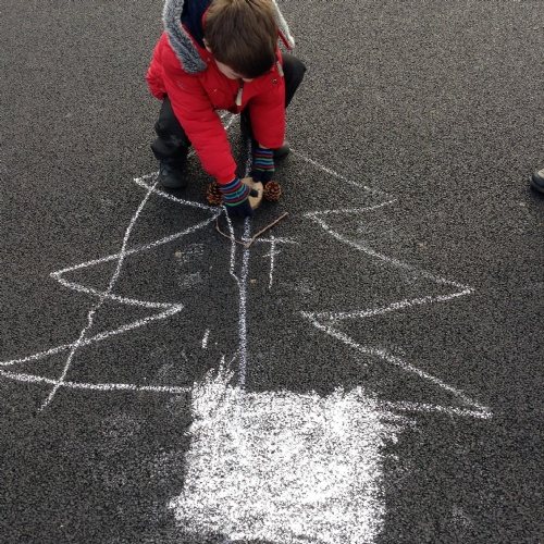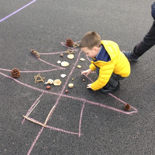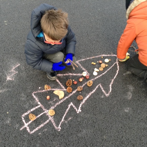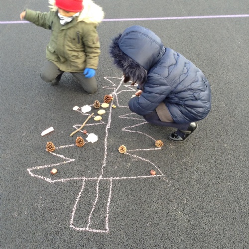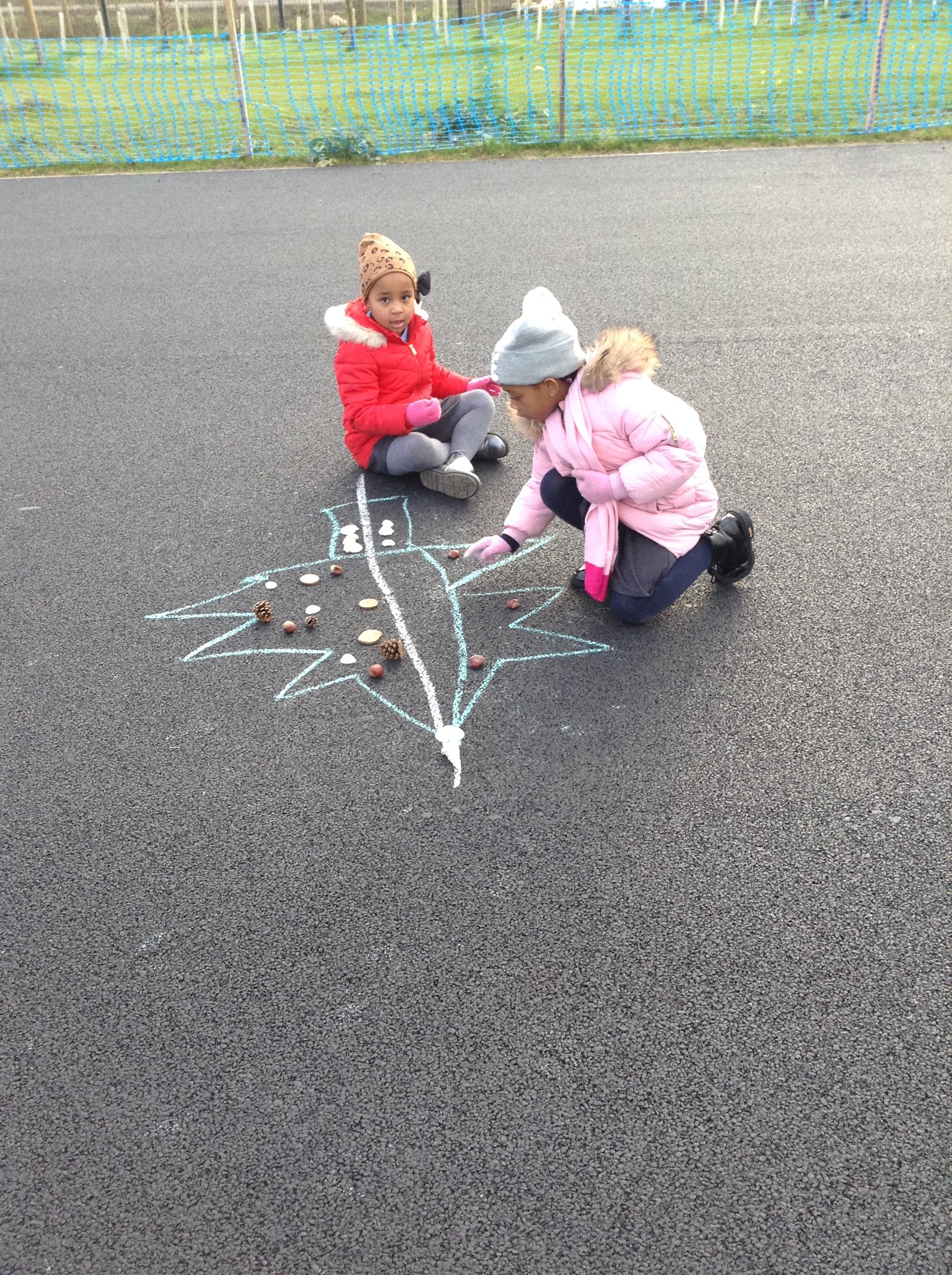 The children were very excited when they came into school on Tuesday morning and saw all of their Christmas decorations hanging up inside the classroom and in the corridor. They also really enjoyed going to their first ever whole school assembly which was the ‘wishing the lights on’ assembly. The children had to close their eyes and wish really hard for the lights to come on on the Christmas tree. They also had an opportunity to hang their home-made Christmas decorations onto the tree. The children have finished off their learning about space this week. They have really enjoyed listening to the story 'Aliens Love Underpants' and have used puppets to role-play the story, as well as thinking of adjectives to describe the different aliens in the story. The children have independently been using their phonic knowledge to write facts about the moon using the mind map created earlier on in the week. I was very impressed with the children being able to record the sounds that they could hear in the different words and that they were starting to write simple sentences using capital letters, finger spaces and full stops. For our outdoor learning this week, the children worked with the children from class 2 to draw a picture of a Christmas tree on the playground using chalk and then adding natural decorations onto it to create a symmetrical tree. The children have also been continuing to practise for the nativity performance and are getting very excited to show everyone just what they can do. For children who are speaking, please continue to rehearse and practise their lines at home as much as possible. Please note that all of the children's costumes must be in school by Monday 7th December. Next week the children will be learning to read the tricky words ‘we’, 'me' and ‘be’ and will be learning the sounds ch, ai and th in our phonics sessions.
