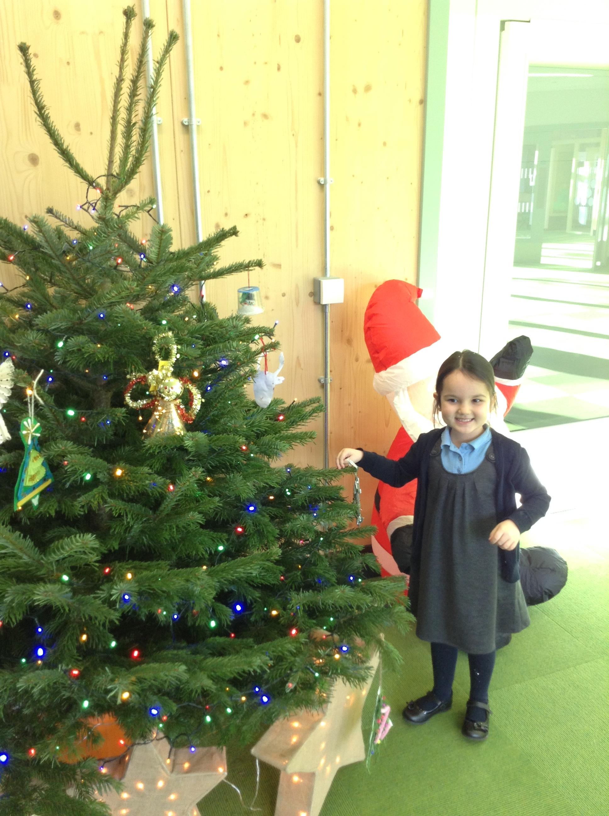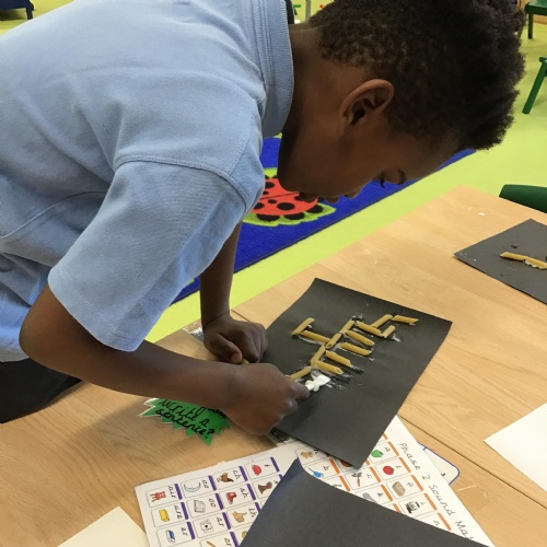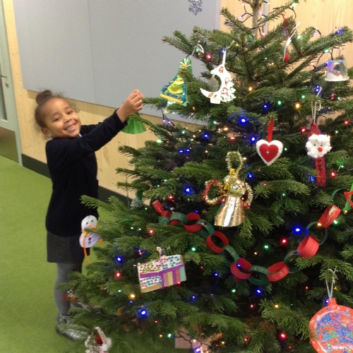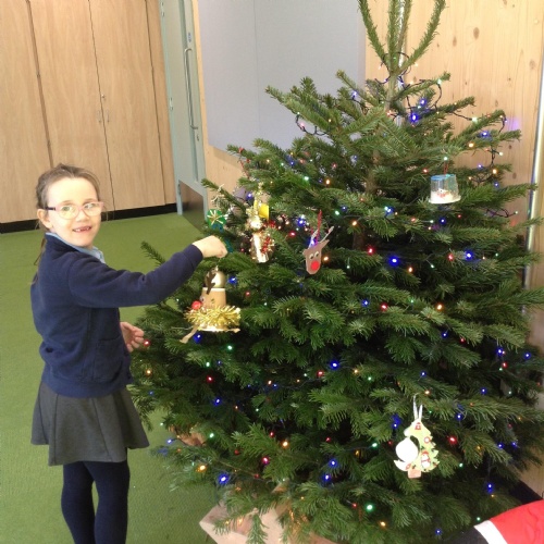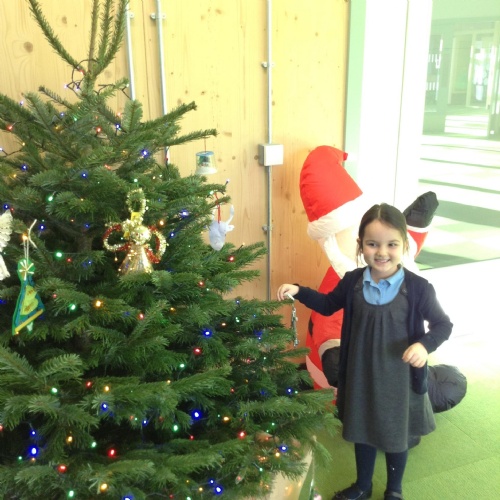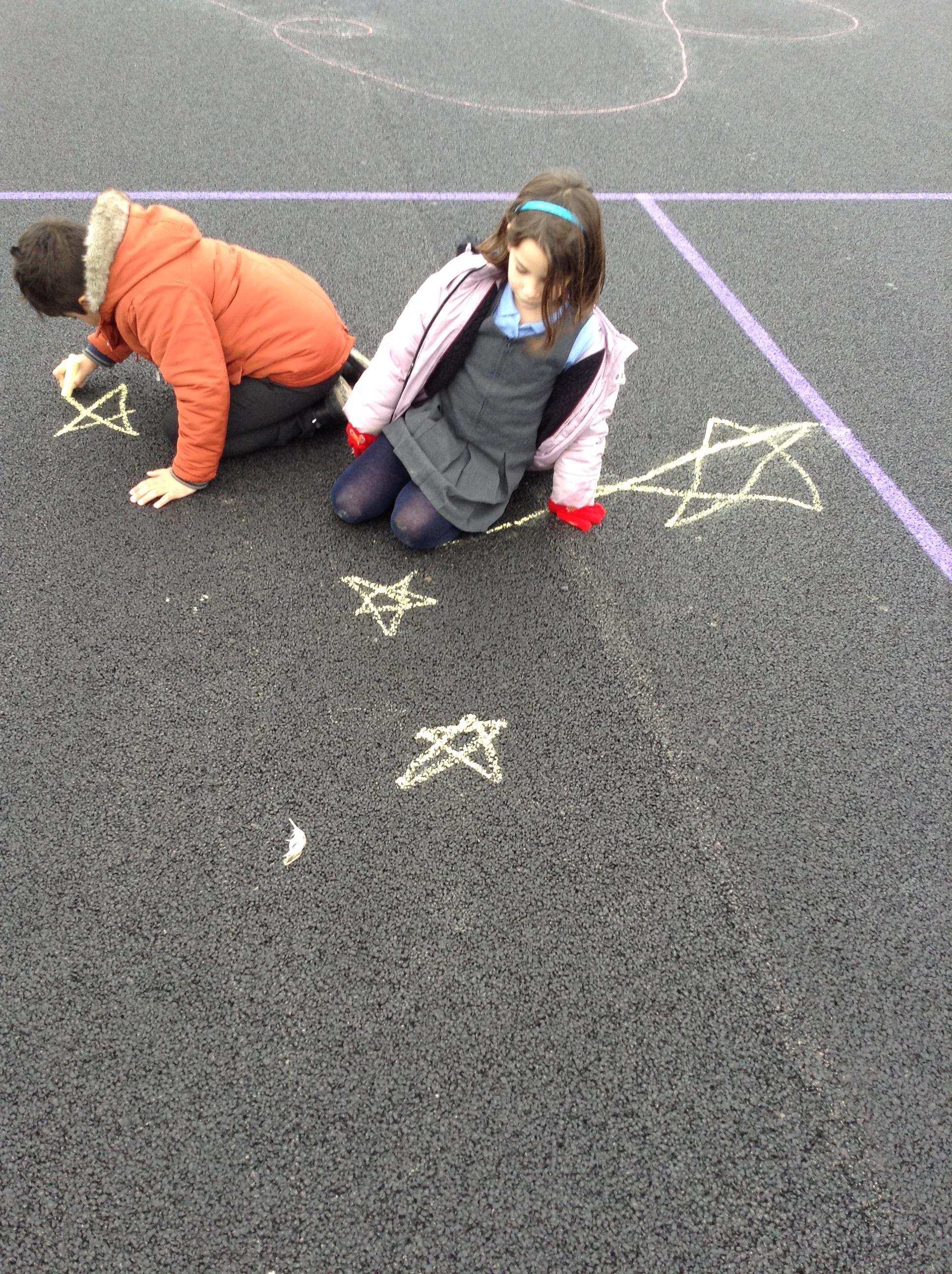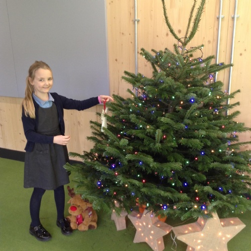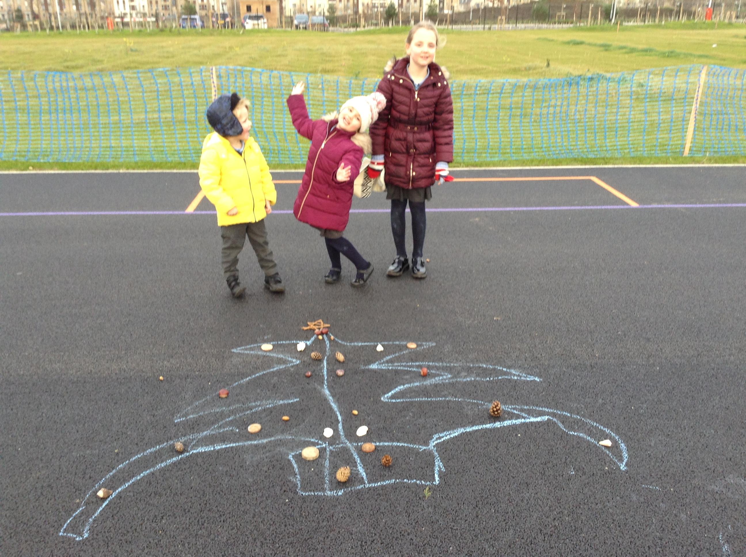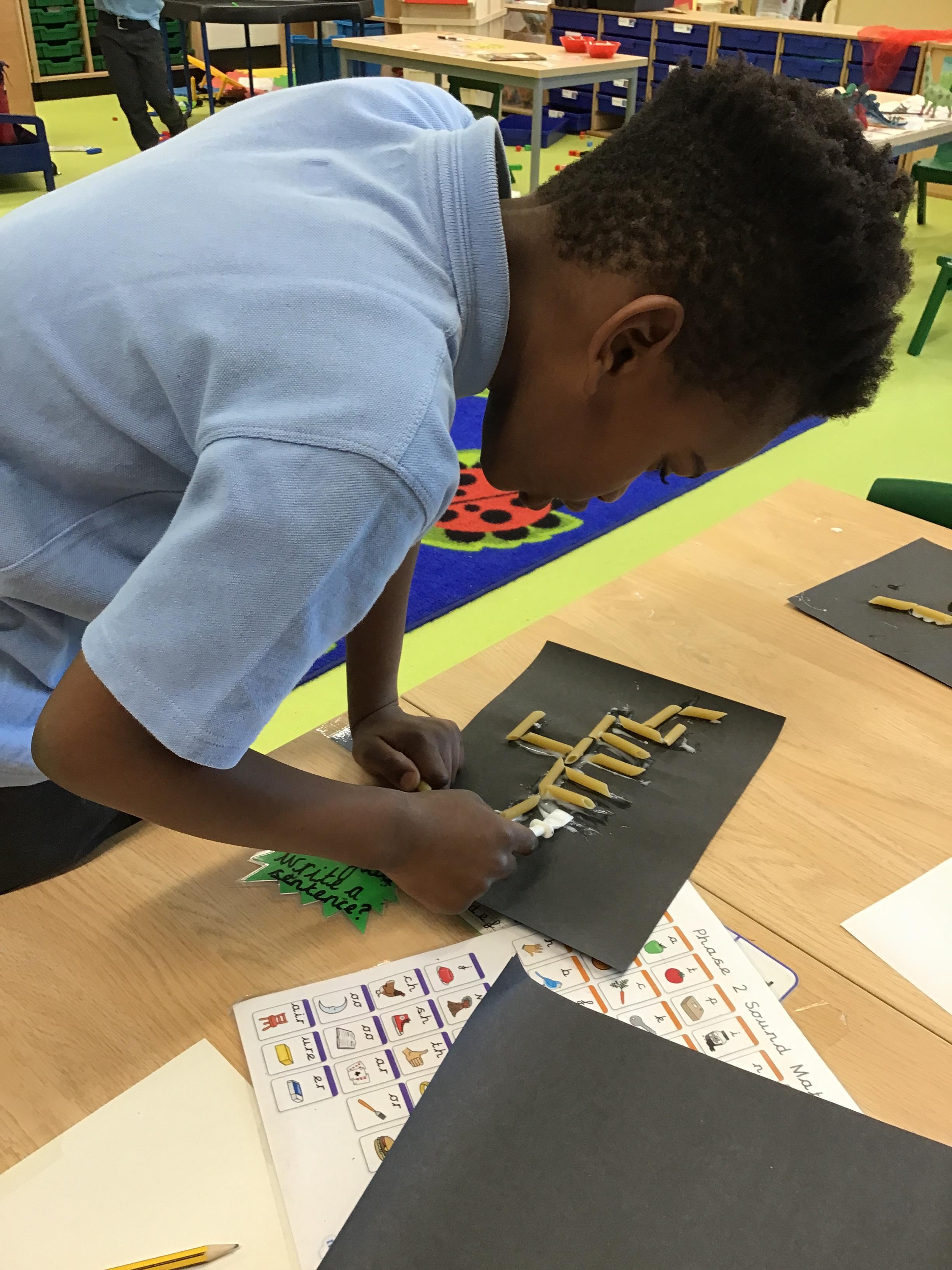 The children were very excited when they came into school on Tuesday morning and saw all of their Christmas decorations hanging up inside the classroom and in the corridor. They also really enjoyed going to their first ever whole school assembly which was the ‘wishing the lights on’ assembly. The children had to close their eyes and wish really hard for the lights to come on on the Christmas tree. They also had an opportunity to hang their home-made Christmas decorations onto the tree. The children have finished off their learning about space this week. They have really enjoyed listening to the story 'Aliens Love Underpants' and have used puppets to role-play the story, as well as thinking of adjectives to describe the different aliens in the story. The children have independently been using their phonic knowledge to write facts about the moon using the mind map created earlier on in the week. I was very impressed with the children being able to record the sounds that they could hear in the different words and that they were starting to write simple sentences using capital letters, finger spaces and full stops. For our outdoor learning this week, the children worked with the children from class 2 to draw a picture of a Christmas tree on the playground using chalk and then adding natural decorations onto it to create a symmetrical tree. The children have also been continuing to practise for the nativity performance and are getting very excited to show everyone just what they can do. For children who are speaking, please continue to rehearse and practise their lines at home as much as possible. Please note that all of the children's costumes must be in school by Monday 7th December. Next week the children will be learning to read the tricky words ‘we’, 'me' and ‘be’ and will be learning the sounds ch, ai and th in our phonics sessions.