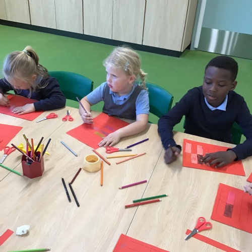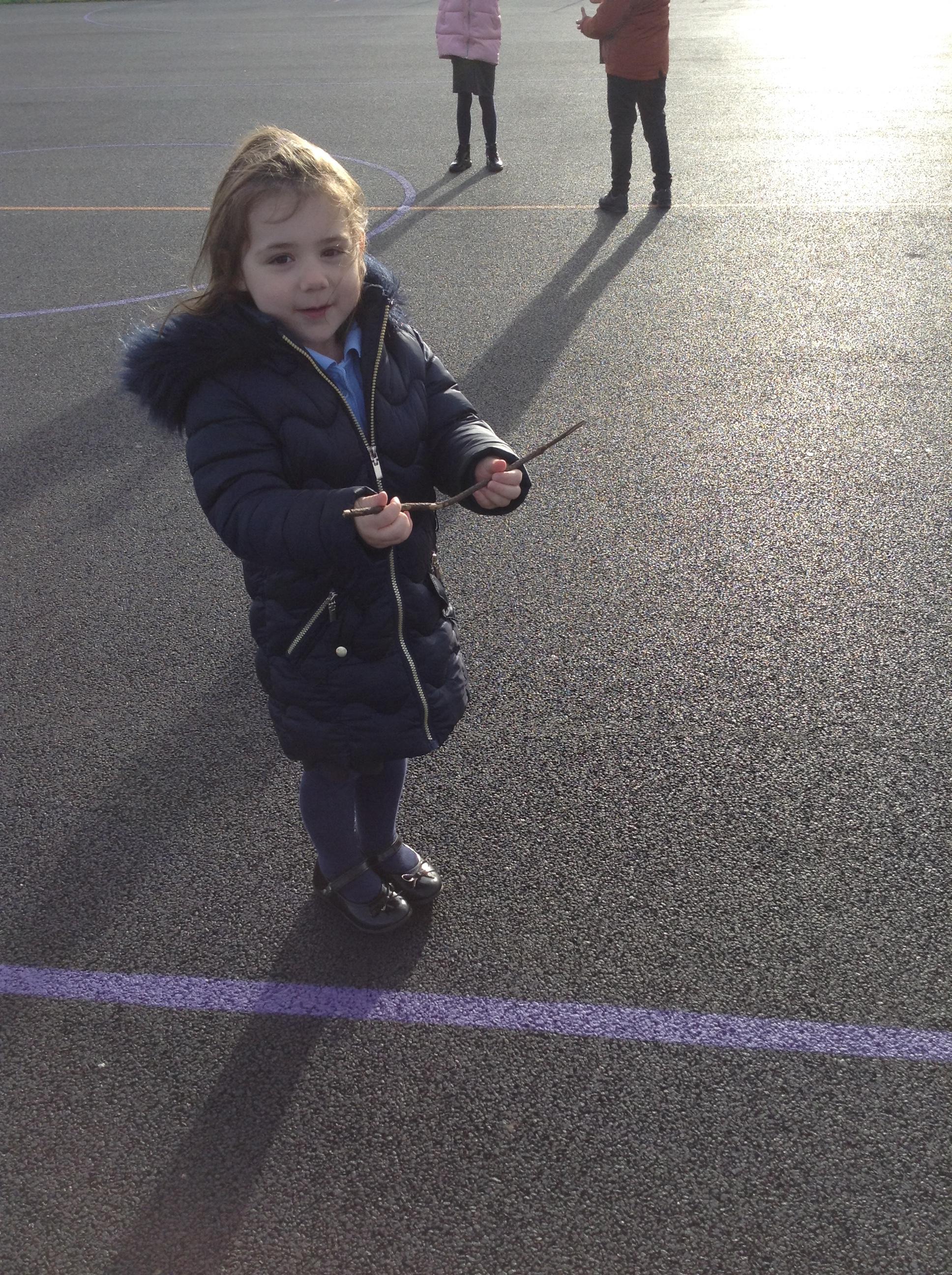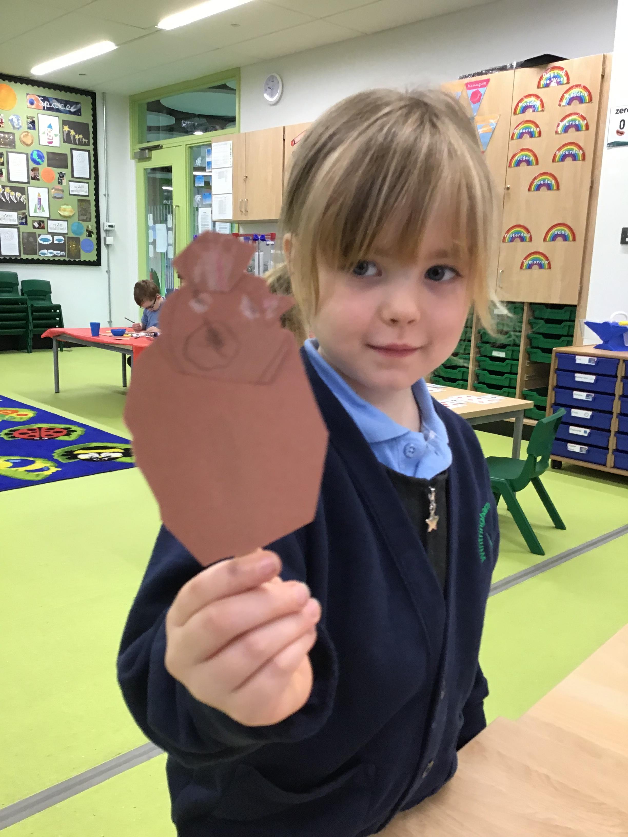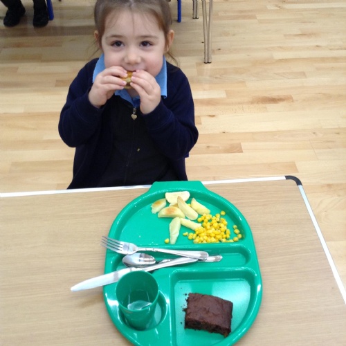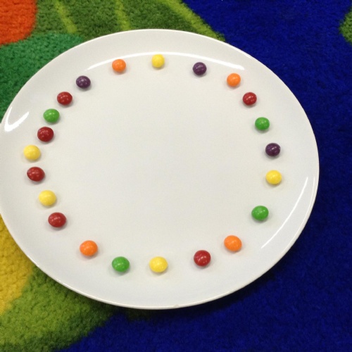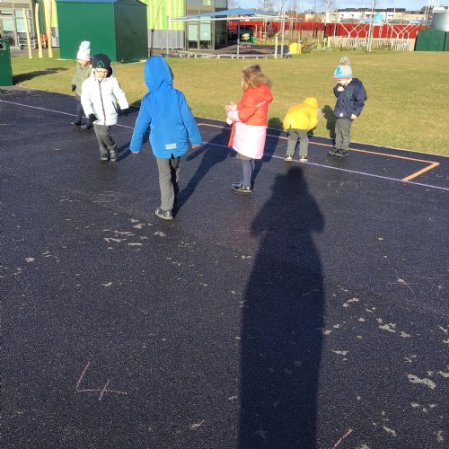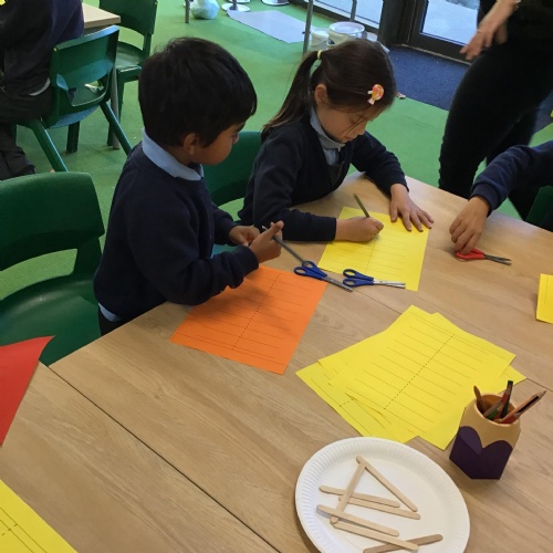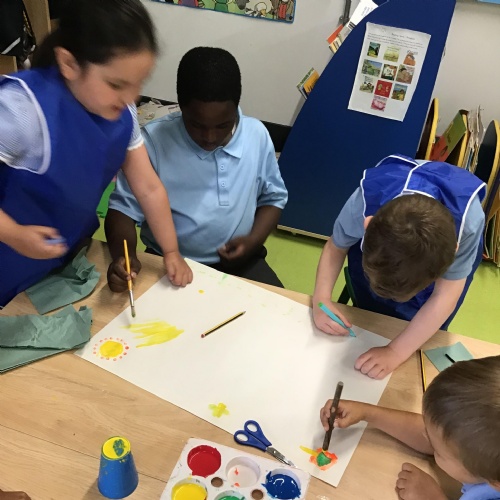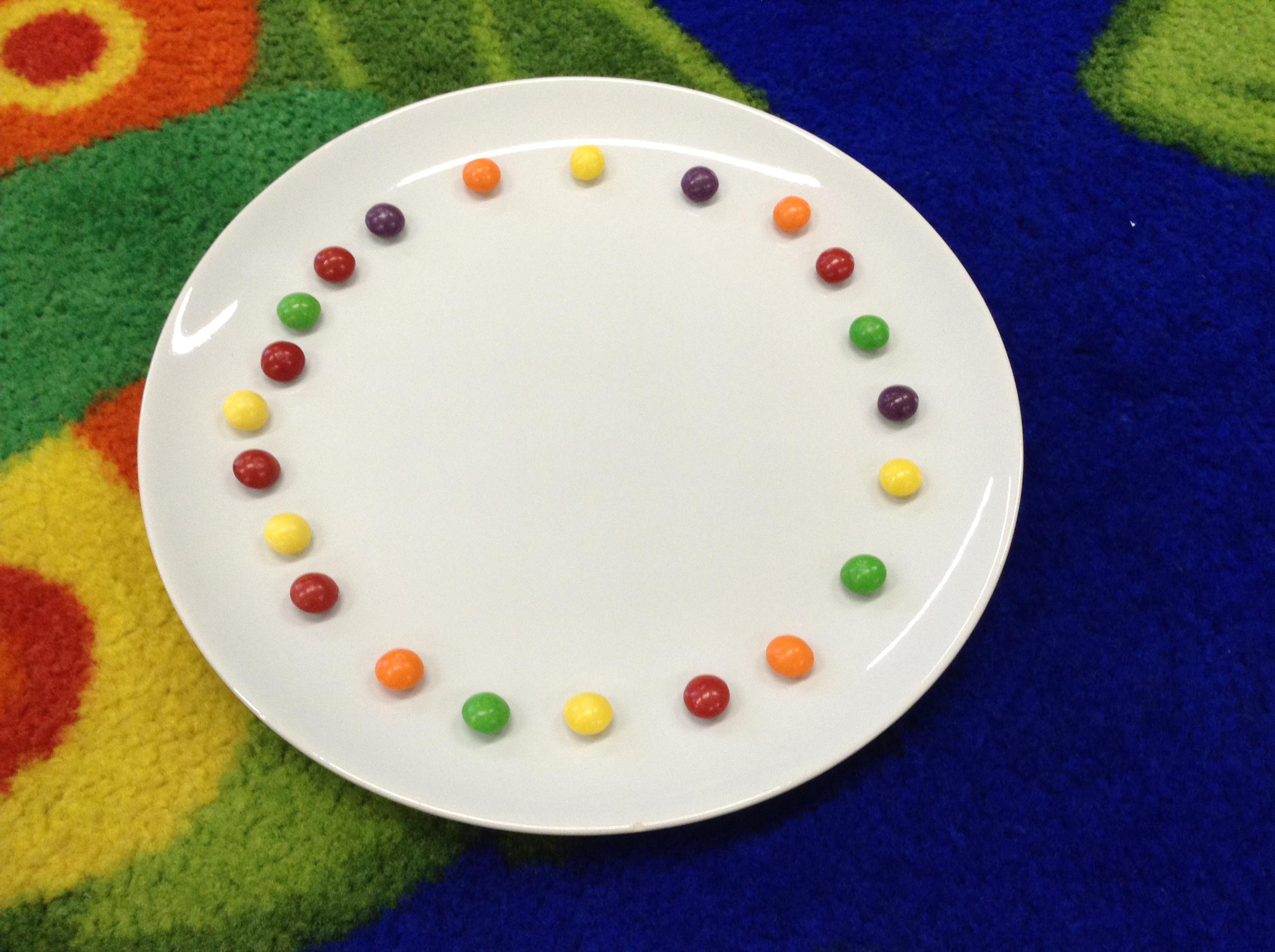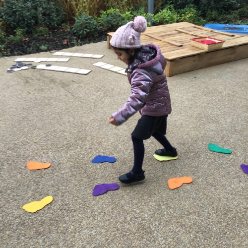 This week, the children have continued learning about the topic of food. As a class, we investigated what would happen when we put warm water over skittles. The children were firstly shown the equipment for the experiment and were asked to discuss what they thought we might be doing. The experiment was then set up and the children made some predictions about what they thought might happen, including 'There will be a rainbow on the plate' and 'The colour is going to come off the skittles'. After the water had been added to the skittles, the children were excited to see a rainbow start to appear and were then asked to make a comment about what they could see, e.g. 'The colours gone off the bottom onto the plate' and 'The colour is going into the middle, it's moving'. The children have also listened to the story Handa’s Surprise. They talked about the story, thinking about the characters and the plot. The children then tried some of the different fruits that appeared in the story, finally making fruit skewers using them. The children had to cut some of the fruit using a plastic knife. To celebrate the Hindu festival of Diwali, the children each made their own Diva lamp. They were given a ball of clay and had to use their thumbs to make an indent in it in order to fit a tea light. They created patterns around the edge using tools and then once it had dried, were able to paint and add glitter to it. I hope you are enjoying these at home. For our outdoor learning this week, the children worked with the children from class 2 to complete a photo scavenger hunt to familiarise themselves with the grove which is in the centre of the school building. They also created their own chalk paths and handprint artwork. Next week the children will be learning to read the tricky words 'no' and ‘into’ and will be learning the sounds l/ll, ss and j in our phonics sessions. We are currently in the process of setting up the fruit and vegetable initiative from the government where each child will receive a healthy snack every day. In the meantime, if your child would like to bring a piece of fruit or vegetable for a mid-morning snack please put this in their book bag. Thank you and I hope you all have a great weekend