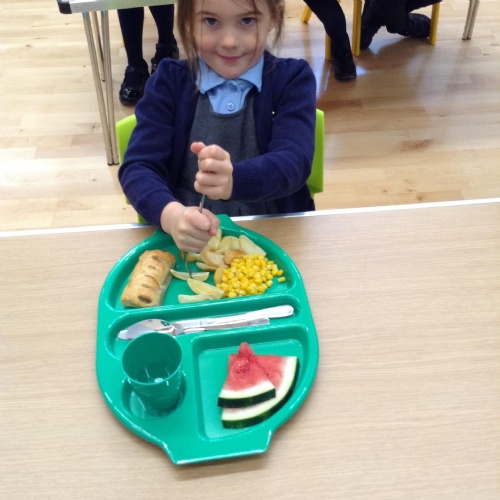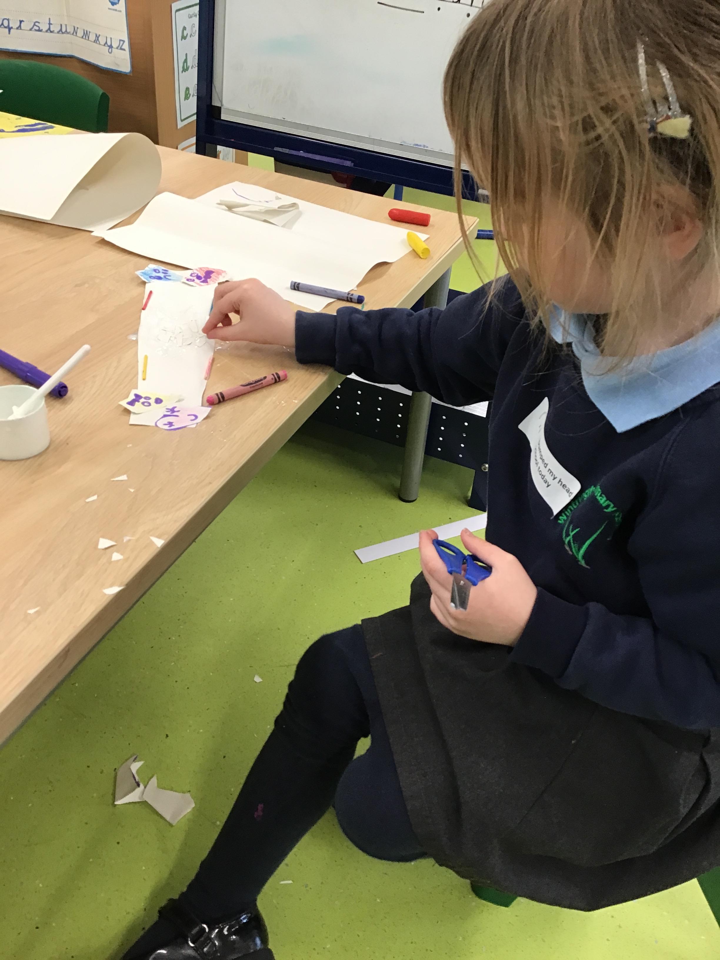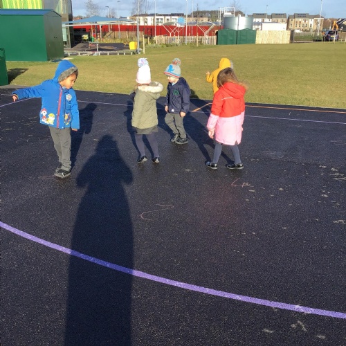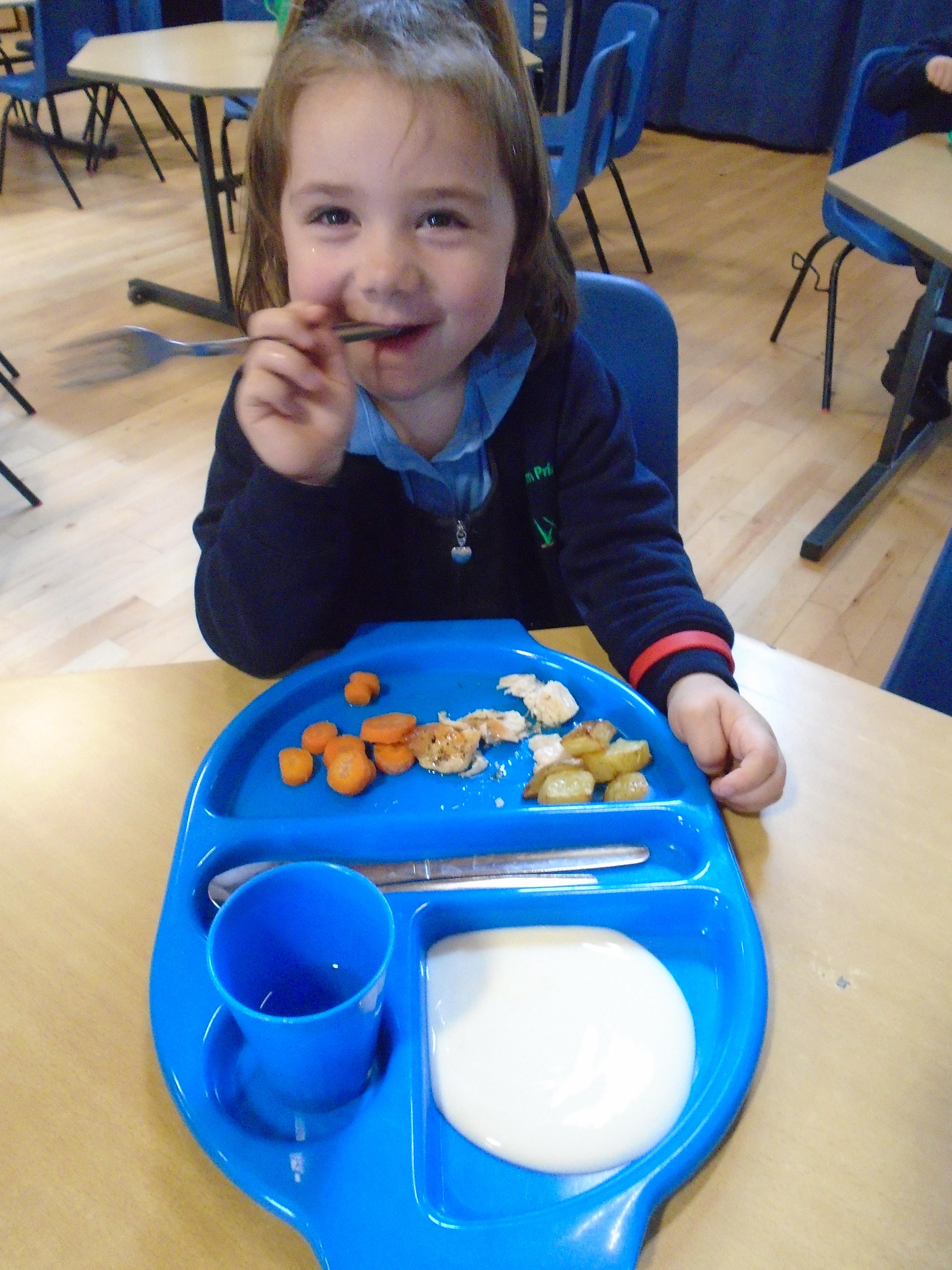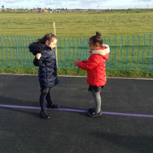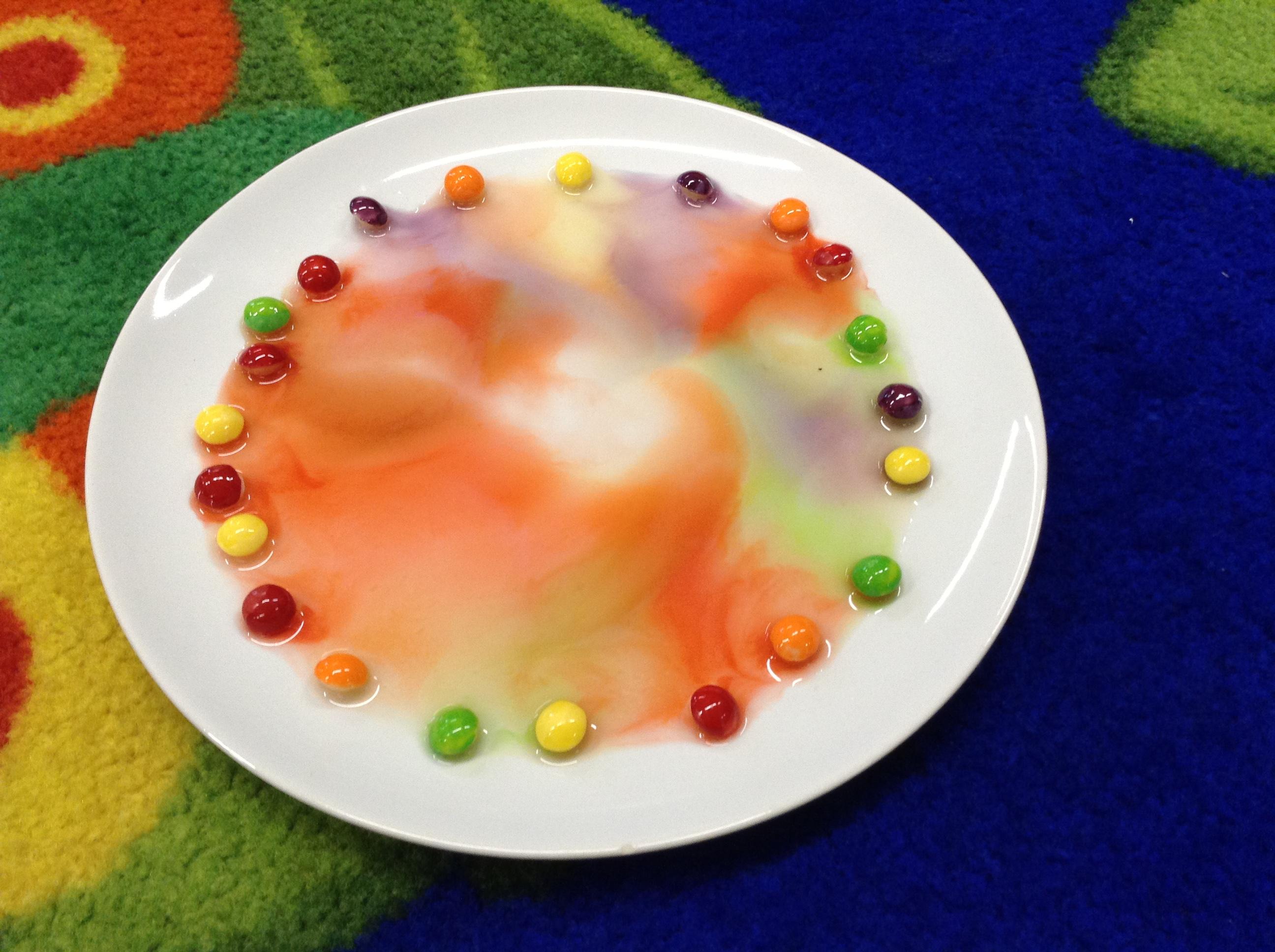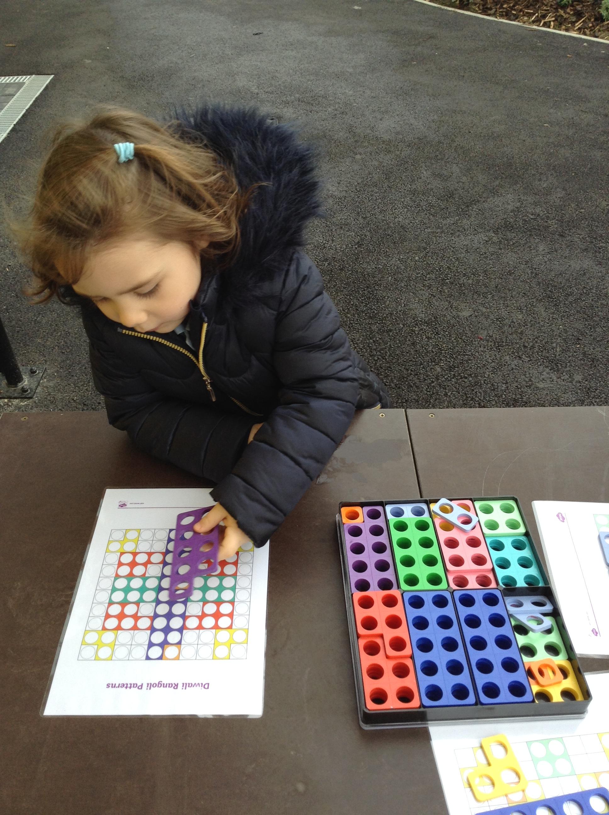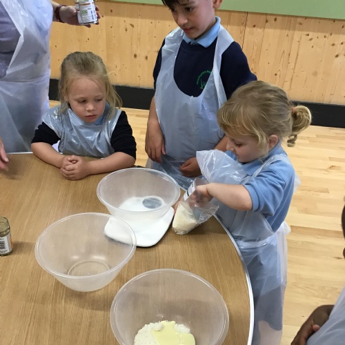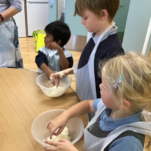 This week, the children have continued learning about the topic of food. As a class, we investigated what would happen when we put warm water over skittles. The children were firstly shown the equipment for the experiment and were asked to discuss what they thought we might be doing. The experiment was then set up and the children made some predictions about what they thought might happen, including 'There will be a rainbow on the plate' and 'The colour is going to come off the skittles'. After the water had been added to the skittles, the children were excited to see a rainbow start to appear and were then asked to make a comment about what they could see, e.g. 'The colours gone off the bottom onto the plate' and 'The colour is going into the middle, it's moving'. The children have also listened to the story Handa’s Surprise. They talked about the story, thinking about the characters and the plot. The children then tried some of the different fruits that appeared in the story, finally making fruit skewers using them. The children had to cut some of the fruit using a plastic knife. To celebrate the Hindu festival of Diwali, the children each made their own Diva lamp. They were given a ball of clay and had to use their thumbs to make an indent in it in order to fit a tea light. They created patterns around the edge using tools and then once it had dried, were able to paint and add glitter to it. I hope you are enjoying these at home. For our outdoor learning this week, the children worked with the children from class 2 to complete a photo scavenger hunt to familiarise themselves with the grove which is in the centre of the school building. They also created their own chalk paths and handprint artwork. Next week the children will be learning to read the tricky words 'no' and ‘into’ and will be learning the sounds l/ll, ss and j in our phonics sessions. We are currently in the process of setting up the fruit and vegetable initiative from the government where each child will receive a healthy snack every day. In the meantime, if your child would like to bring a piece of fruit or vegetable for a mid-morning snack please put this in their book bag. Thank you and I hope you all have a great weekend