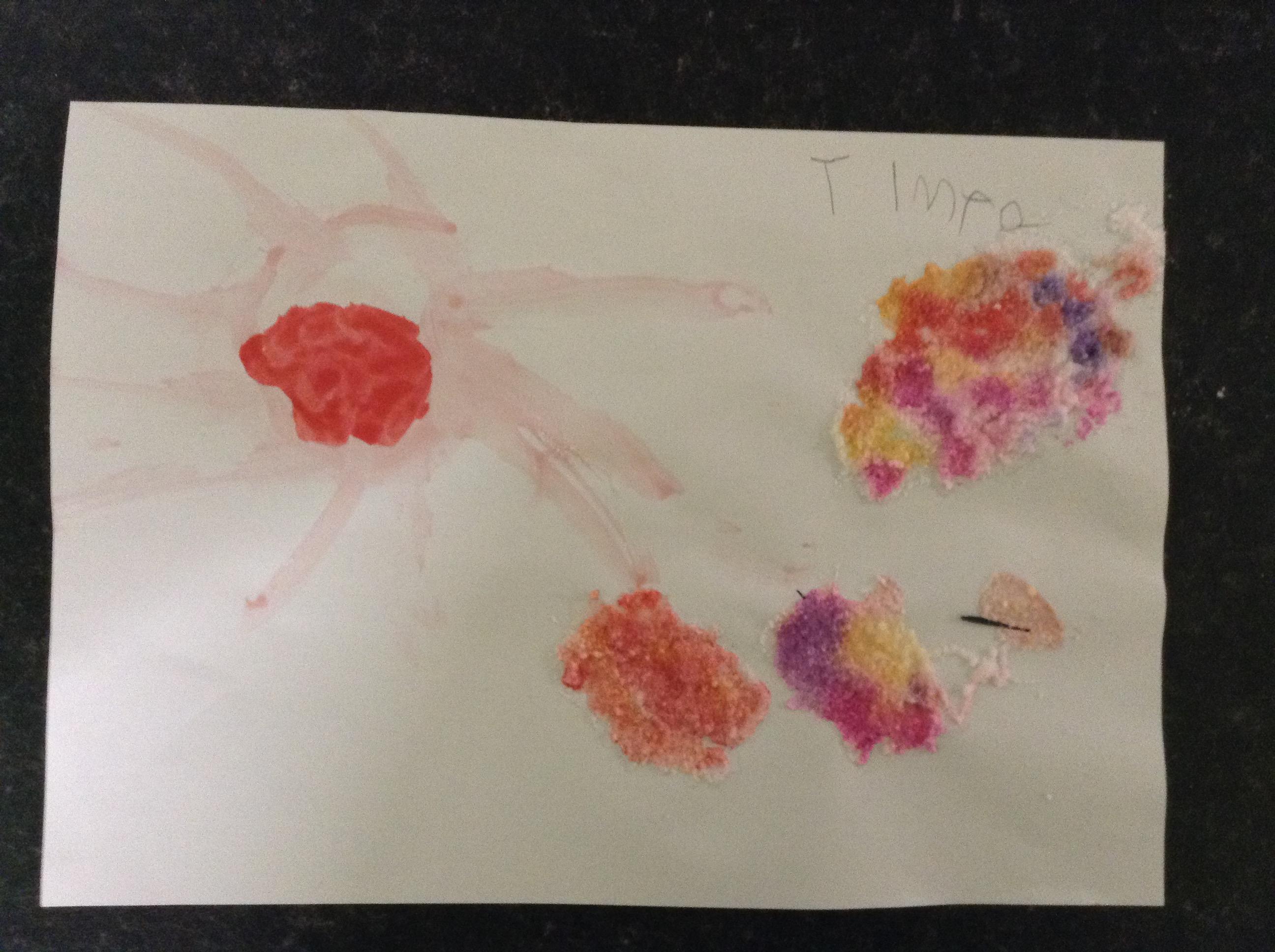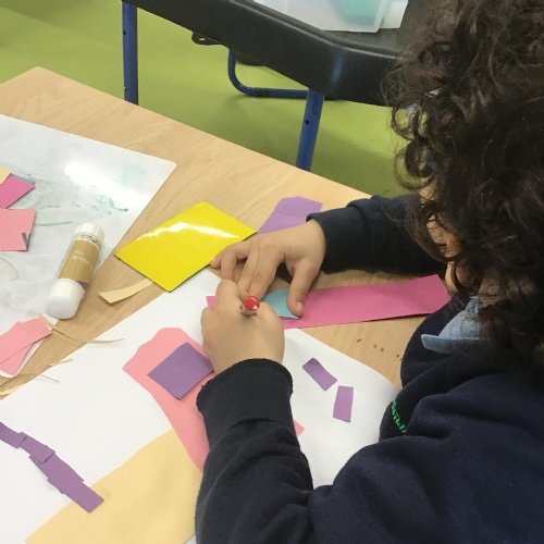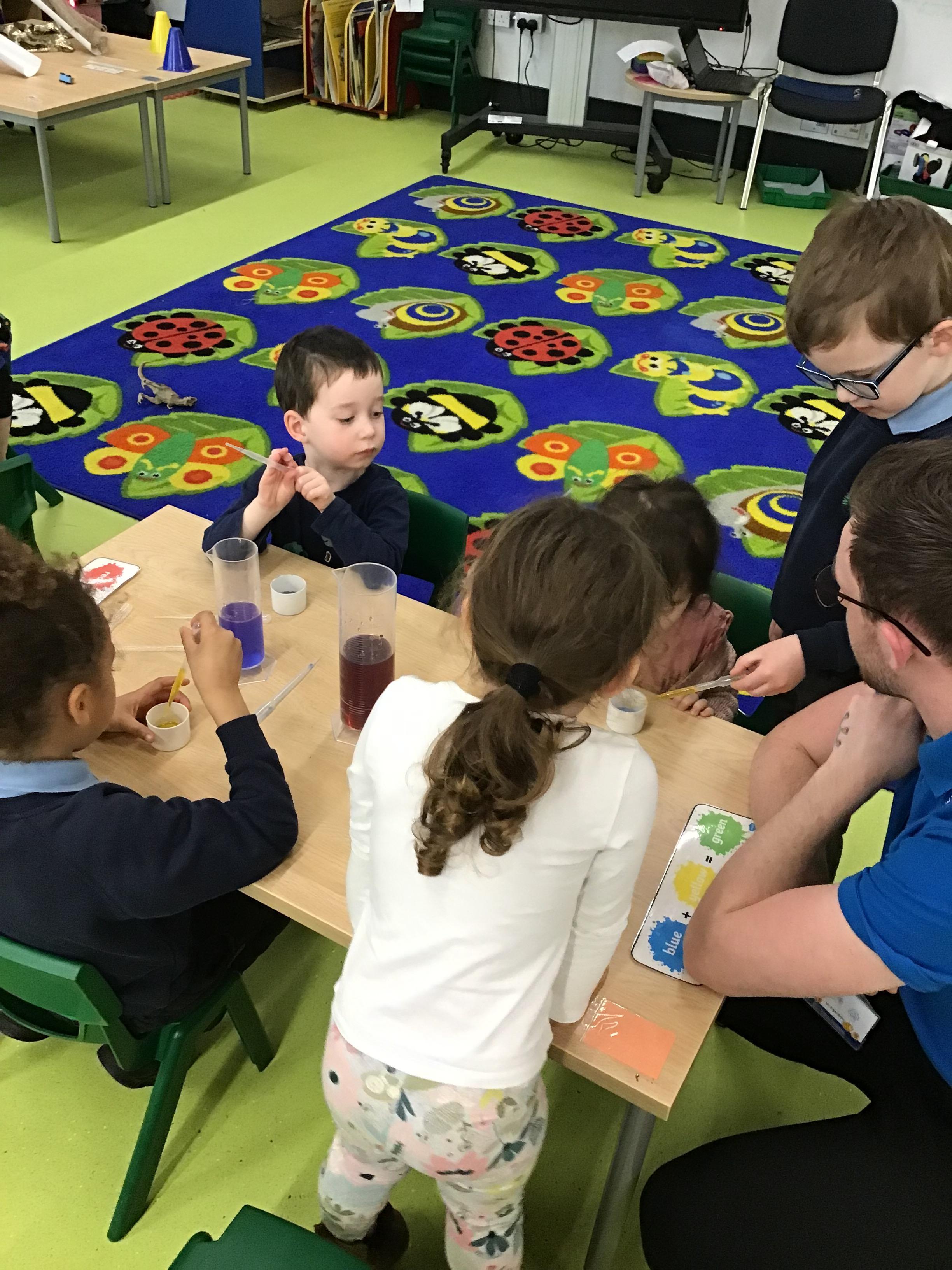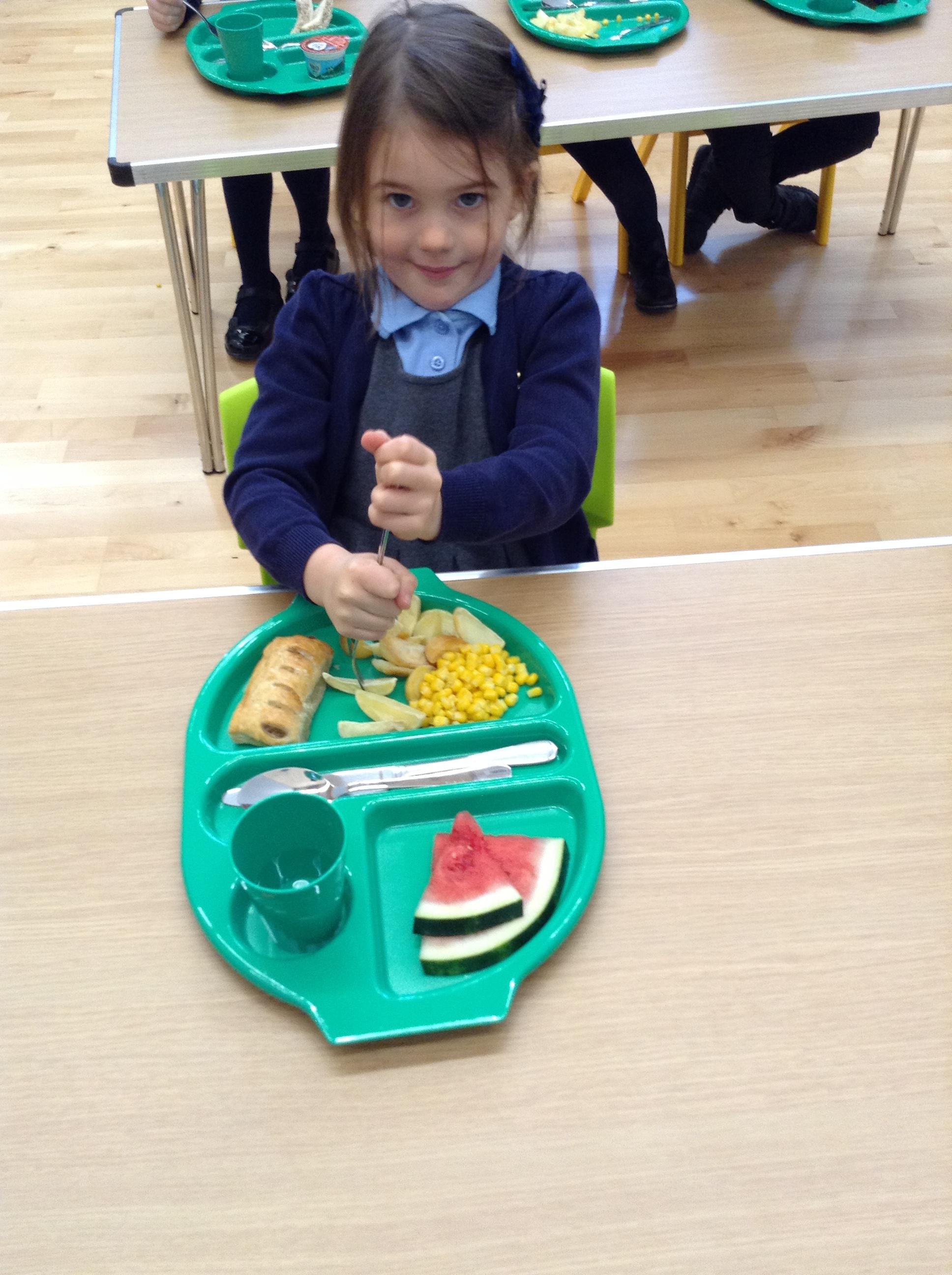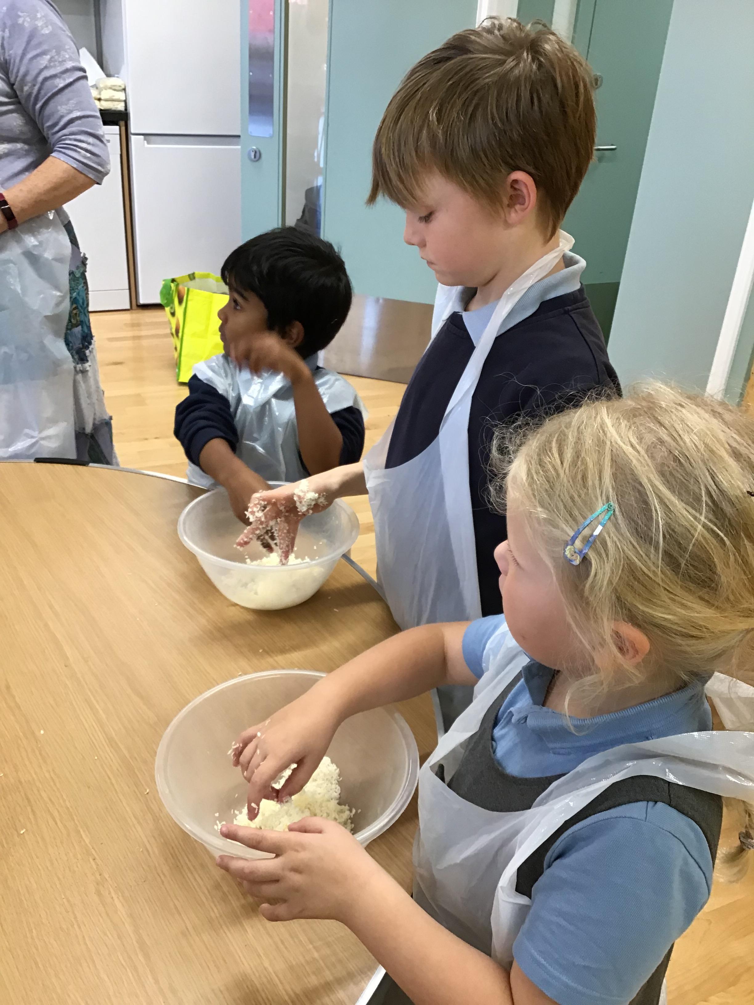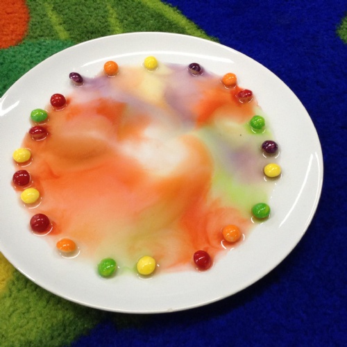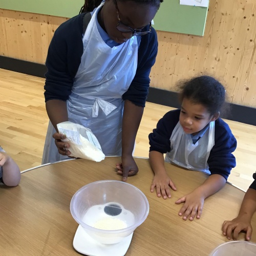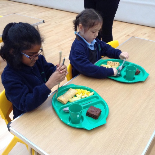 This week, the children have continued learning about the topic of food. As a class, we investigated what would happen when we put warm water over skittles. The children were firstly shown the equipment for the experiment and were asked to discuss what they thought we might be doing. The experiment was then set up and the children made some predictions about what they thought might happen, including 'There will be a rainbow on the plate' and 'The colour is going to come off the skittles'. After the water had been added to the skittles, the children were excited to see a rainbow start to appear and were then asked to make a comment about what they could see, e.g. 'The colours gone off the bottom onto the plate' and 'The colour is going into the middle, it's moving'. The children have also listened to the story Handa’s Surprise. They talked about the story, thinking about the characters and the plot. The children then tried some of the different fruits that appeared in the story, finally making fruit skewers using them. The children had to cut some of the fruit using a plastic knife. To celebrate the Hindu festival of Diwali, the children each made their own Diva lamp. They were given a ball of clay and had to use their thumbs to make an indent in it in order to fit a tea light. They created patterns around the edge using tools and then once it had dried, were able to paint and add glitter to it. I hope you are enjoying these at home. For our outdoor learning this week, the children worked with the children from class 2 to complete a photo scavenger hunt to familiarise themselves with the grove which is in the centre of the school building. They also created their own chalk paths and handprint artwork. Next week the children will be learning to read the tricky words 'no' and ‘into’ and will be learning the sounds l/ll, ss and j in our phonics sessions. We are currently in the process of setting up the fruit and vegetable initiative from the government where each child will receive a healthy snack every day. In the meantime, if your child would like to bring a piece of fruit or vegetable for a mid-morning snack please put this in their book bag. Thank you and I hope you all have a great weekend