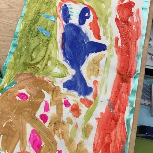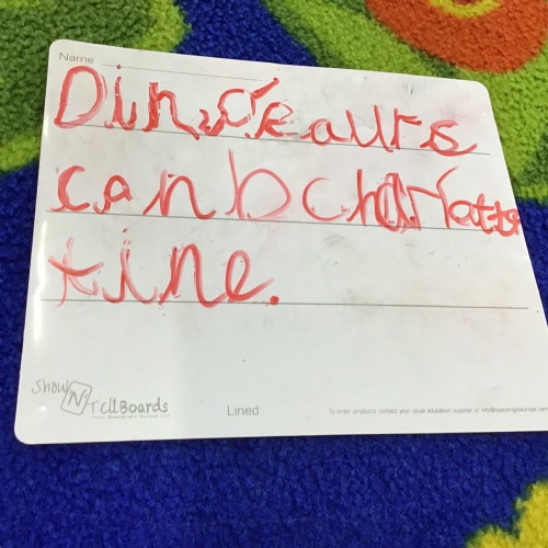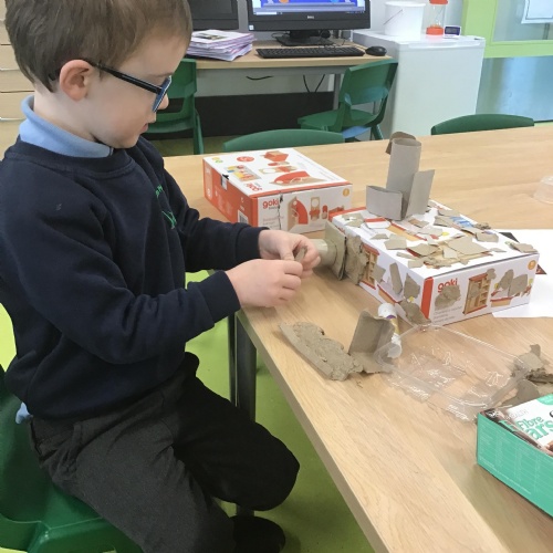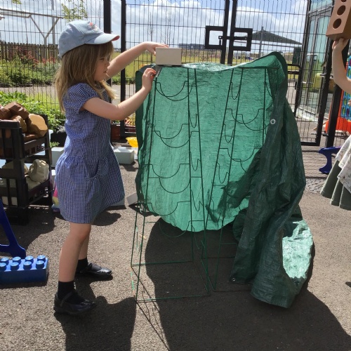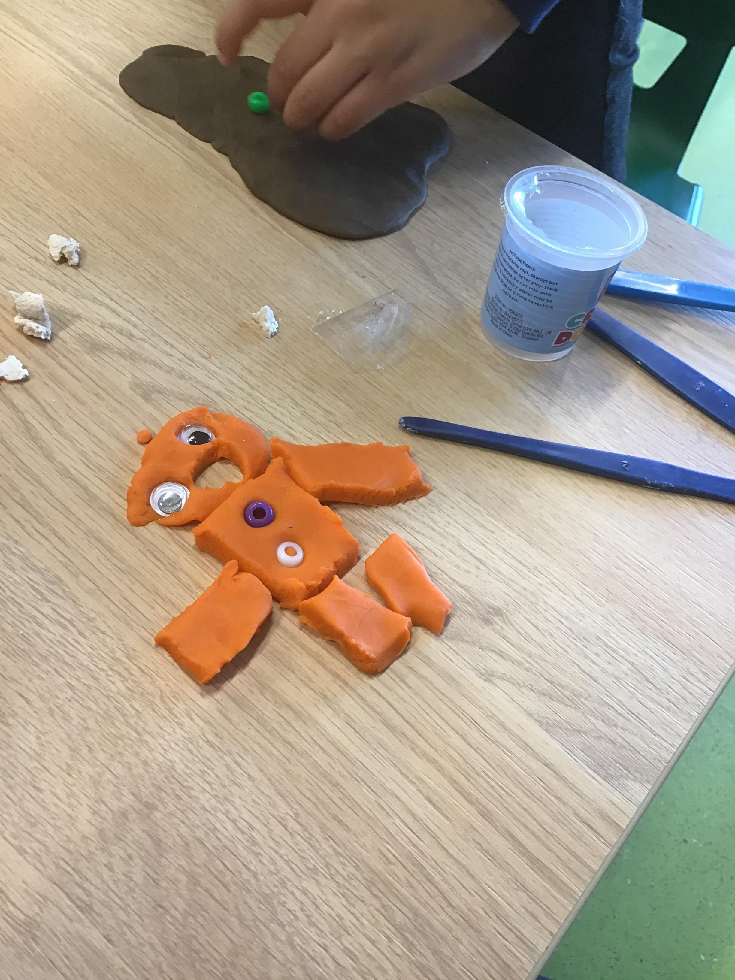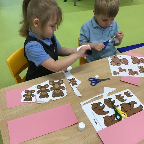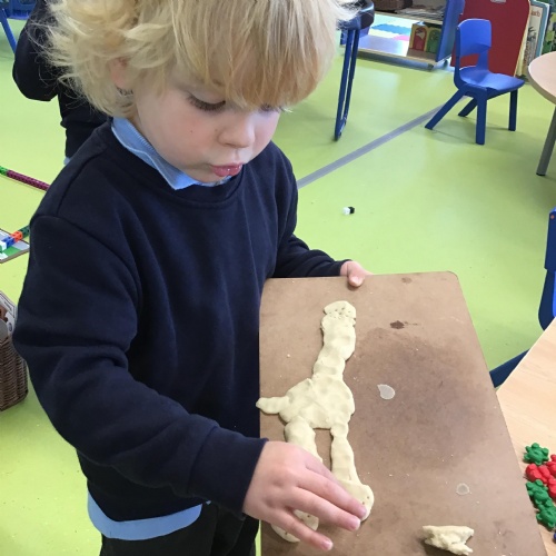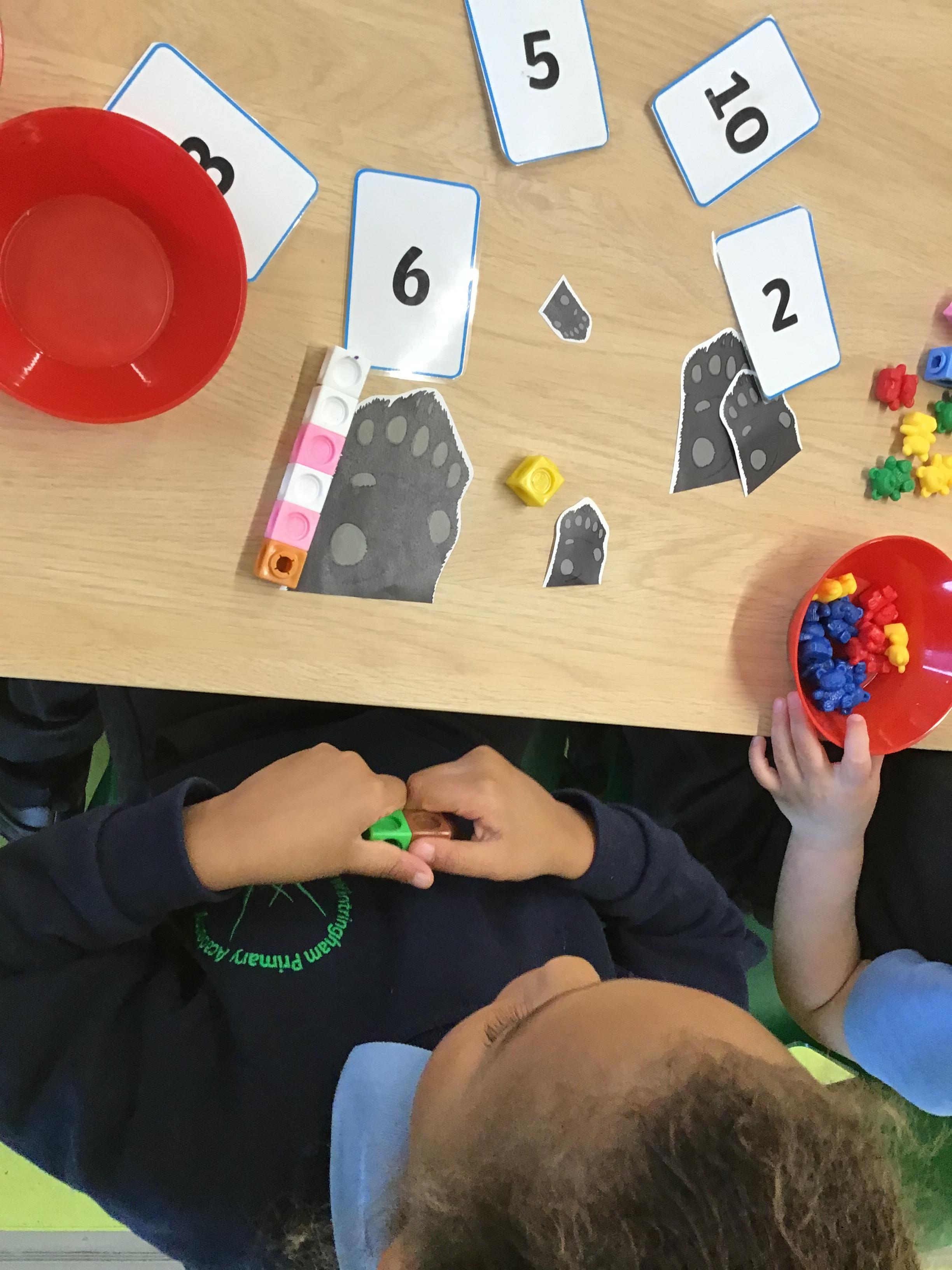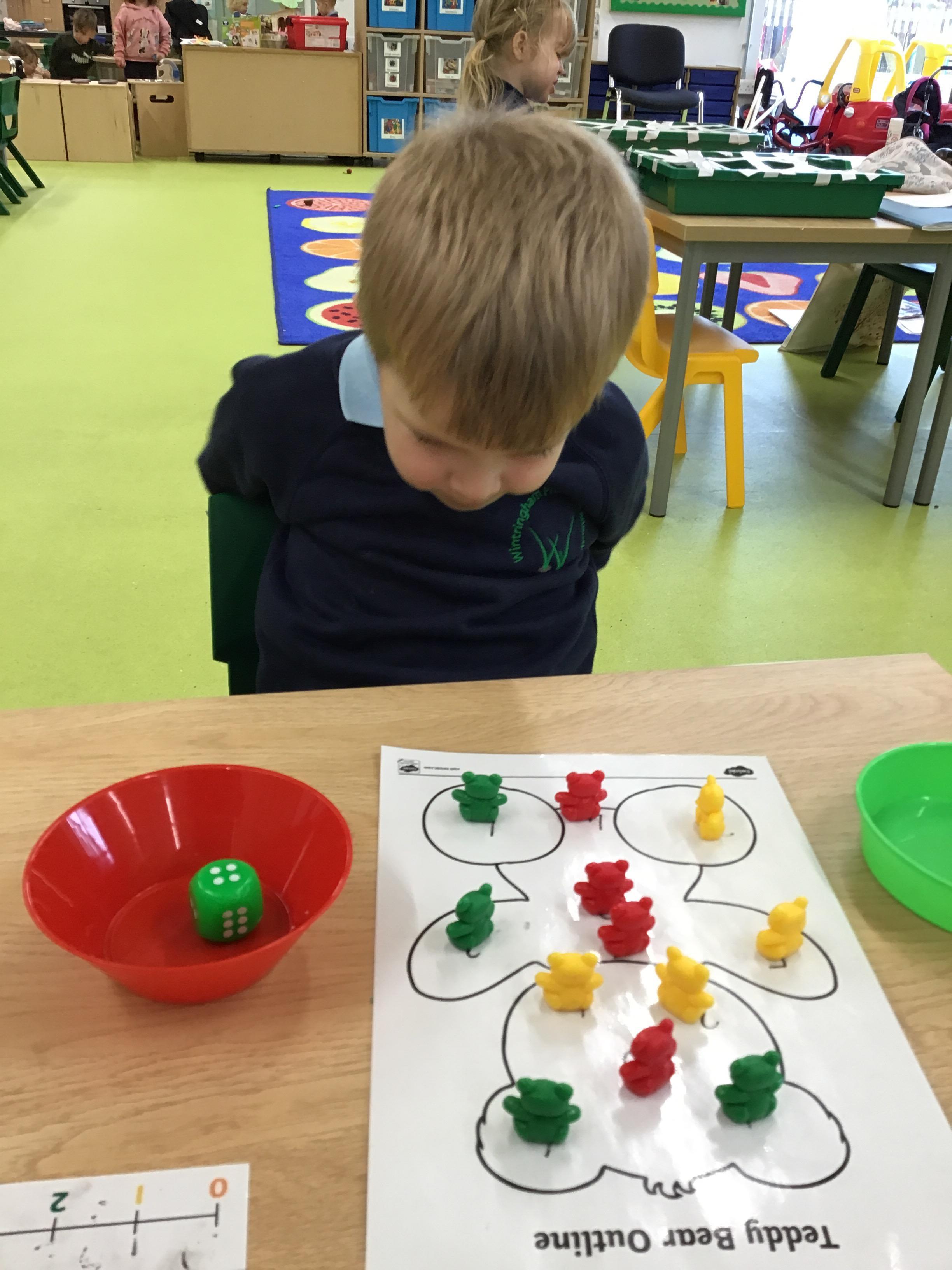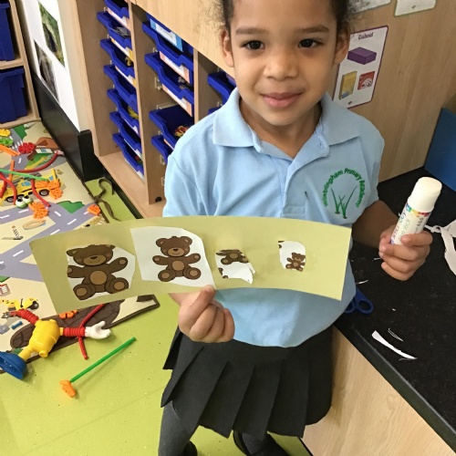 In continuous provision, the children have been, making bears with playdough, using different construction material to create bear caves, measuring the height of bears and drawing and writing things linked to the story.