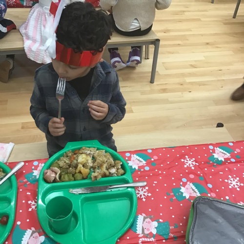 The children have had a fantastic couple of days. Yesterday, the children enjoyed party food and danced away at the party. They even had a visit from the big man himself. Today, the children have enjoyed reward day. This morning, they went to different classrooms and took part in different activities including construction, arts and crafts and board games. This afternoon, the children watched a magician and were absolutely mesmerized. They then enjoyed some more construction with the key stage one children. Christmas lunch was a big hit for all the children. They enjoyed dining with all the year groups and loved having the teachers join them too. Well done Inkpen Class. What a fantastic bunch you are!