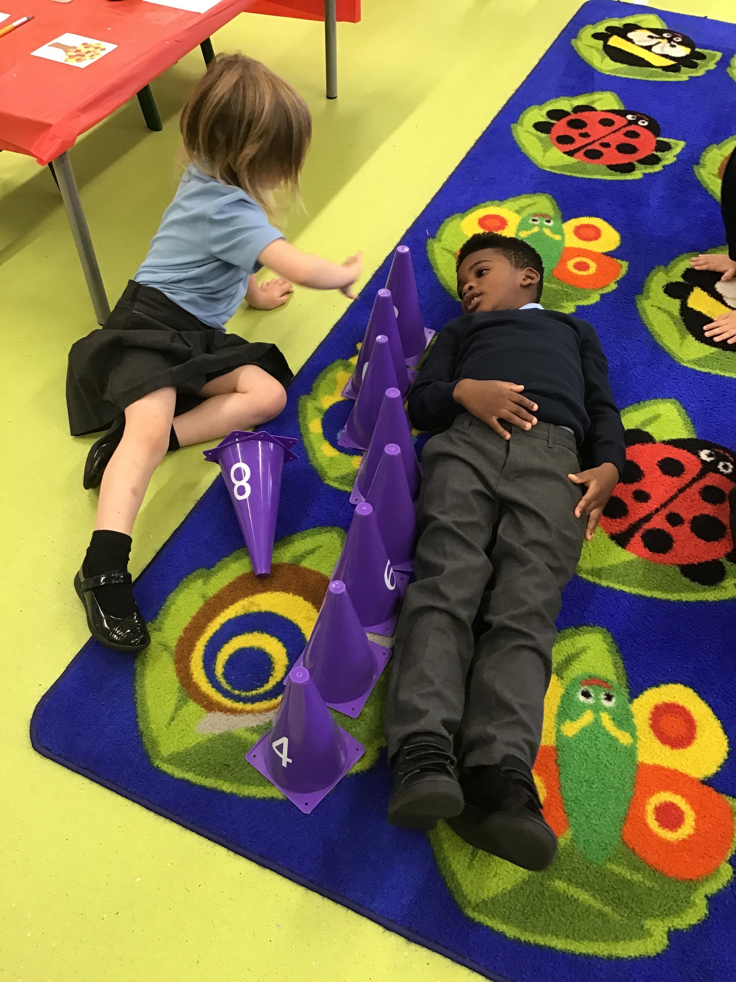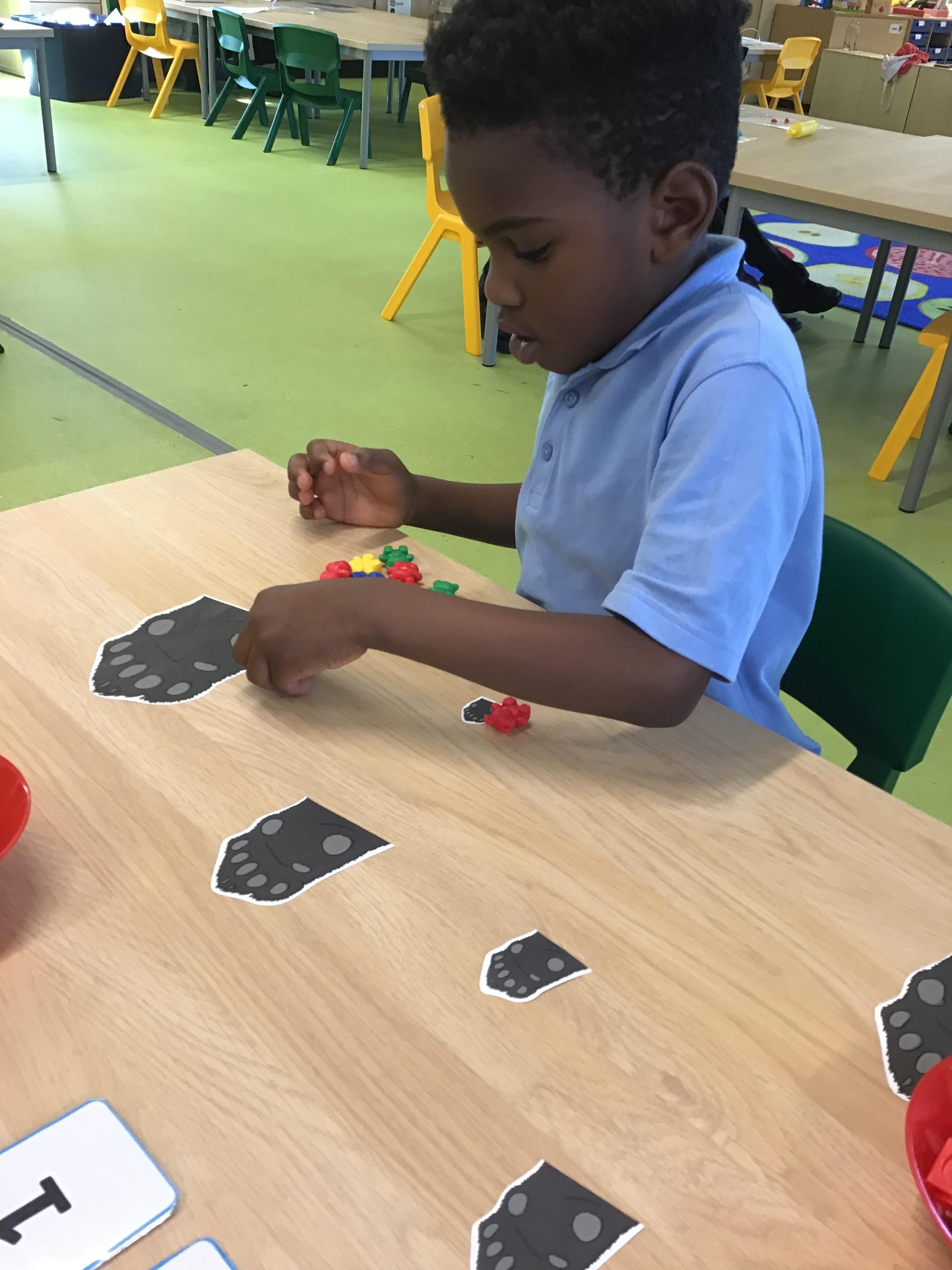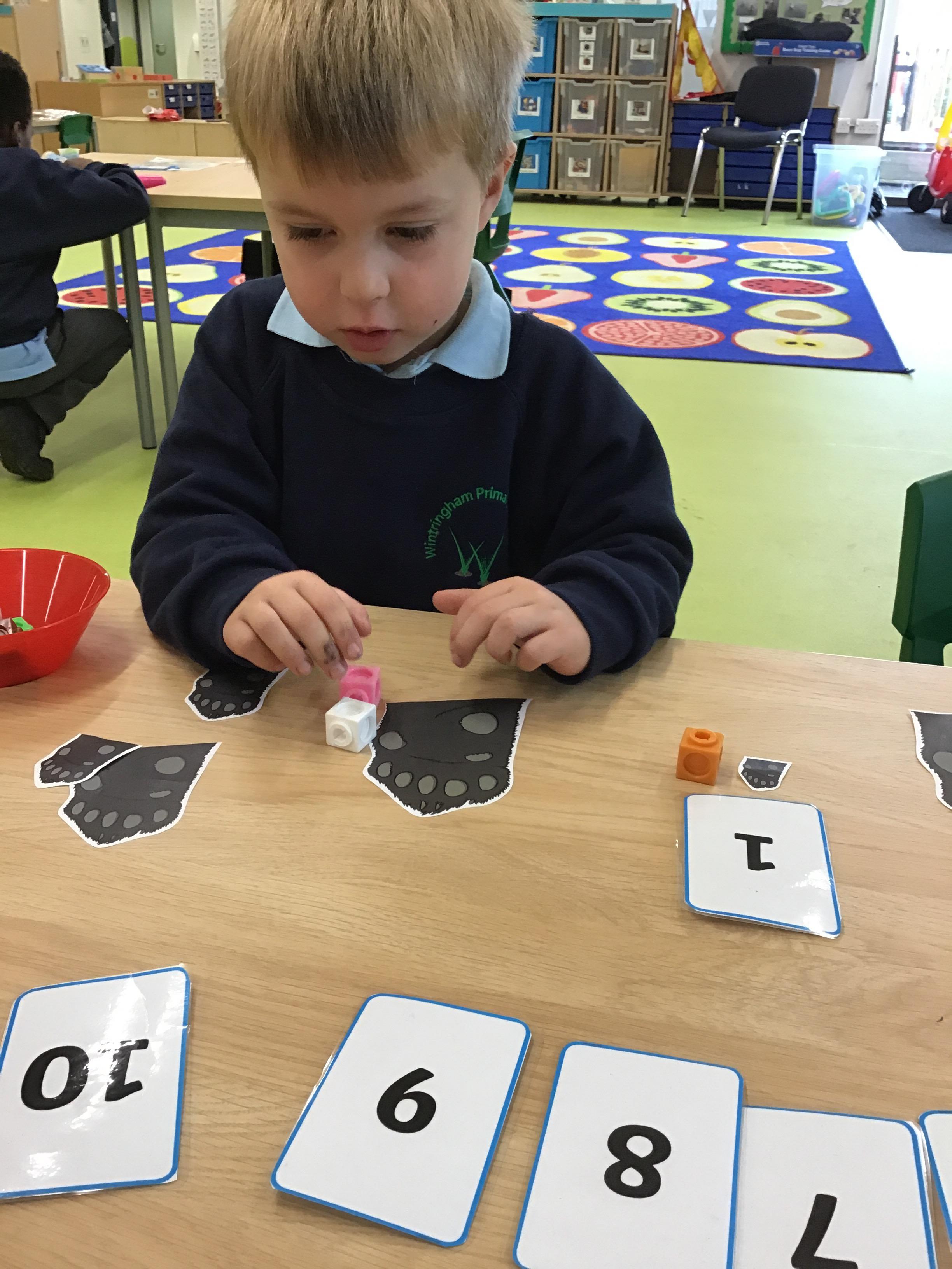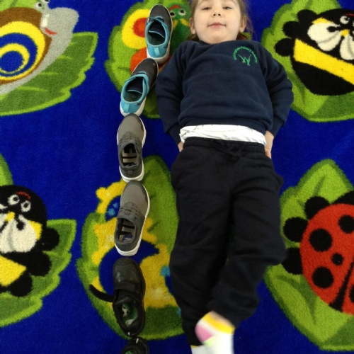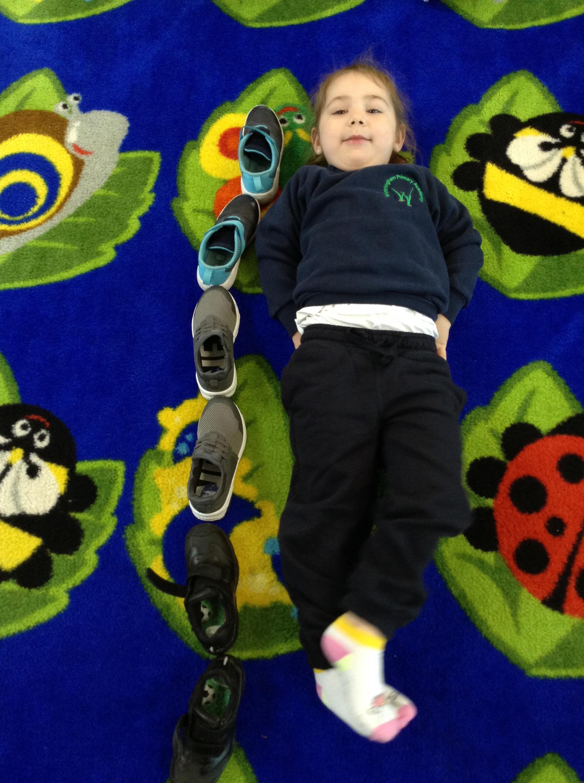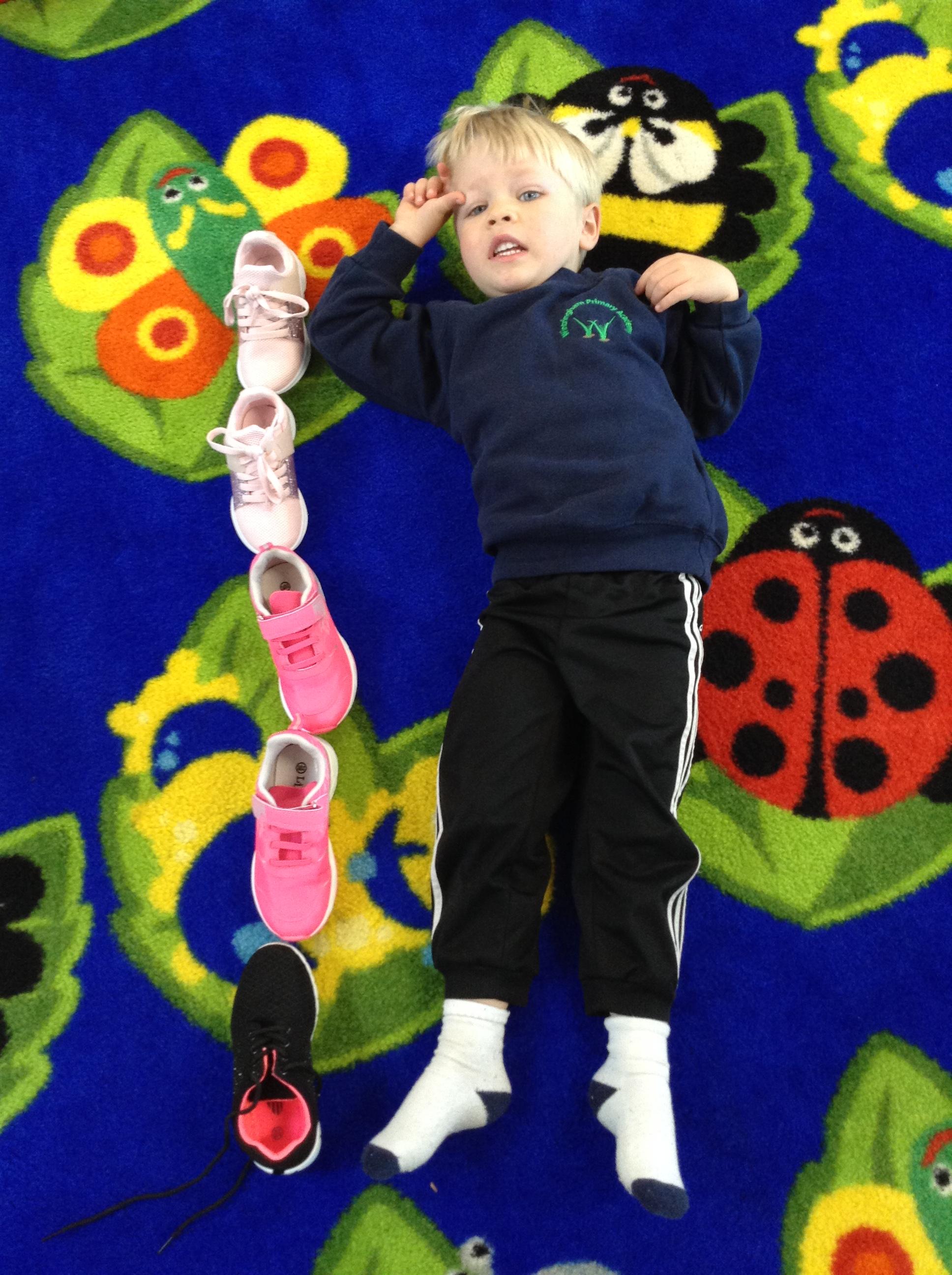 This is the children's first full week at school and some of them have been quite tired. They have been measuring with their feet and finding things that are bigger and smaller than their foot. The children have also been using different things around the classroom, e.g. magazines, shoes and dinosaurs in order to measure how tall they were which made them laugh alot! The children have really enjoyed sharing their 'All about Me' boxes with the rest of the class. It was lovely to see all of the objects, drawings and photographs that are so special to them. Thank you for taking the time to make a box with your child. The children have been busy independently adding the correct number of dabs onto each of the Numberblocks, practising their mark making using paint in a zipped wallet, making a variety of models using the popoids and also exploring the different activities in the outdoor area. Next week we will be learning the sounds i, n and m in our phonics sessions. Please note that on Monday, the children need to come into school in their school uniform and bring their PE kit to change into during the day. This is due to individual school photographs being taken. I hope you all have a lovely weekend
