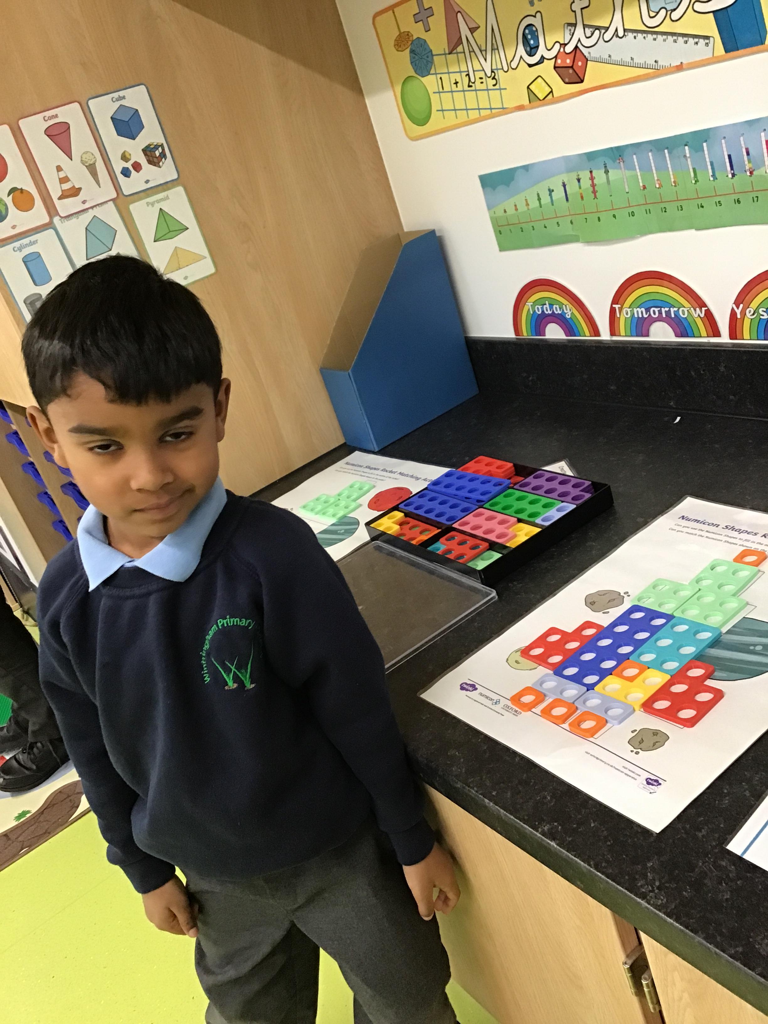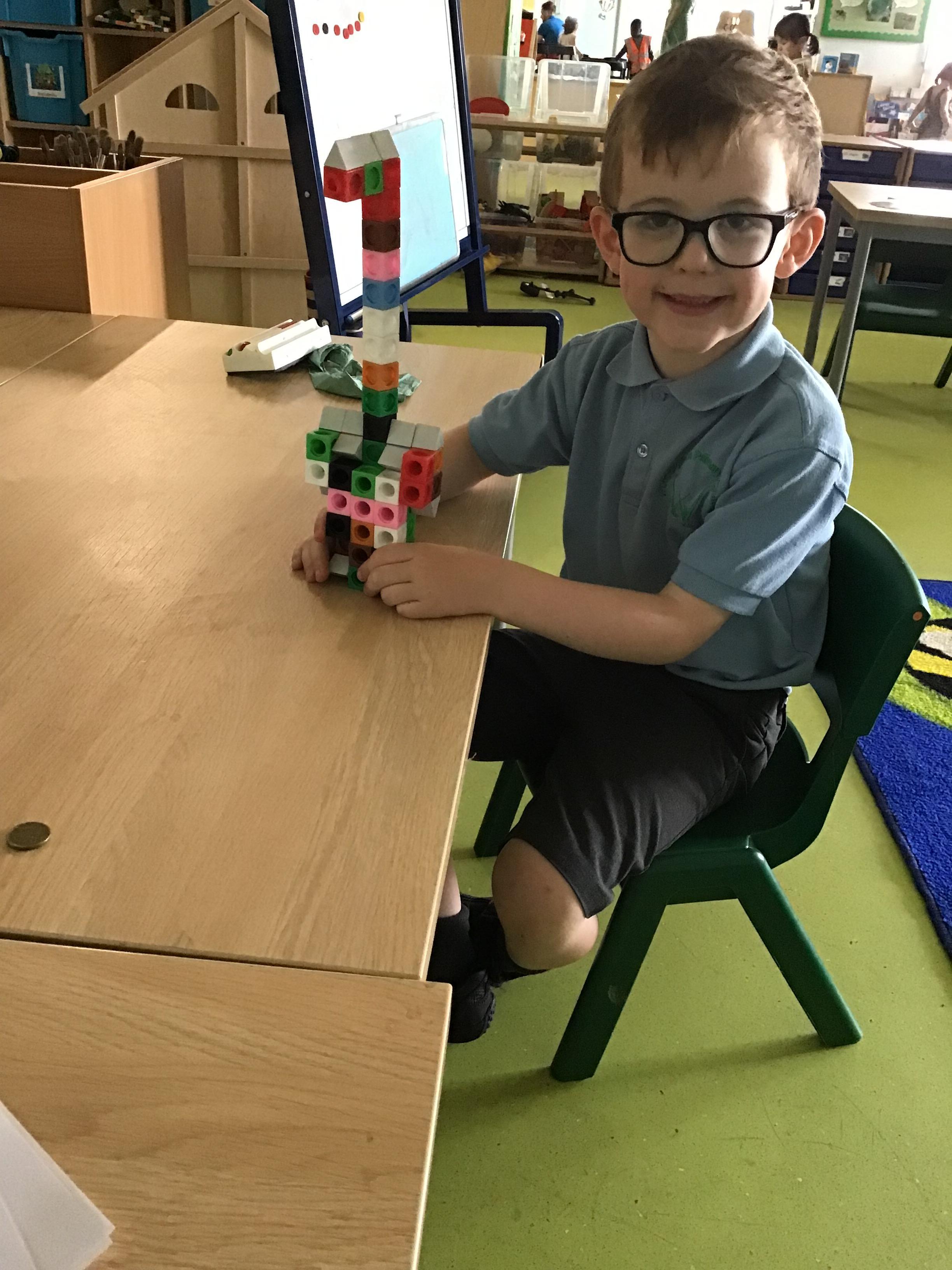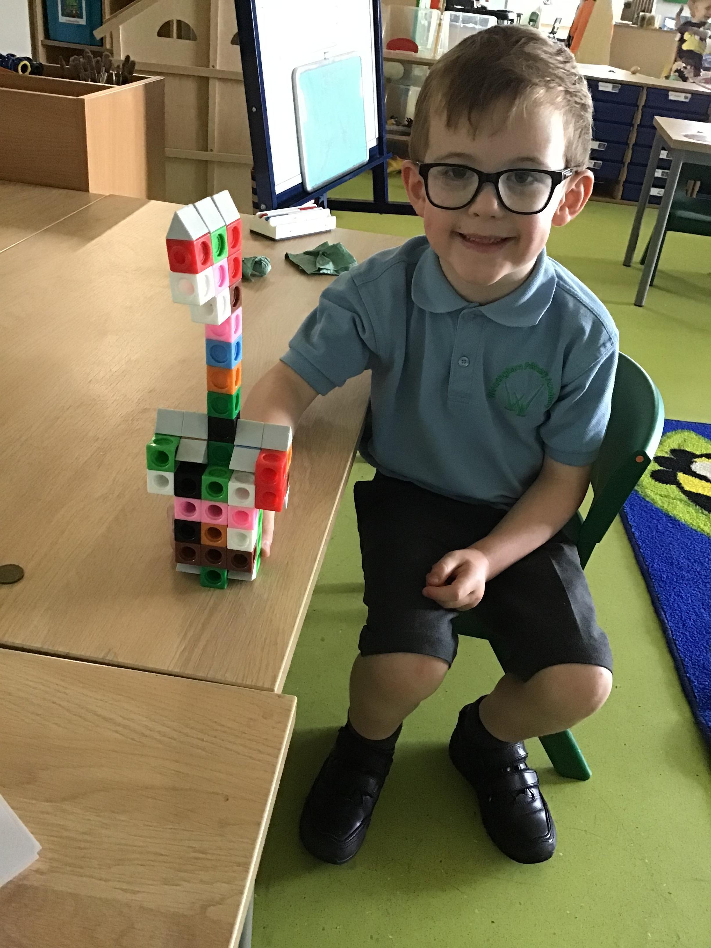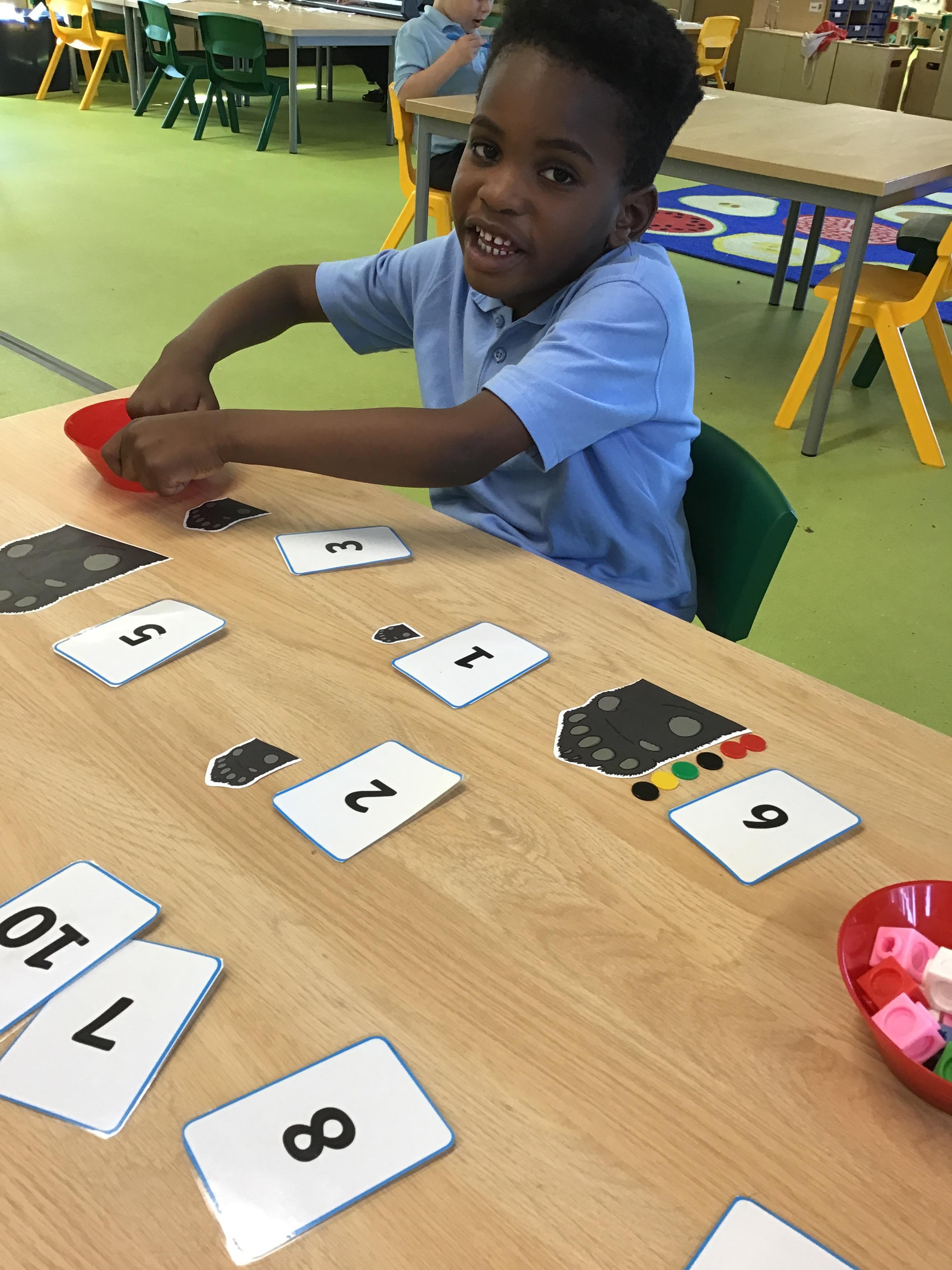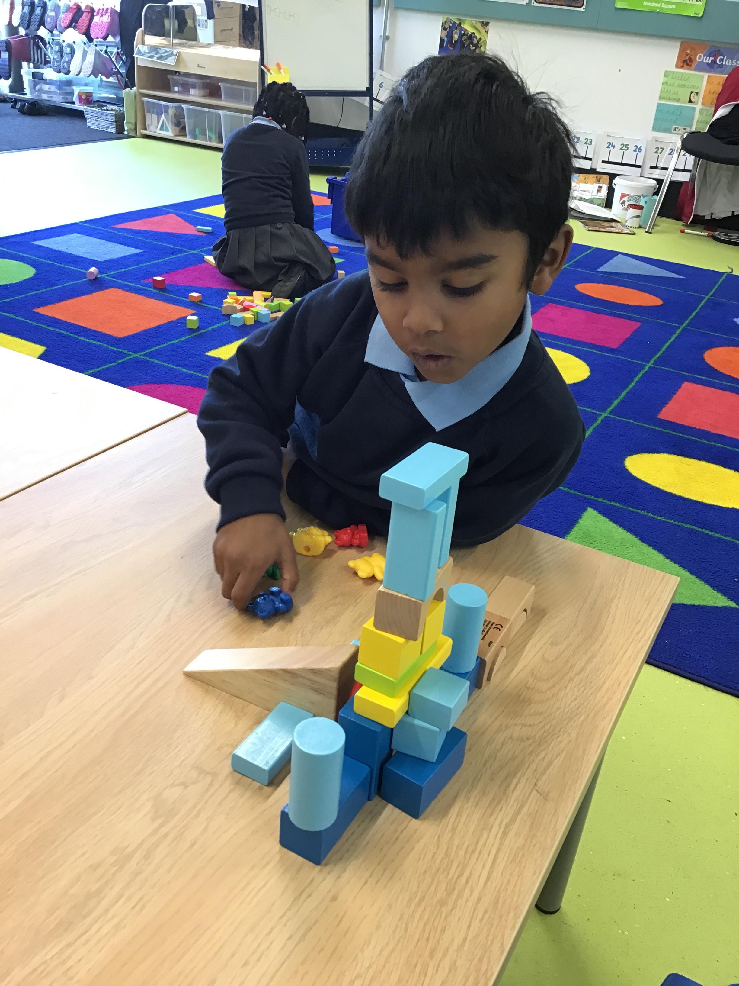 This is the children's first full week at school and some of them have been quite tired. They have been measuring with their feet and finding things that are bigger and smaller than their foot. The children have also been using different things around the classroom, e.g. magazines, shoes and dinosaurs in order to measure how tall they were which made them laugh alot! The children have really enjoyed sharing their 'All about Me' boxes with the rest of the class. It was lovely to see all of the objects, drawings and photographs that are so special to them. Thank you for taking the time to make a box with your child. The children have been busy independently adding the correct number of dabs onto each of the Numberblocks, practising their mark making using paint in a zipped wallet, making a variety of models using the popoids and also exploring the different activities in the outdoor area. Next week we will be learning the sounds i, n and m in our phonics sessions. Please note that on Monday, the children need to come into school in their school uniform and bring their PE kit to change into during the day. This is due to individual school photographs being taken. I hope you all have a lovely weekend