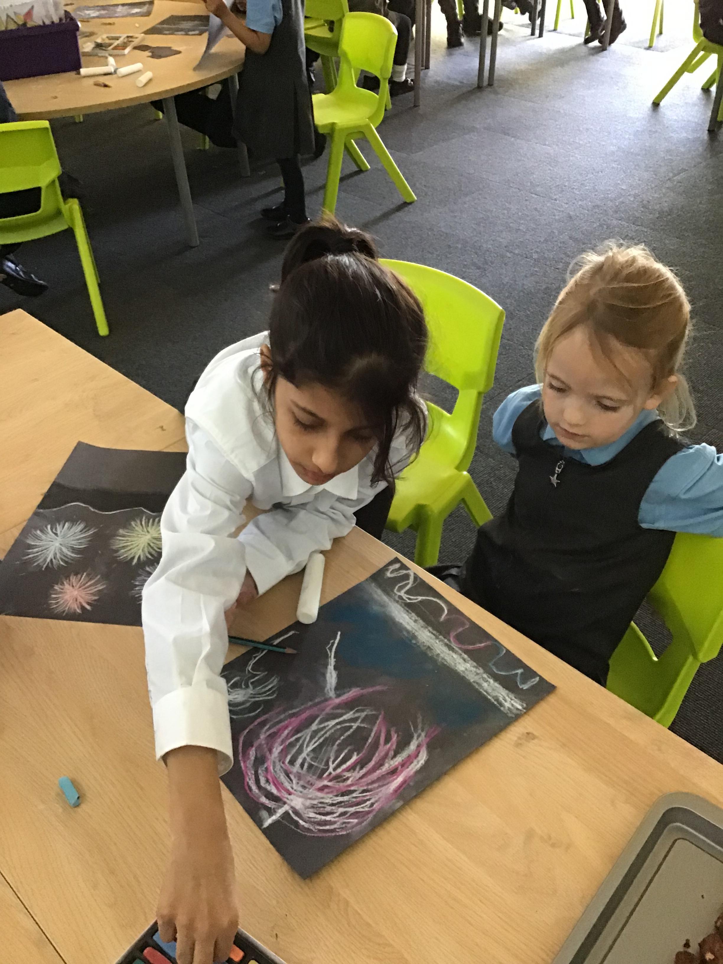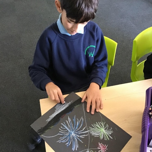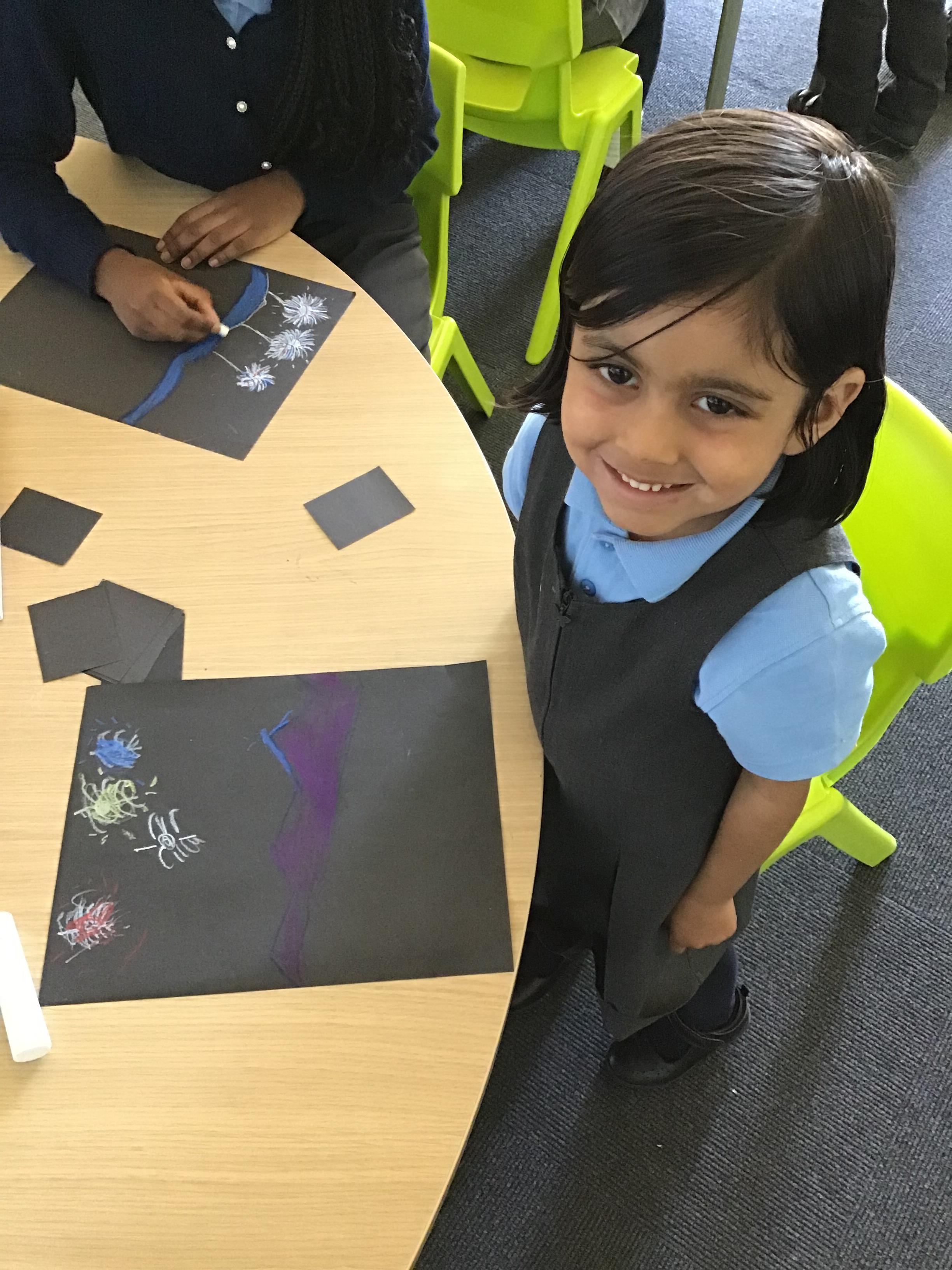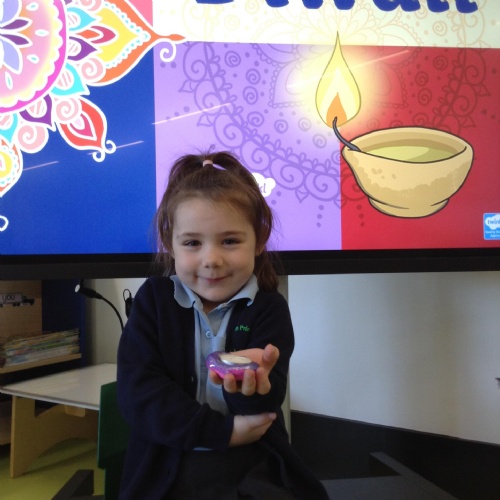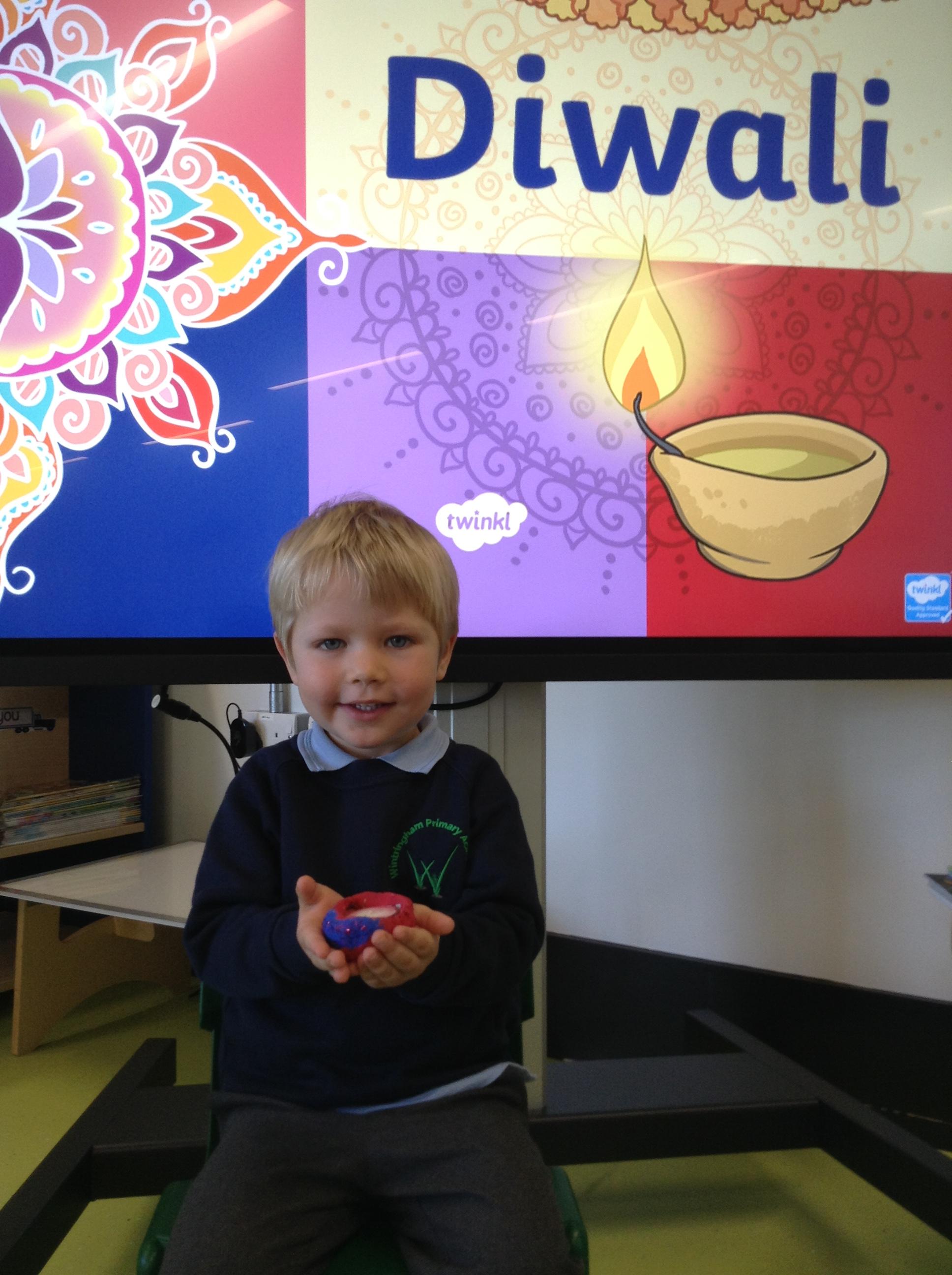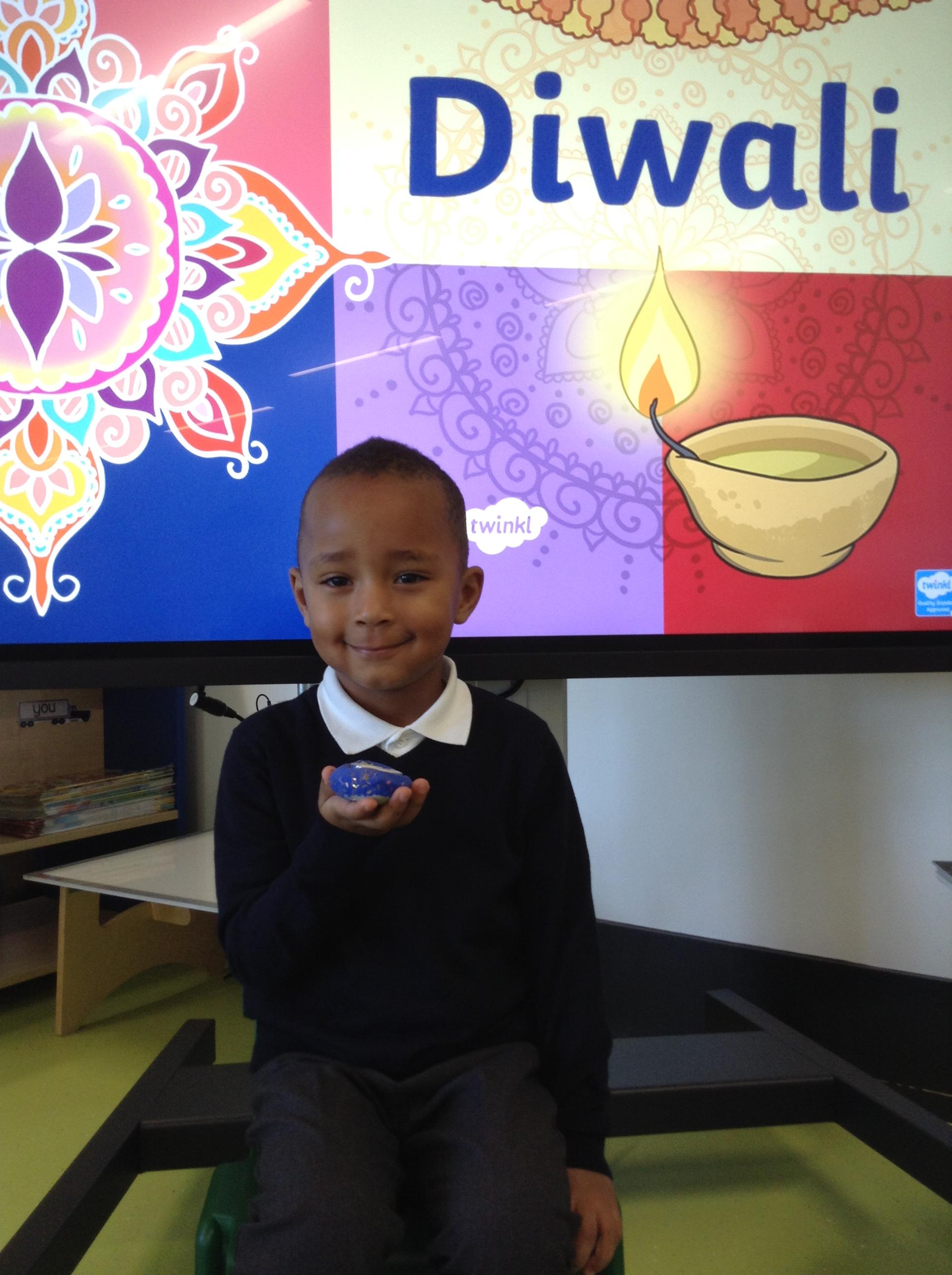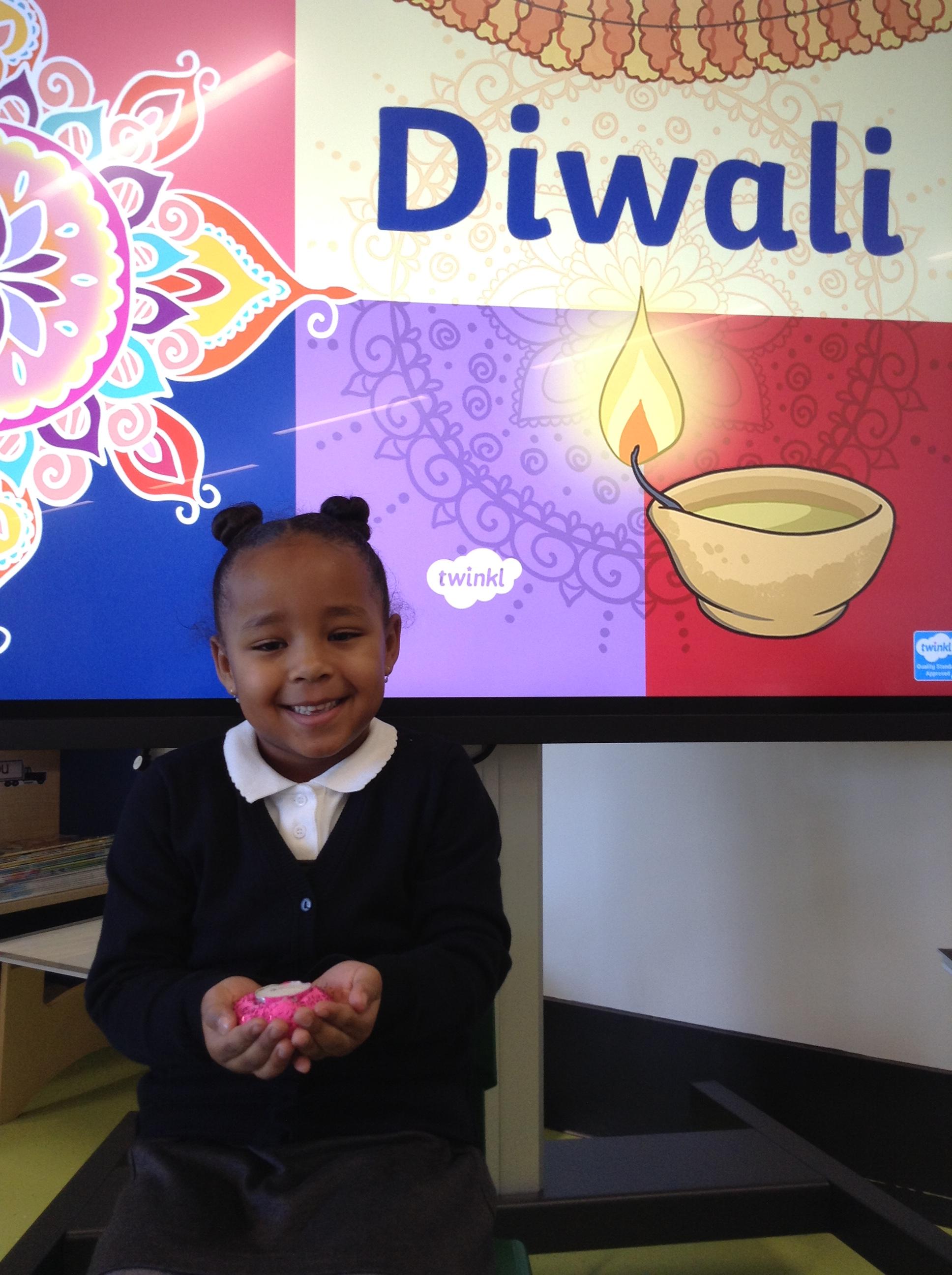 The children enjoyed being involved in a whole school Diwali day. They enjoyed listening to an assembly from Mr Kumar, using sparklers and creating Diwa lamps. They also created firework pictures, lanterns, creating Rangoli panterns and made Laddu.