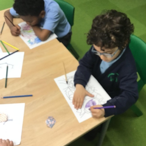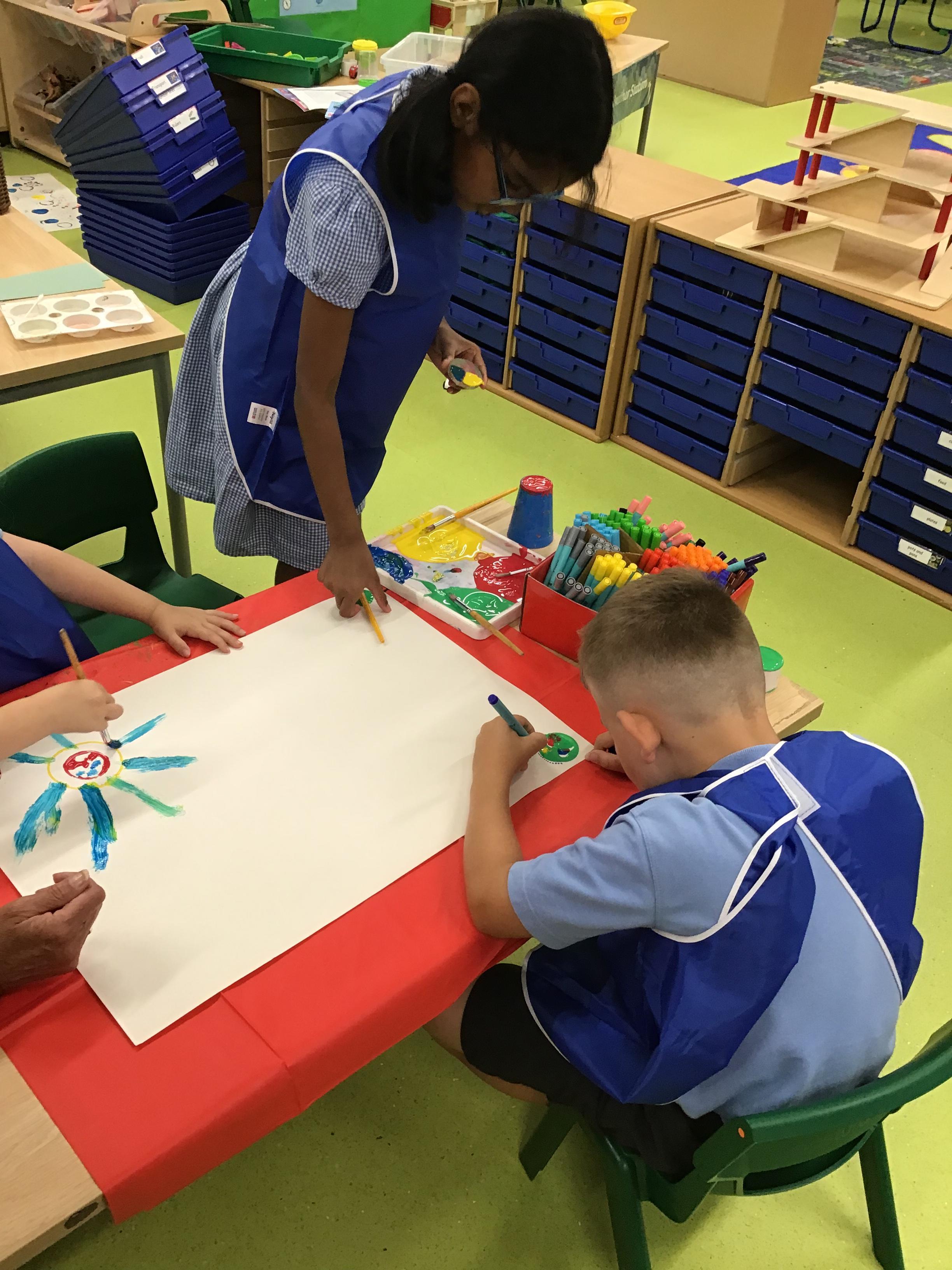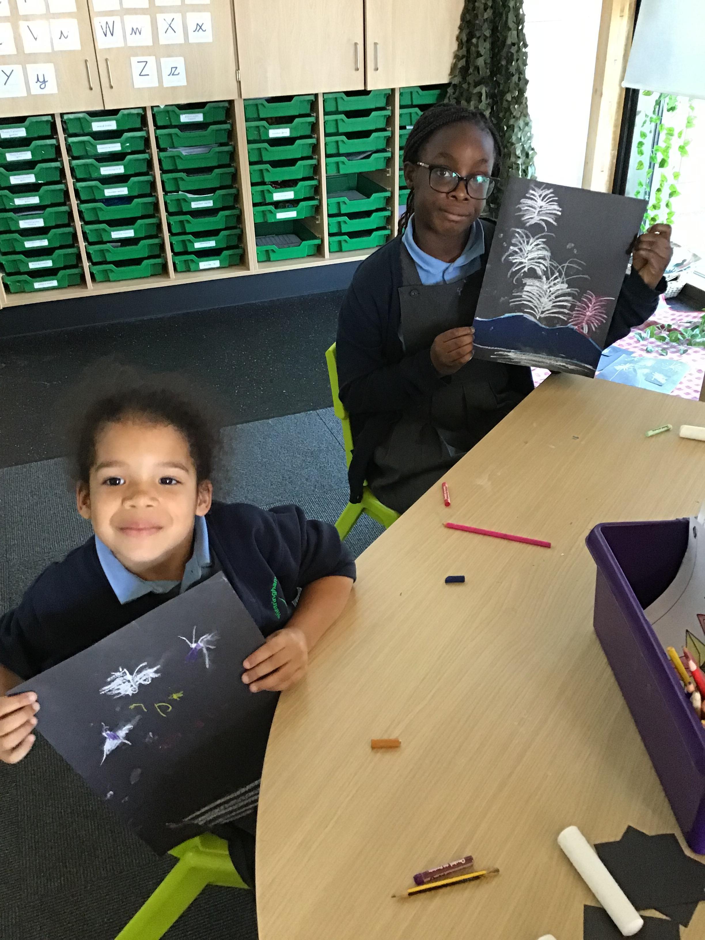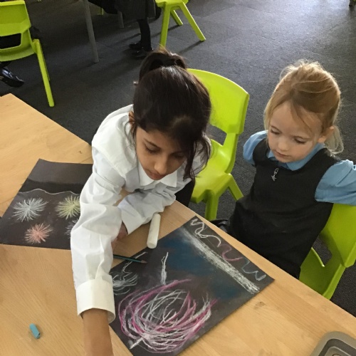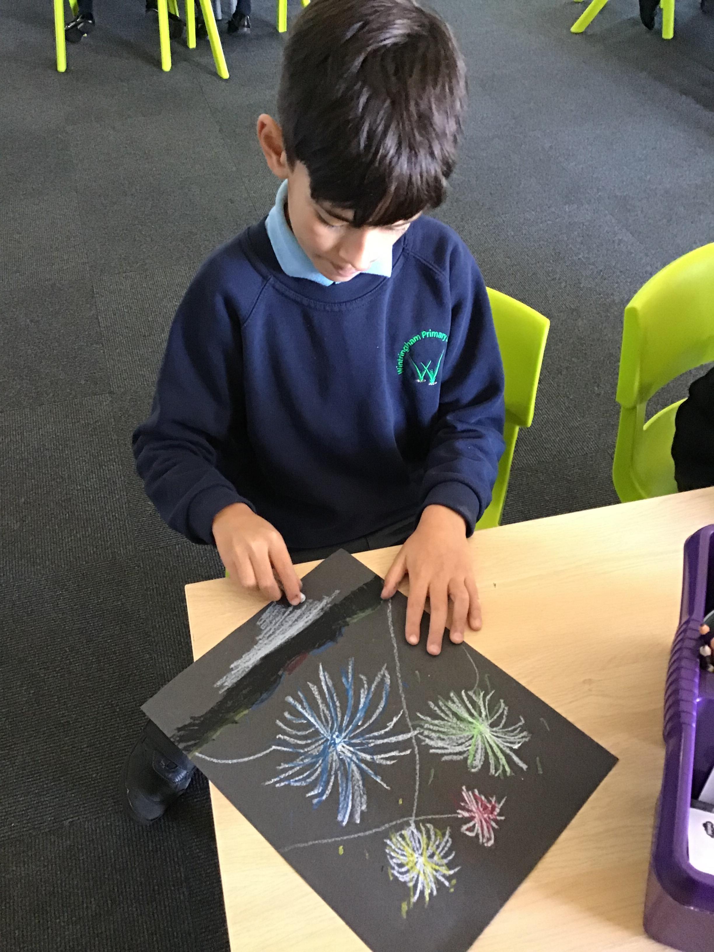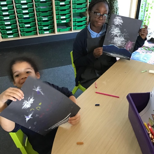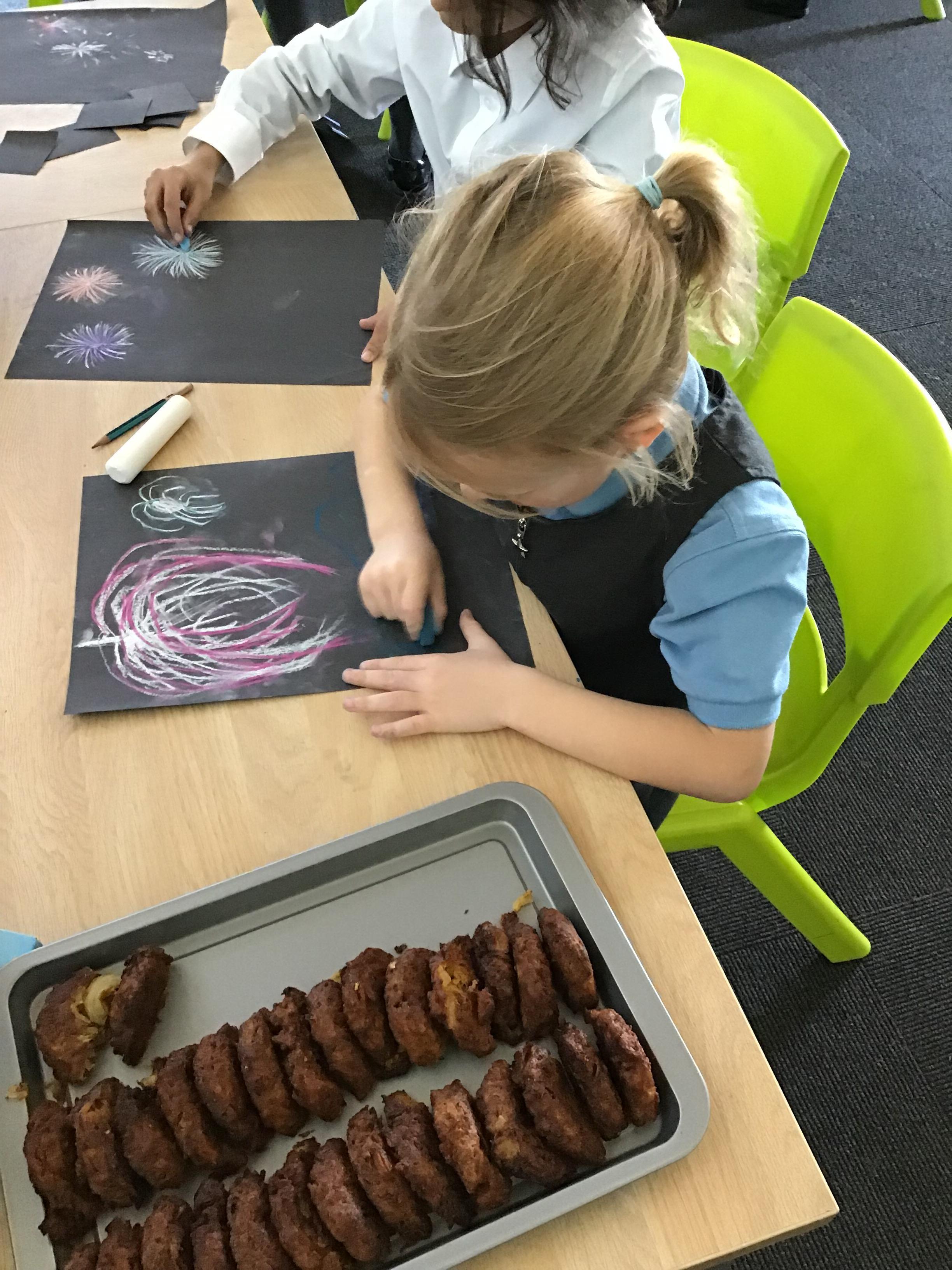 The children enjoyed being involved in a whole school Diwali day. They enjoyed listening to an assembly from Mr Kumar, using sparklers and creating Diwa lamps. They also created firework pictures, lanterns, creating Rangoli panterns and made Laddu.