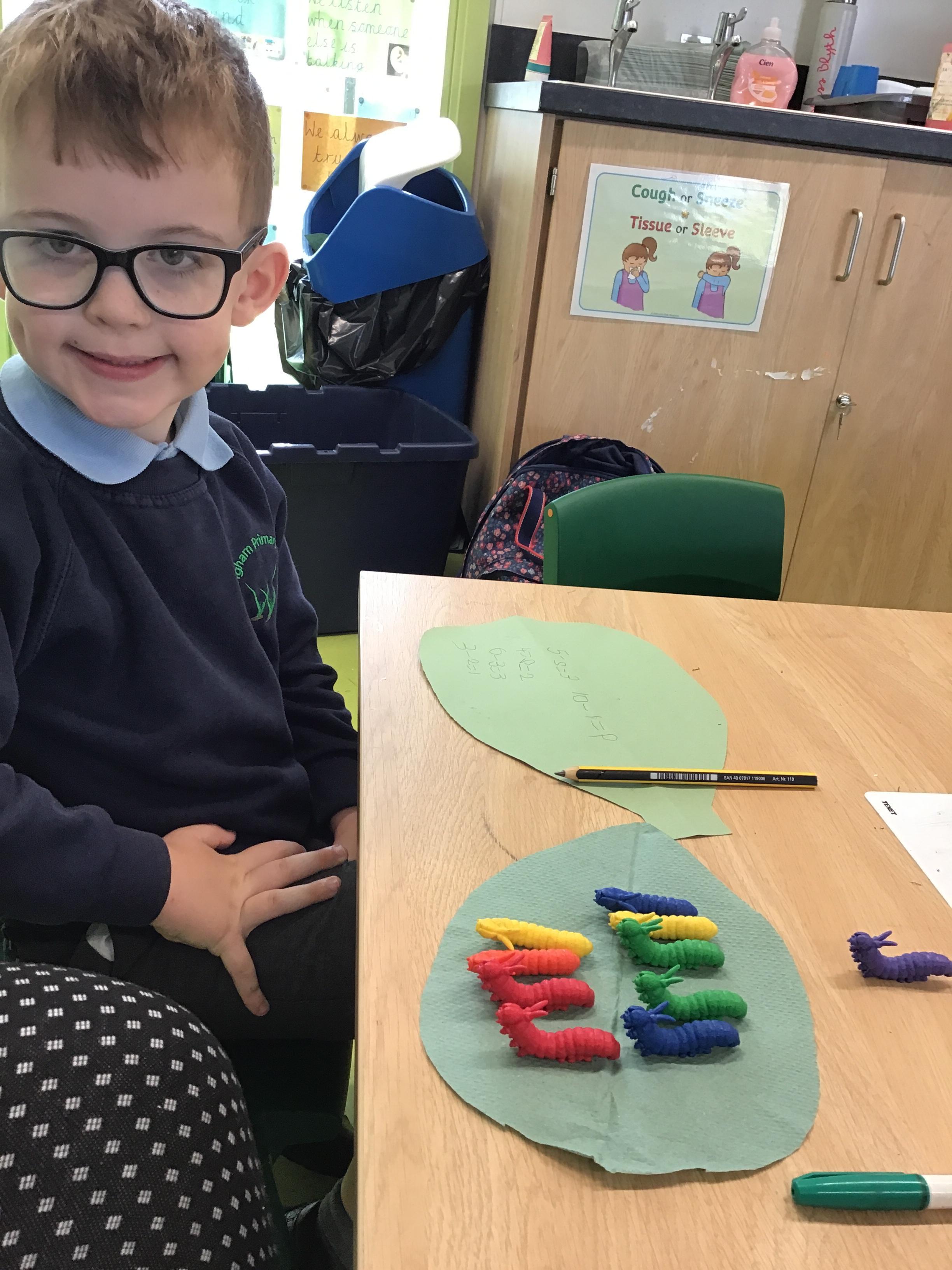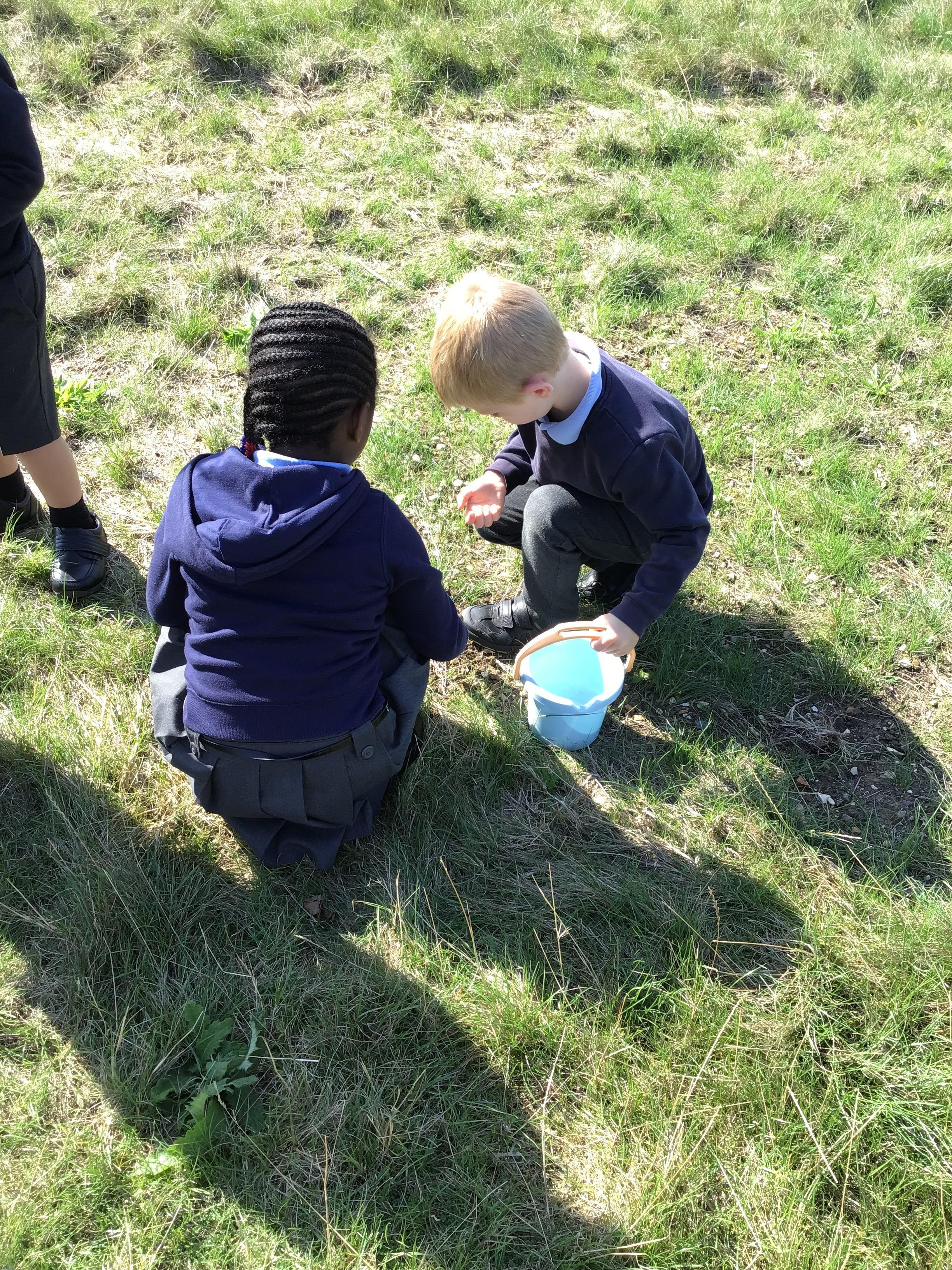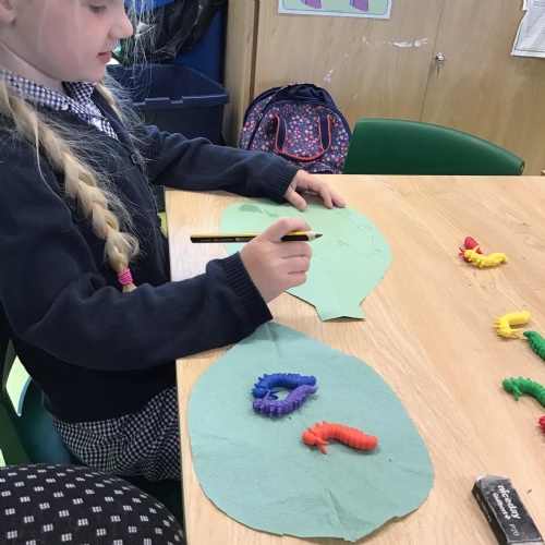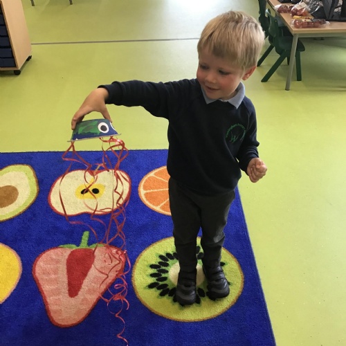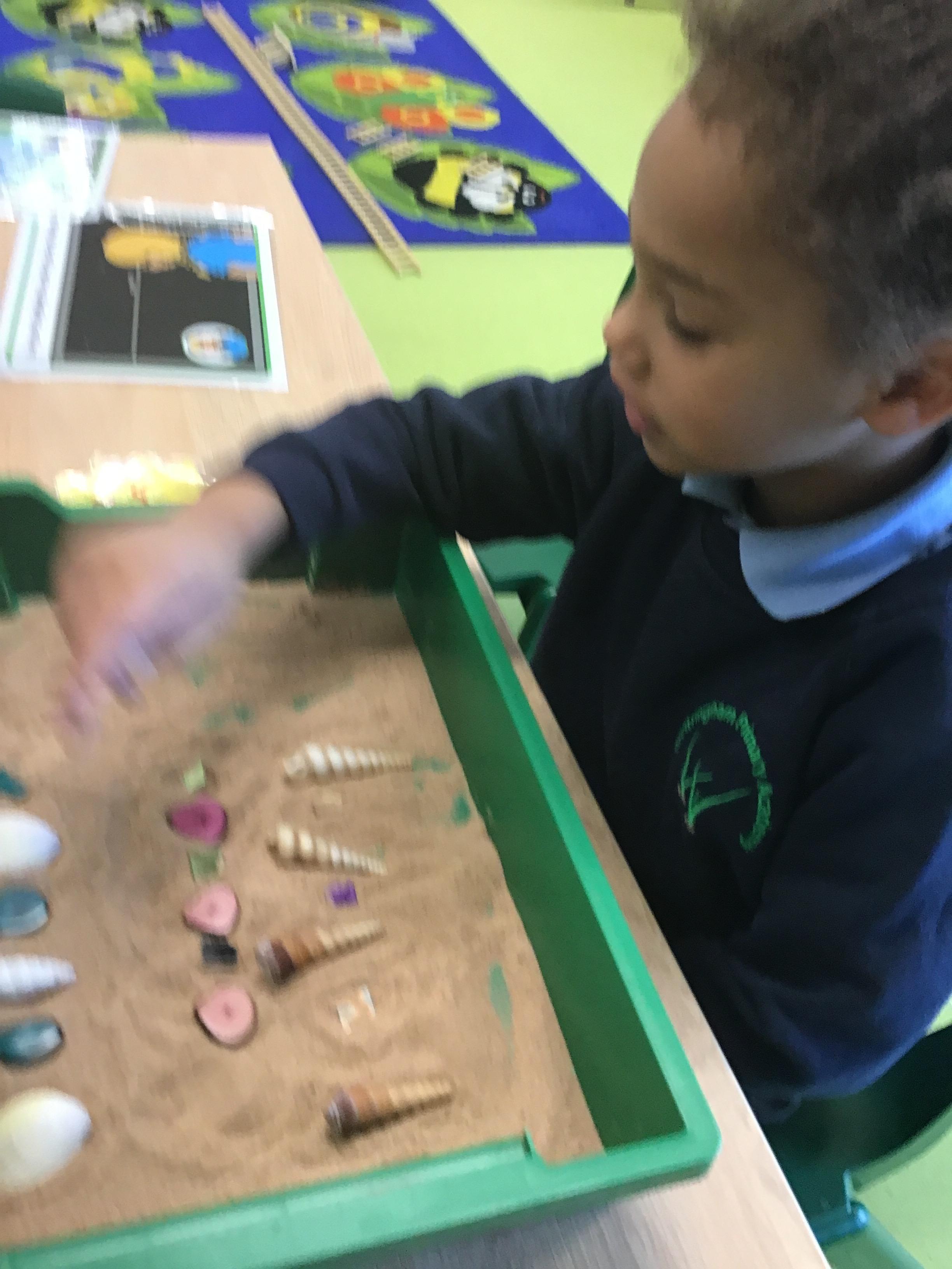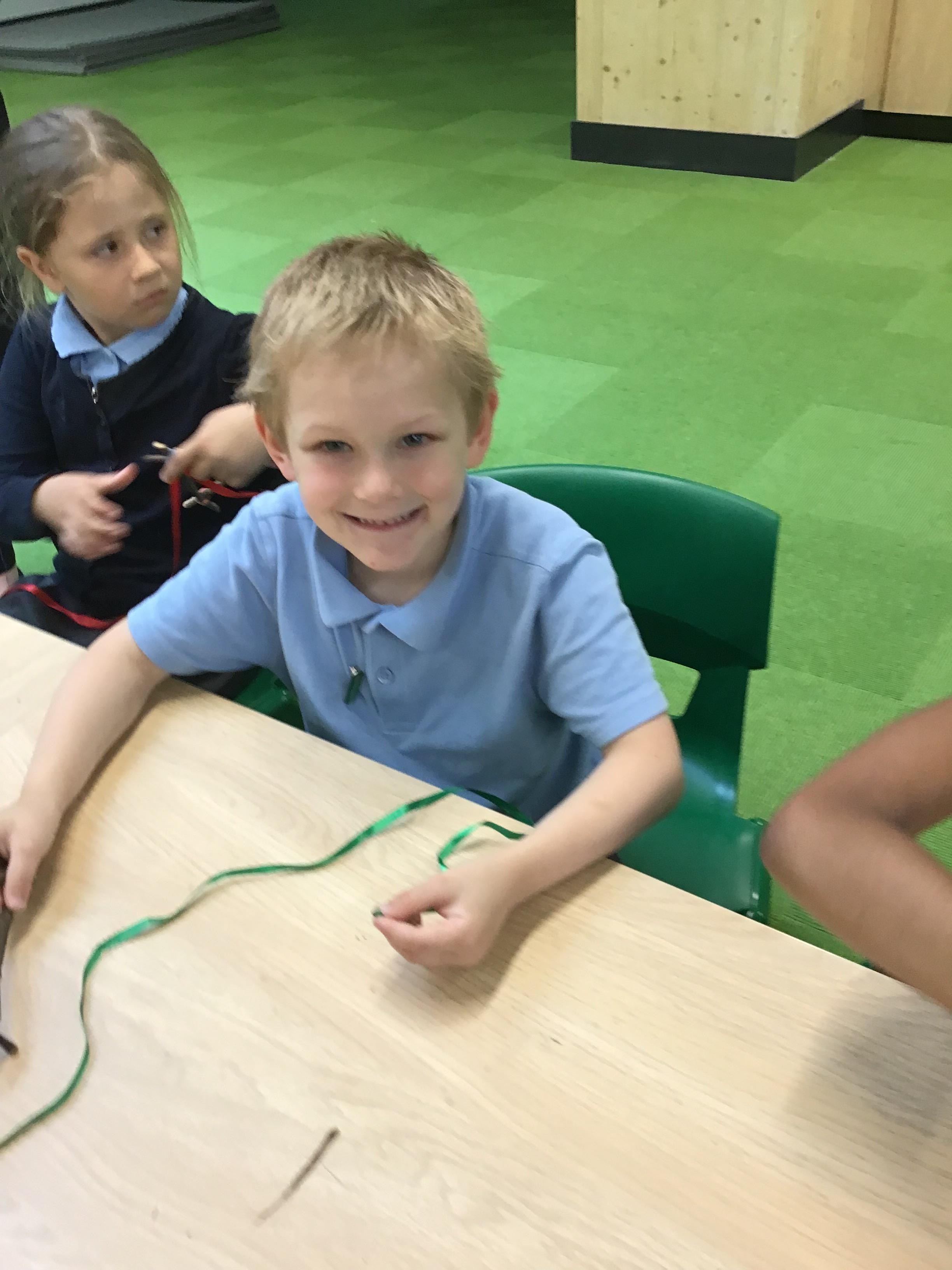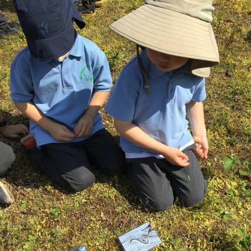 We were also very lucky to have our first Forest School session. The children were read a story, 'Yucky Worms.' They then had to find a specific colour string worm and count how many they found. Then, they pretended to be the rain by jumping up and down on the ground to encourage the worms to come to the surface.
