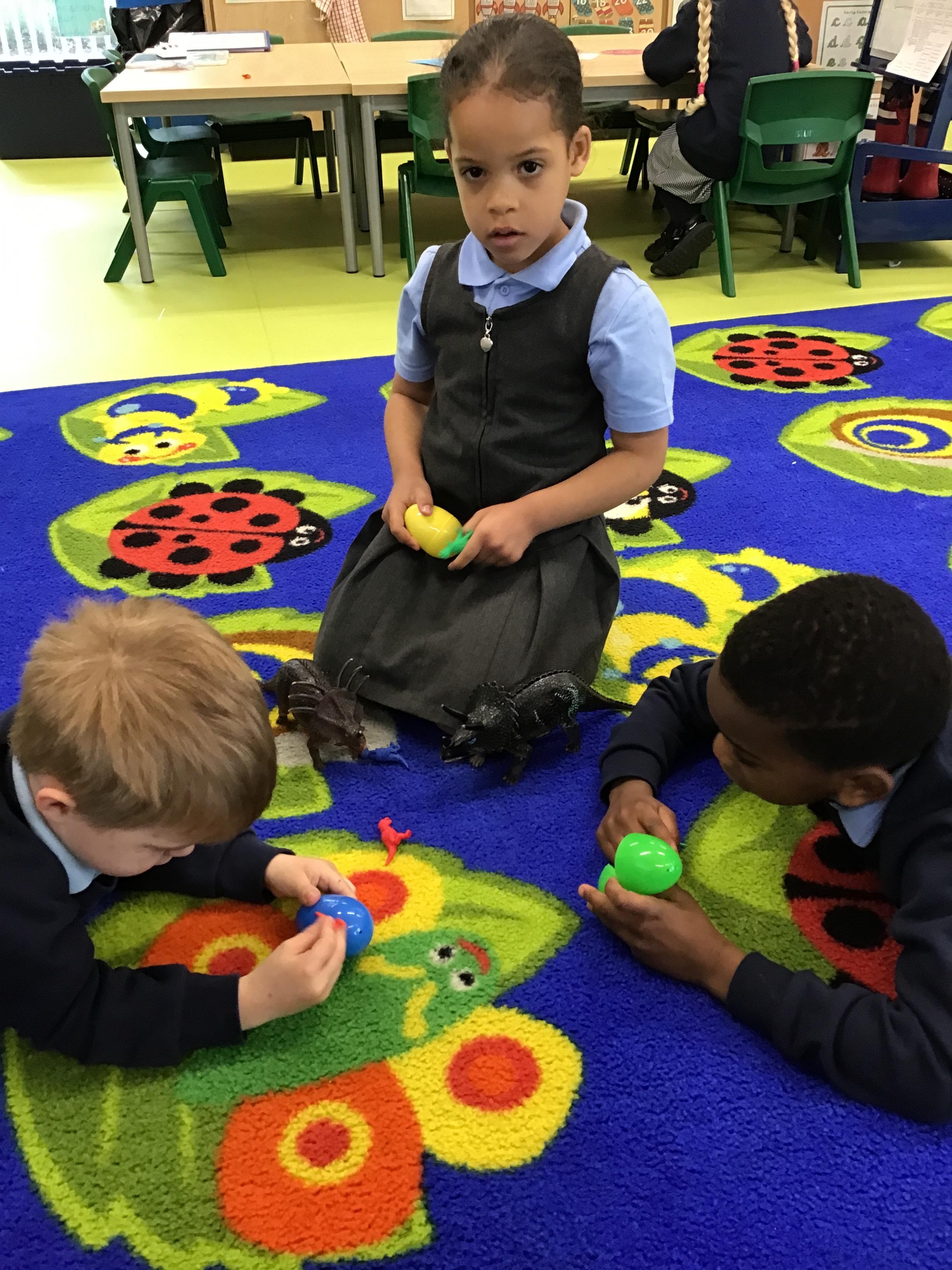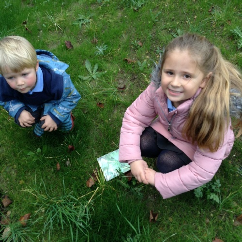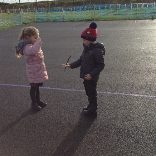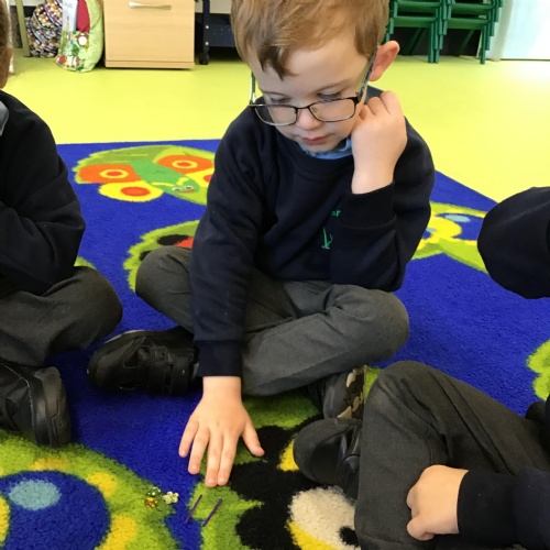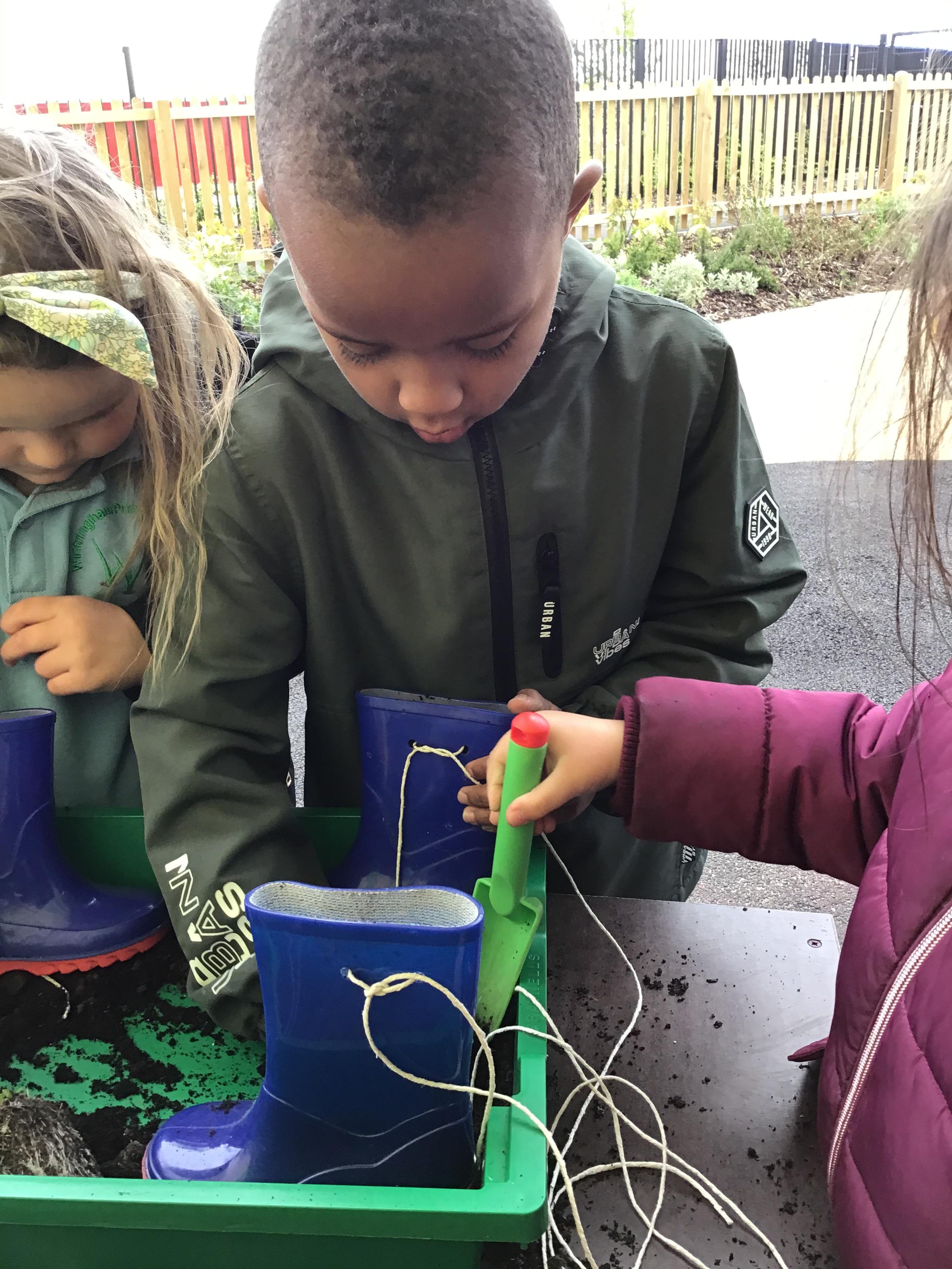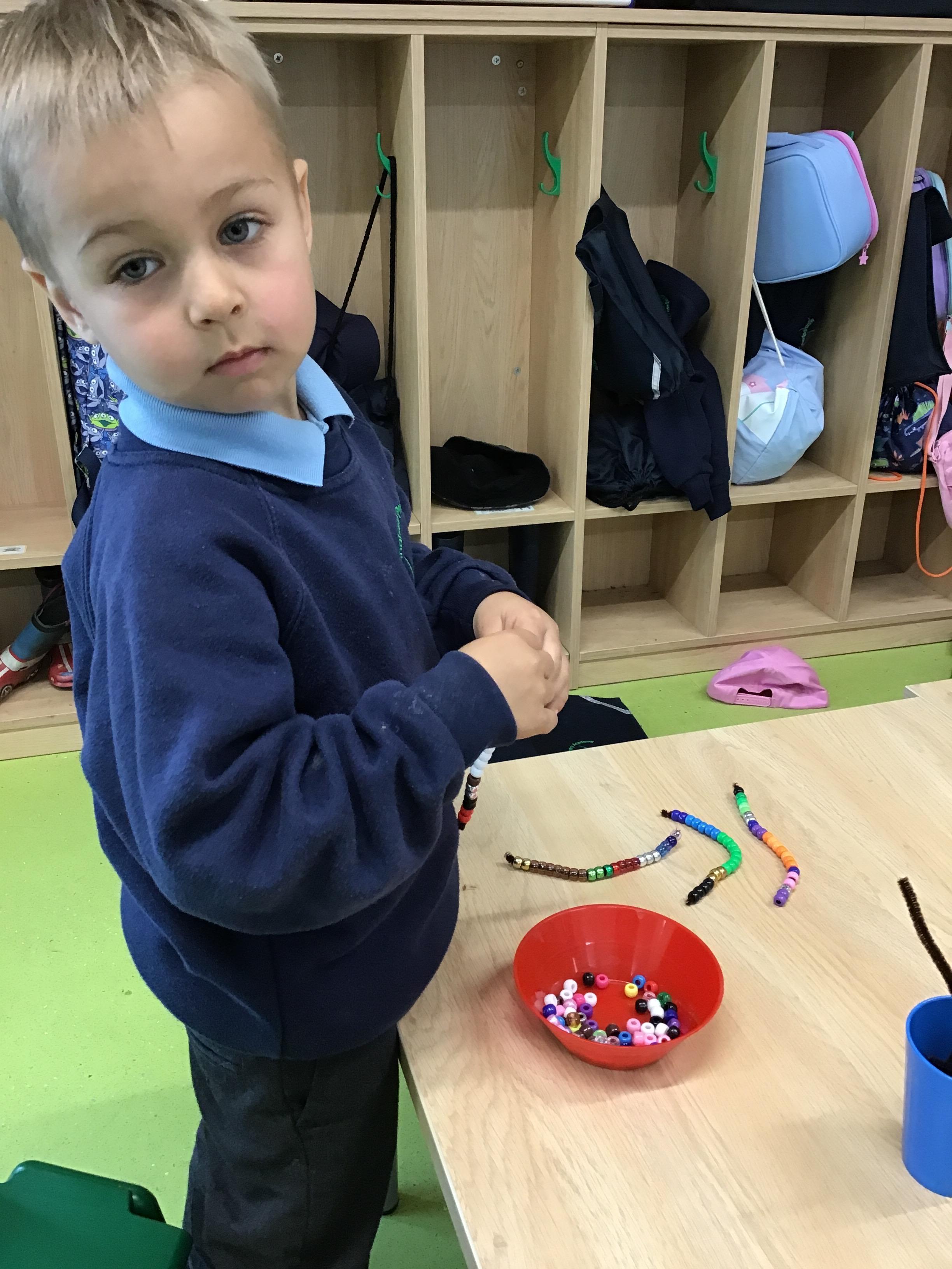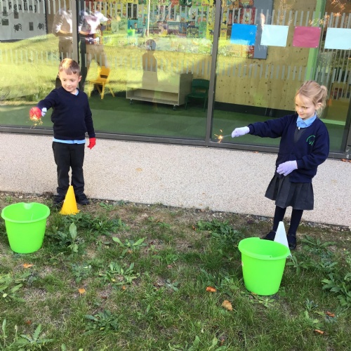 We were also very lucky to have our first Forest School session. The children were read a story, 'Yucky Worms.' They then had to find a specific colour string worm and count how many they found. Then, they pretended to be the rain by jumping up and down on the ground to encourage the worms to come to the surface.