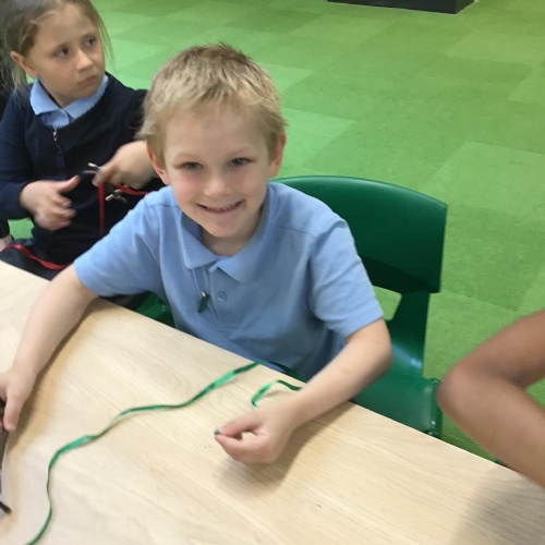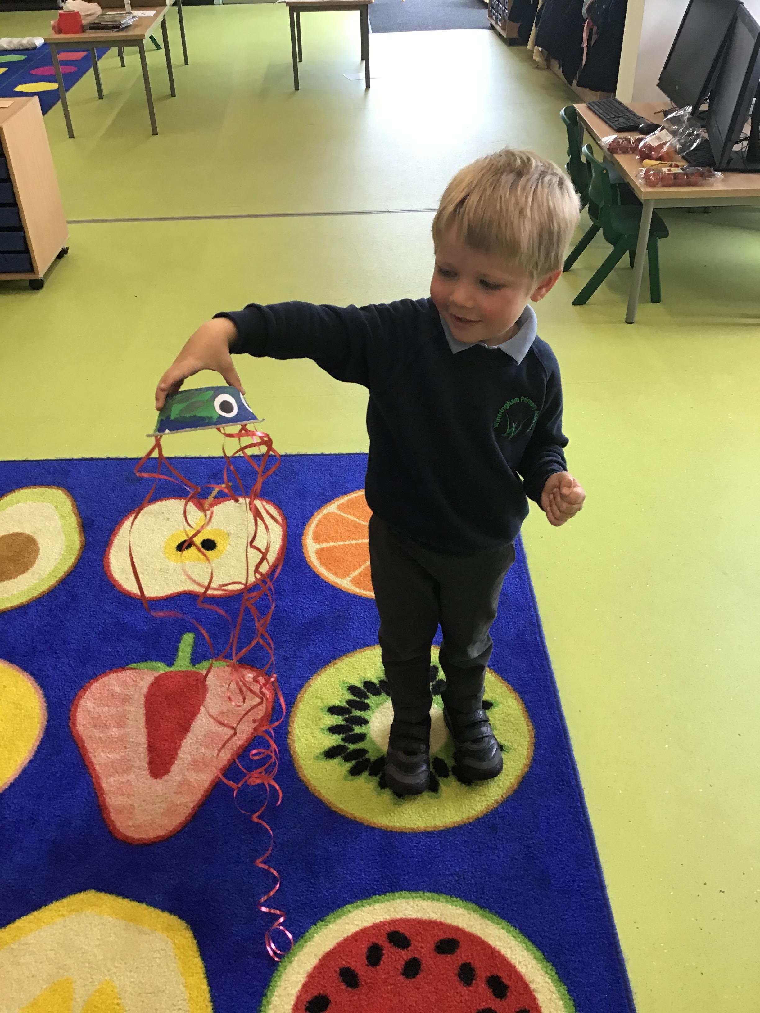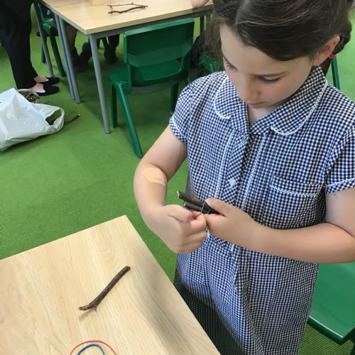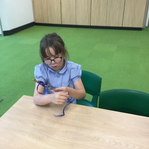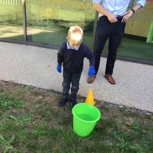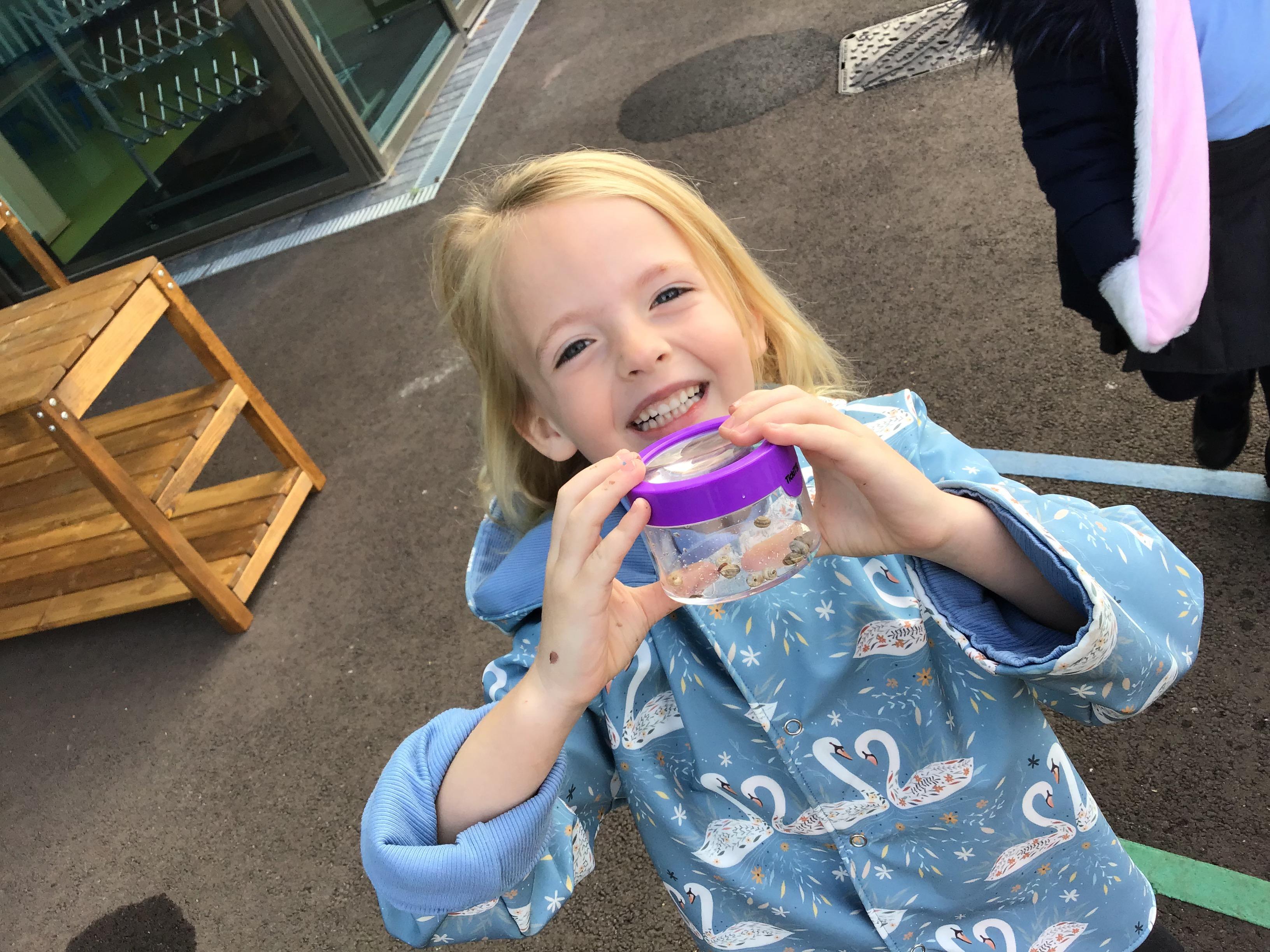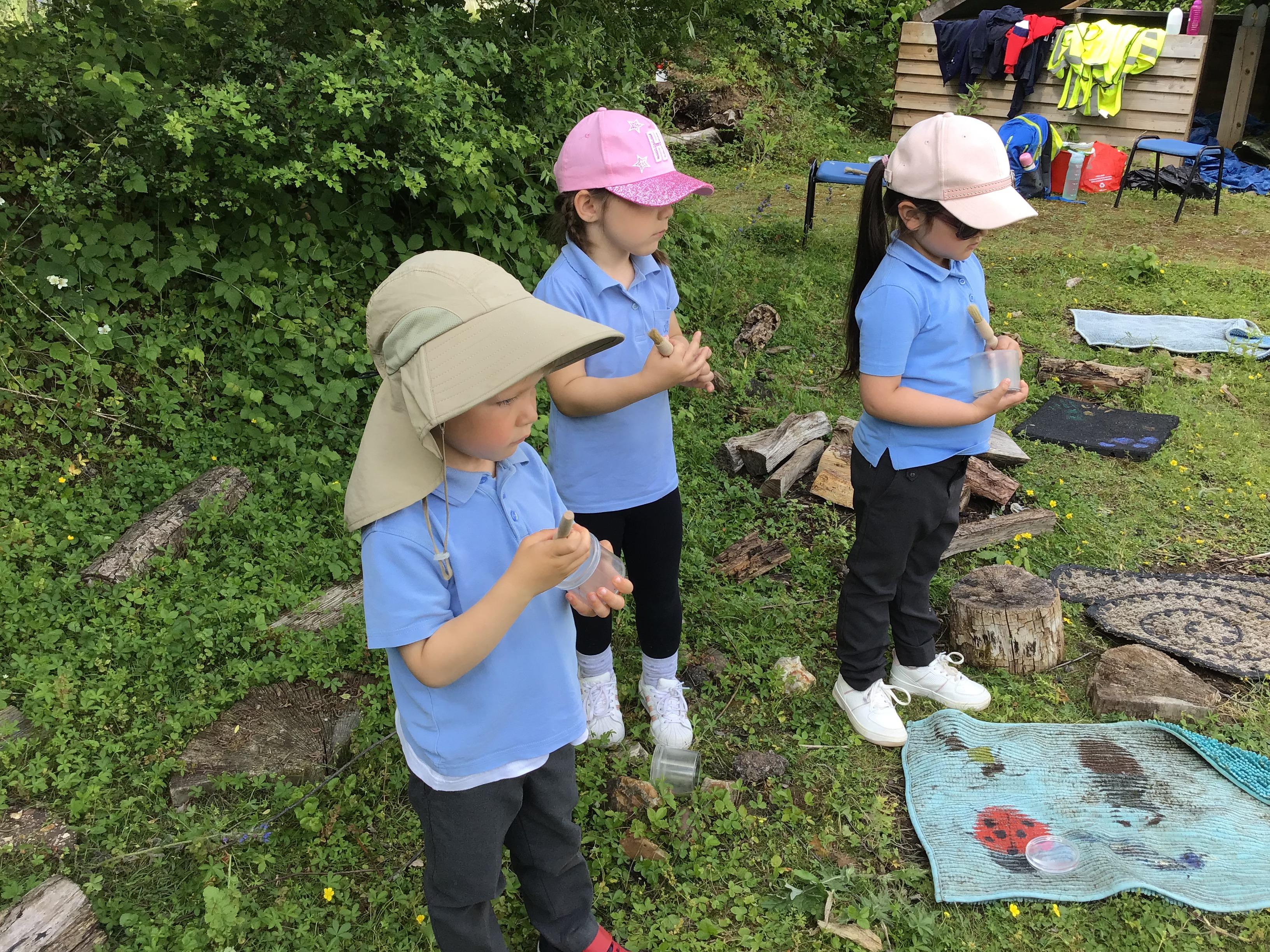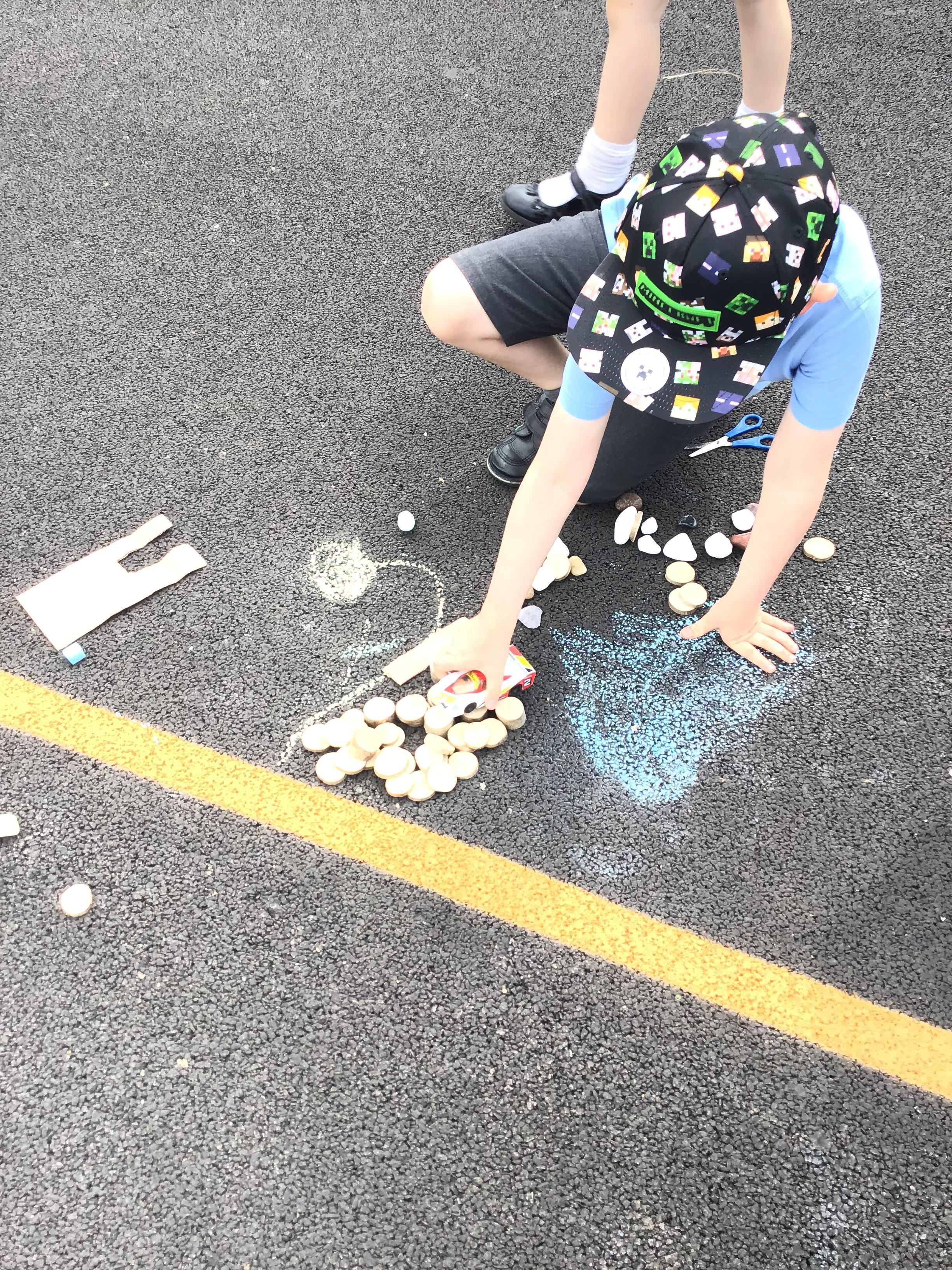 We were also very lucky to have our first Forest School session. The children were read a story, 'Yucky Worms.' They then had to find a specific colour string worm and count how many they found. Then, they pretended to be the rain by jumping up and down on the ground to encourage the worms to come to the surface.