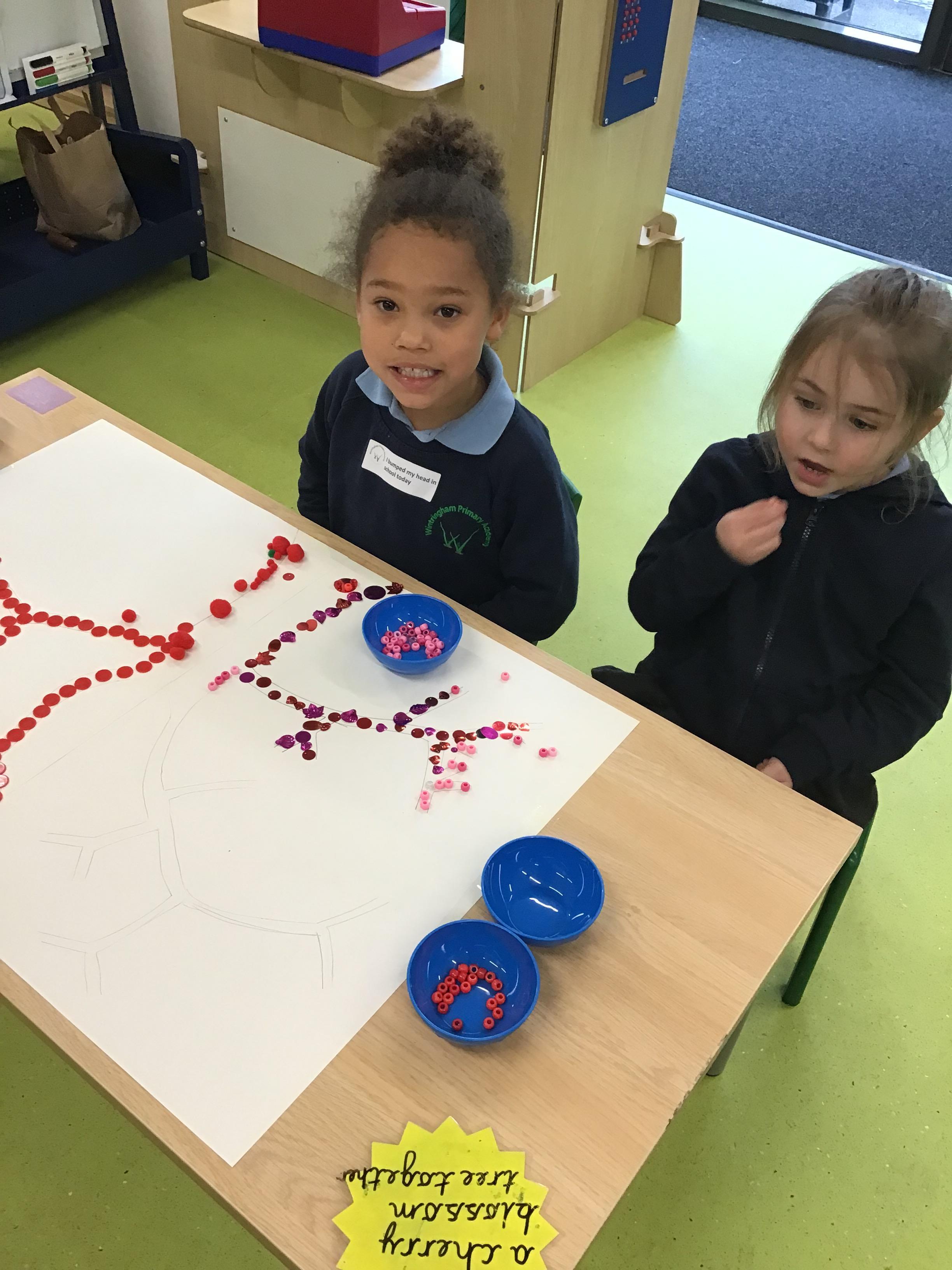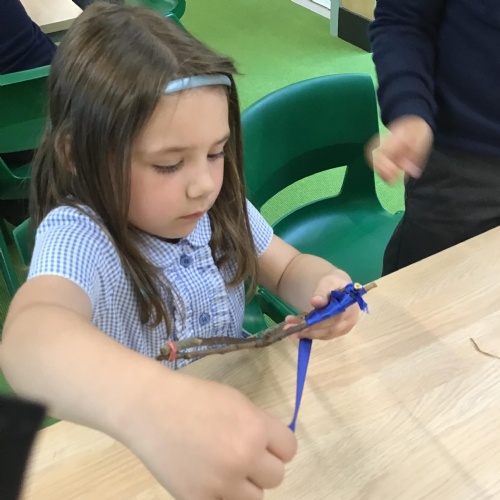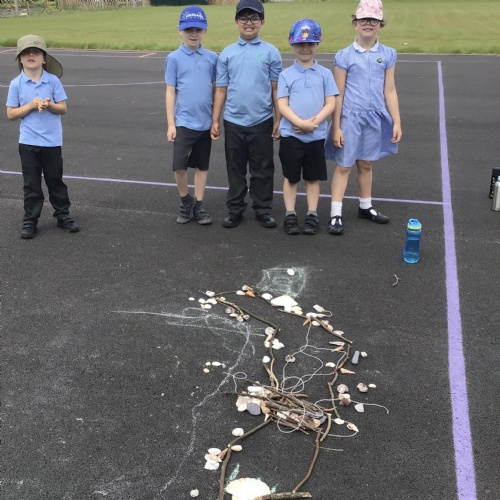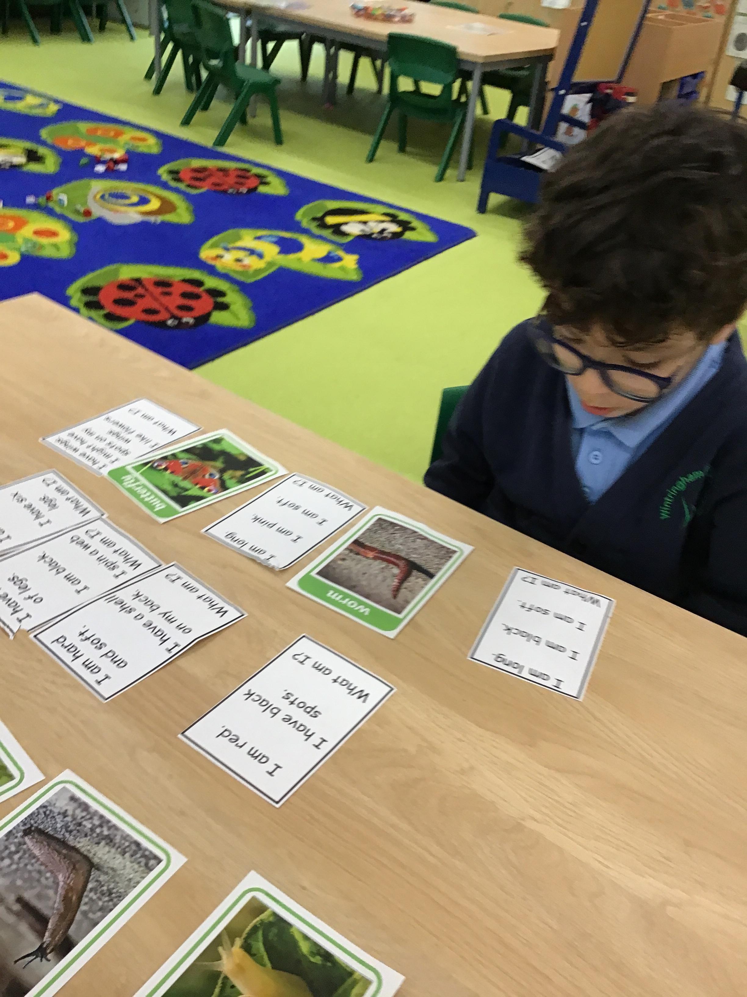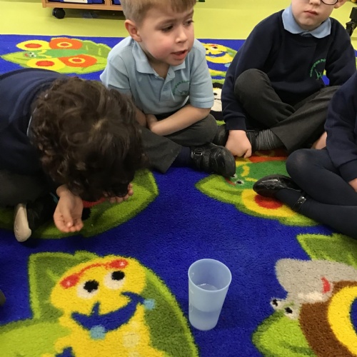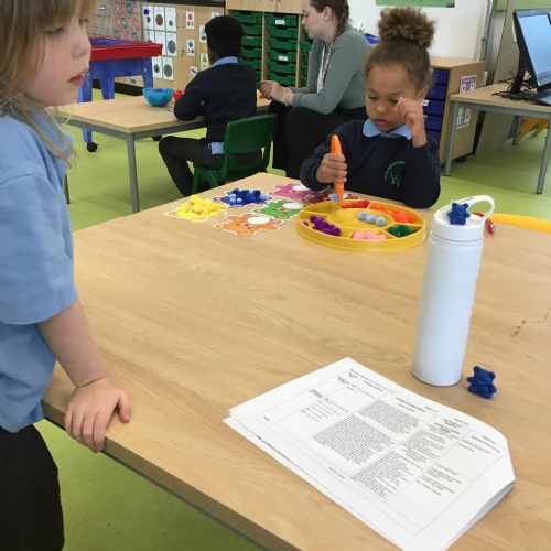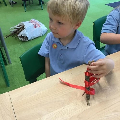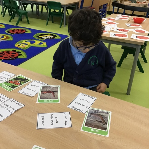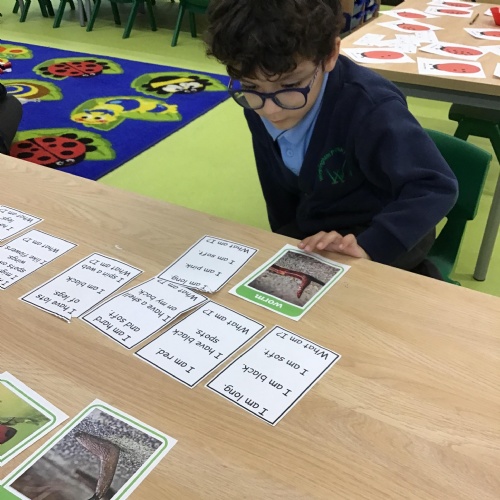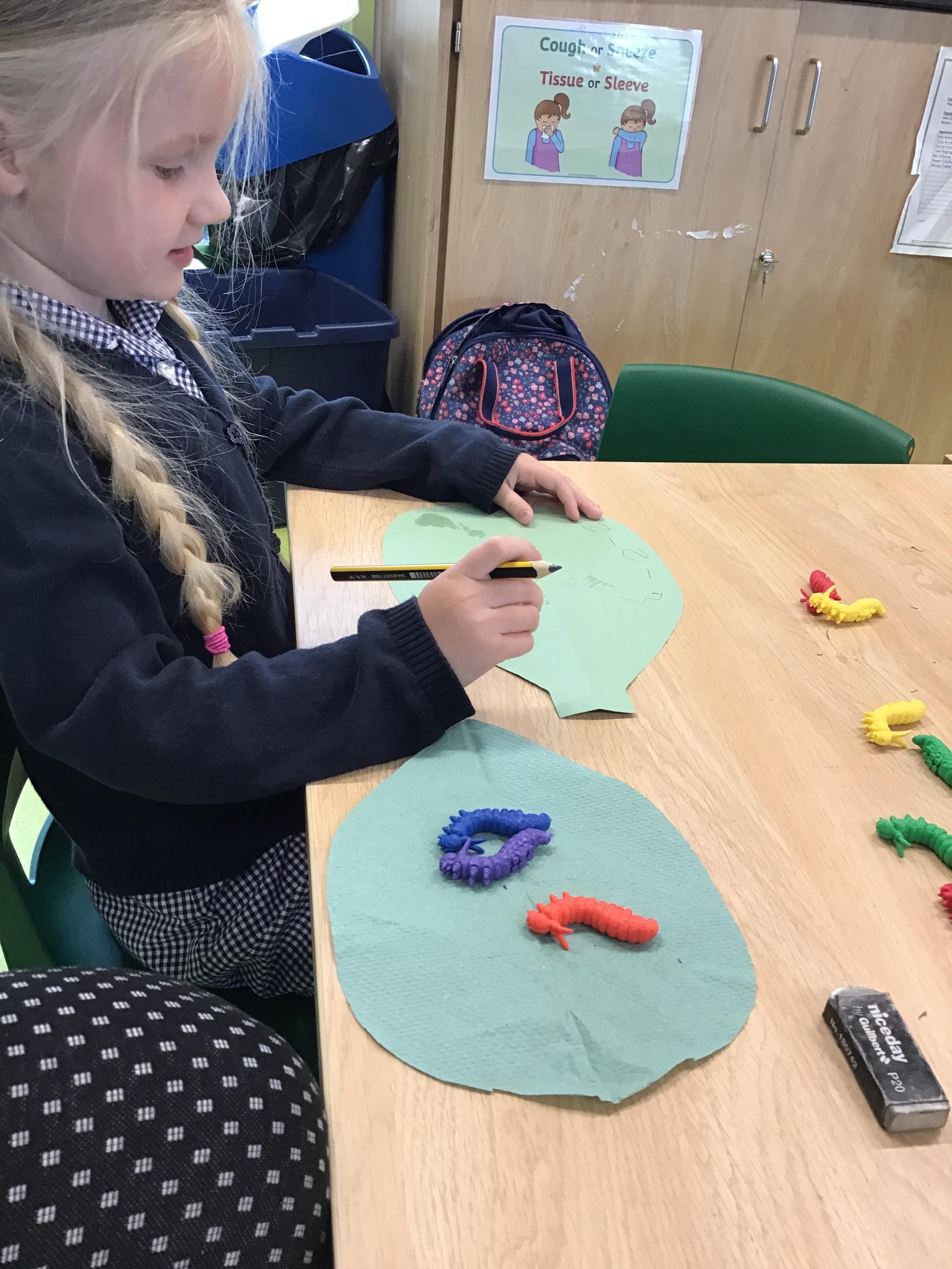 We were also very lucky to have our first Forest School session. The children were read a story, 'Yucky Worms.' They then had to find a specific colour string worm and count how many they found. Then, they pretended to be the rain by jumping up and down on the ground to encourage the worms to come to the surface.