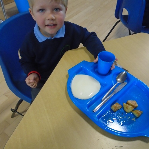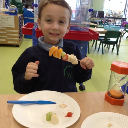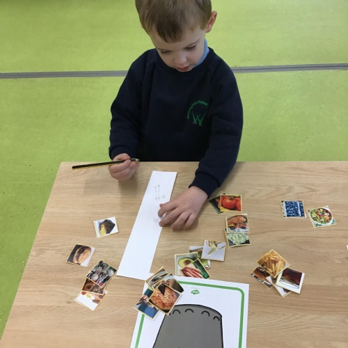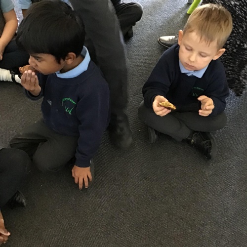 This week, the children have finished learning about the topic of food. As a class, we conducted an experiment to find out what happens to a variety of food when it goes off. They made predictions as to what they thought would happen to milk, yoghurt, houmous, a banana and a slice of bread if they were not kept in the fridge and instead kept somewhere warm. Today, the children were asked to make comments as to how these five items of food have changed. With an adult, the children have been using their phonic knowledge to write a list of things that they want to buy from the shops and I was very impressed with the children being able to record the sounds that they could hear in the different words. Perhaps the children could help you to write your food shopping list this week too? For our outdoor learning this week, the children worked with the children from class 2 to create a woodland animal out of sticks, made leaf rubbings and also made a boat that would hopefully float across the water (Miss Blyth has uploaded some photos from the children's outdoor learning this week). I am going to be completing benchmark reading assessments with the children next week so please continue to practise reading as much as possible at home, including asking the children questions about what they have read. Next week the children will be learning the sounds v, w, x and y in our phonics sessions. Our fruit and vegetable initiative from the government where each child will receive a healthy snack every day will begin on Monday. Thank you and I hope you all have a lovely weekend