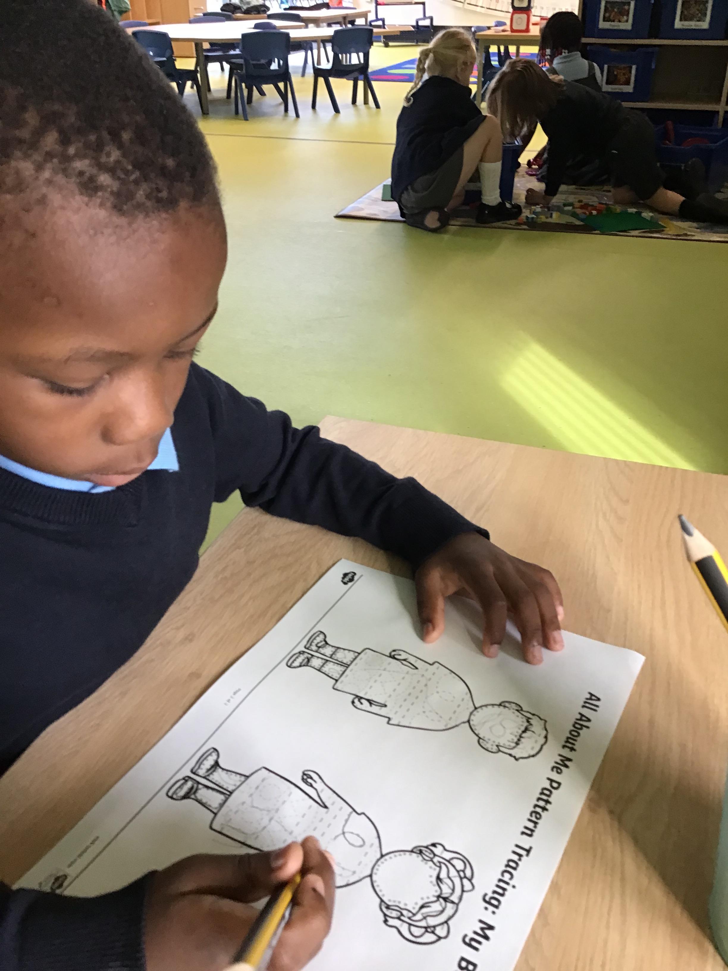 The children have been busy writing a fact file about themselves this week where they wrote their name, their age and their favourite colour, before drawing a picture of themselves. They have impressed me with their beautiful drawings and mark making skills. During their independent play, the children have been counting the correct number of beads to match a given numeral, painting a picture of their family and drawing patterns in a variety of materials, i.e. sand and rice. In phonics, the children have been learning to listen carefully to the sounds that adults have been orally segmenting. They have then been blending the sounds in their heads to understand what the adult was saying - I have been very impressed. Next week we will be learning the sounds s, a, t and p in our phonics sessions. The children are enjoying their lunch at school and the puddings are definitely their favourite part. Please note that school will start at 9.00am and finish at 3.15pm every day from next week. Please ensure that your child brings a pair of wellington boots into school next week, as well as wearing a suitable outdoor PE kit to school every Monday (starting from Monday 28th September). Throughout next week, is the children's chance to bring in their 'All About Me' boxes, so please bring those in on your child's allocated day. Monday 28th September is the date that we would like the children's baby photos to be brought into school please. In addition, if you would like to purchase your child's Christmas card design, the order form needs to be returned to school by Friday 9th October. If you have any questions, then please come and speak to me. I hope you all have a lovely weekend