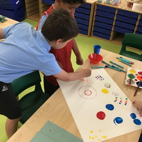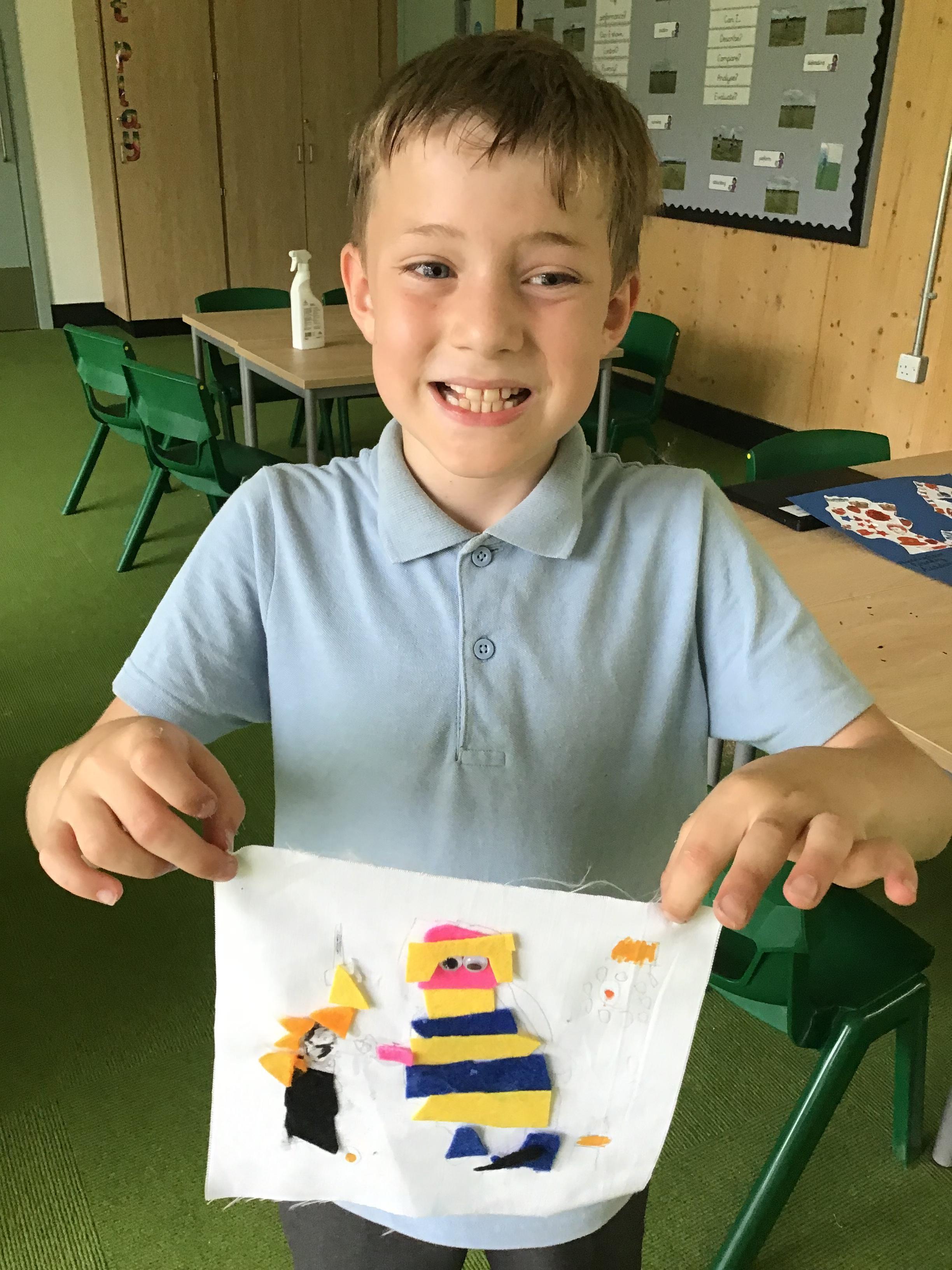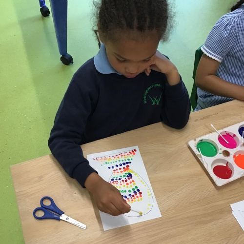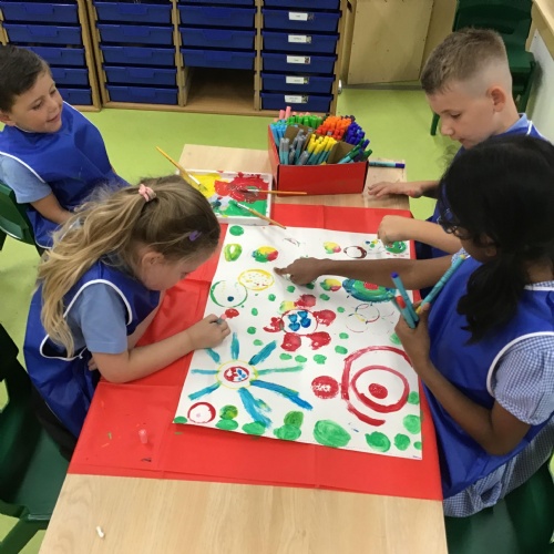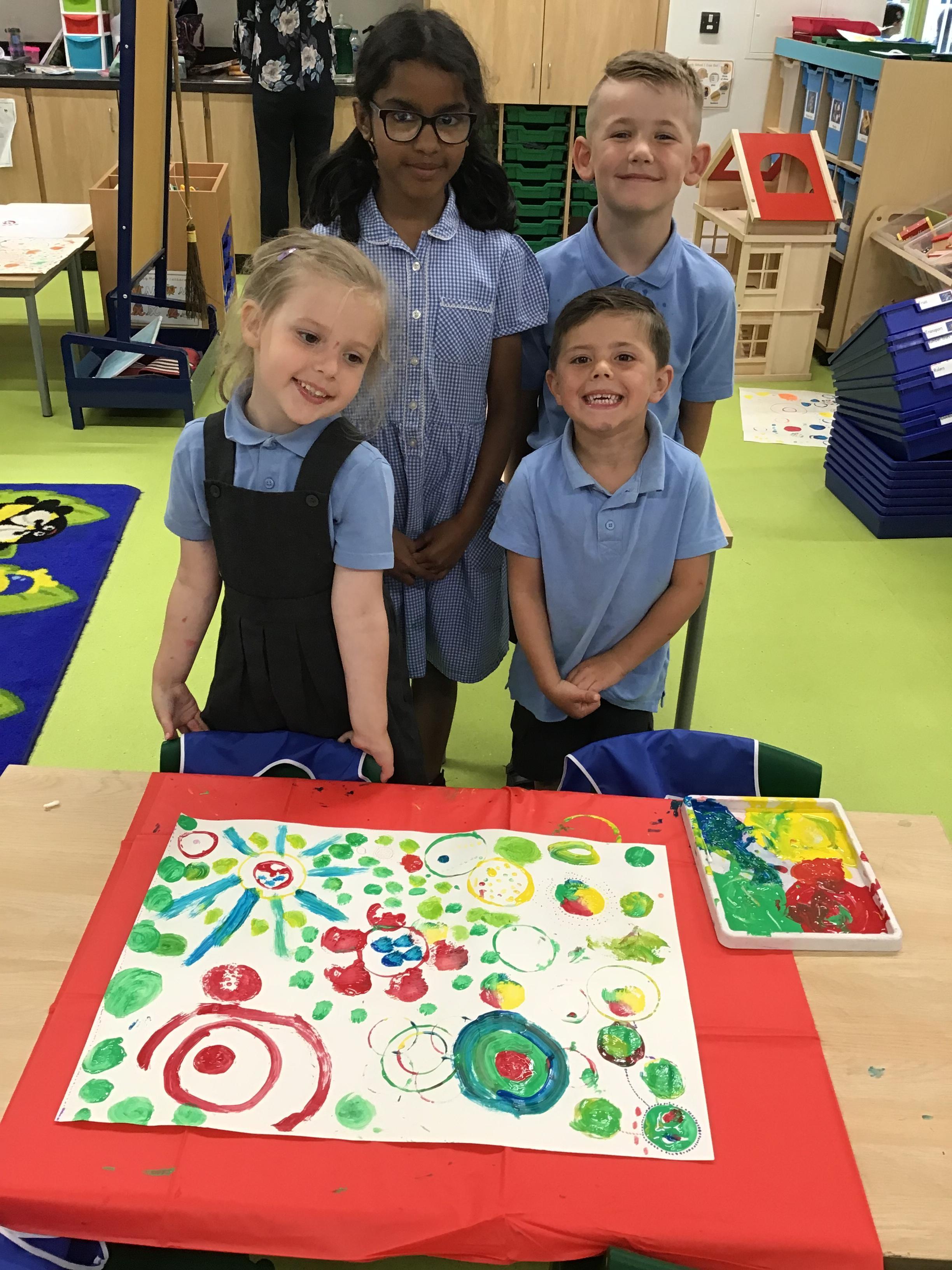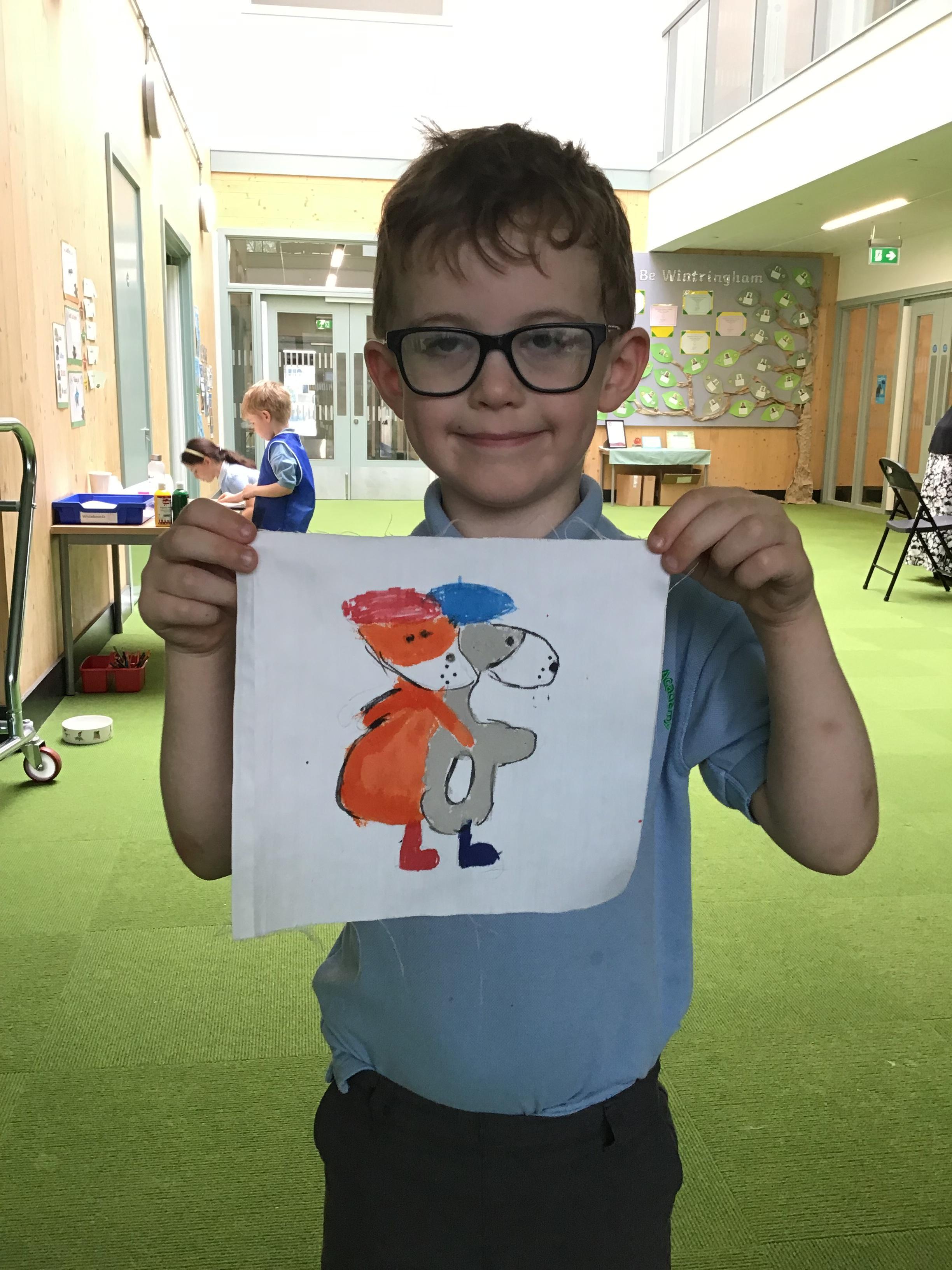 What a fantastic couple of days the children have had! Yesterday, the children from each class worked to create a square based on a book character linked to their class name's author. The children in year five read poetry by Benjamin Zephaniah and created a square based on the poems that they read. First the children had to draw their design out and then they were able to recreate it. The children used a range of techniques including fabric painting, printing, applique and embroidery. These squares will then be joined together to create a large hanging display which I will hopefully be putting together over the summer. Today, the children have worked in mixed year groups to explore four different artists/techniques. The children have learnt about Yayoi Kusama, Andy Goldsworthy, Eric Carle and have had a go at tie dye. This has been a fantastic experience for the children and they have really enjoyed creating polka dot art, creating pictures using nature and creating animal collages. The children have worked together well and the older children have supported the younger children. Well done Wintringham. We are very proud of you!