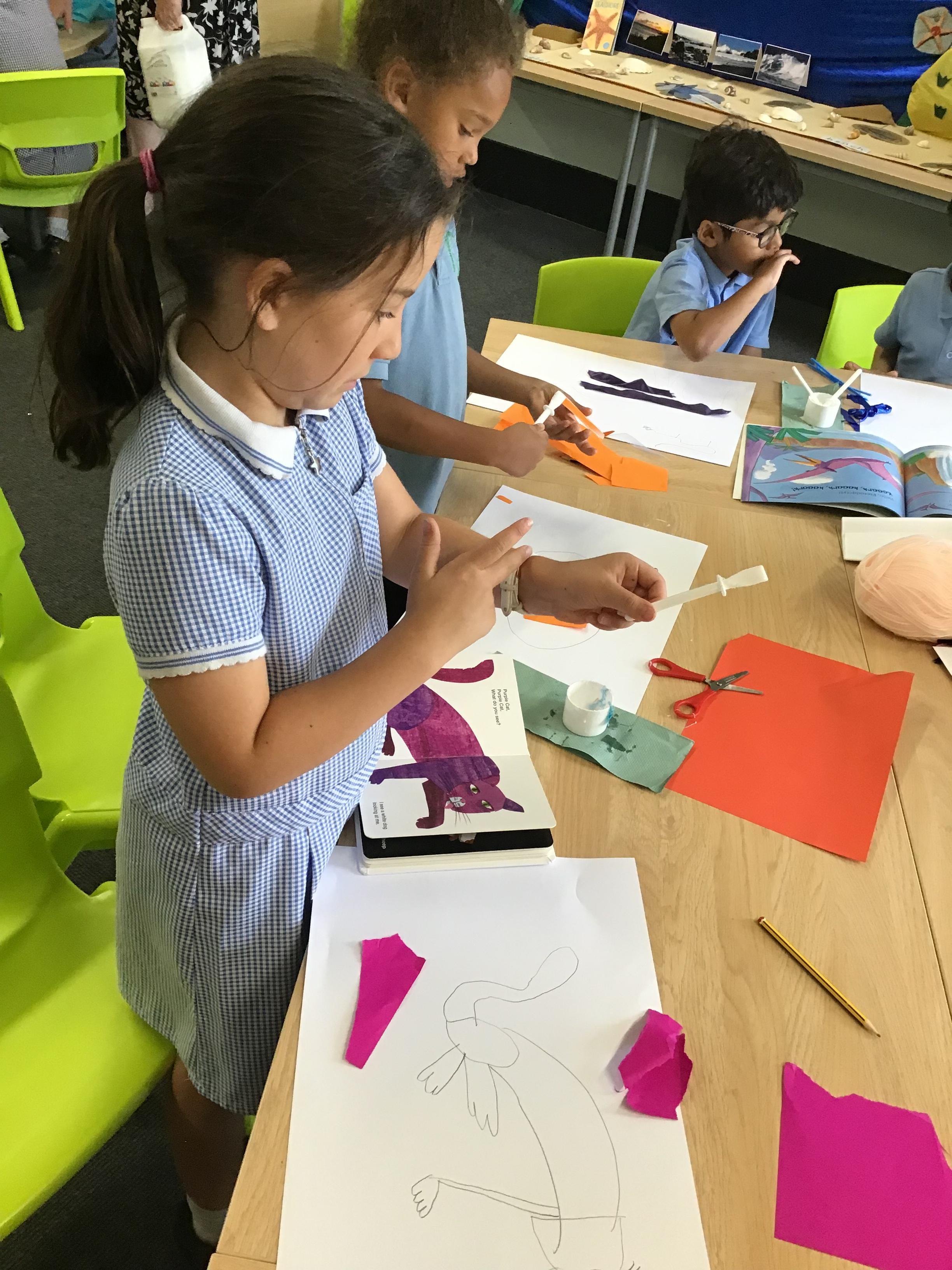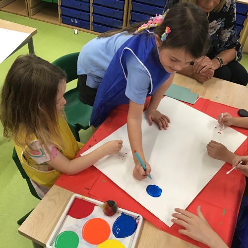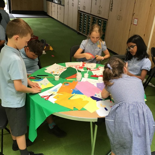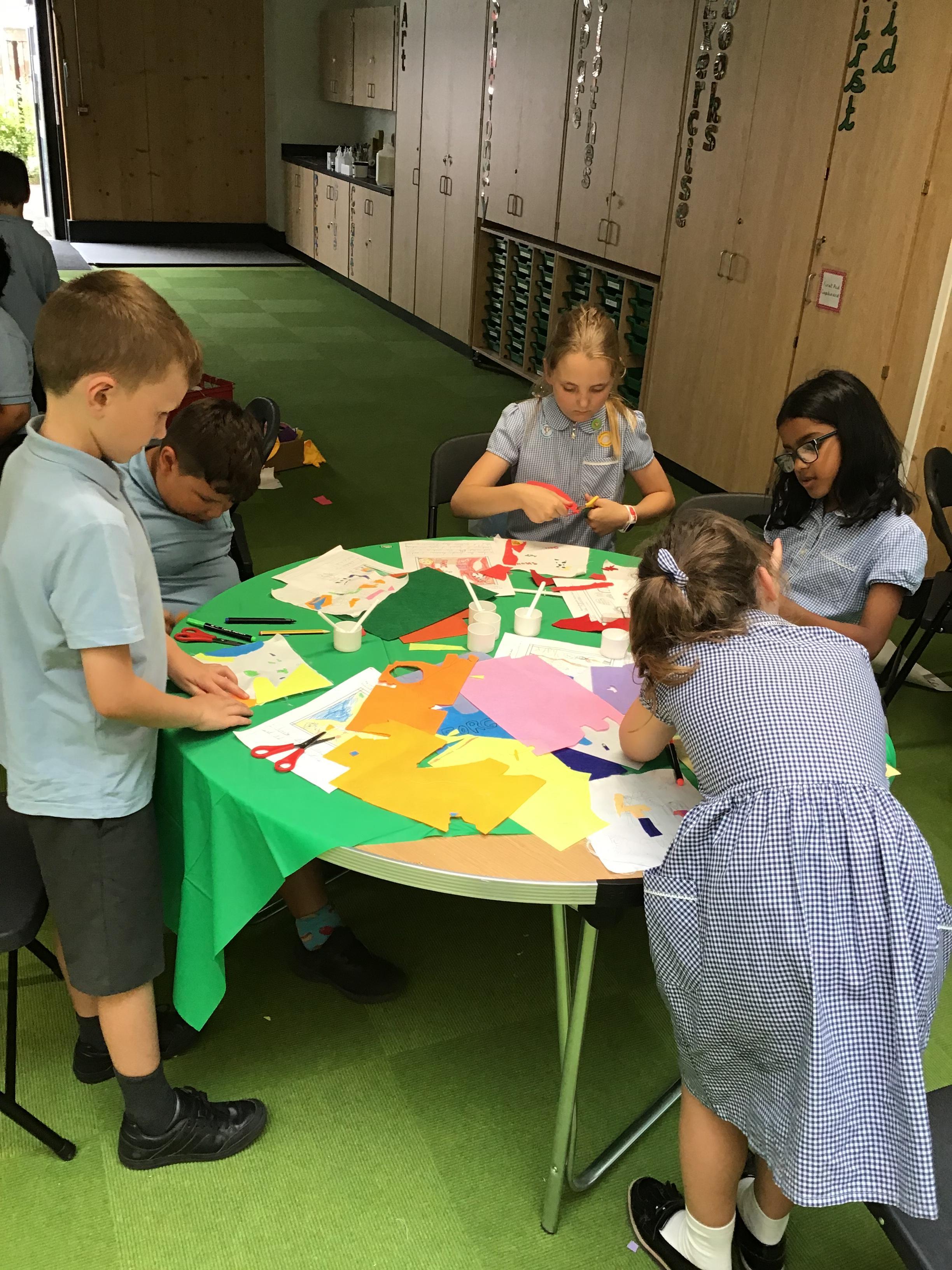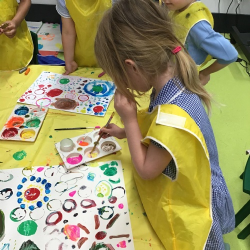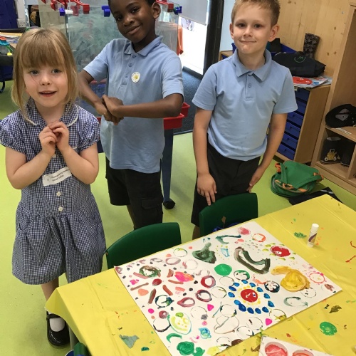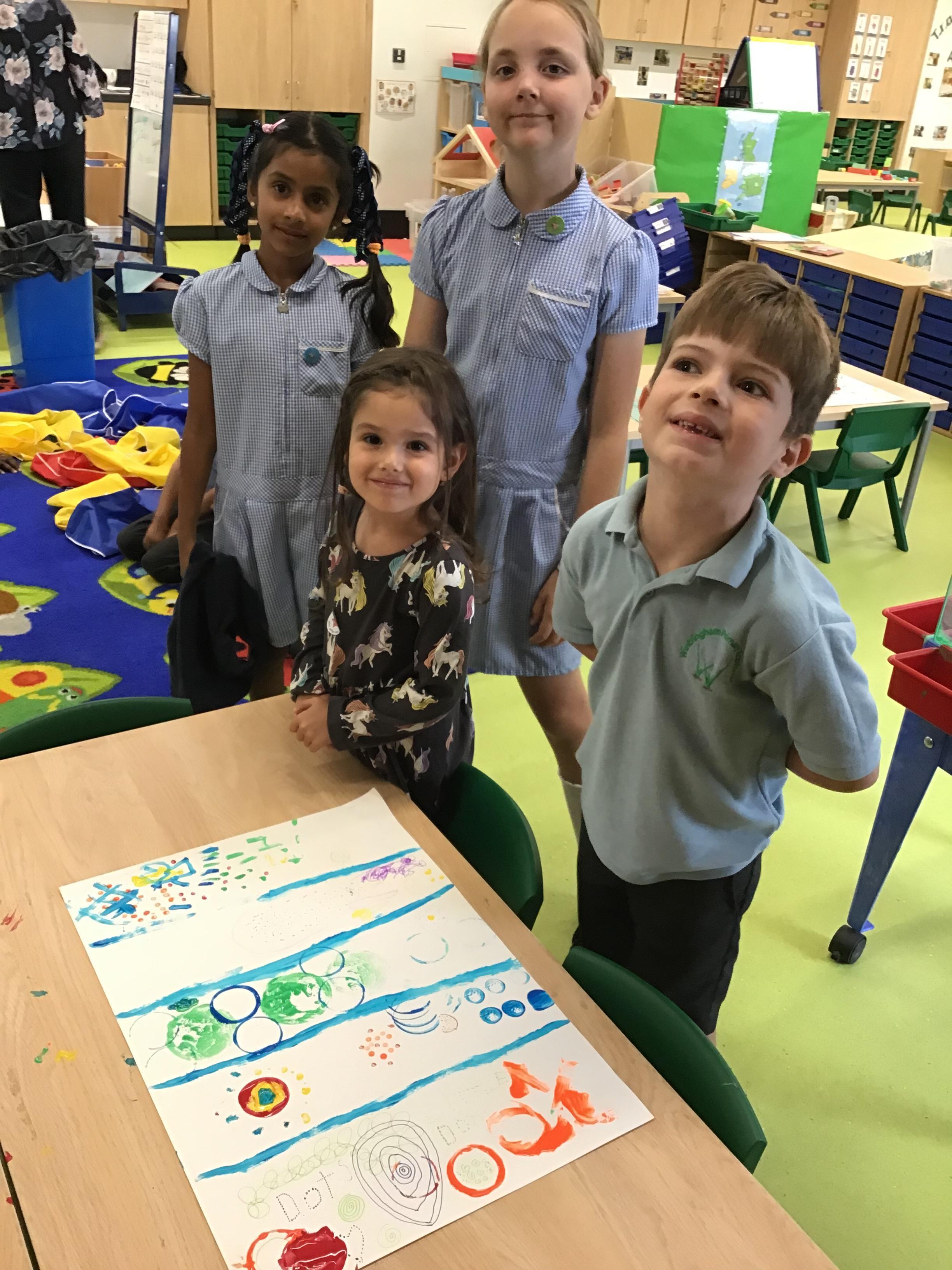 What a fantastic couple of days the children have had! Yesterday, the children from each class worked to create a square based on a book character linked to their class name's author. The children in year five read poetry by Benjamin Zephaniah and created a square based on the poems that they read. First the children had to draw their design out and then they were able to recreate it. The children used a range of techniques including fabric painting, printing, applique and embroidery. These squares will then be joined together to create a large hanging display which I will hopefully be putting together over the summer. Today, the children have worked in mixed year groups to explore four different artists/techniques. The children have learnt about Yayoi Kusama, Andy Goldsworthy, Eric Carle and have had a go at tie dye. This has been a fantastic experience for the children and they have really enjoyed creating polka dot art, creating pictures using nature and creating animal collages. The children have worked together well and the older children have supported the younger children. Well done Wintringham. We are very proud of you!