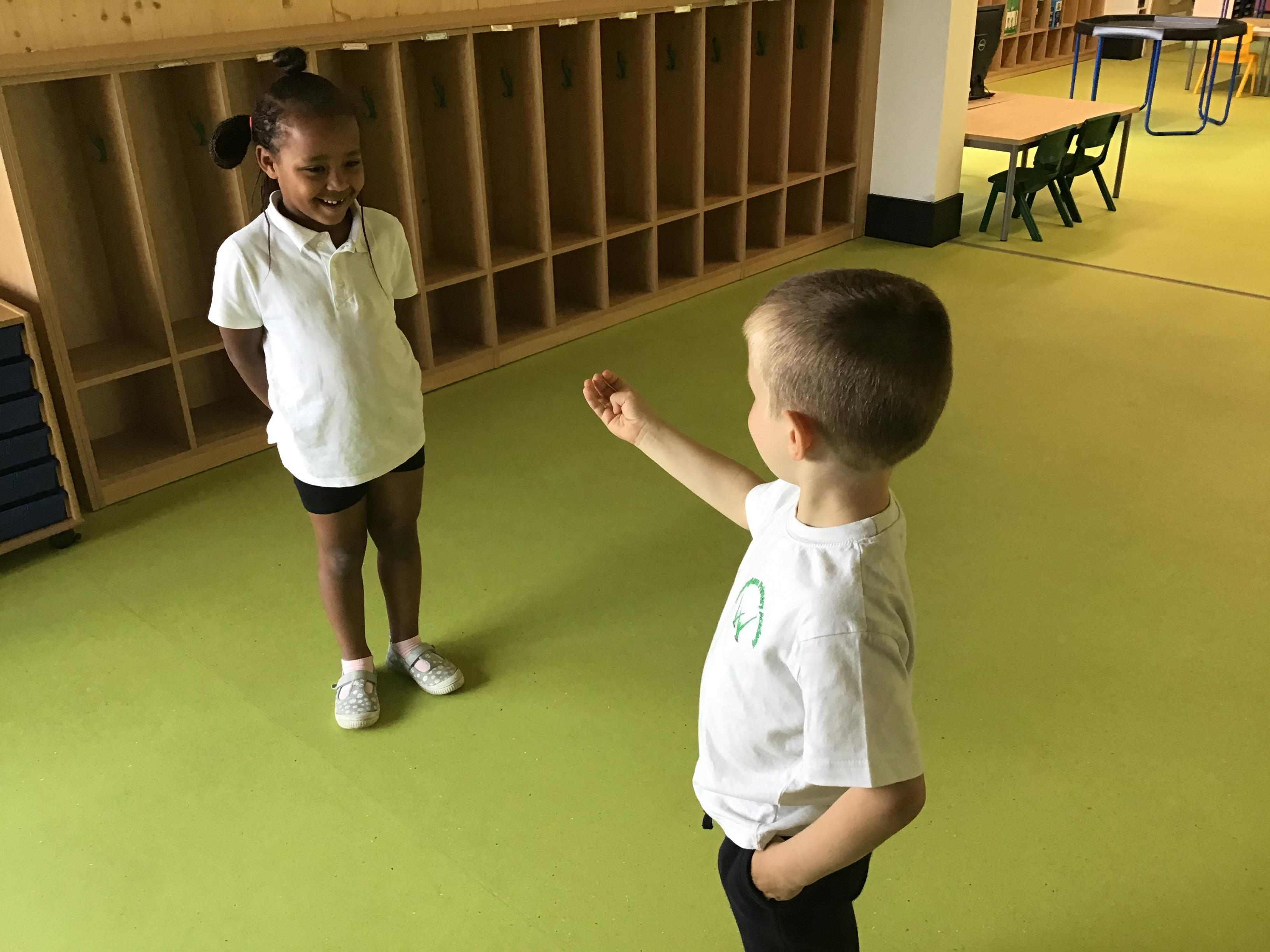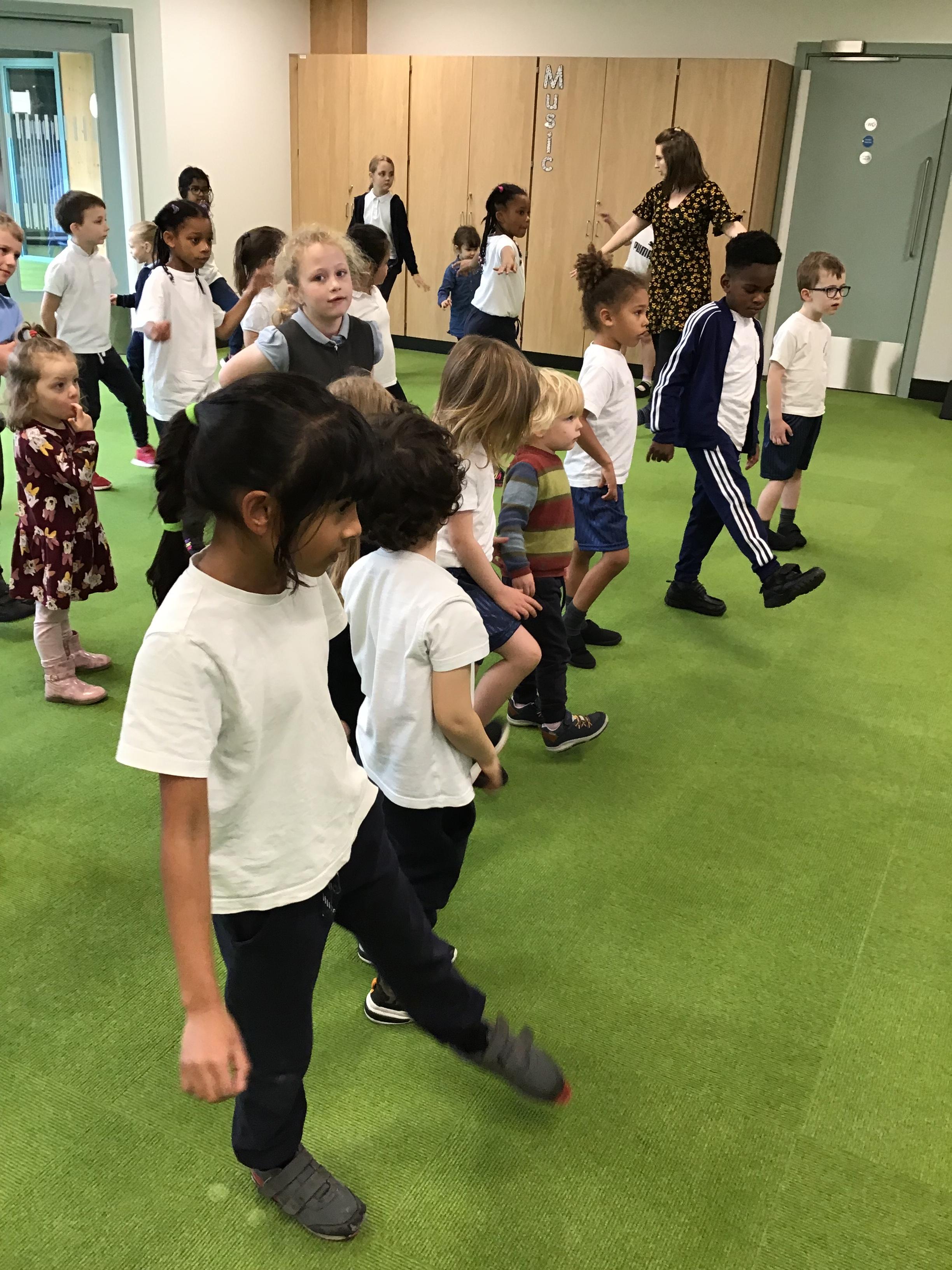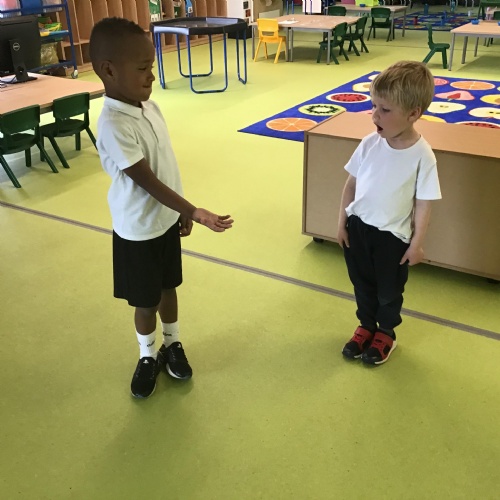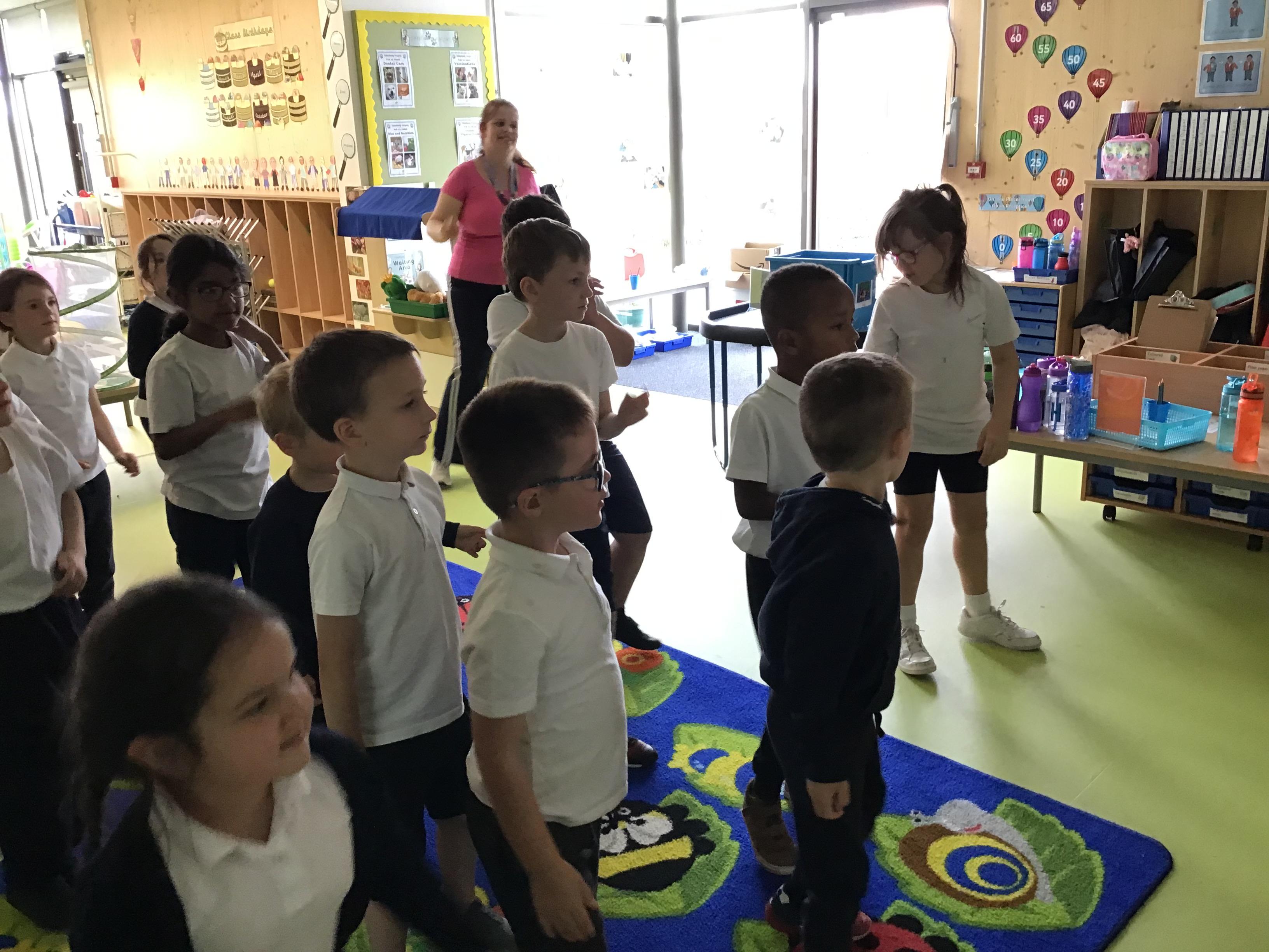 In P.E, we explored move and hold. The children moved around the space of the hall and then had to freeze on command. Next, they looked at creating circles with different parts of their body and creating a box shape. Finally, the children had to think of their own sequence of movements, linked to the key skills learnt in the lesson. What a fantastic start to the term we have had!