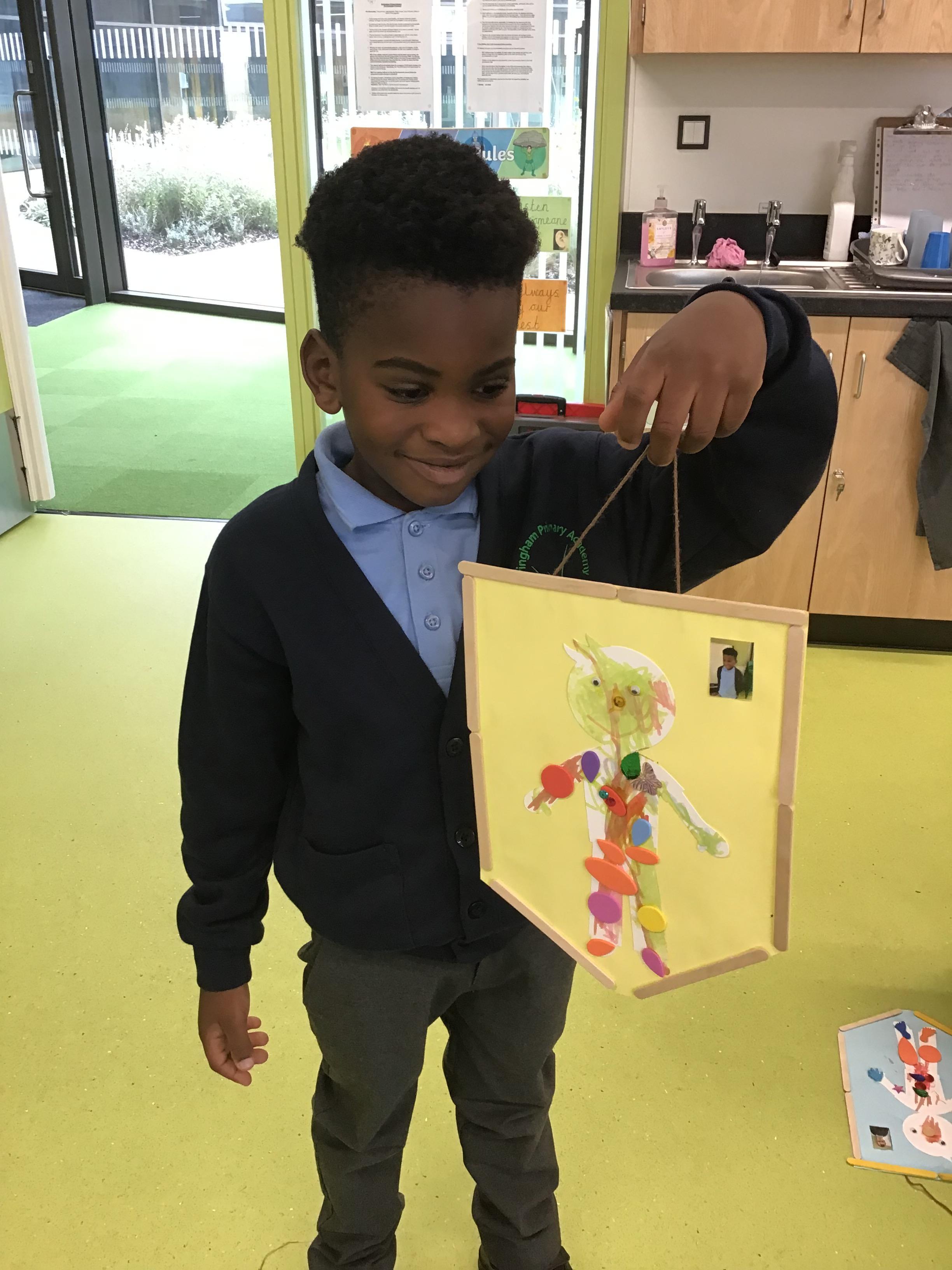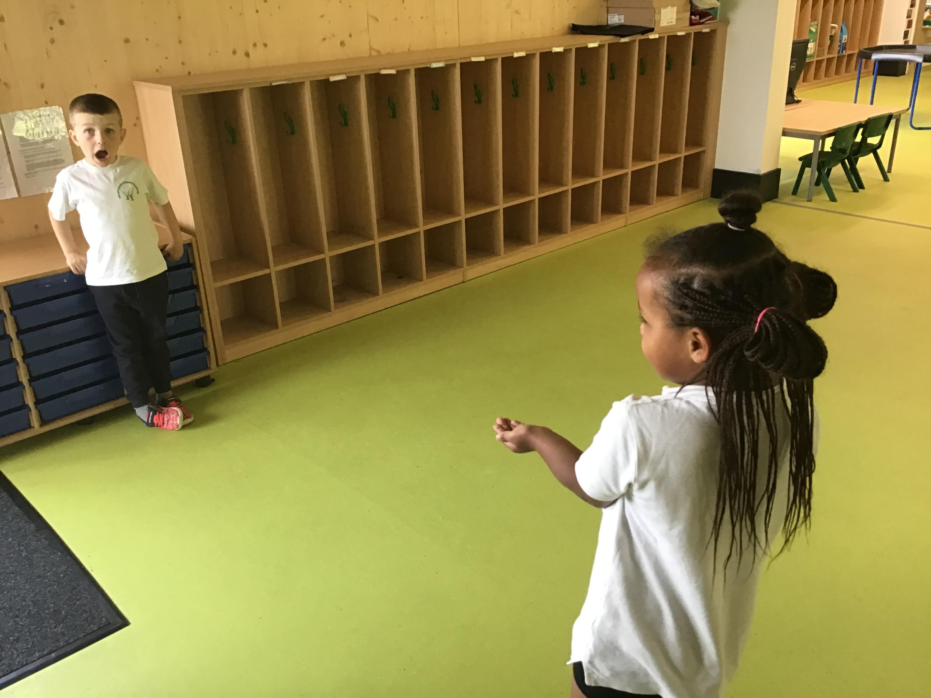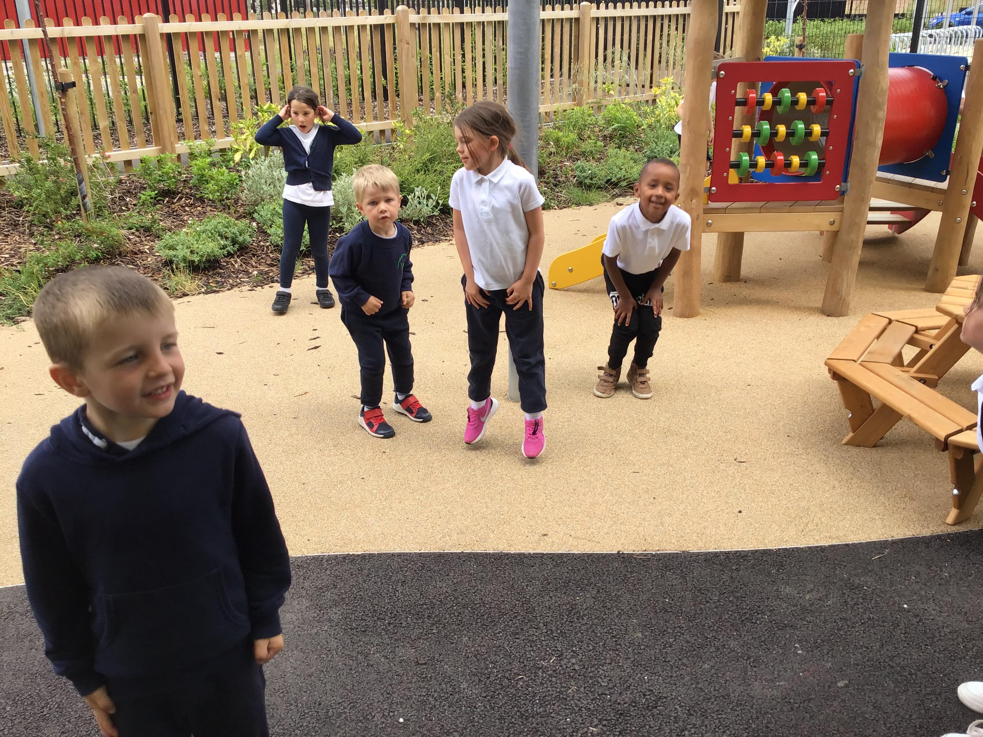 In P.E, we explored move and hold. The children moved around the space of the hall and then had to freeze on command. Next, they looked at creating circles with different parts of their body and creating a box shape. Finally, the children had to think of their own sequence of movements, linked to the key skills learnt in the lesson. What a fantastic start to the term we have had!