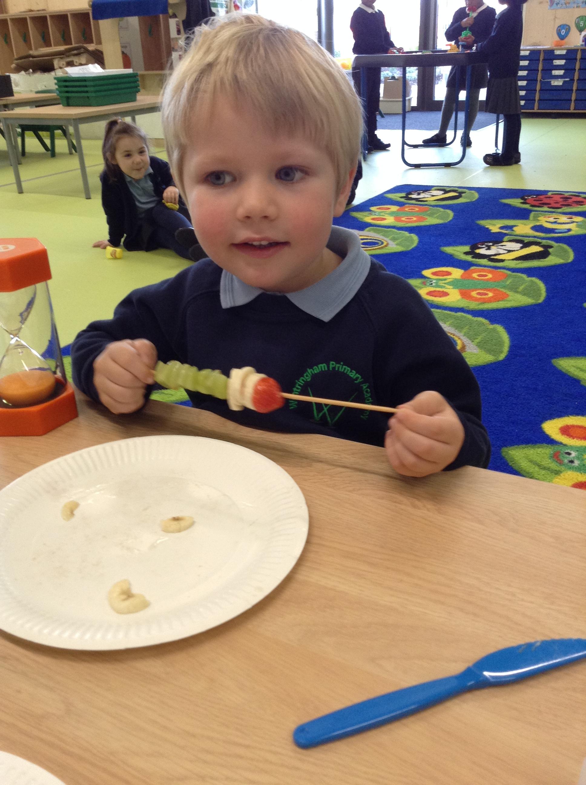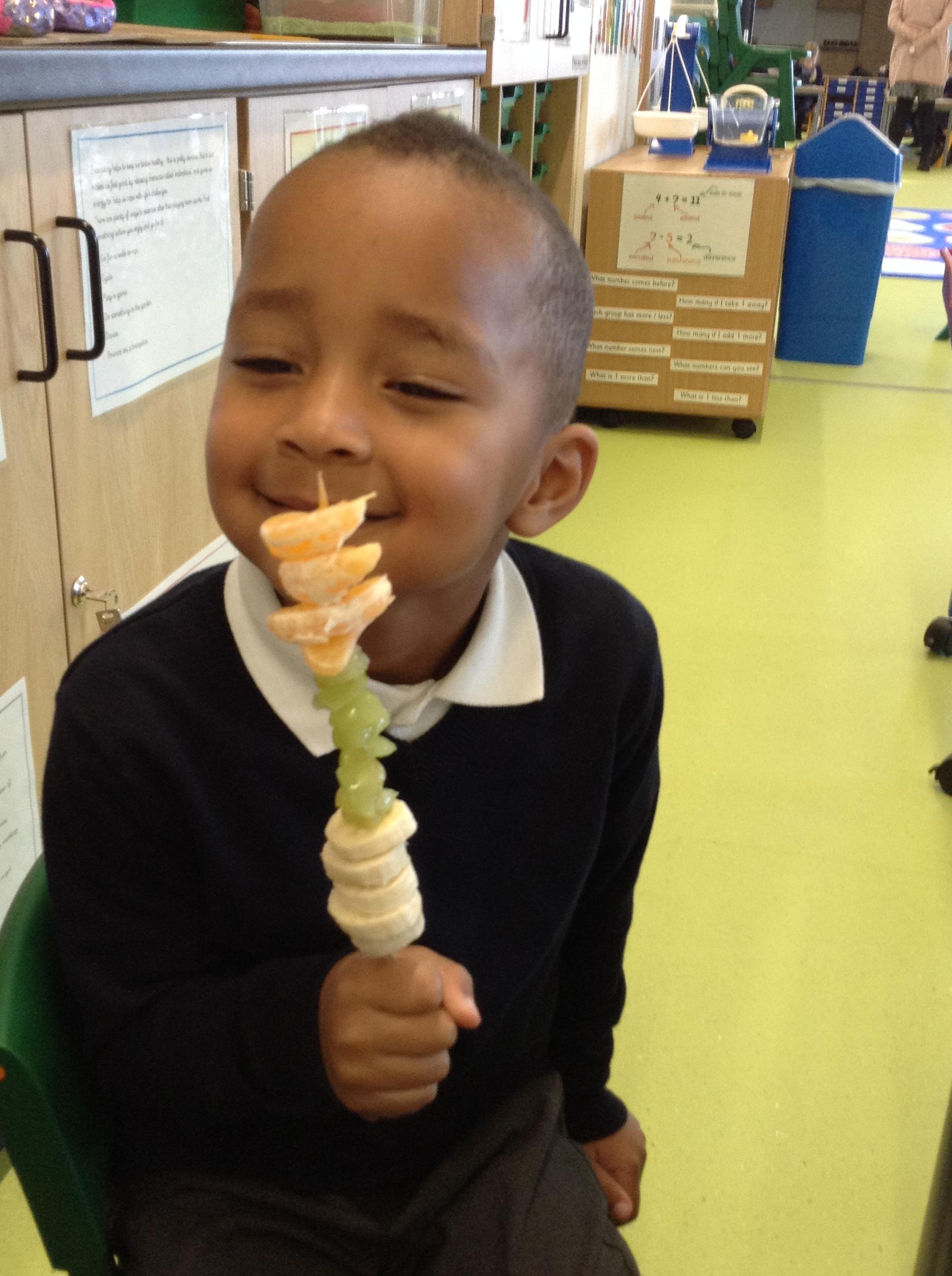 The children have had a fantastic couple of weeks. Last week, the children learnt about Bonfire Night and completed lots of firework related activities. This week, the children have been looking at the new topic of food. They have been focussing on the story, 'Handa's Surprise,' in group time. First, the children listened to the story and answered questions regarding it. Then, the children focussed re-telling the story and putting the pictures in order. The children also thought about the characters in the story and enjoyed getting into role to answer questions. In continuous provision, the children have been creating African style necklaces, writing about fruit, using tweezers to move resources to create patterns and using fruit to count out to match numerals. I have put a post on Tapestry regarding tricky words in Phonics. Please have a look at this and let me know if you have any questions. I hope you all have a lovely weekend and I look forward to seeing you next week.